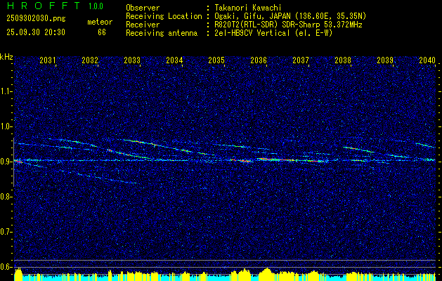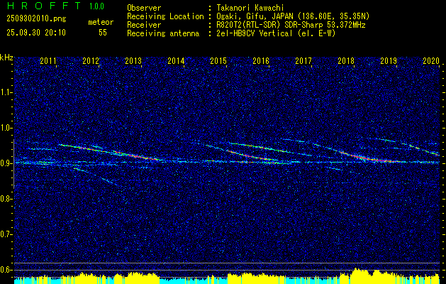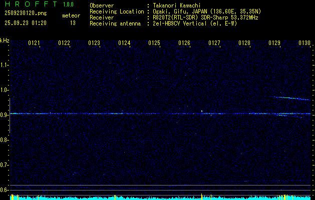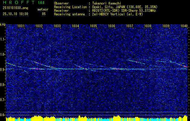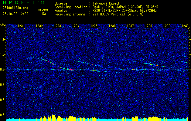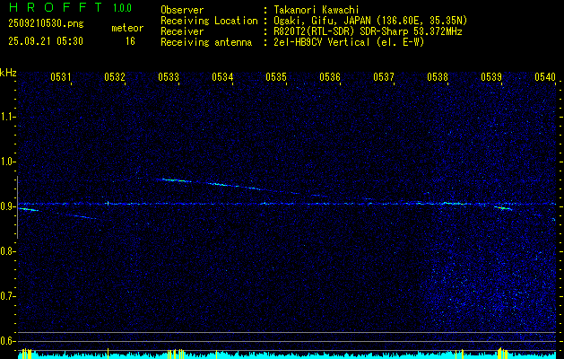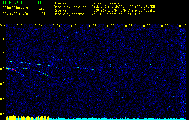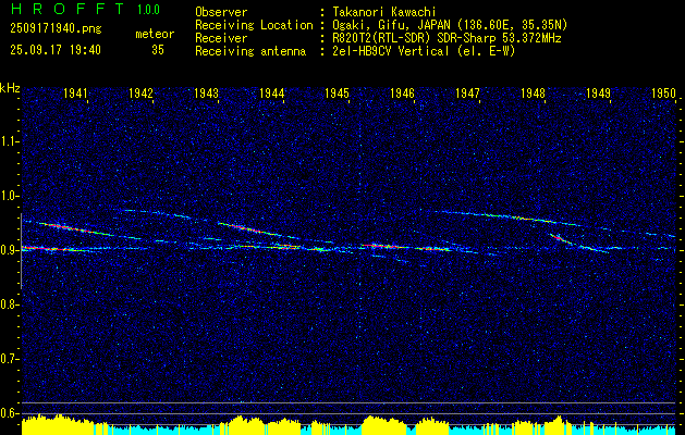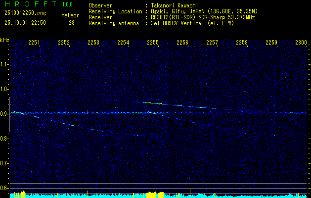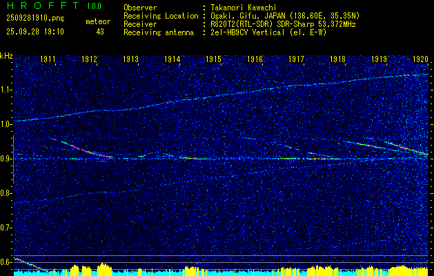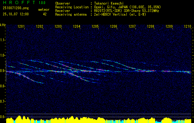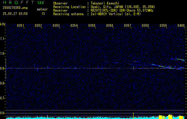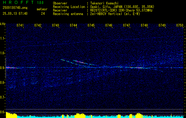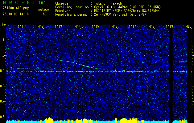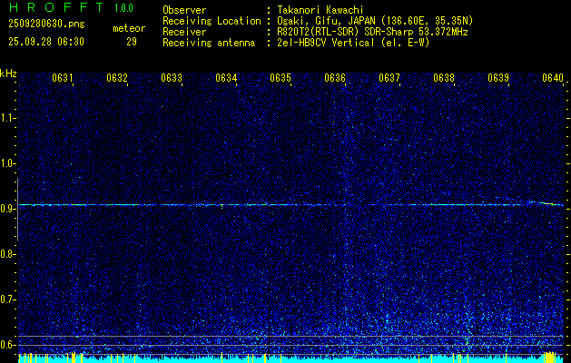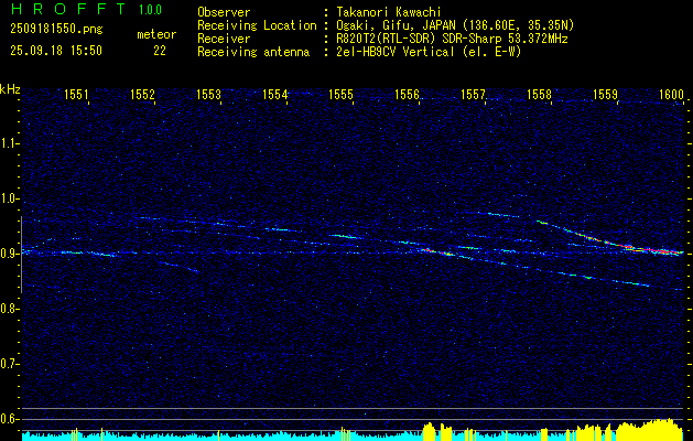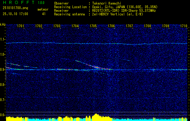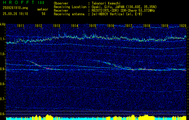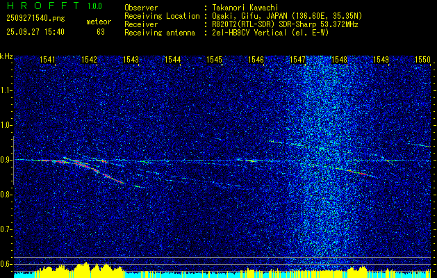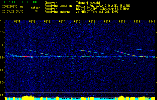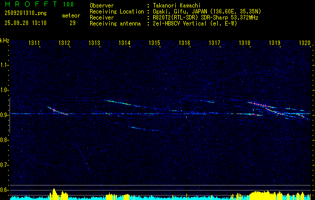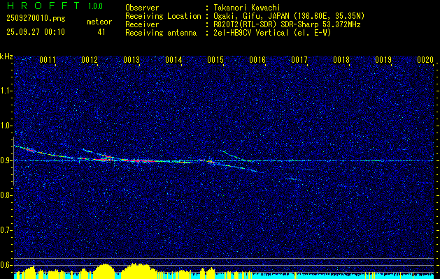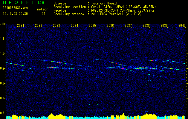 0.9kHz附近に発生している『点』または『塊』が流星によるエコーです.
