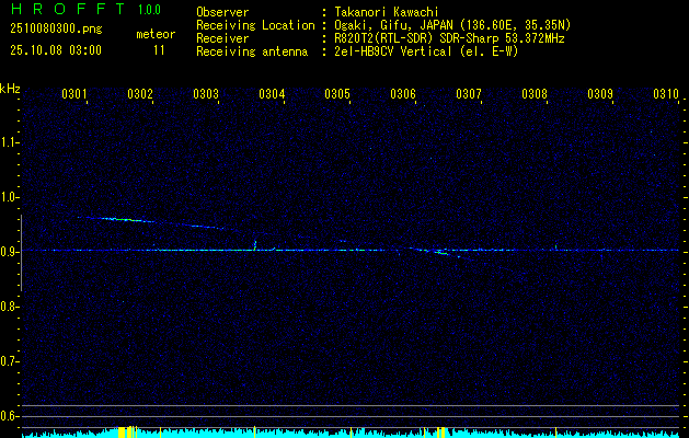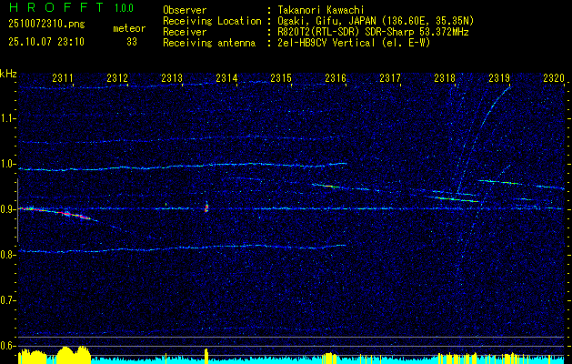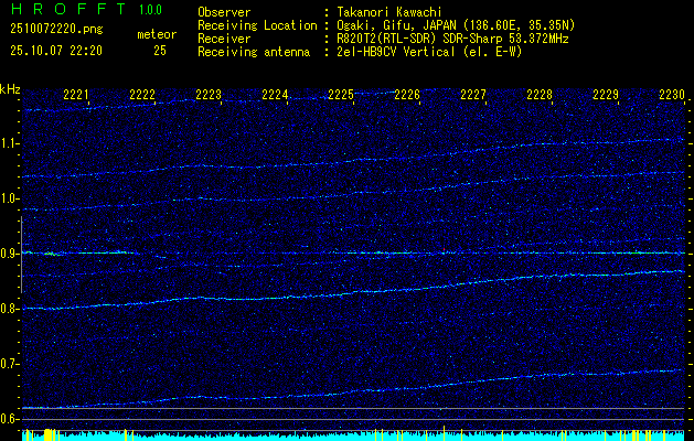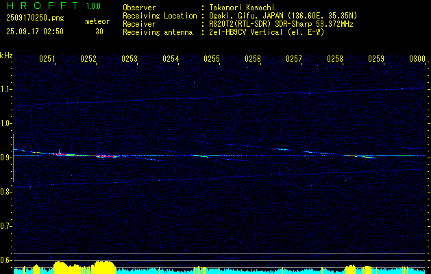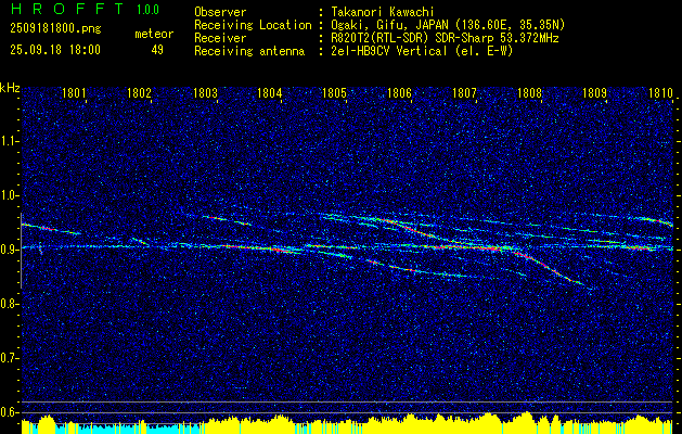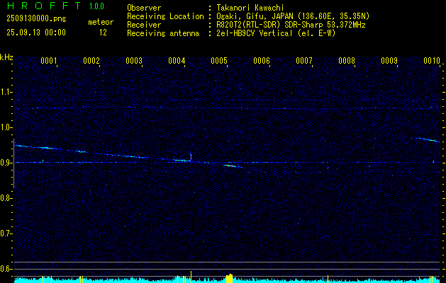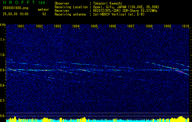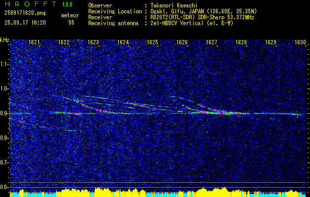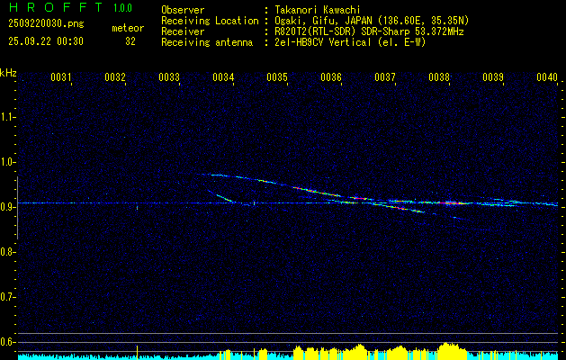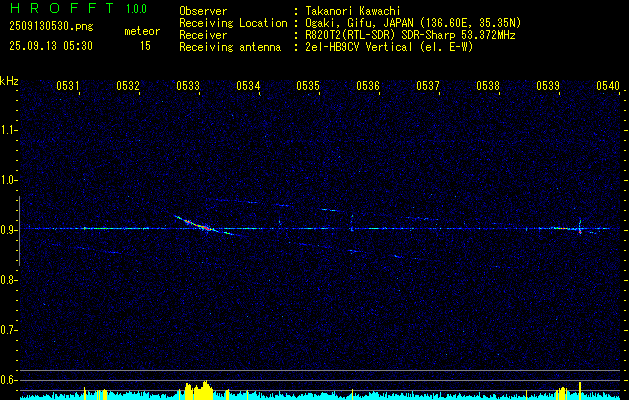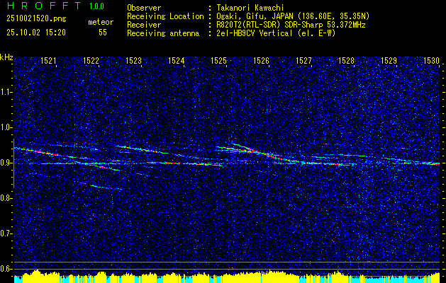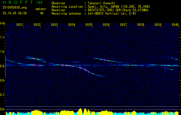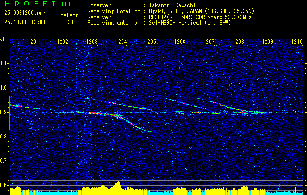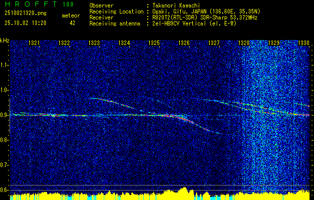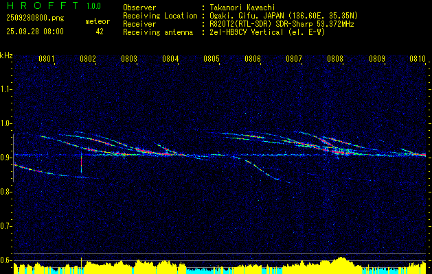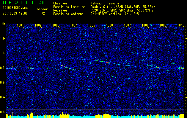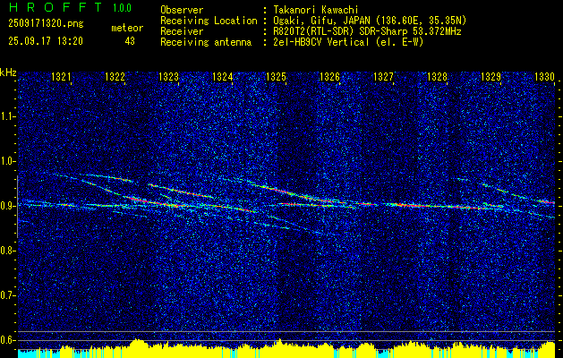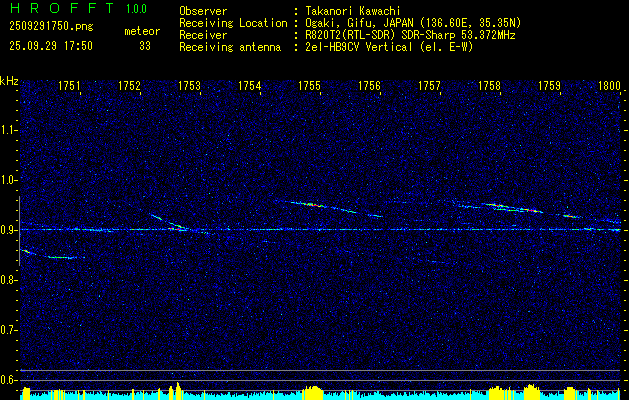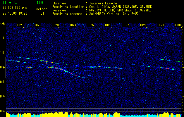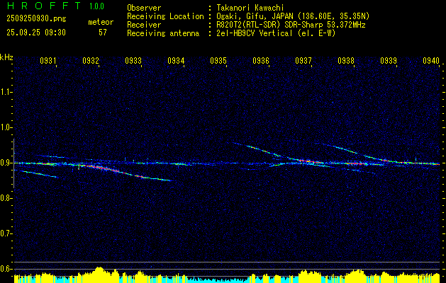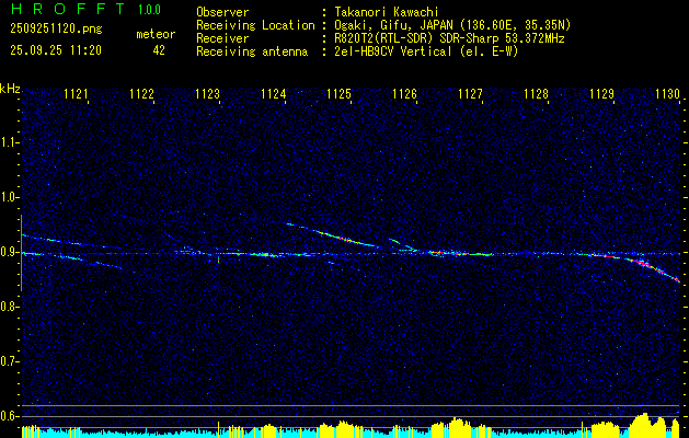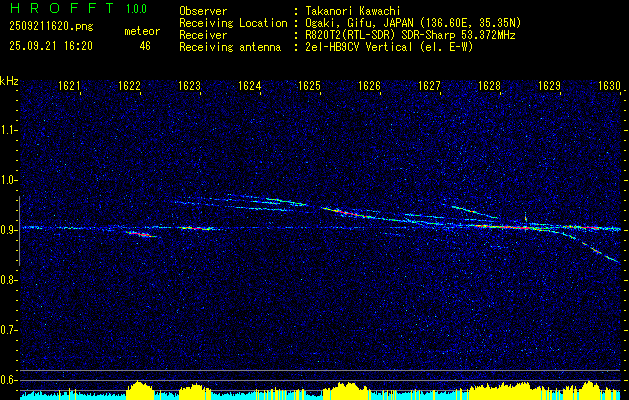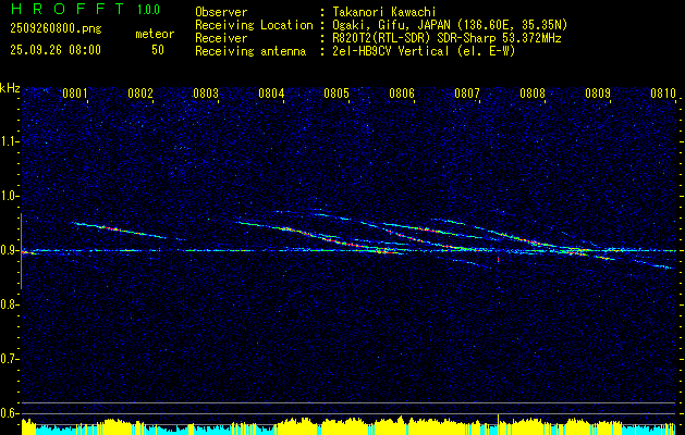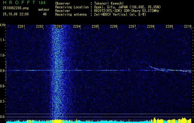 0.9kHz附近に発生している『点』または『塊』が流星によるエコーです.