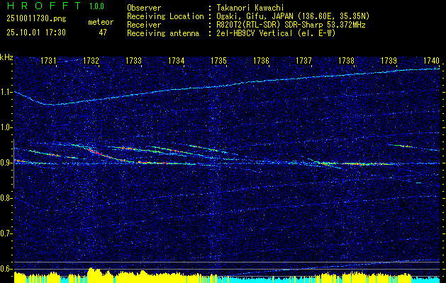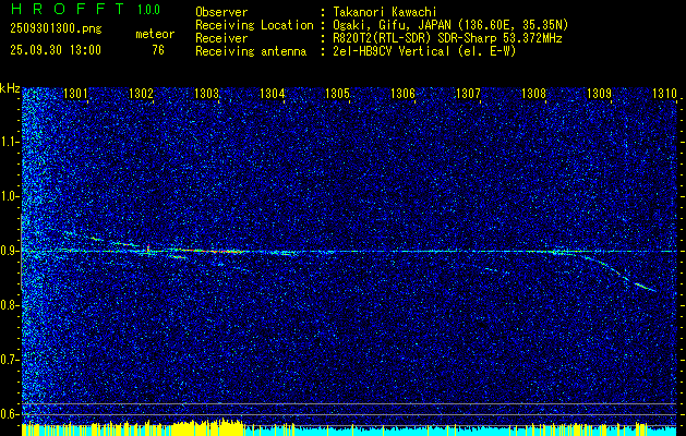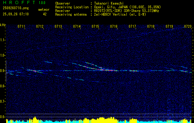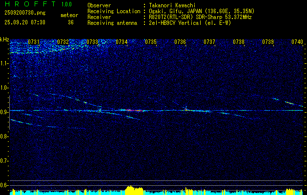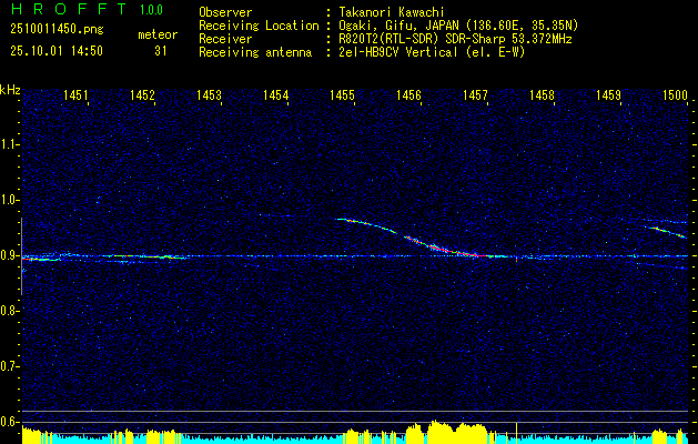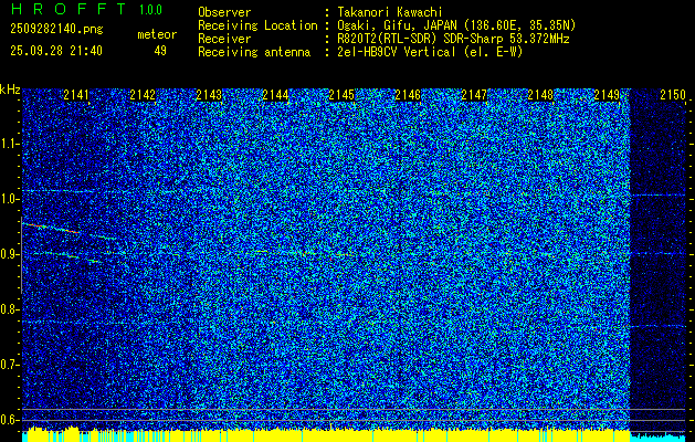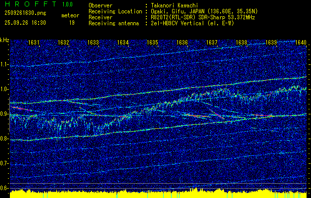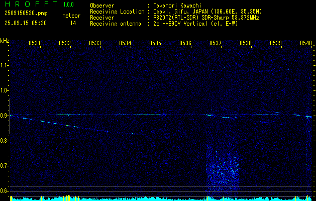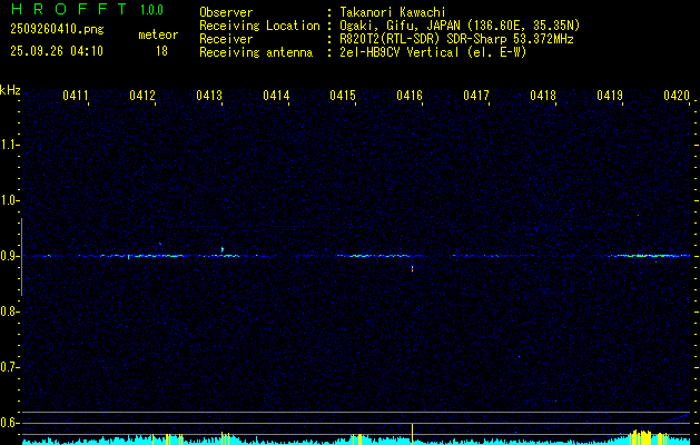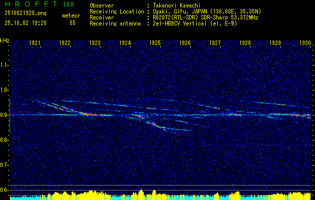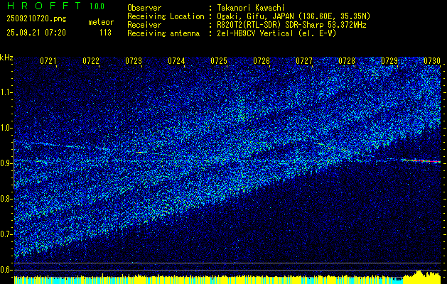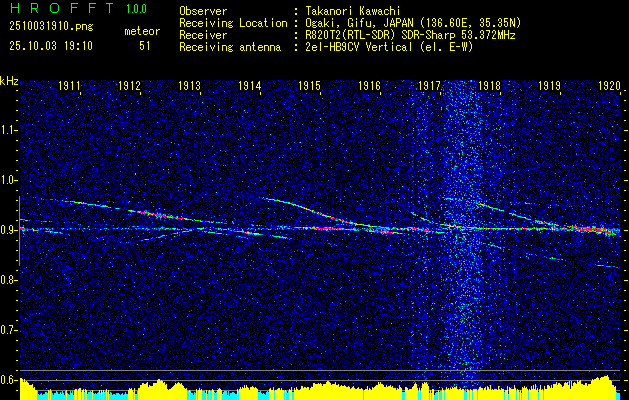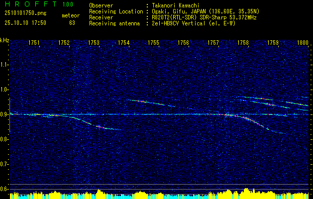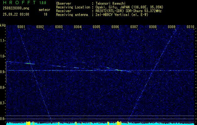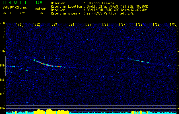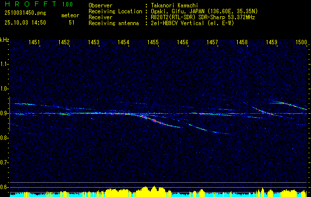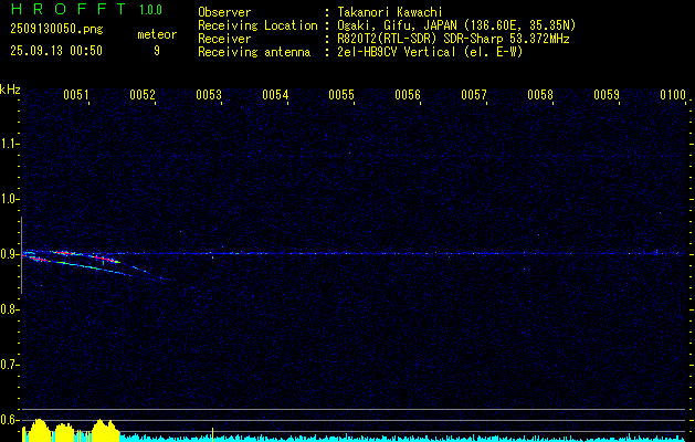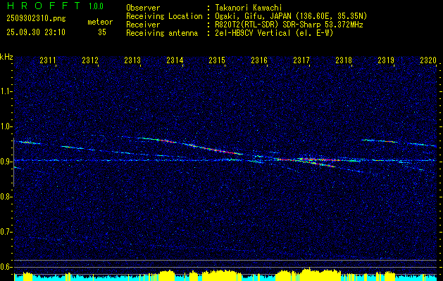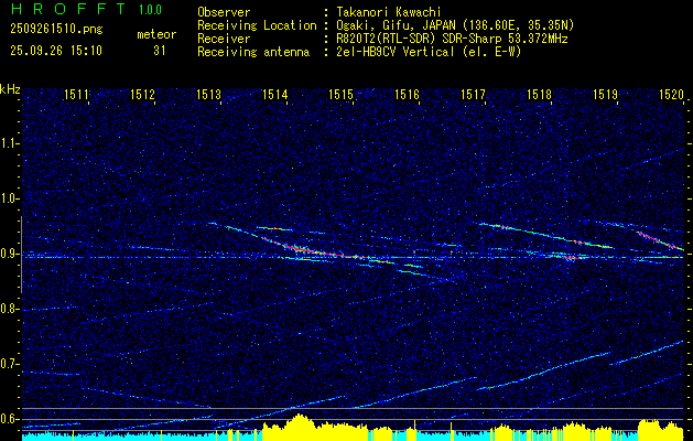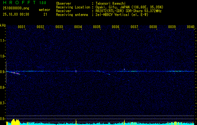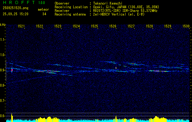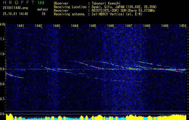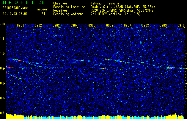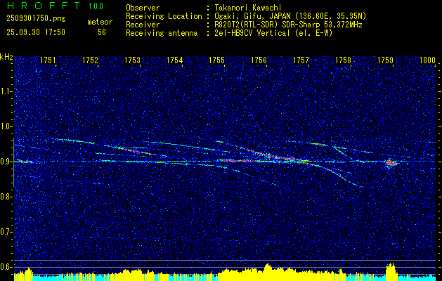 0.9kHz附近に発生している『点』または『塊』が流星によるエコーです.