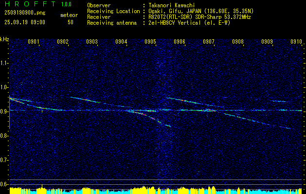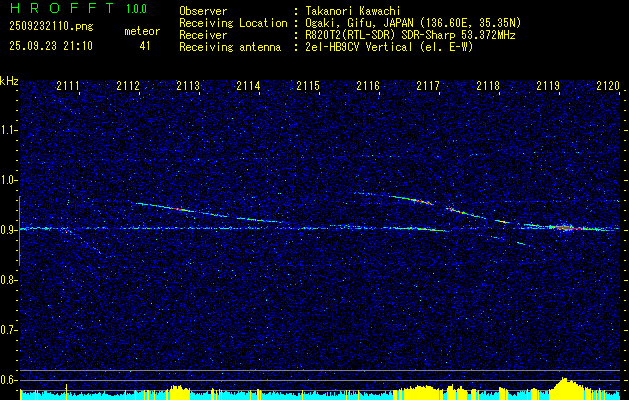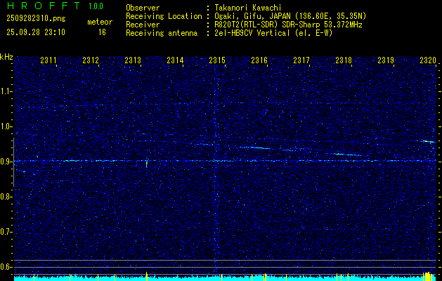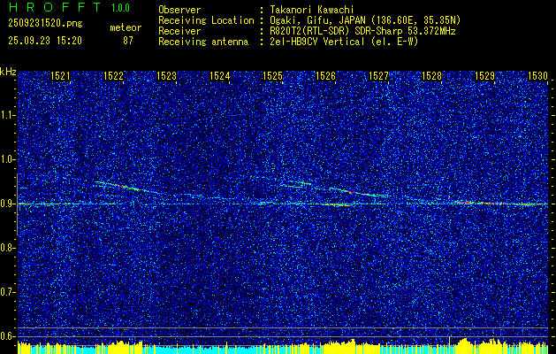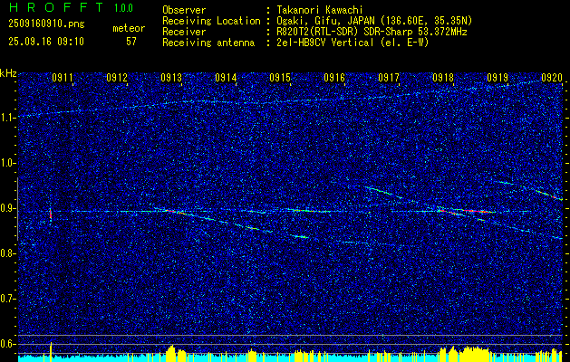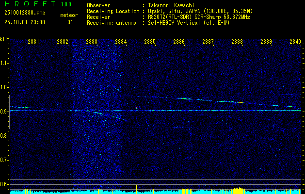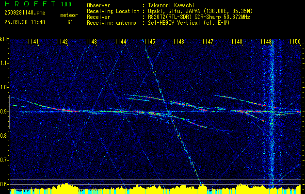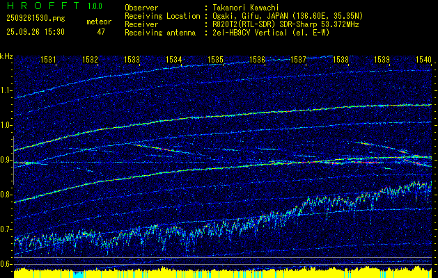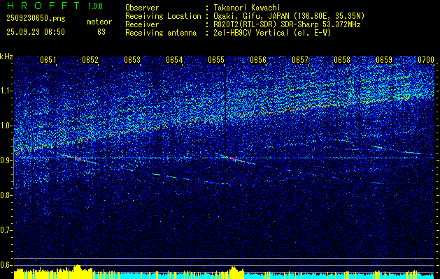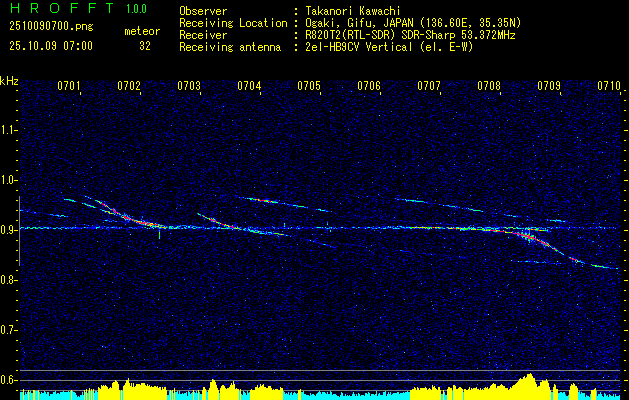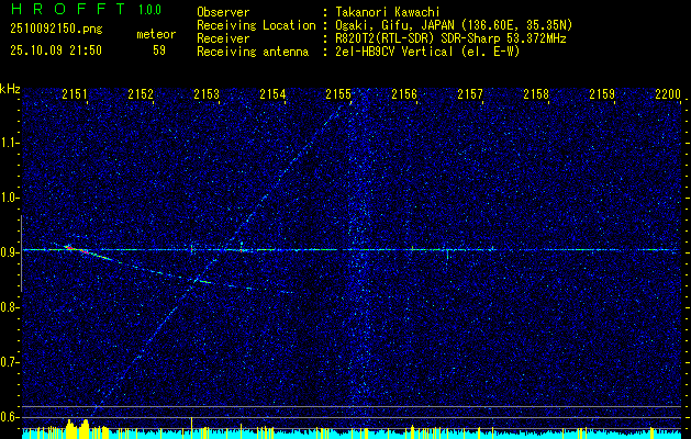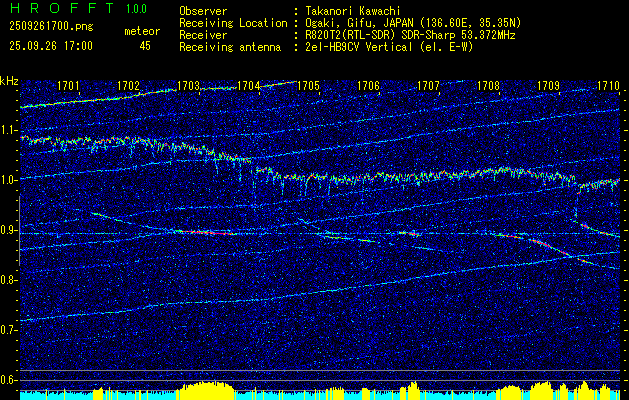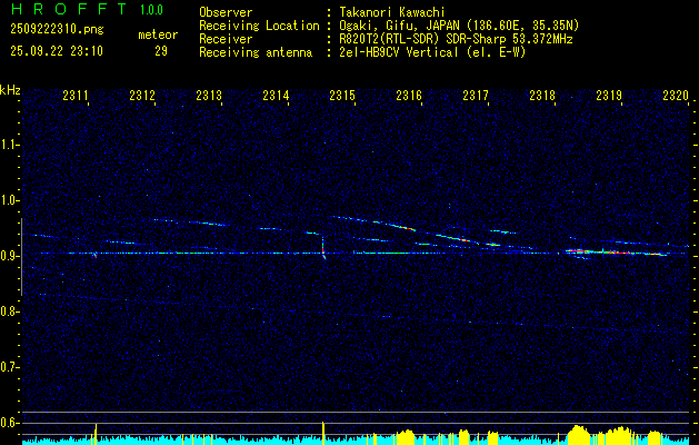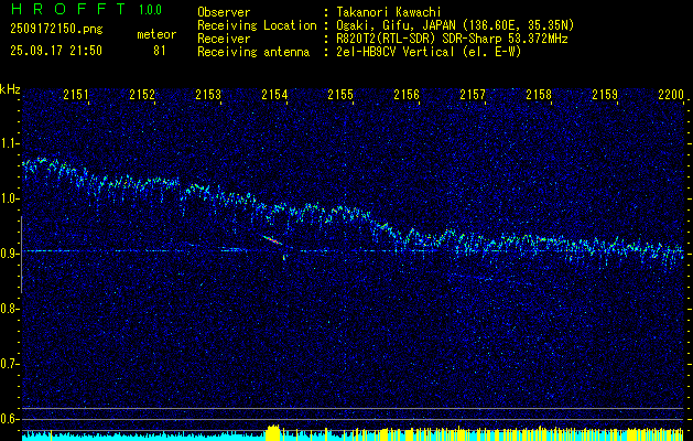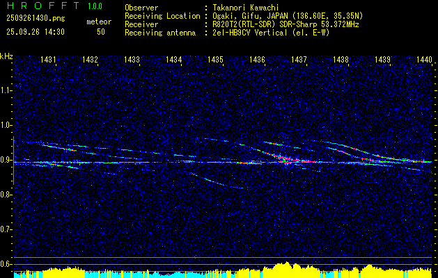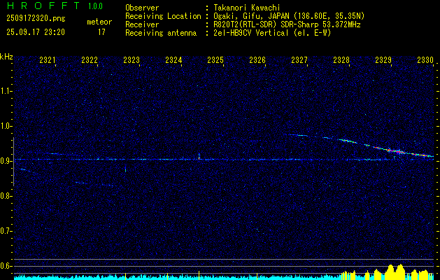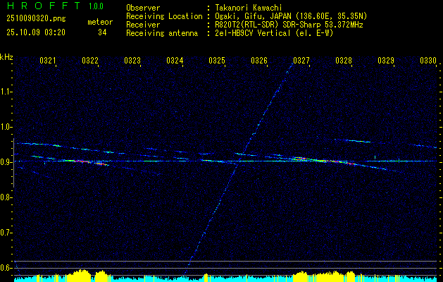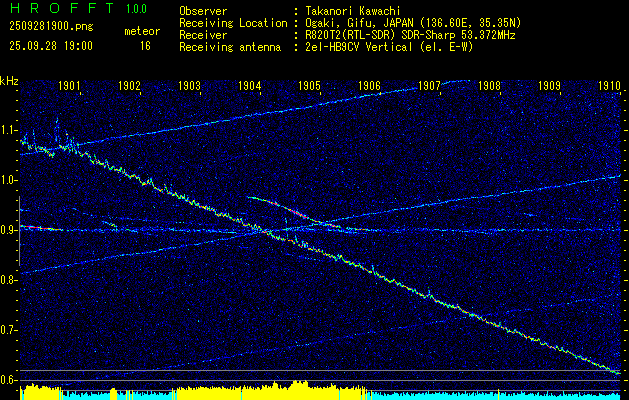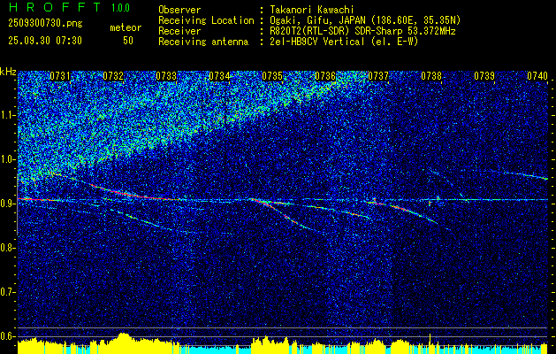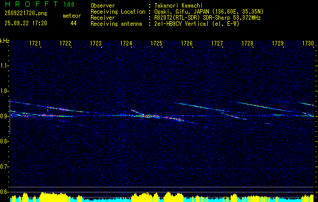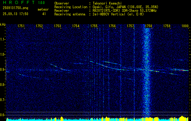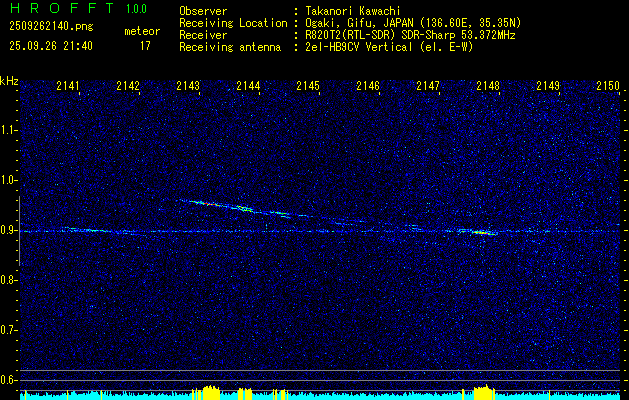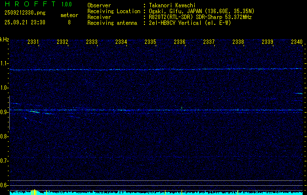 0.9kHz附近に発生している『点』または『塊』が流星によるエコーです.