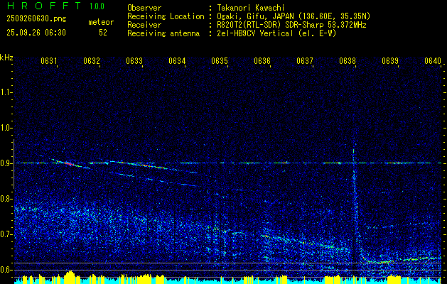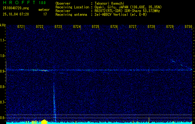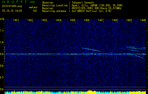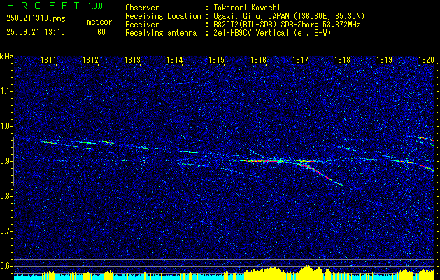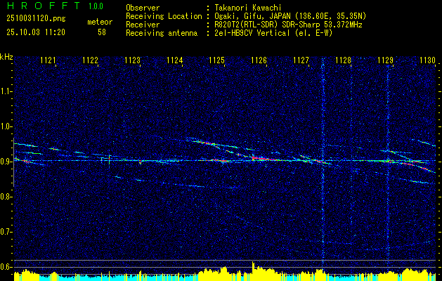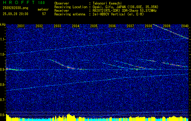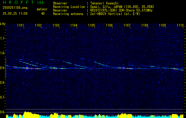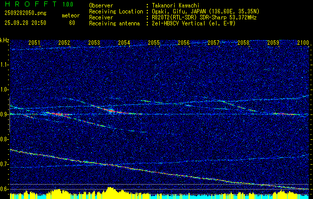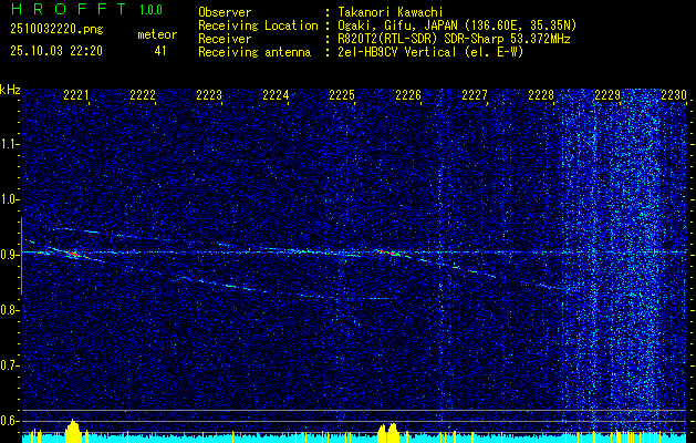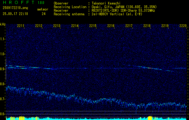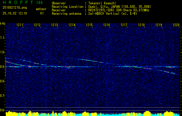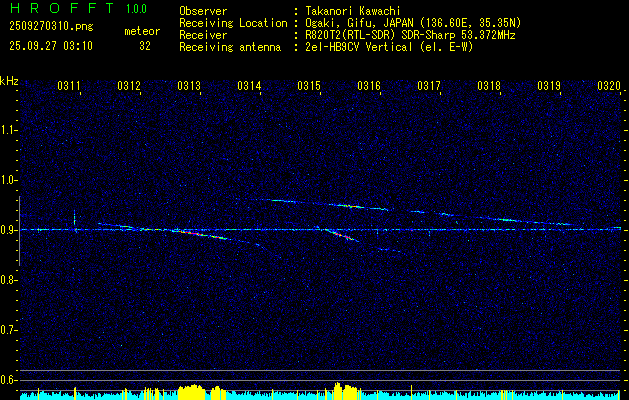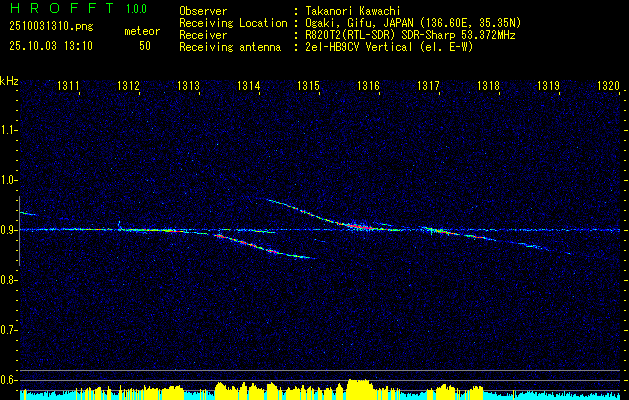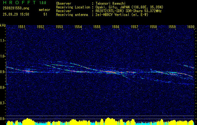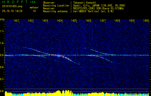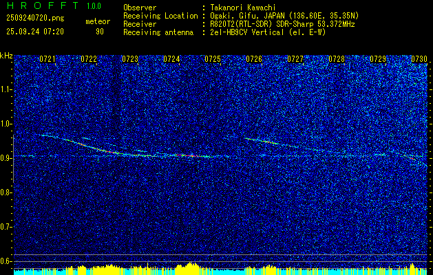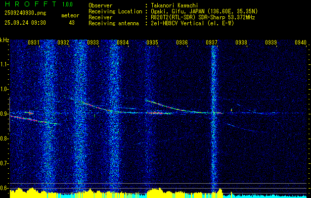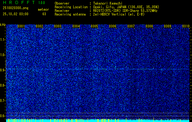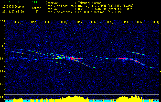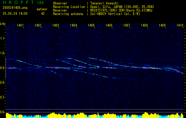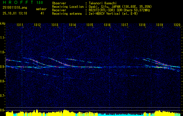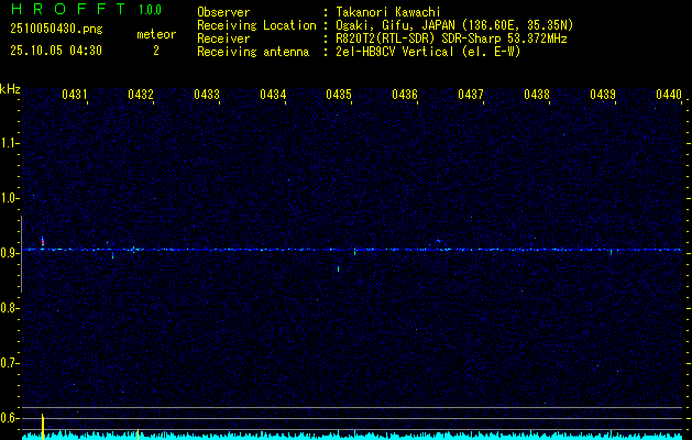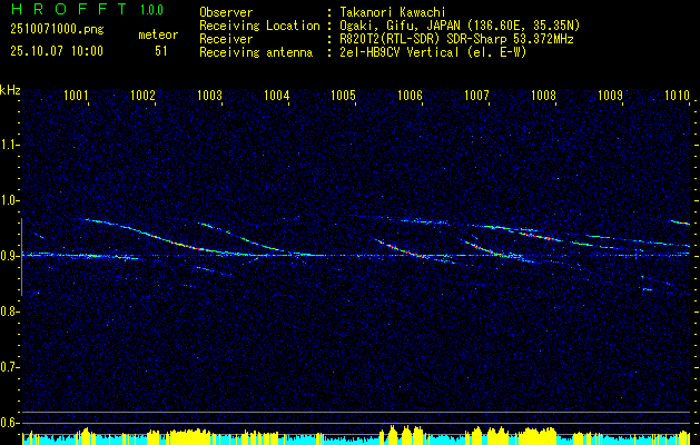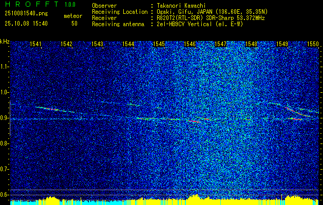 0.9kHz附近に発生している『点』または『塊』が流星によるエコーです.