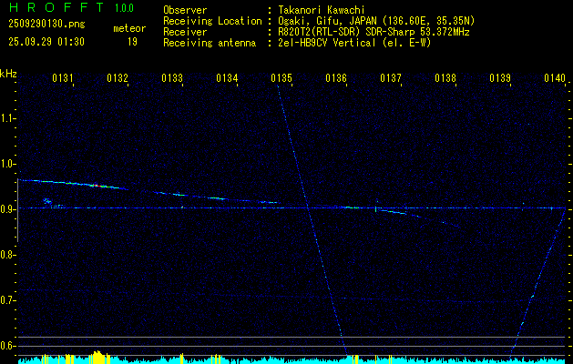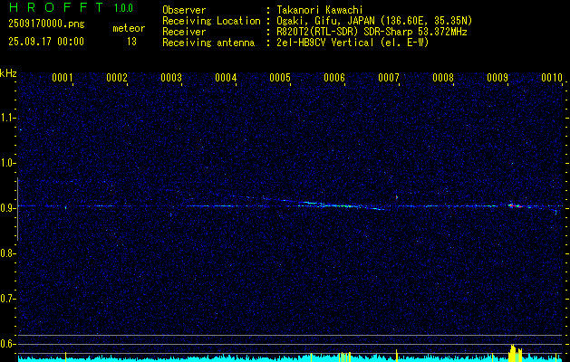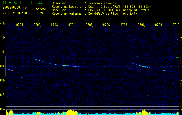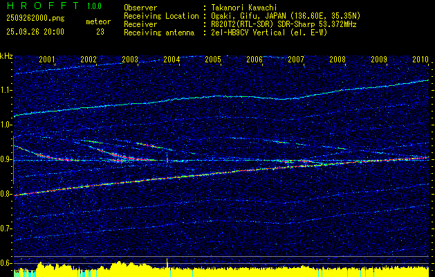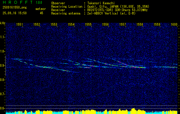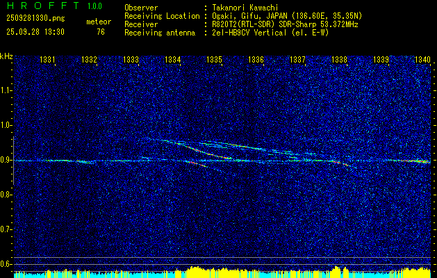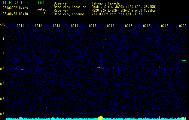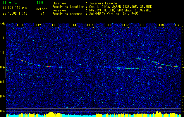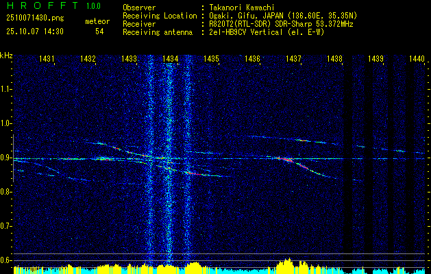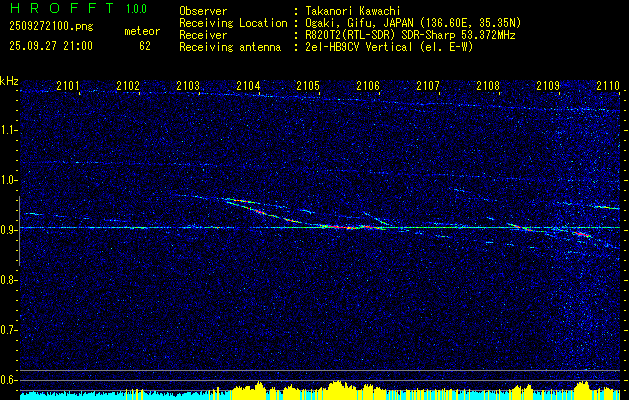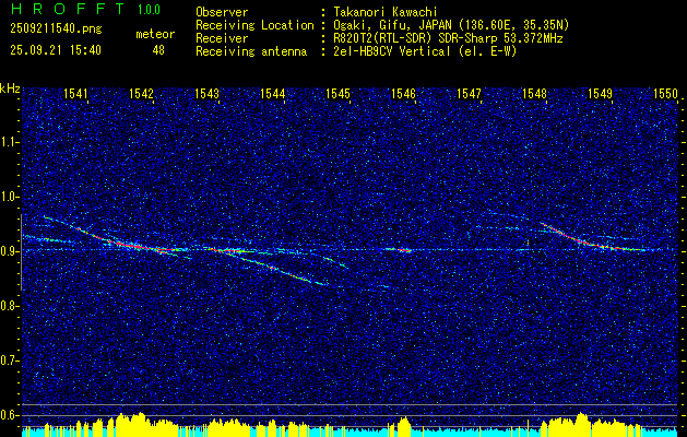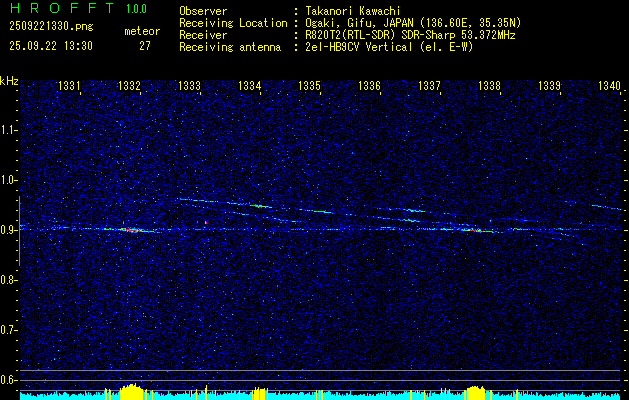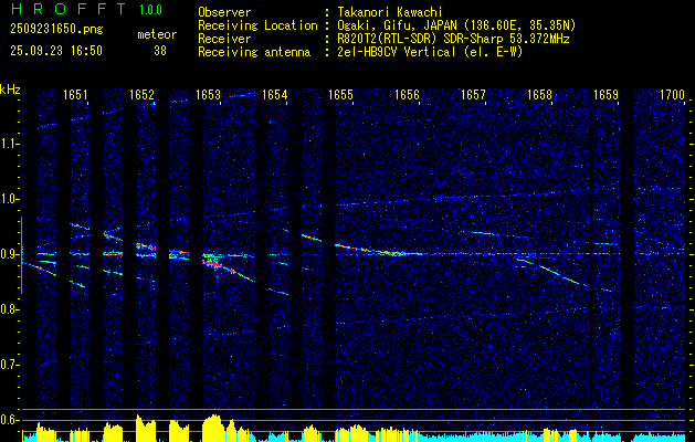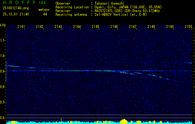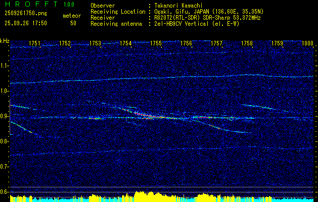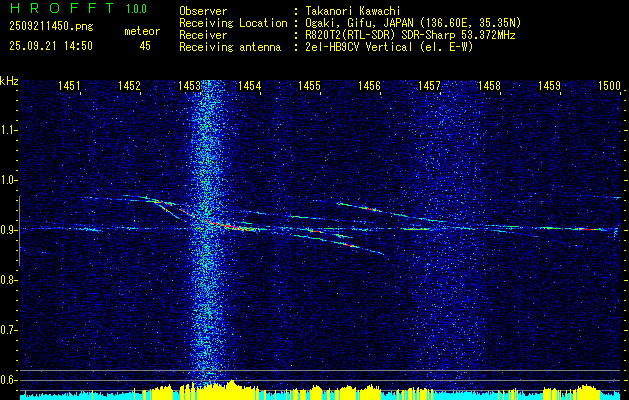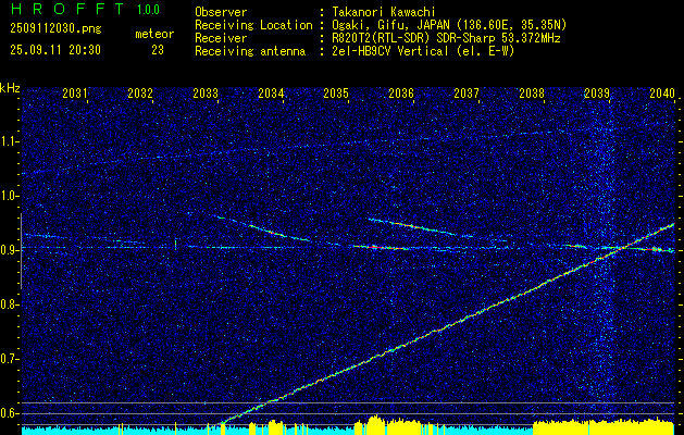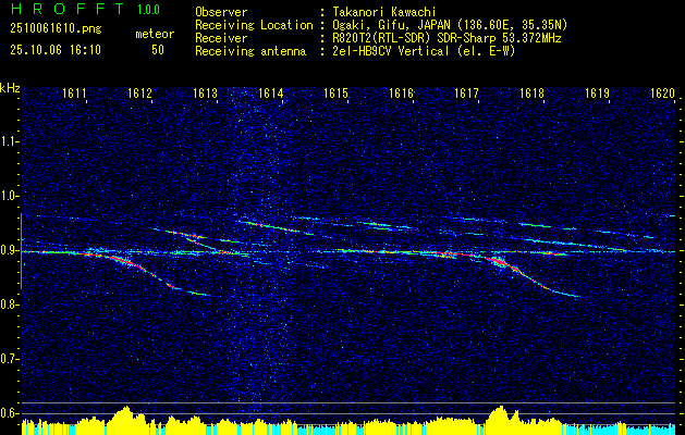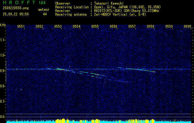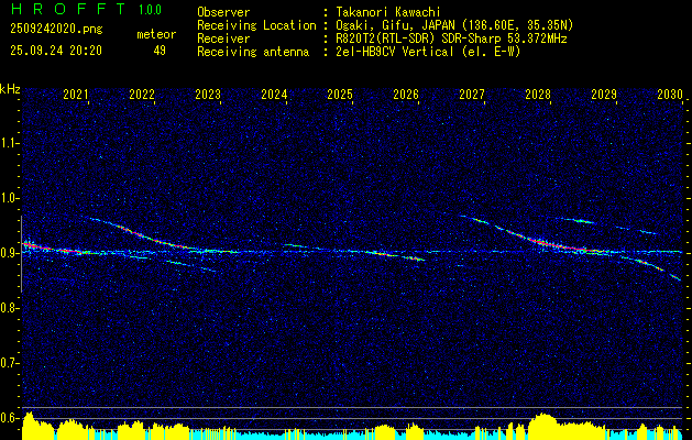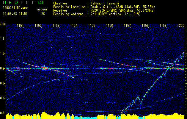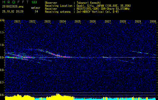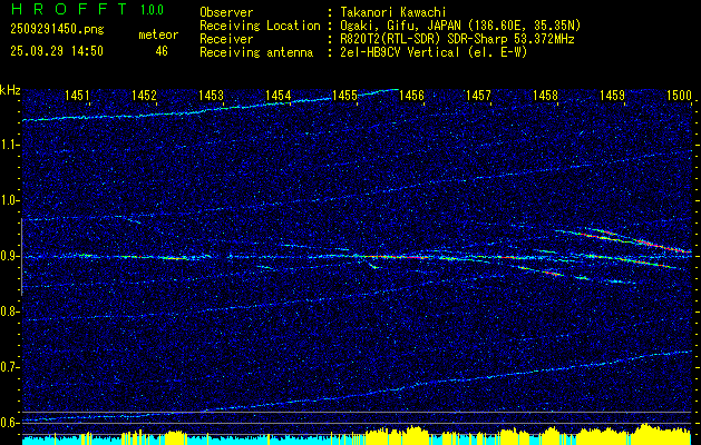 0.9kHz附近に発生している『点』または『塊』が流星によるエコーです.