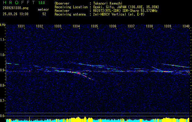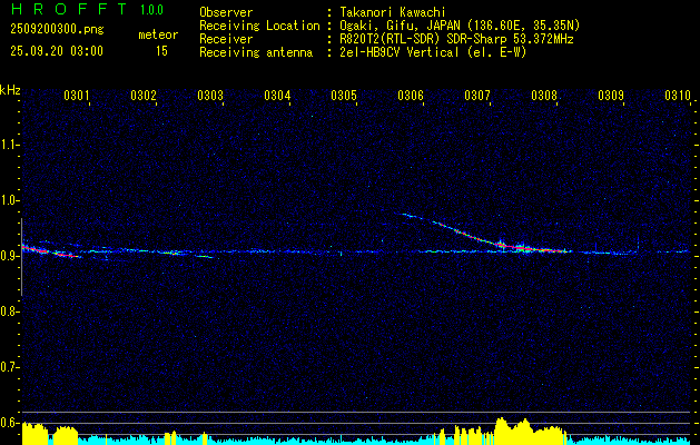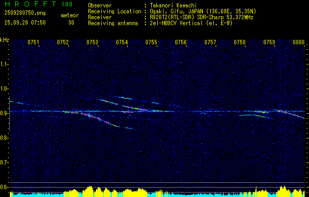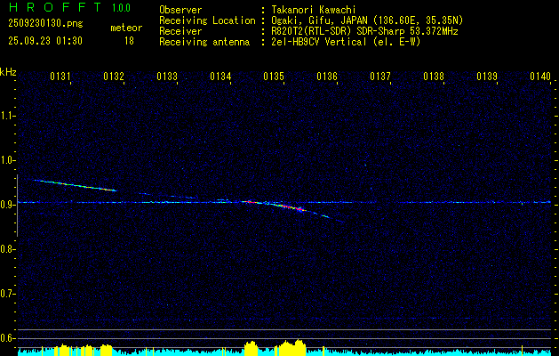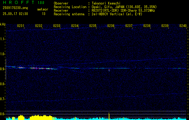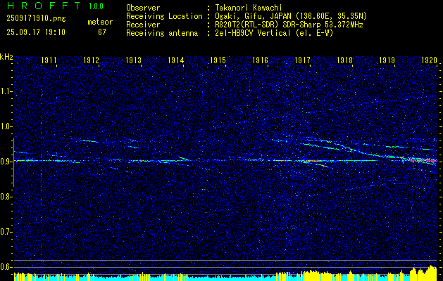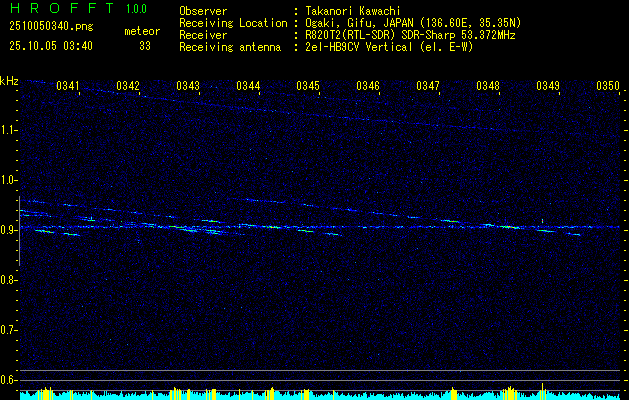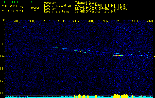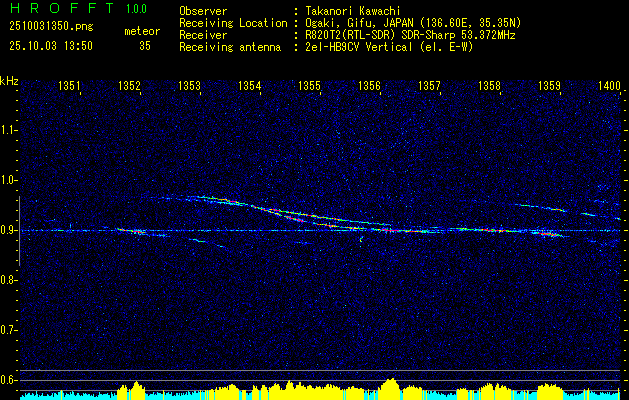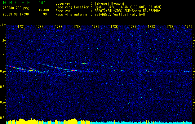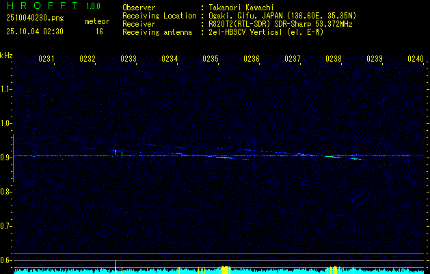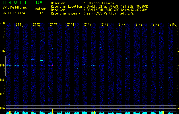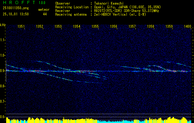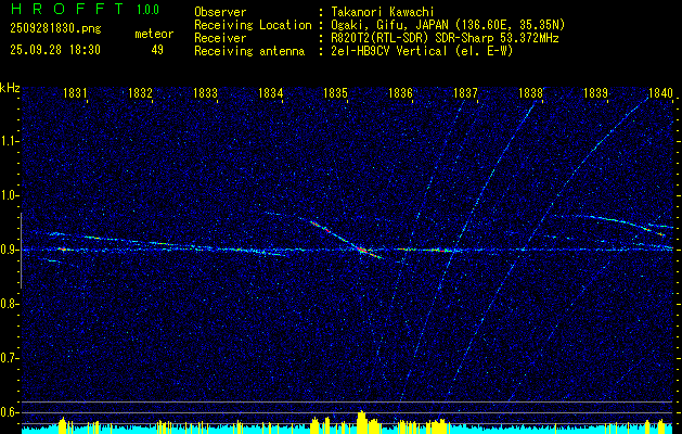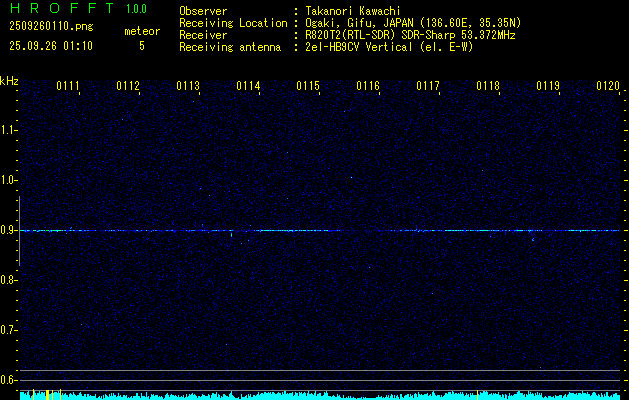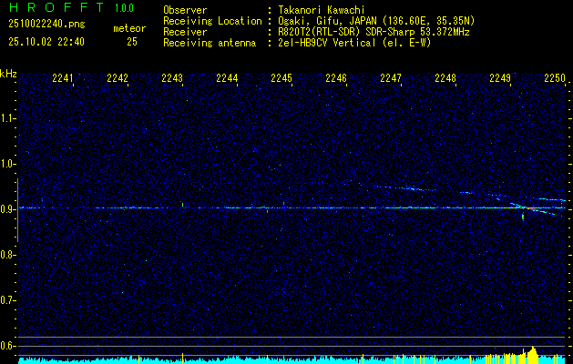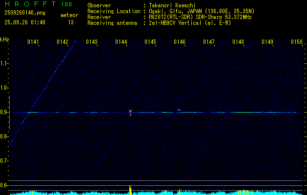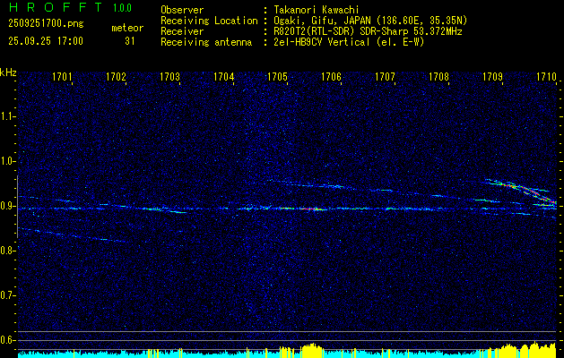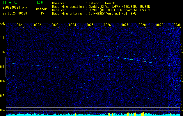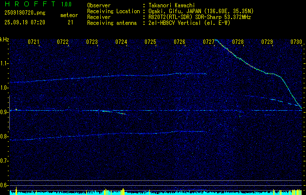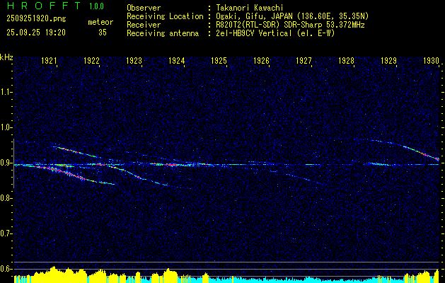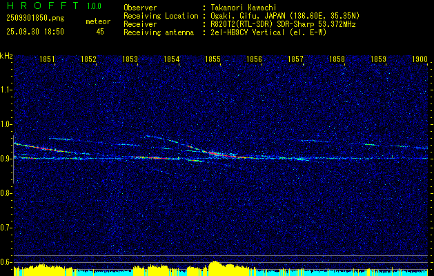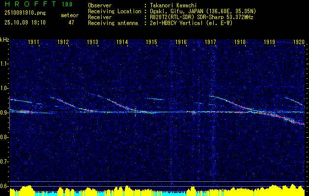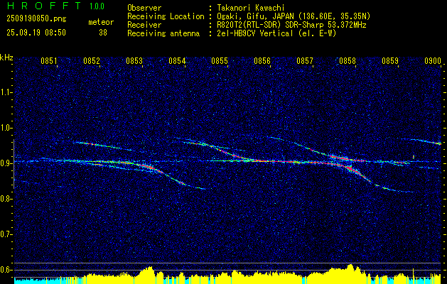 0.9kHz附近に発生している『点』または『塊』が流星によるエコーです.