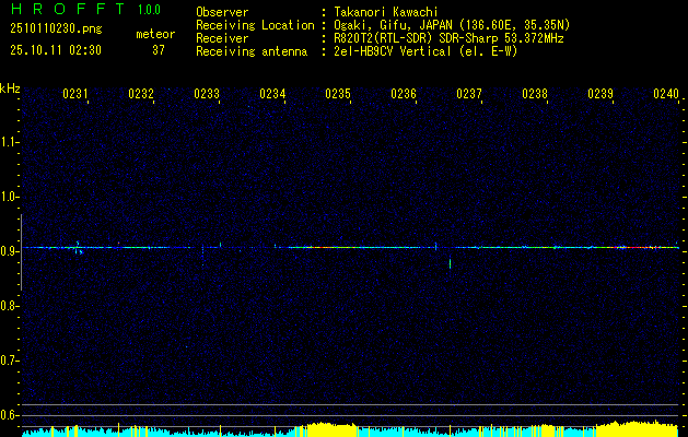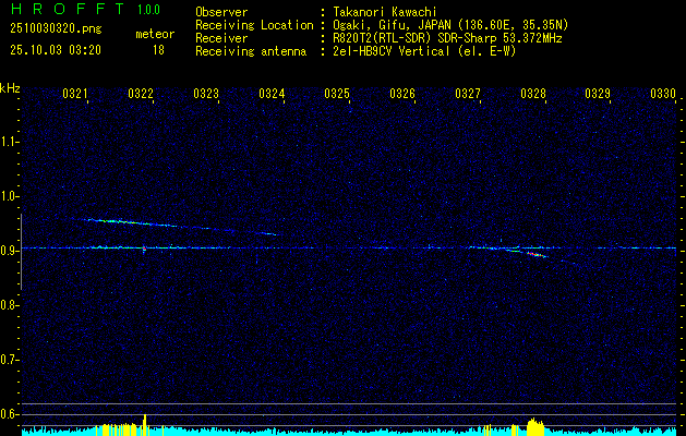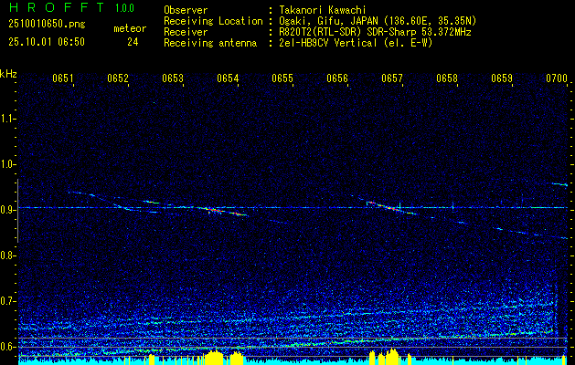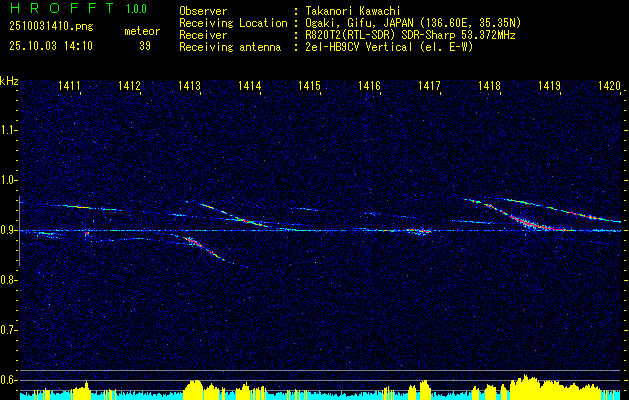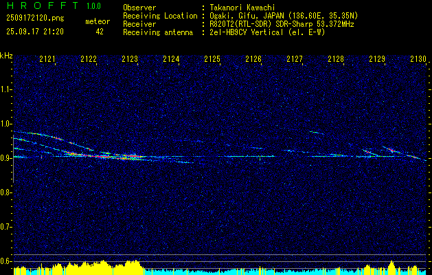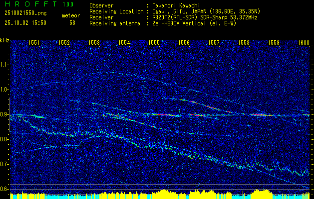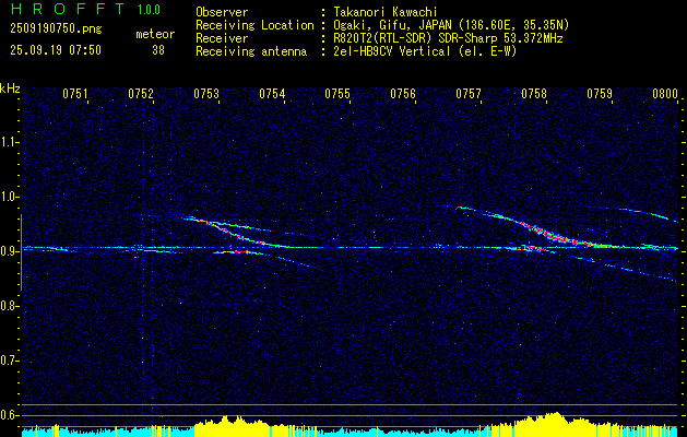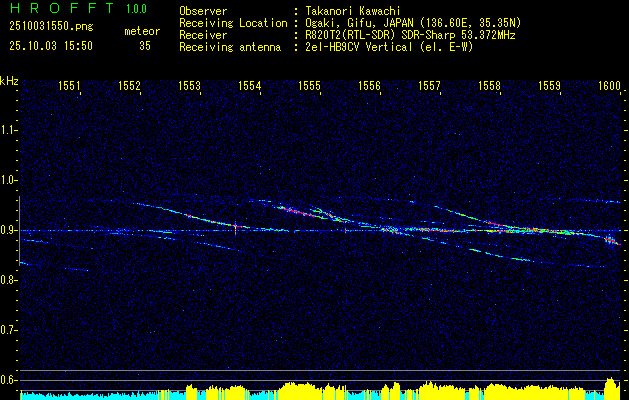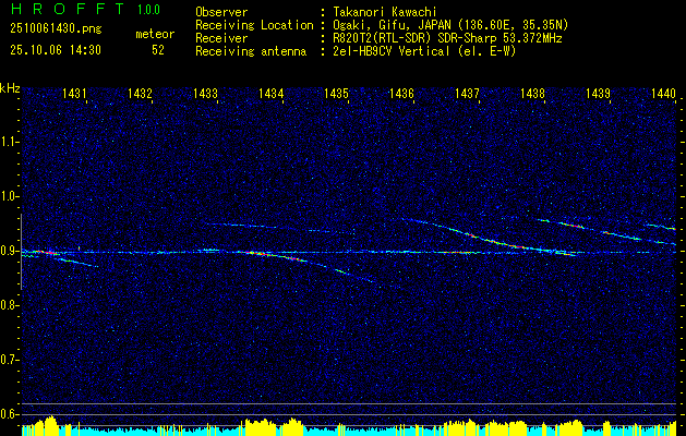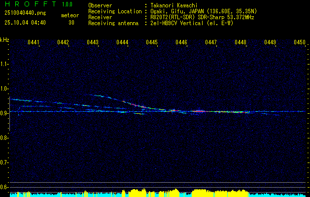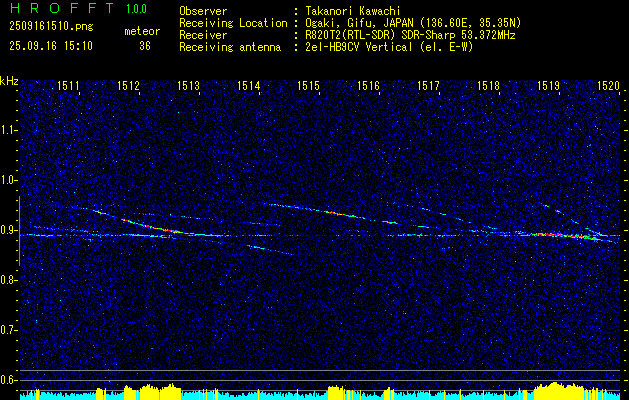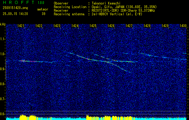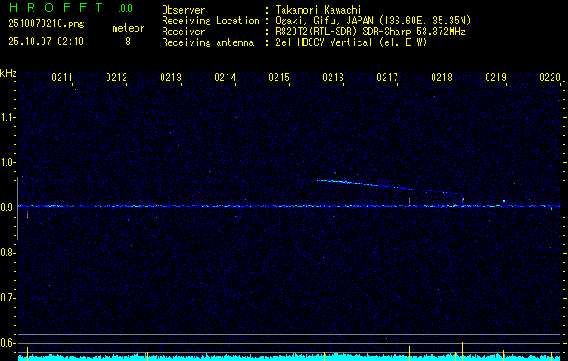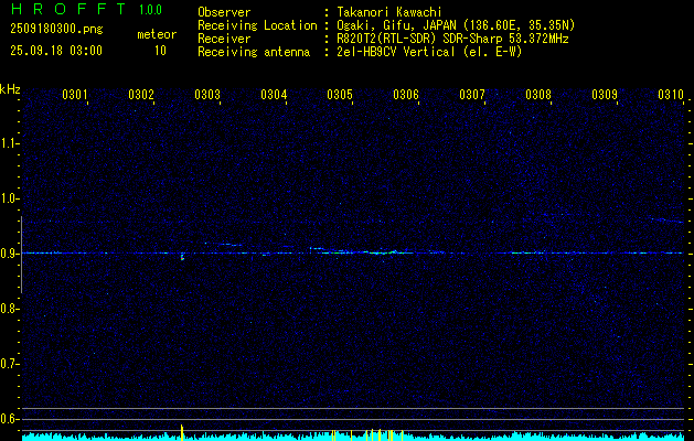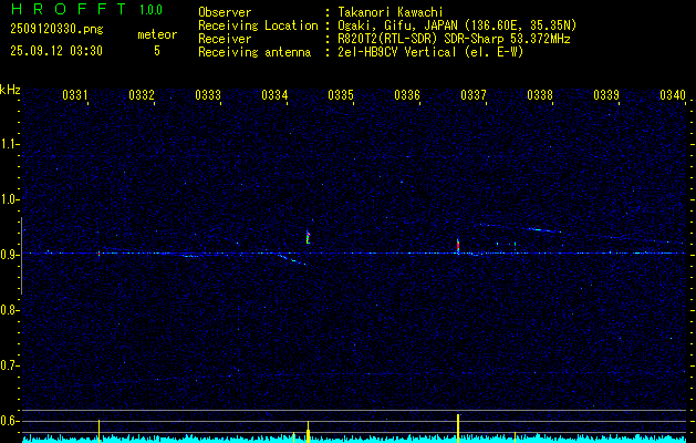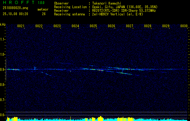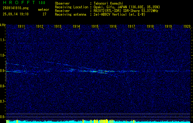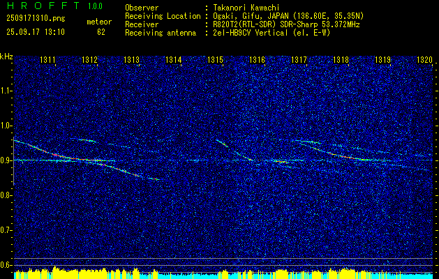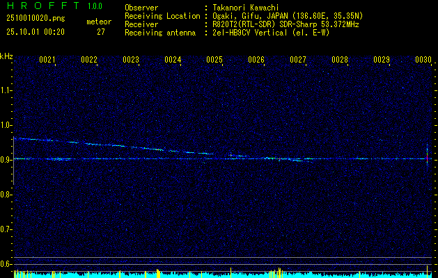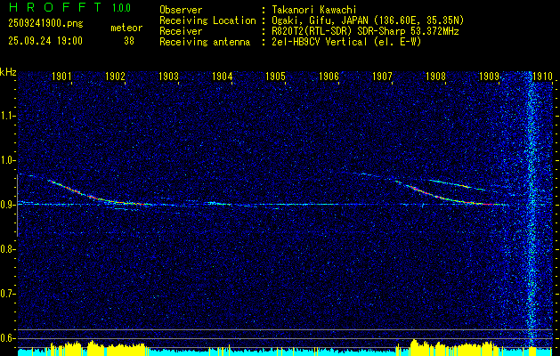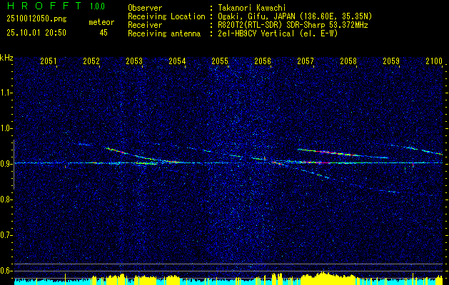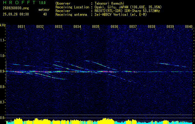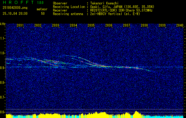 0.9kHz附近に発生している『点』または『塊』が流星によるエコーです.