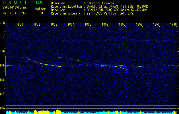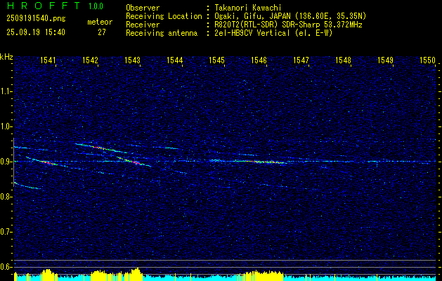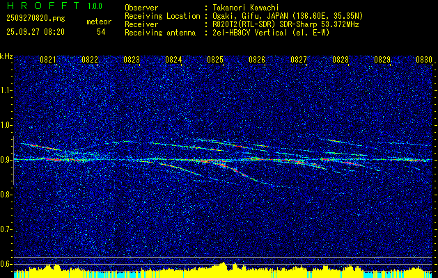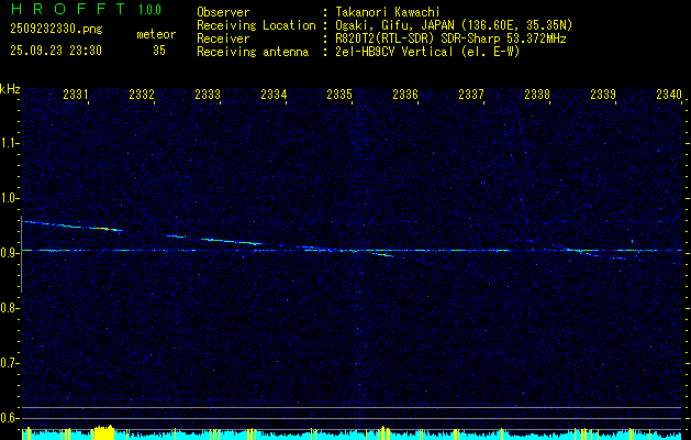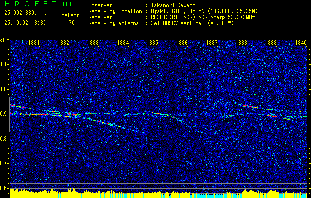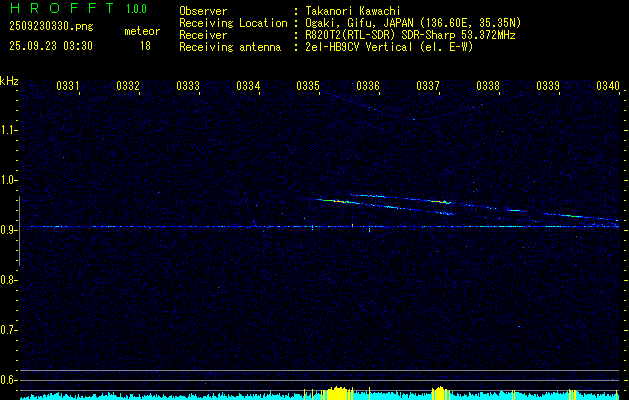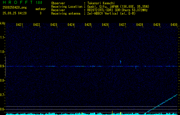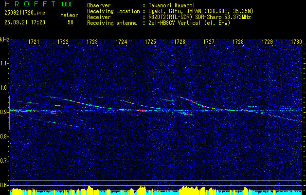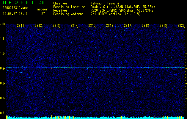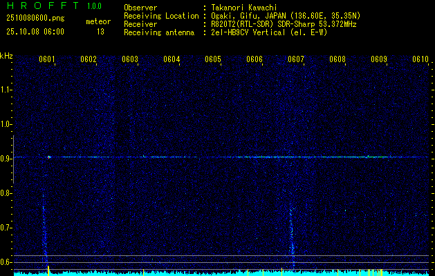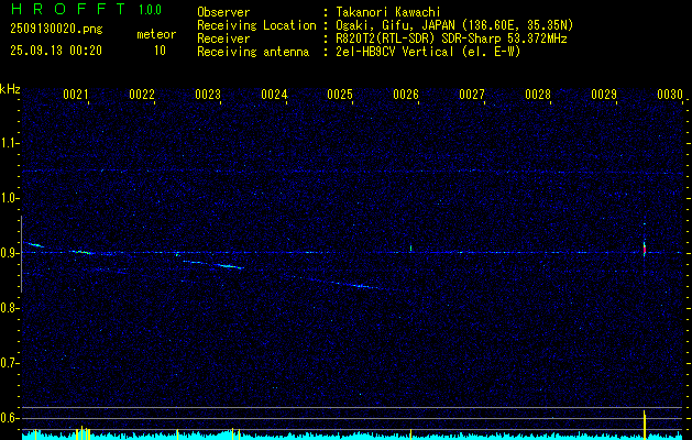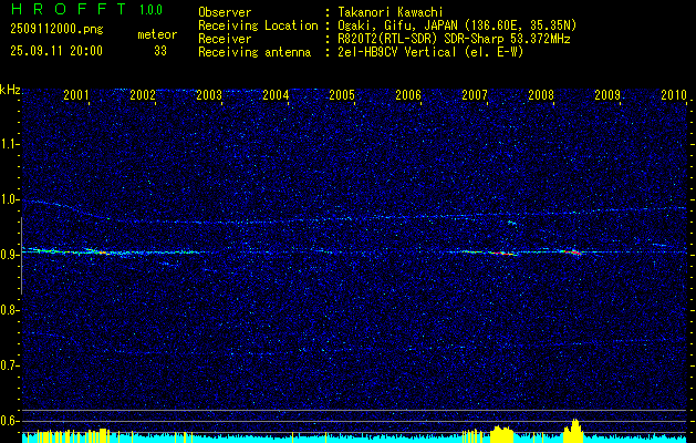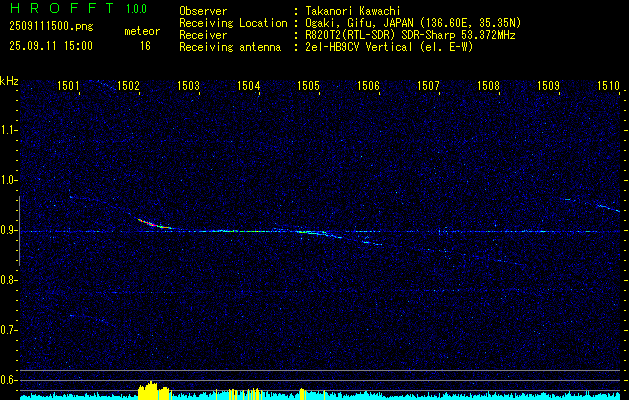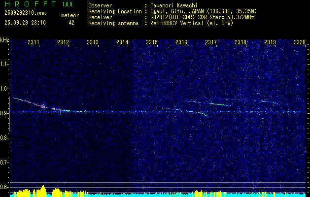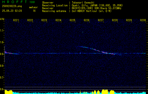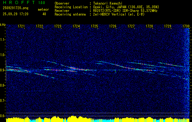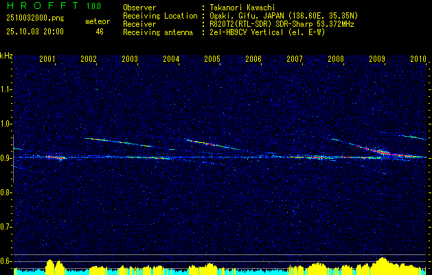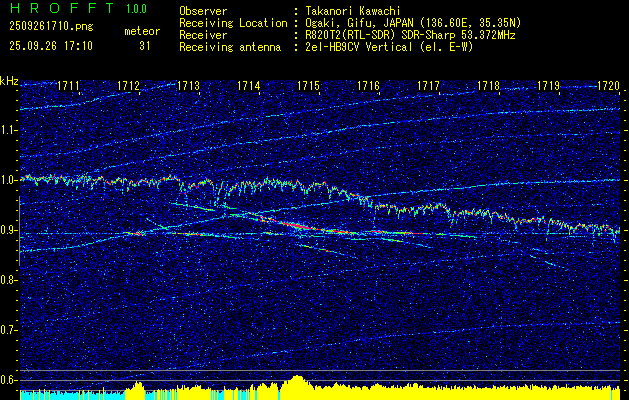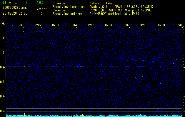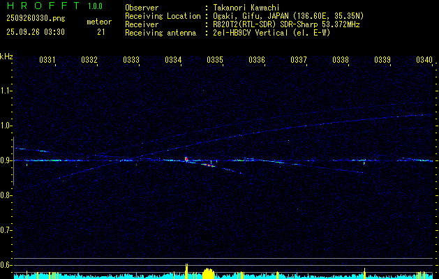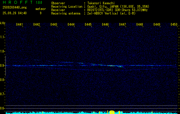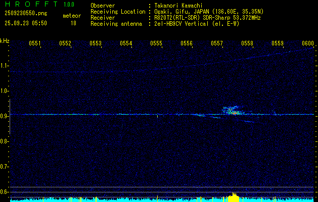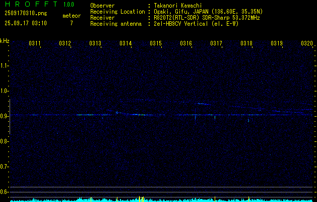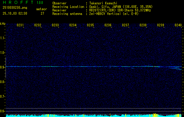 0.9kHz附近に発生している『点』または『塊』が流星によるエコーです.