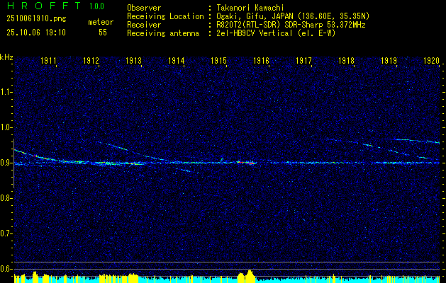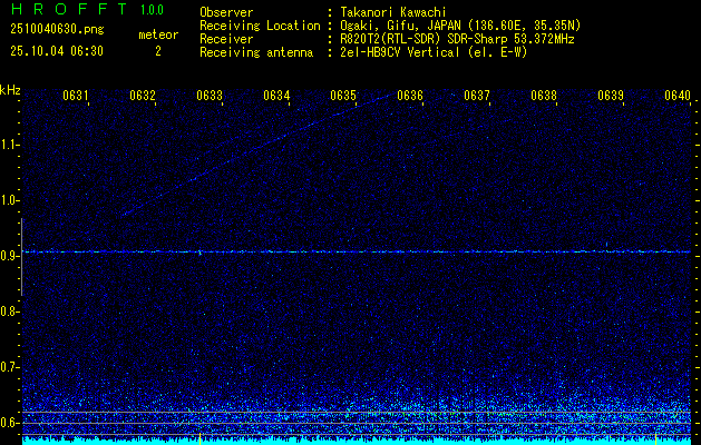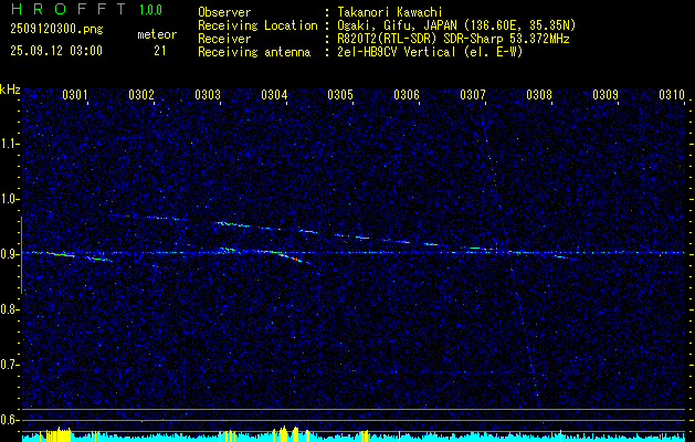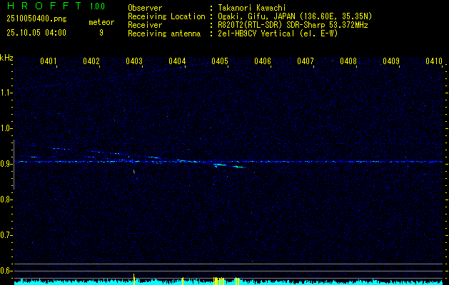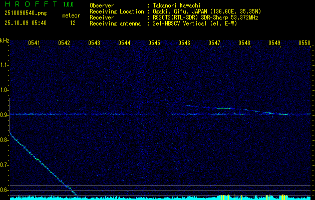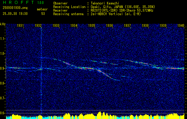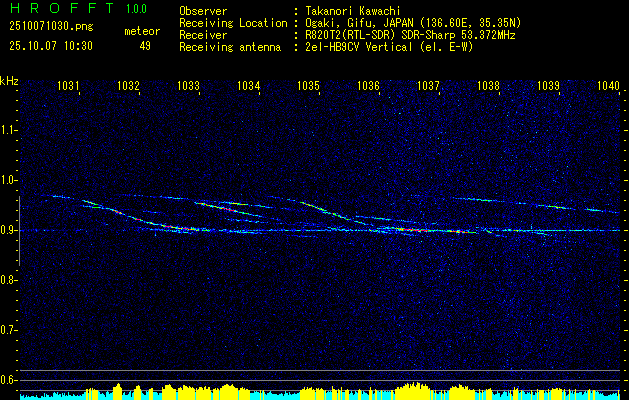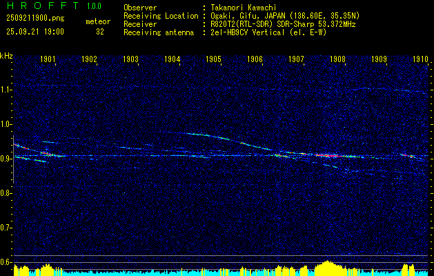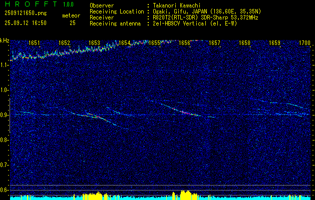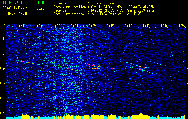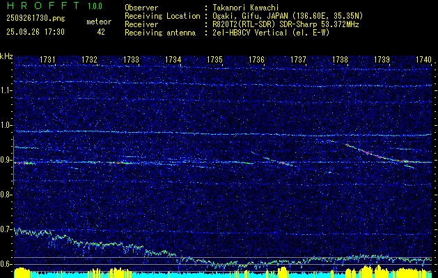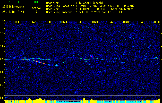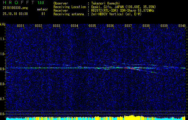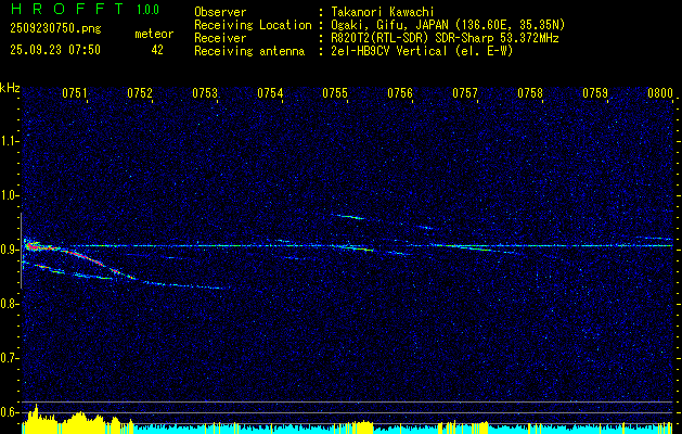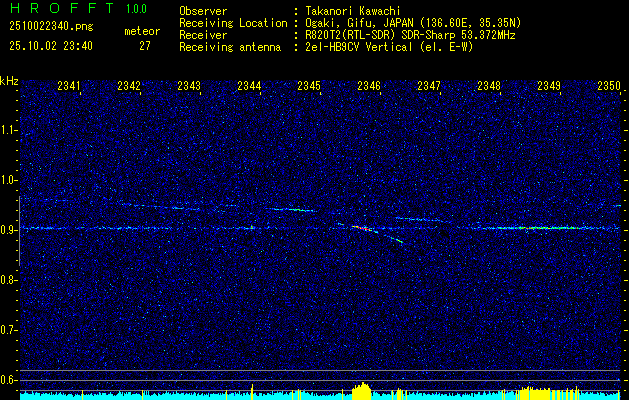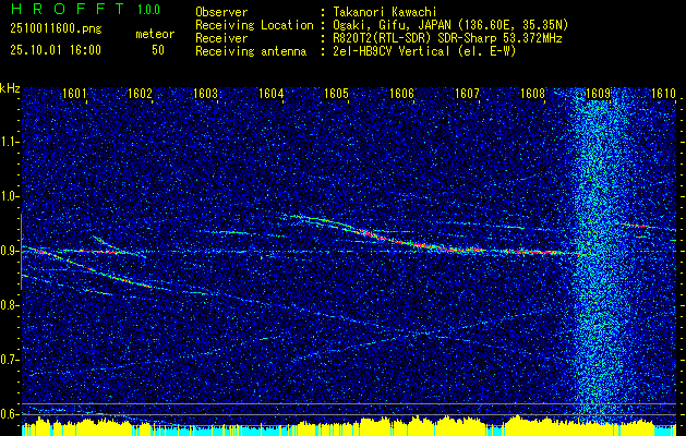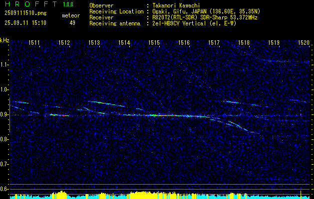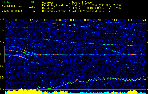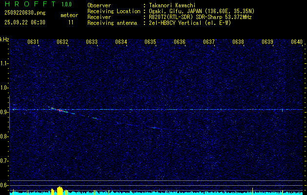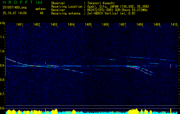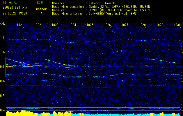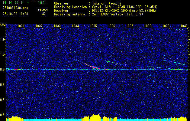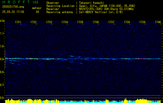 0.9kHz附近に発生している『点』または『塊』が流星によるエコーです.