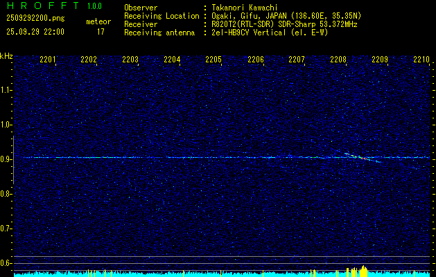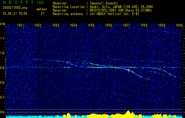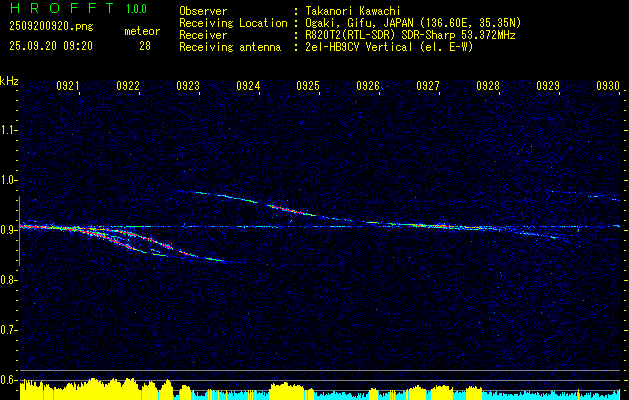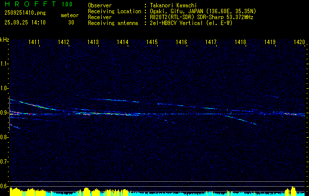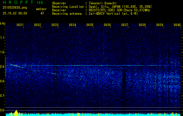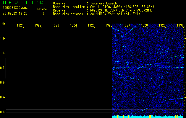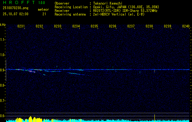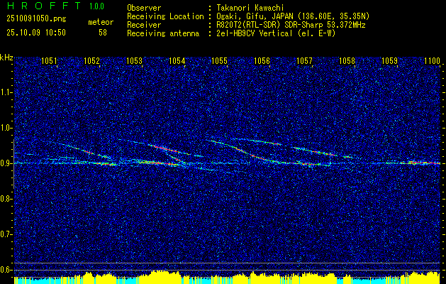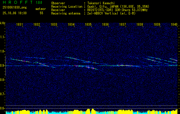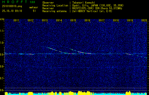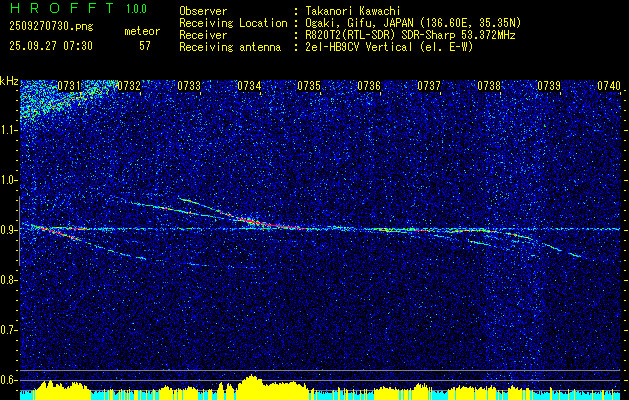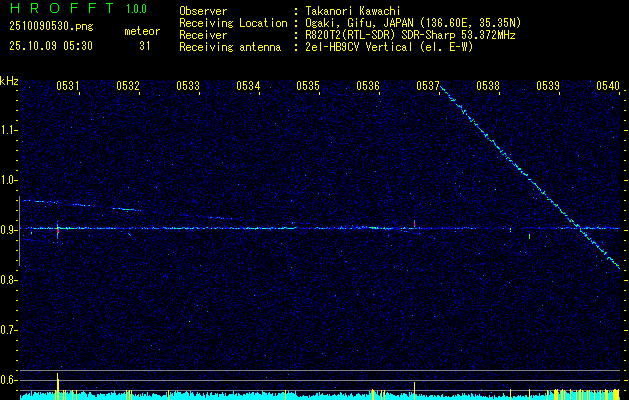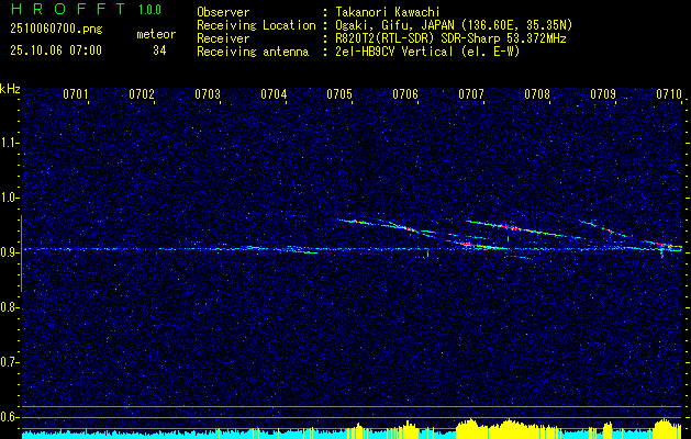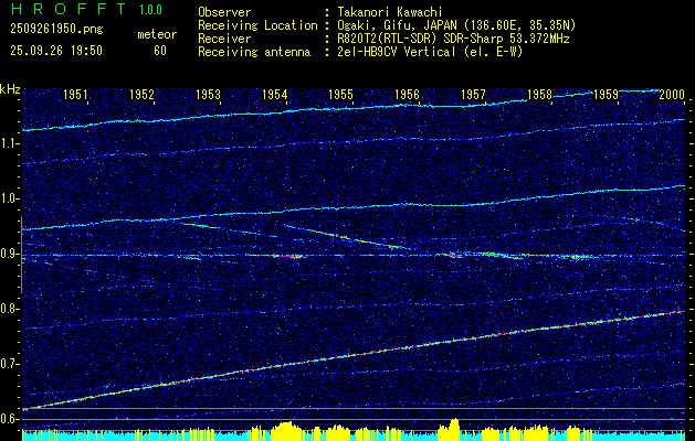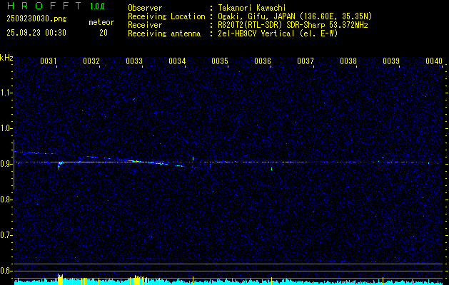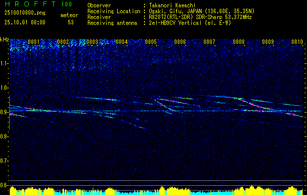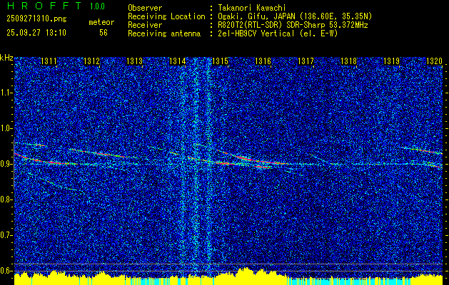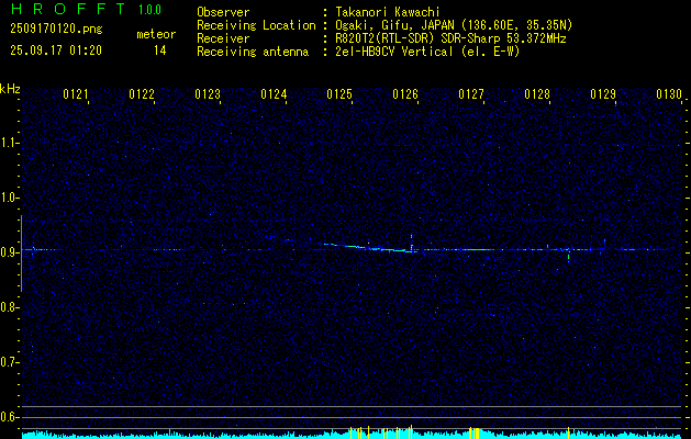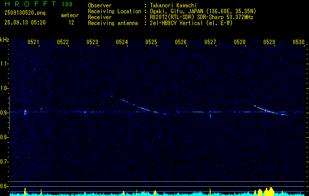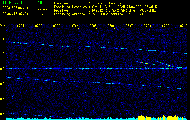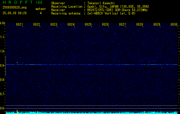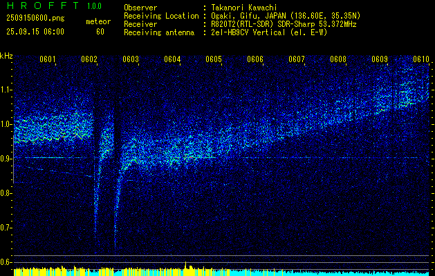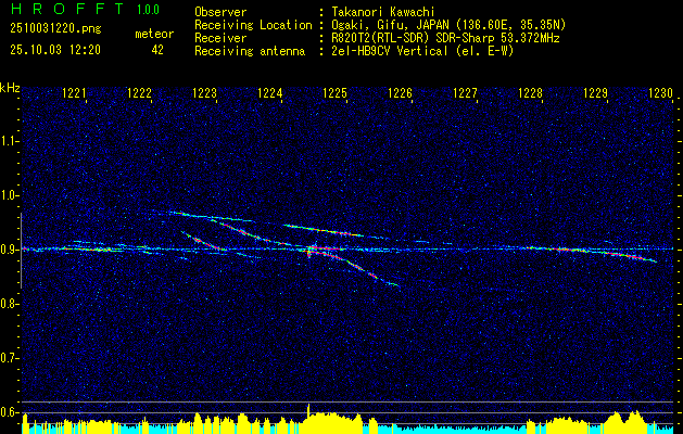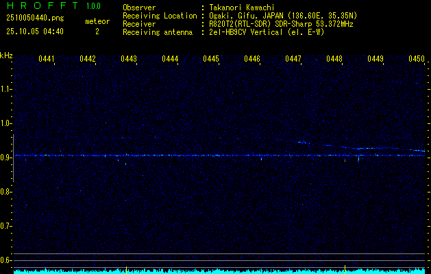 0.9kHz附近に発生している『点』または『塊』が流星によるエコーです.