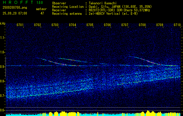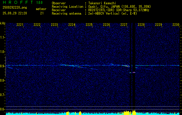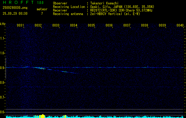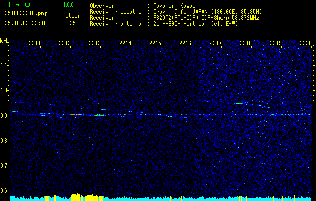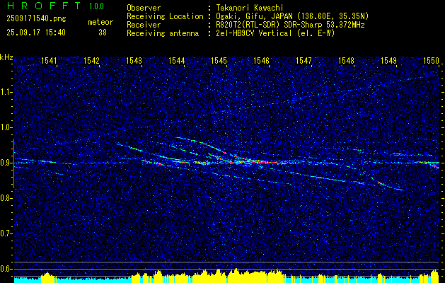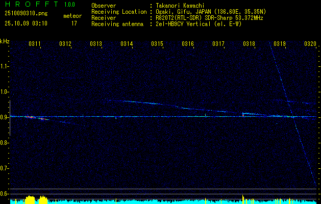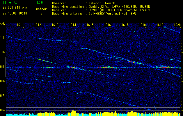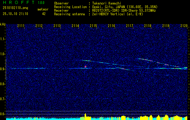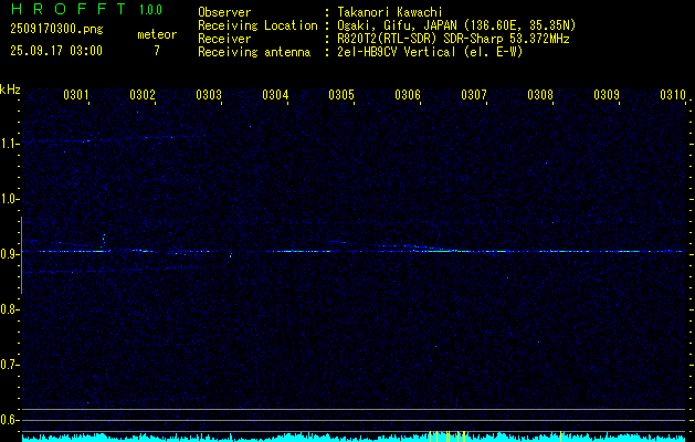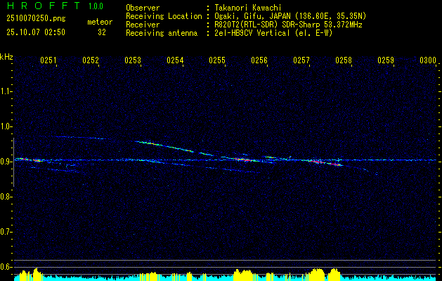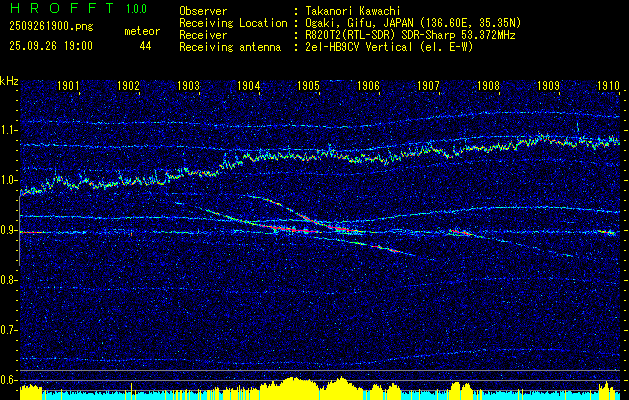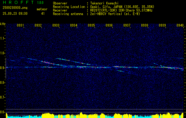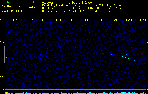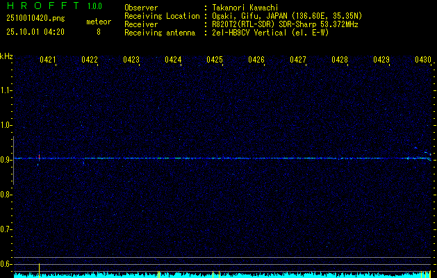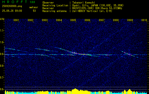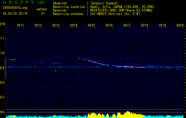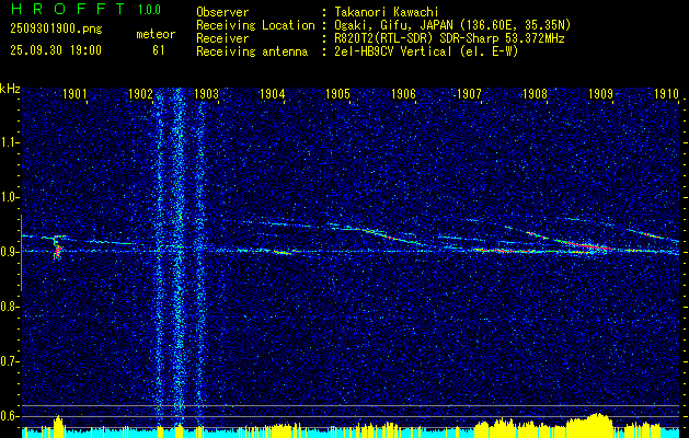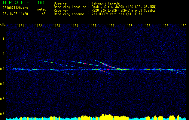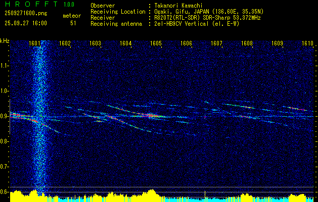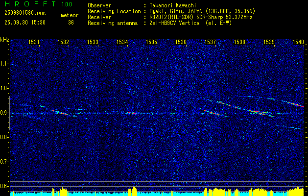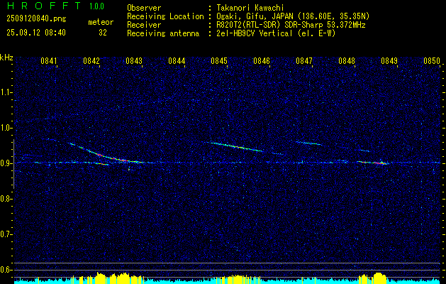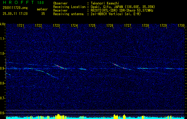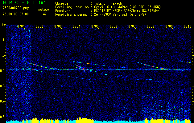 0.9kHz附近に発生している『点』または『塊』が流星によるエコーです.