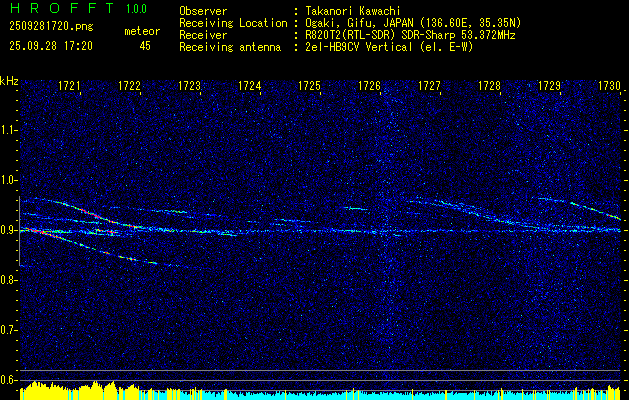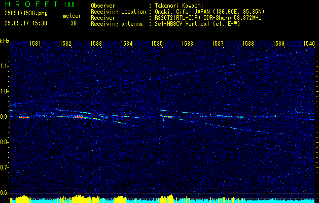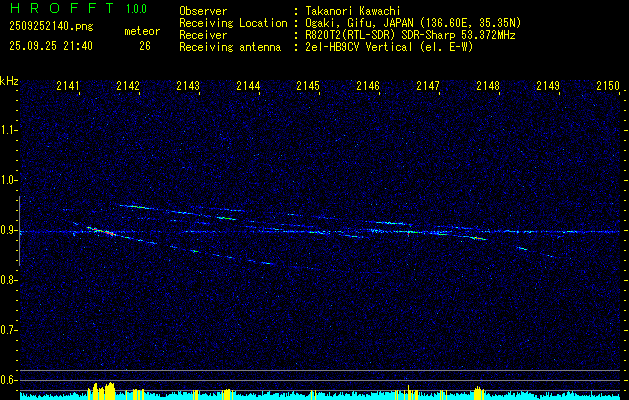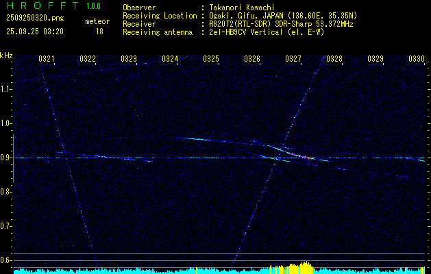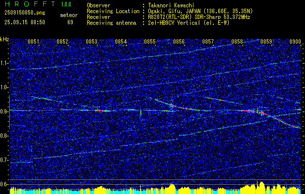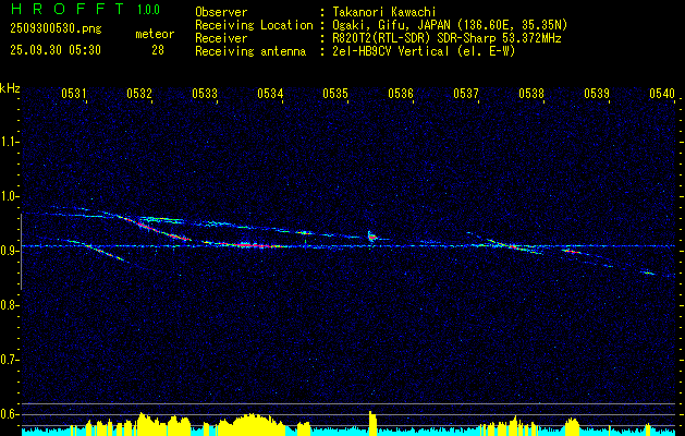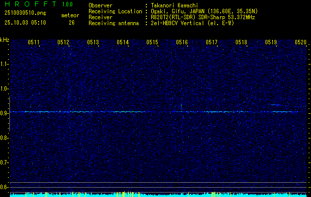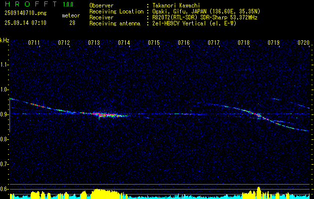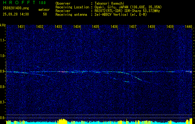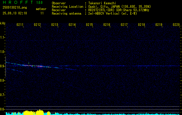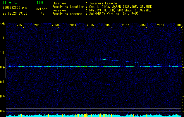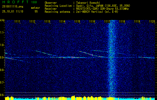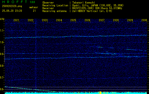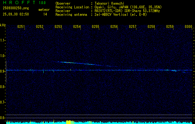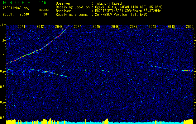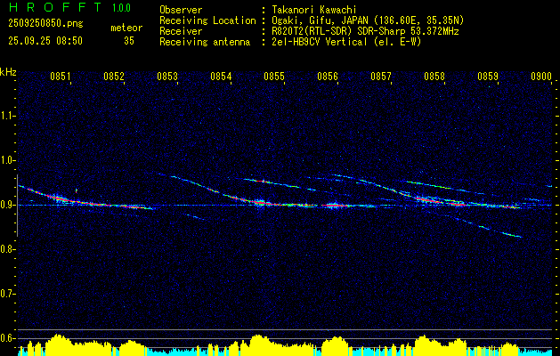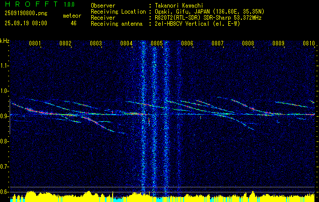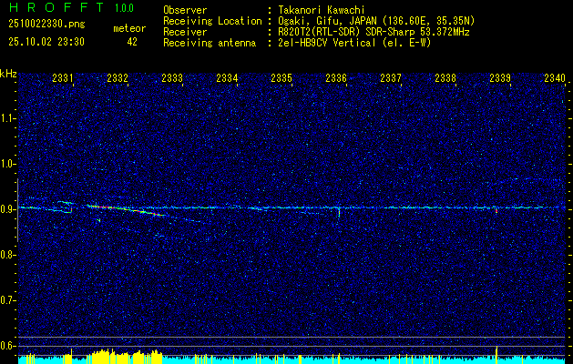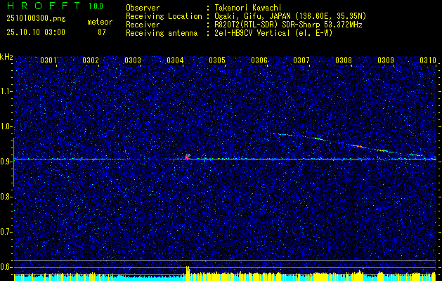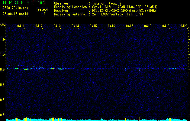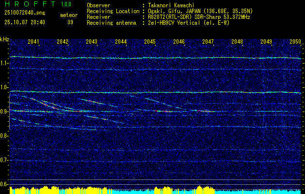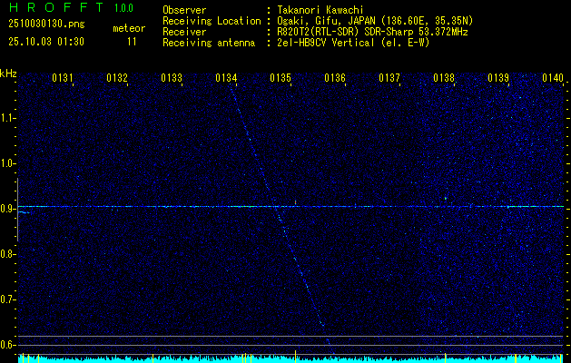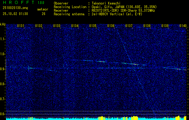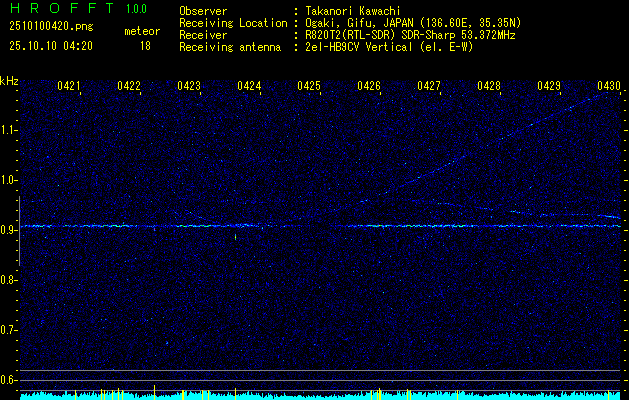 0.9kHz附近に発生している『点』または『塊』が流星によるエコーです.