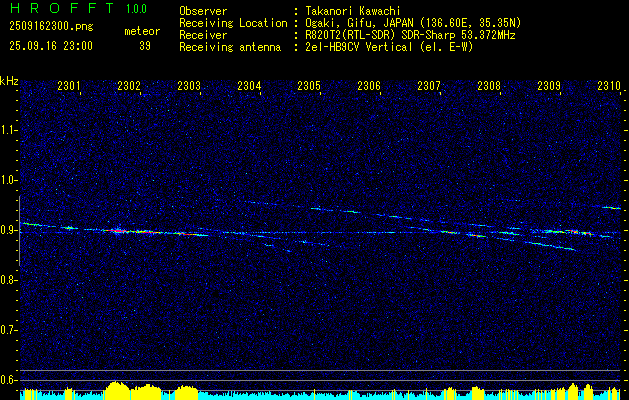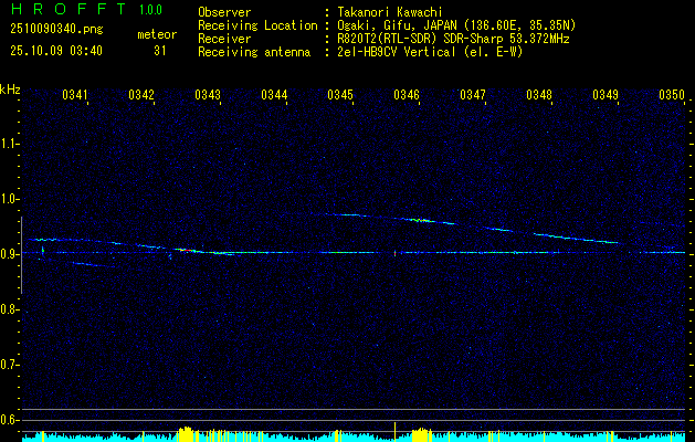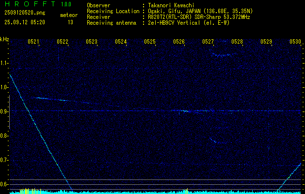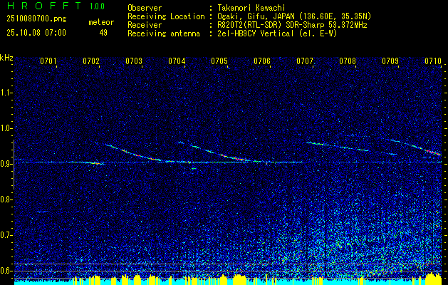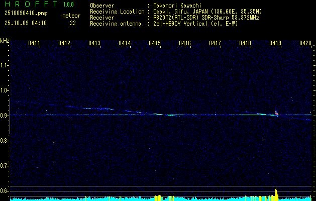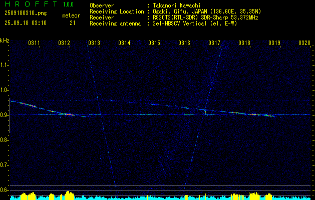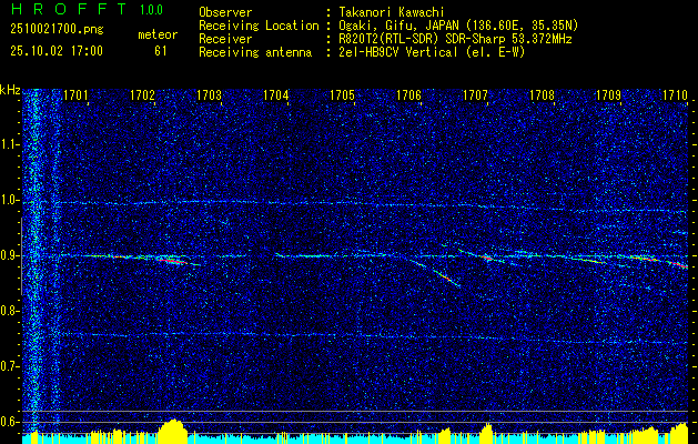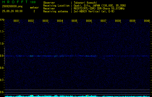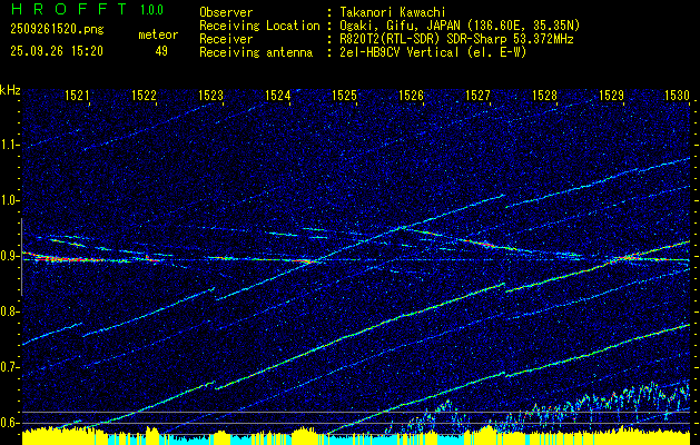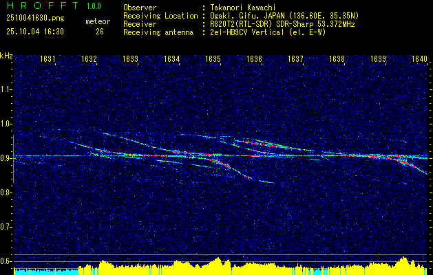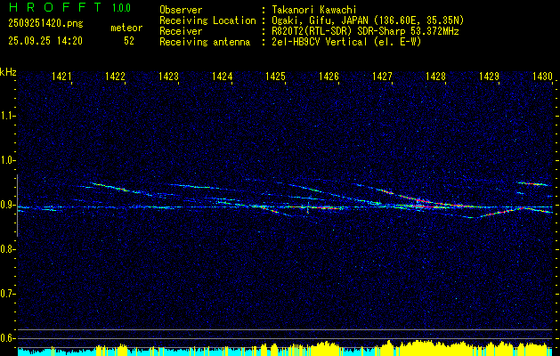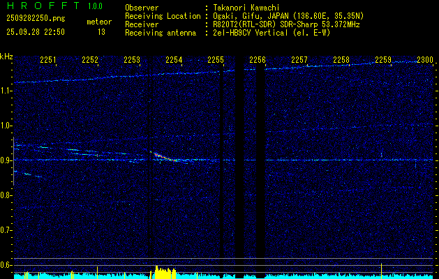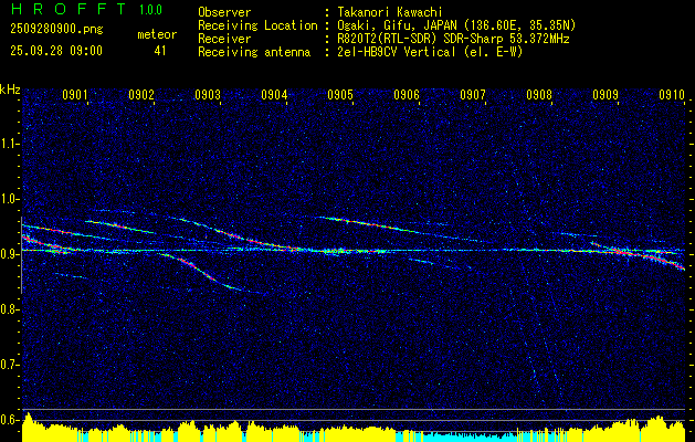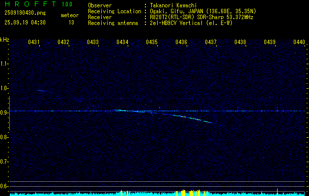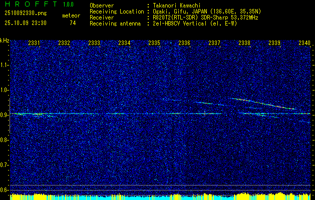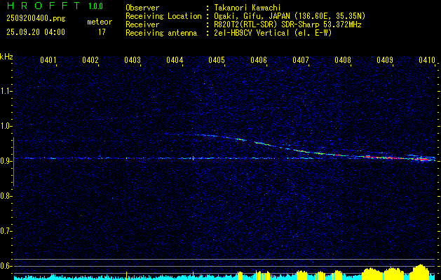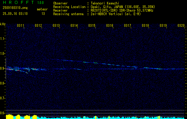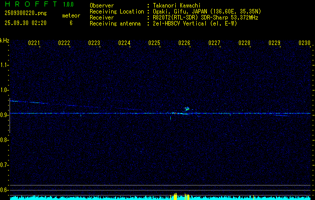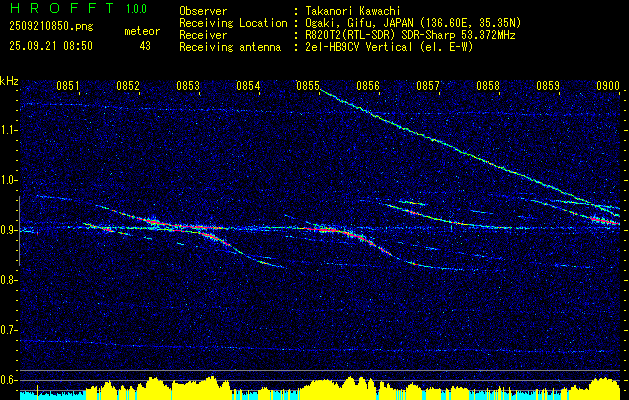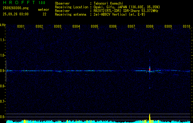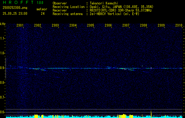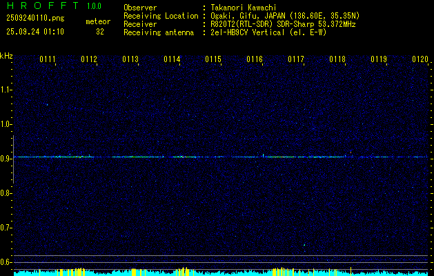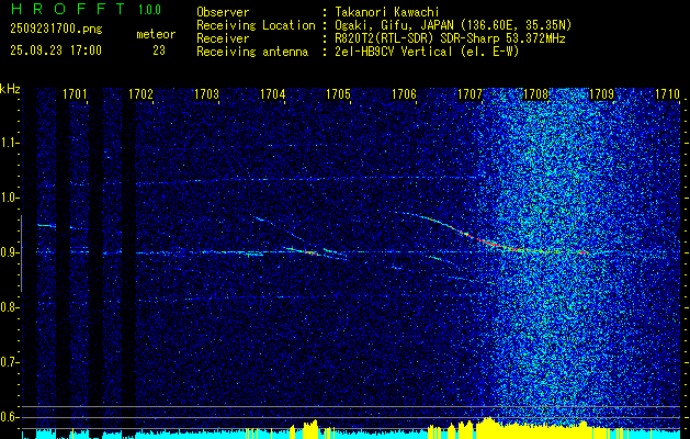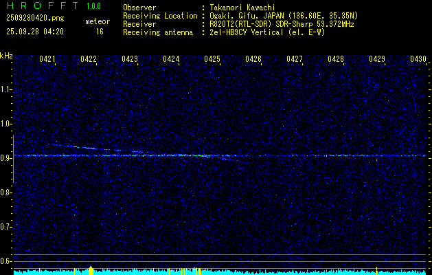 0.9kHz附近に発生している『点』または『塊』が流星によるエコーです.