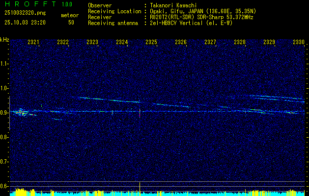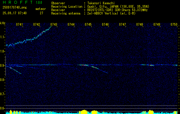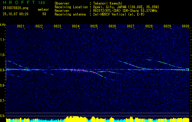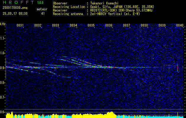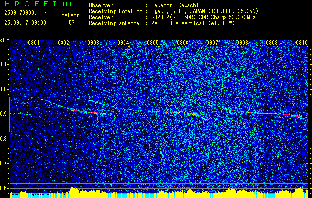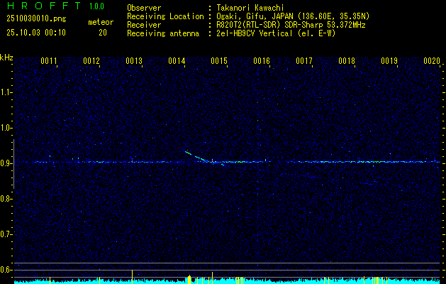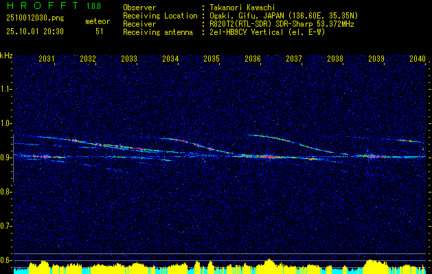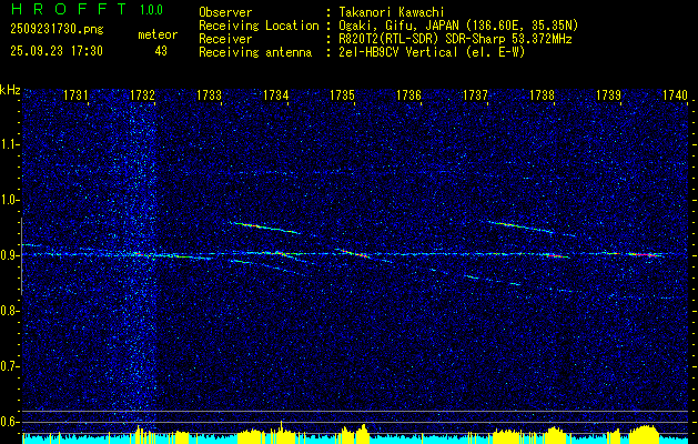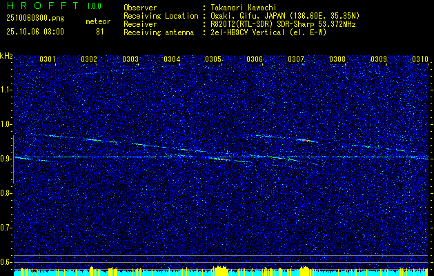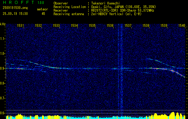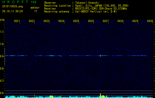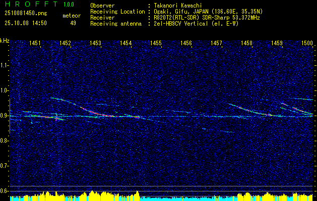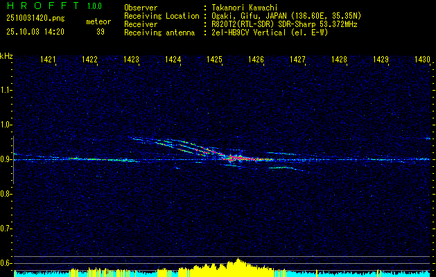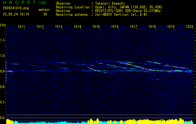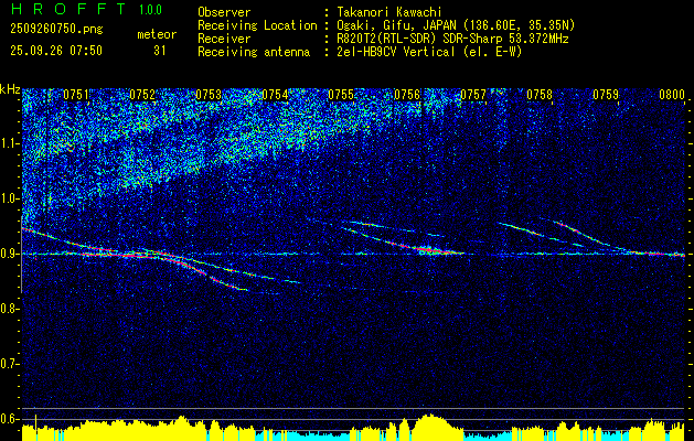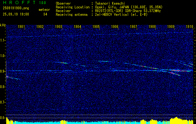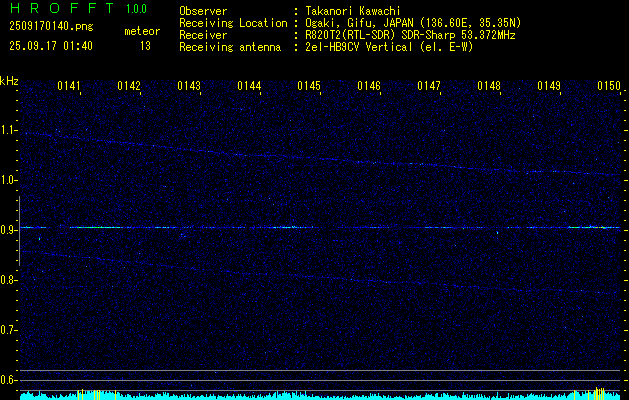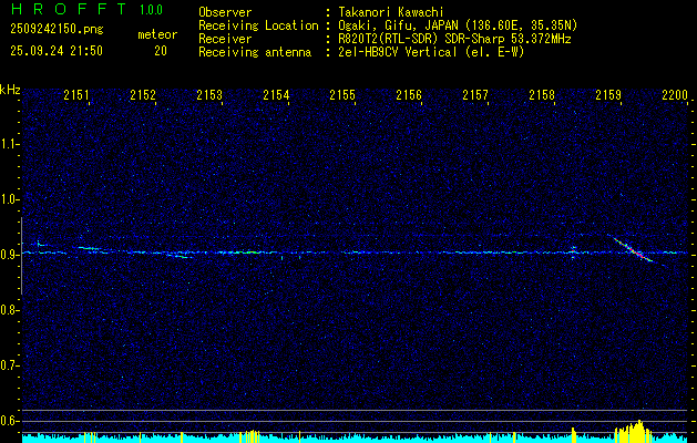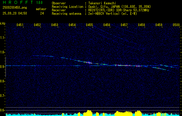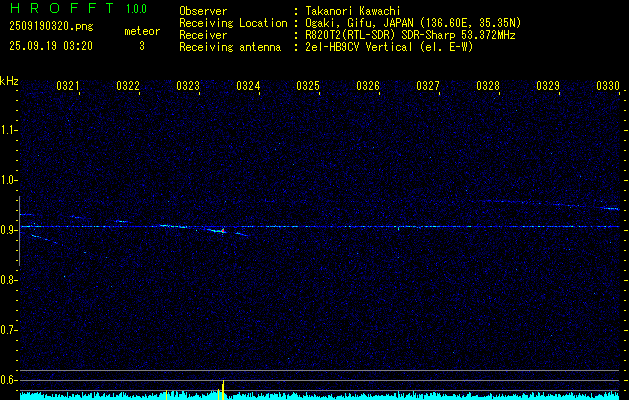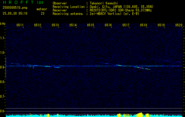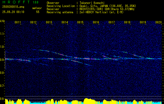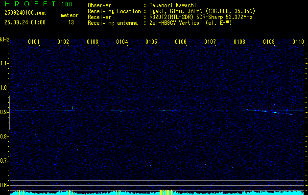 0.9kHz附近に発生している『点』または『塊』が流星によるエコーです.
