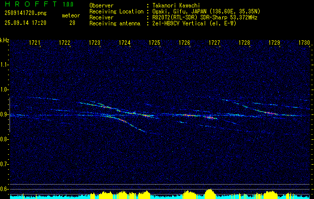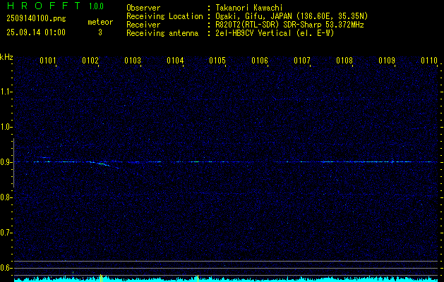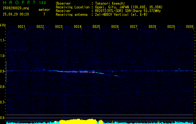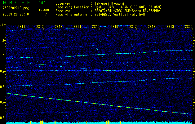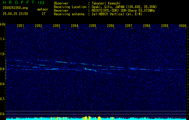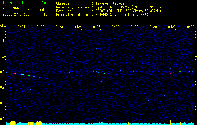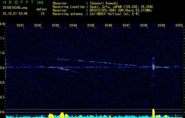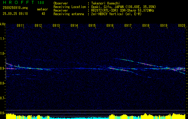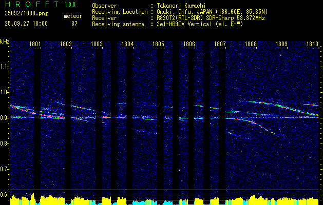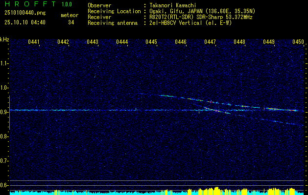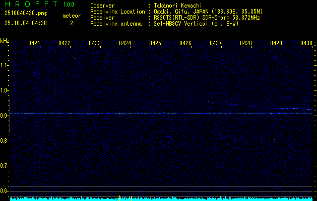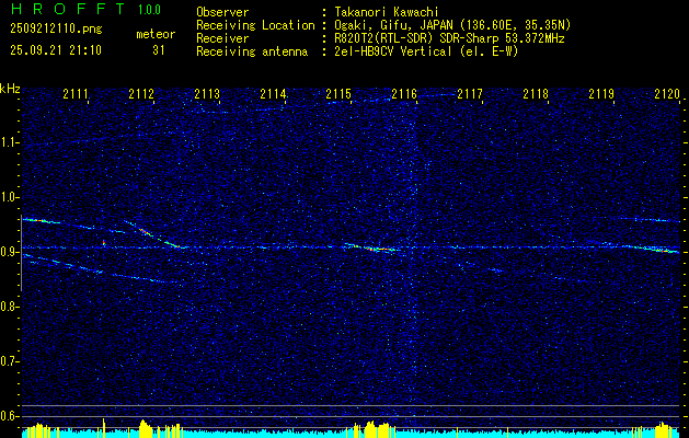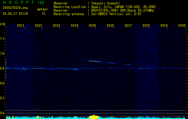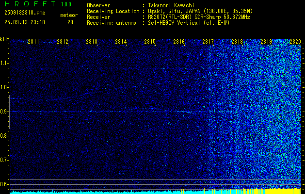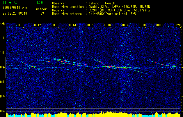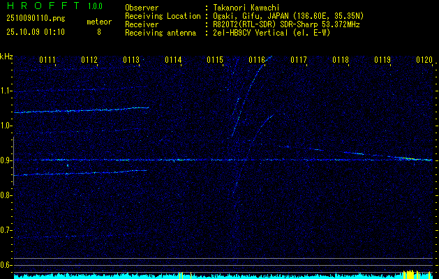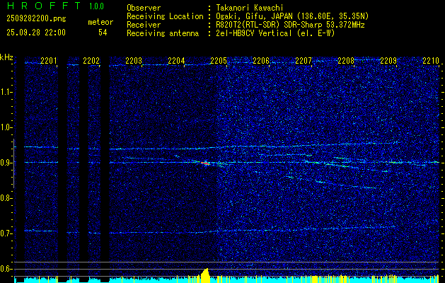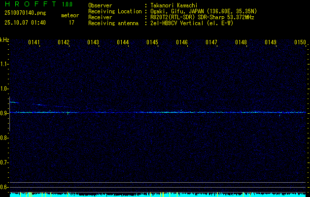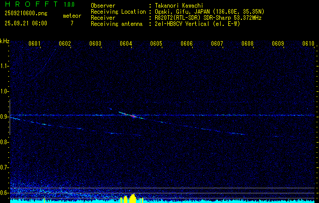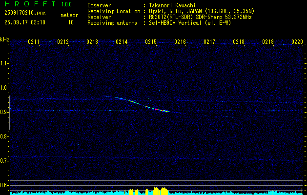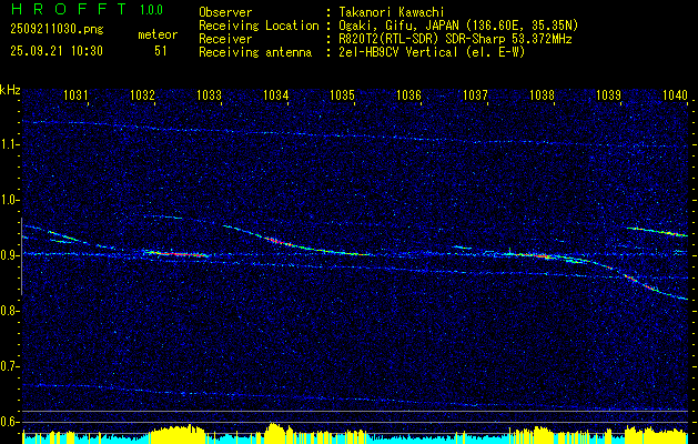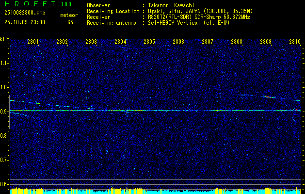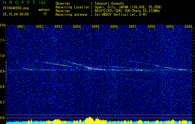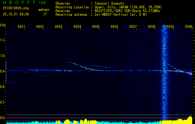 0.9kHz附近に発生している『点』または『塊』が流星によるエコーです.