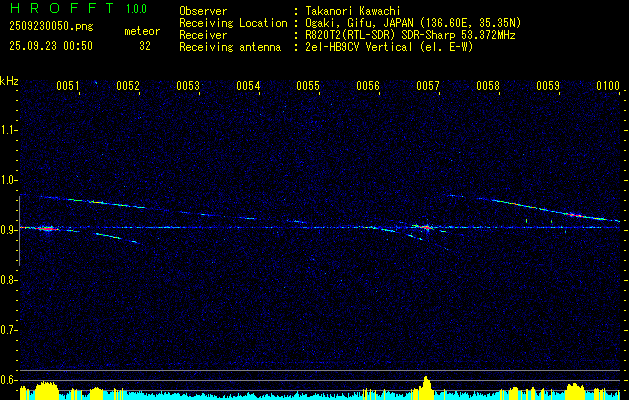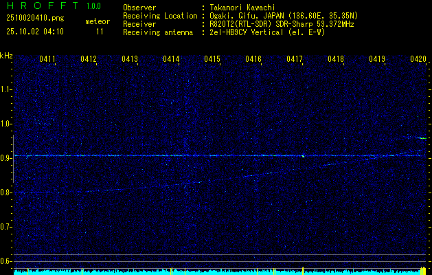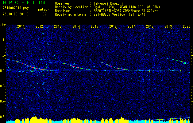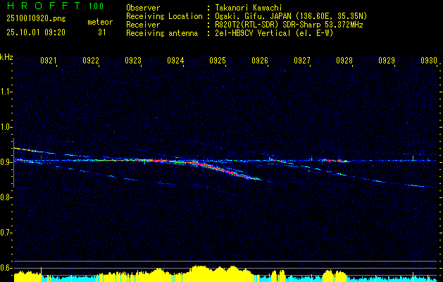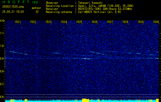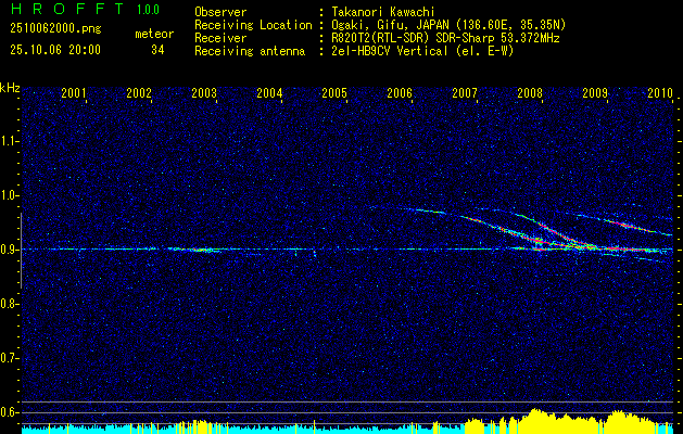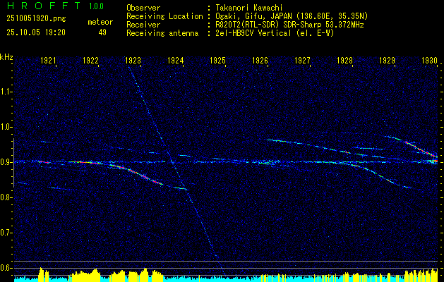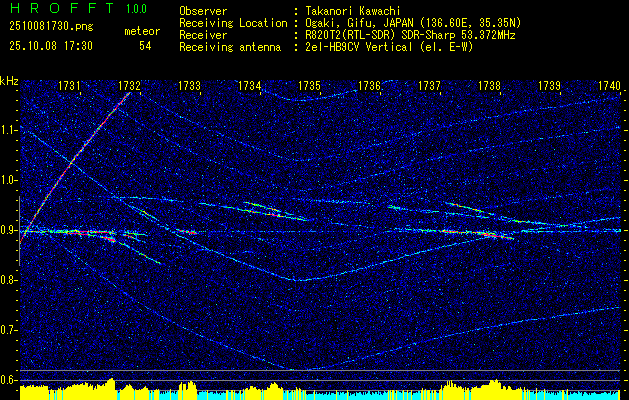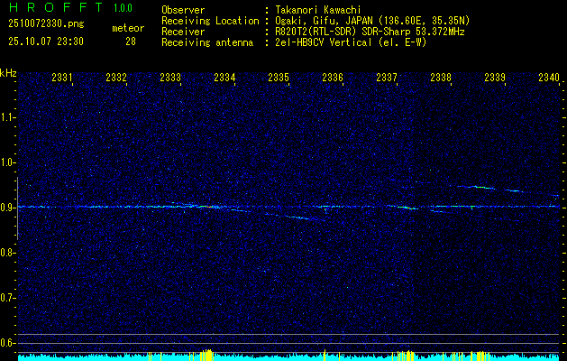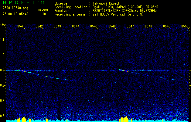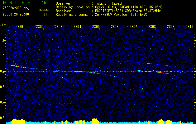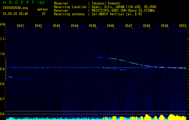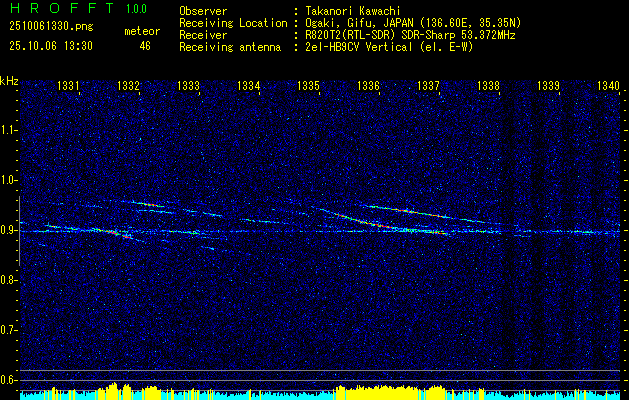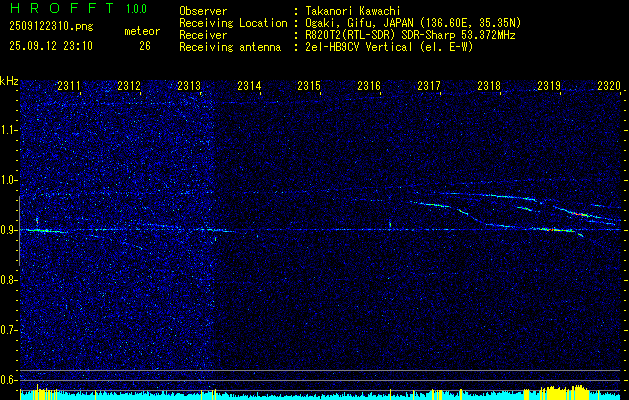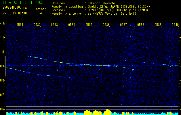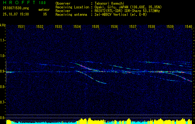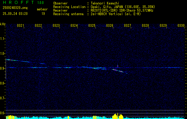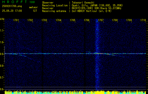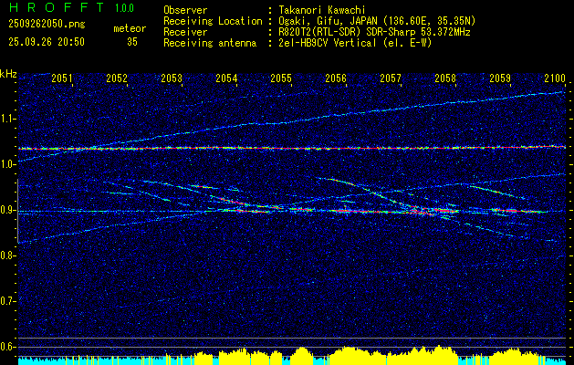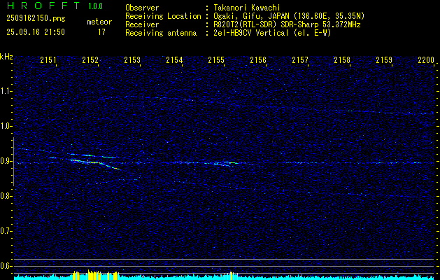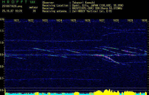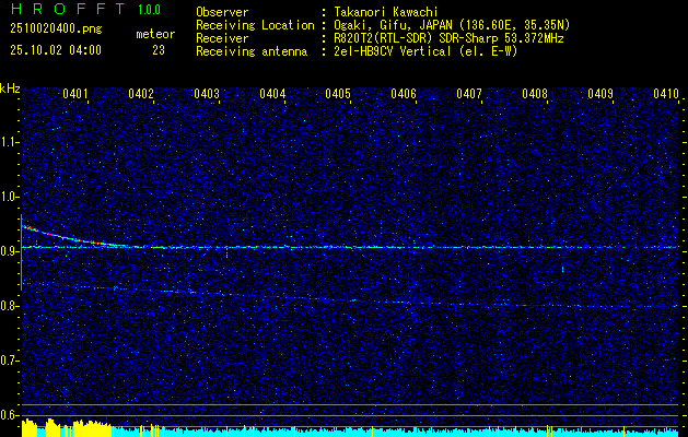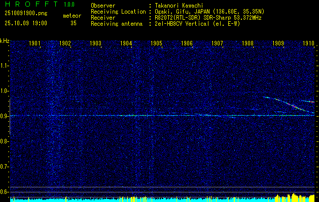 0.9kHz附近に発生している『点』または『塊』が流星によるエコーです.