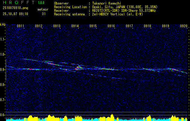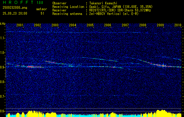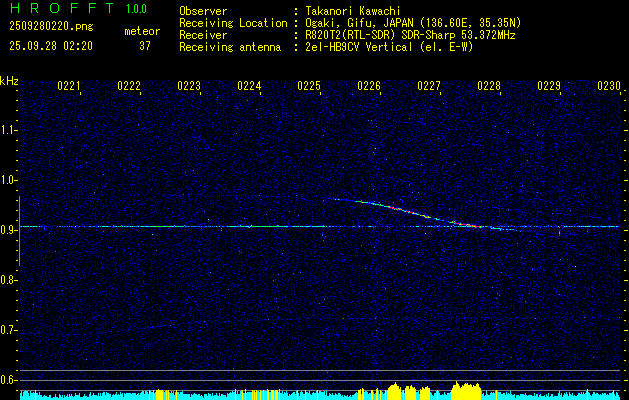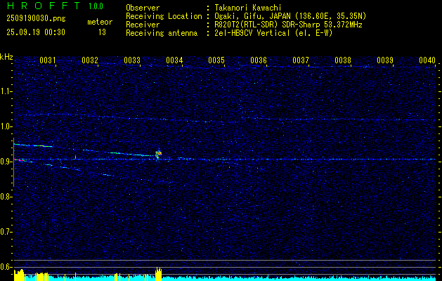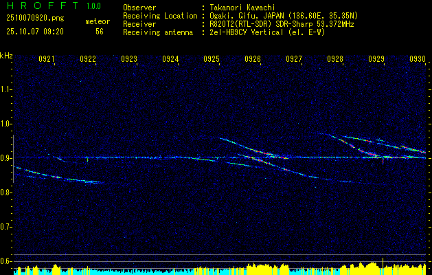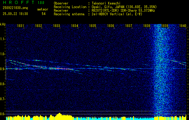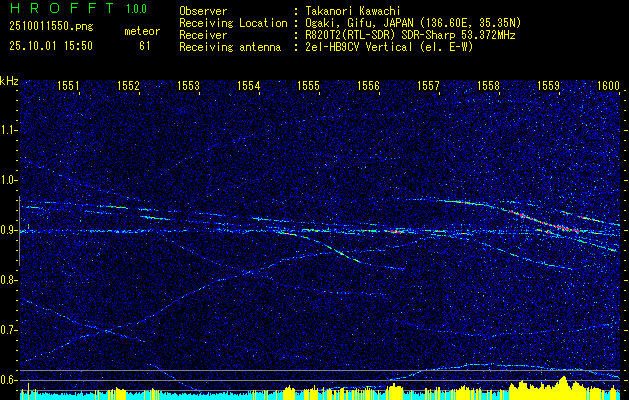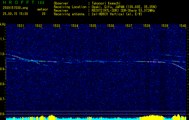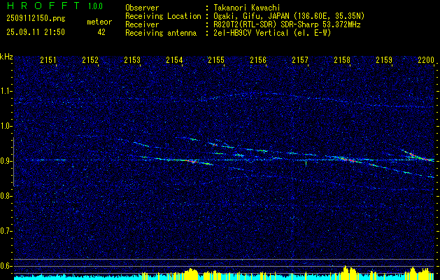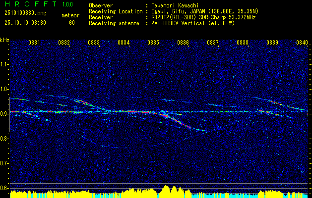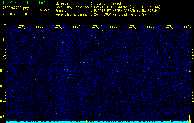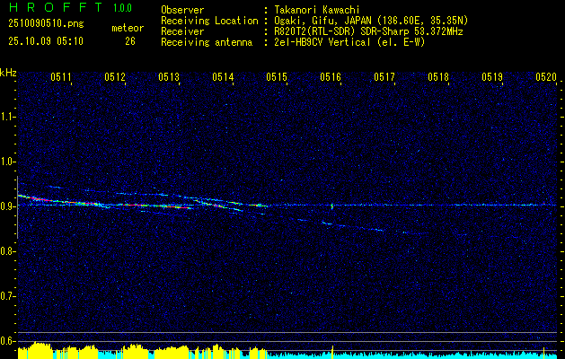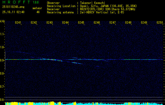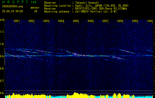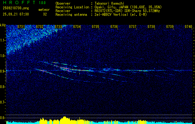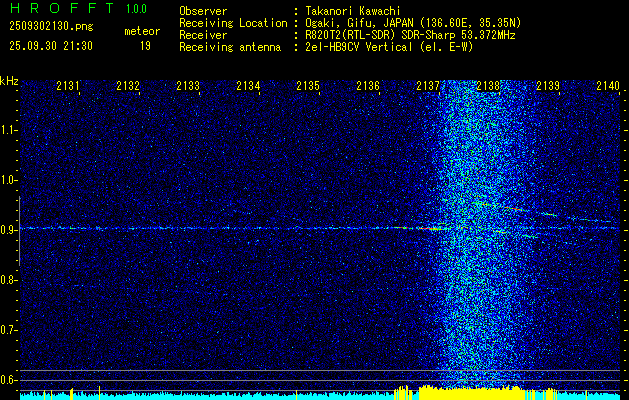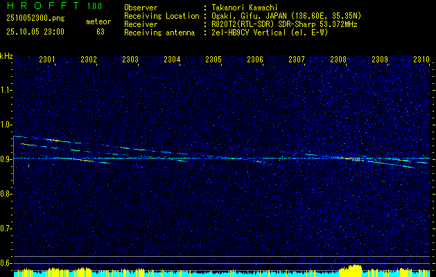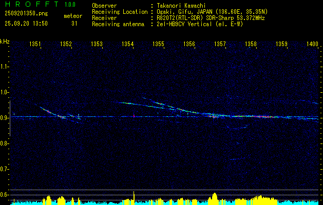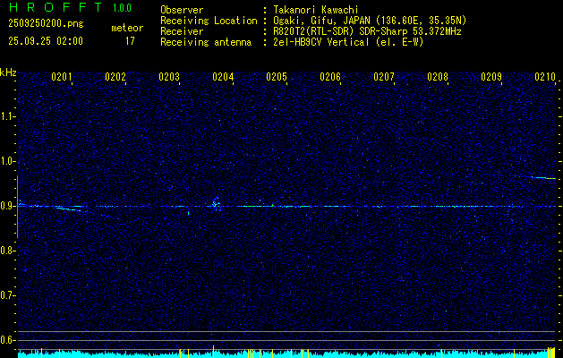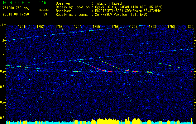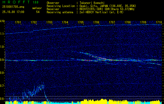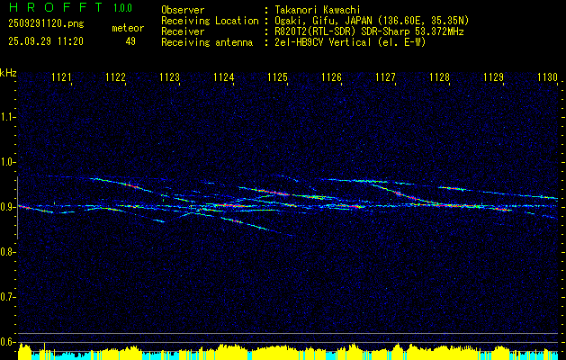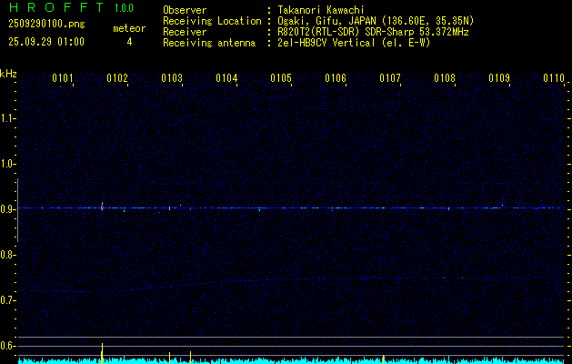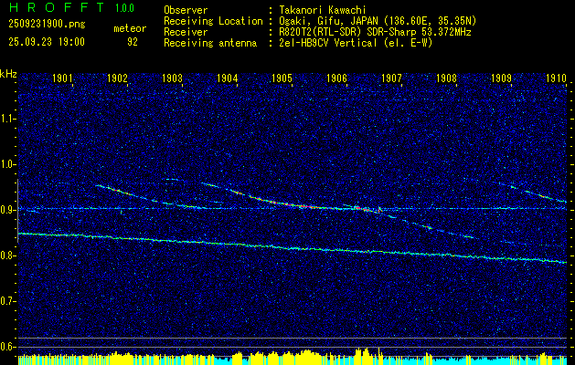 0.9kHz附近に発生している『点』または『塊』が流星によるエコーです.