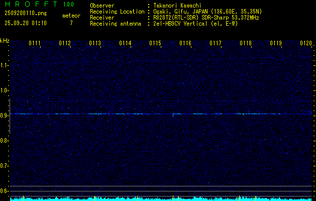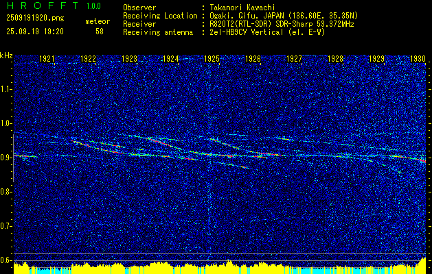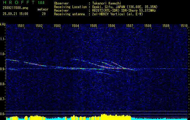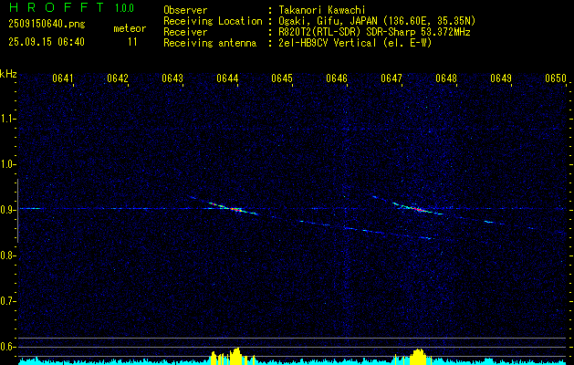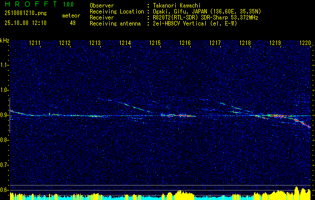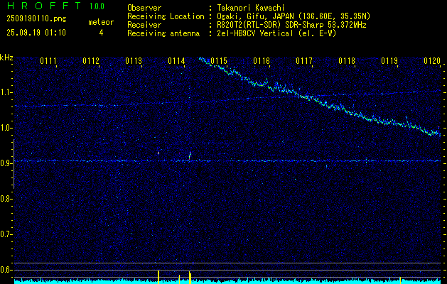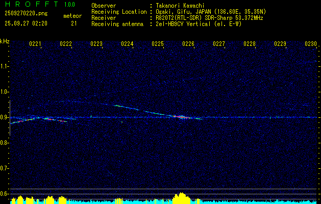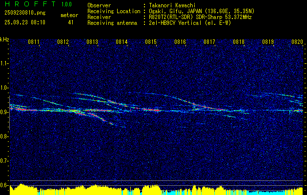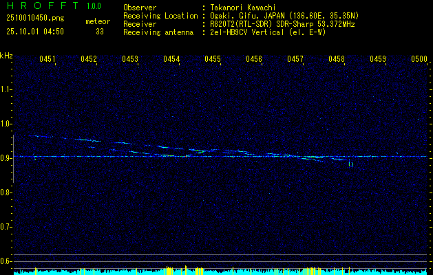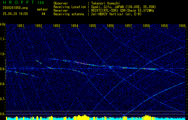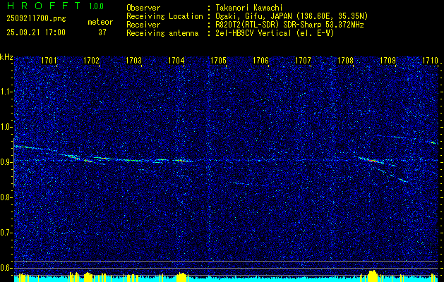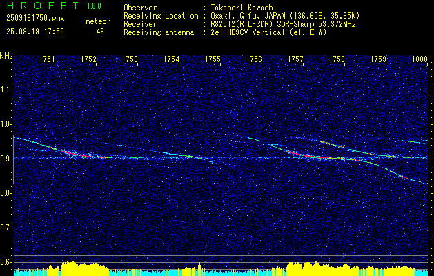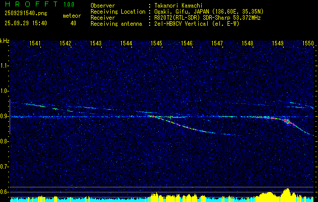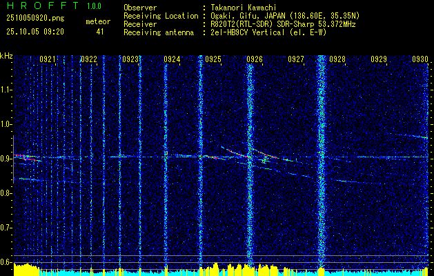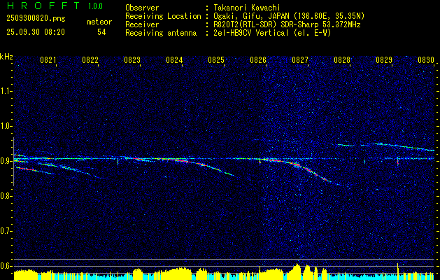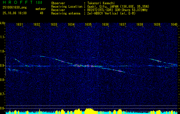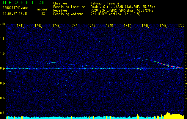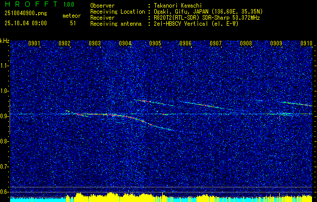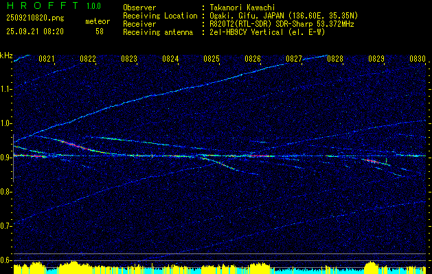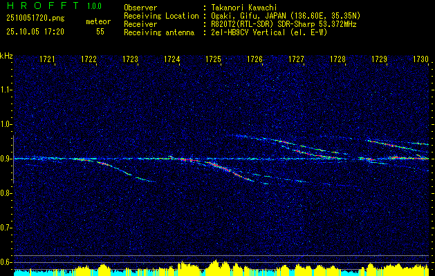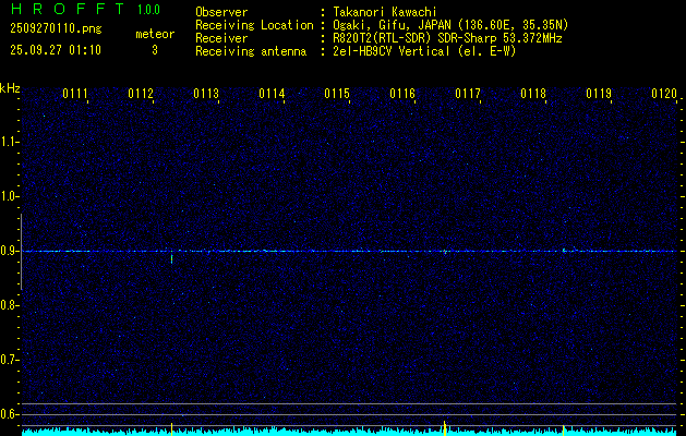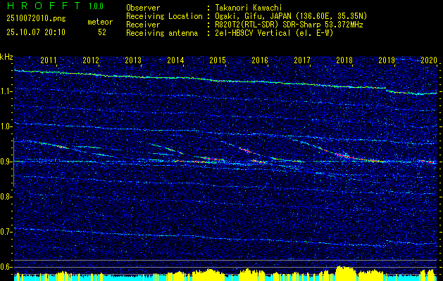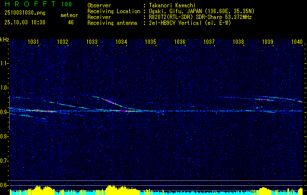 0.9kHz附近に発生している『点』または『塊』が流星によるエコーです.