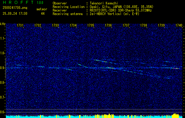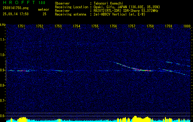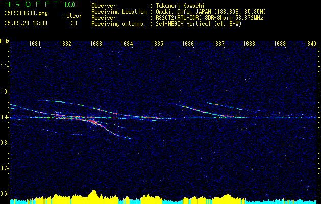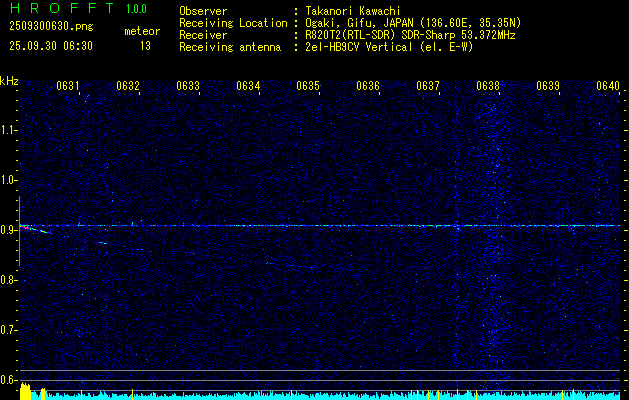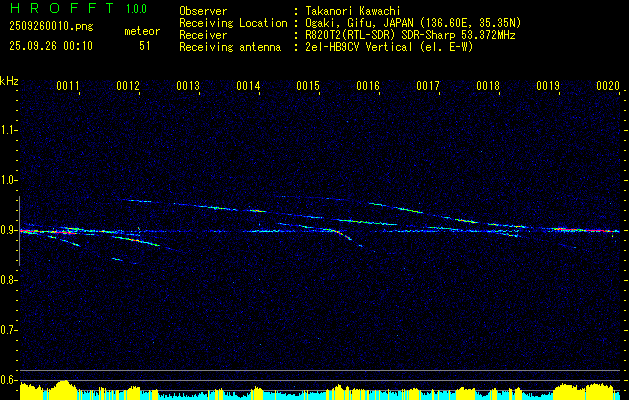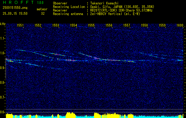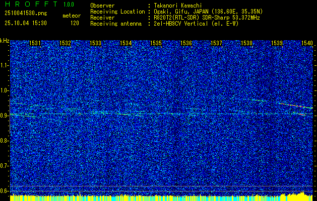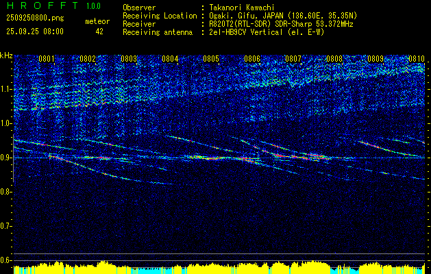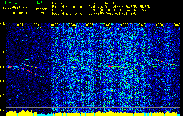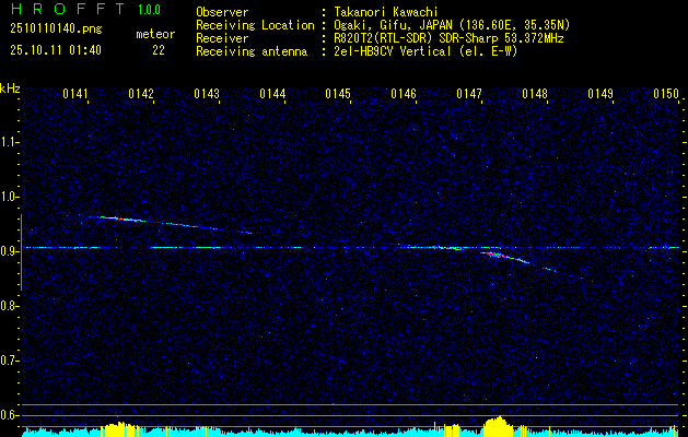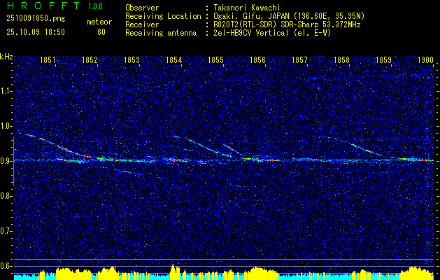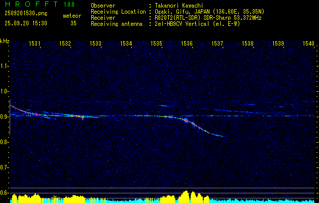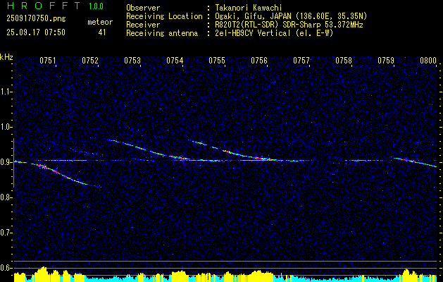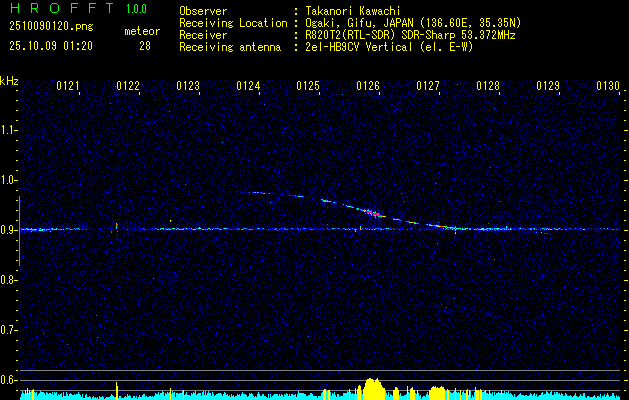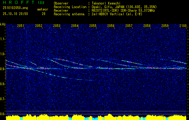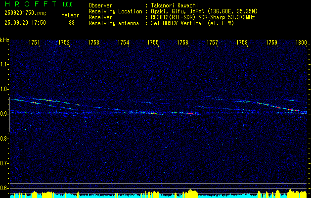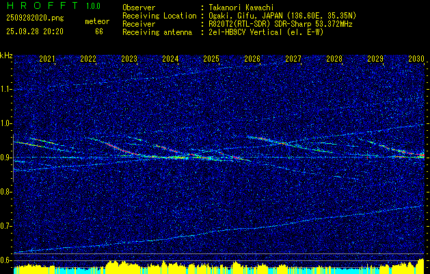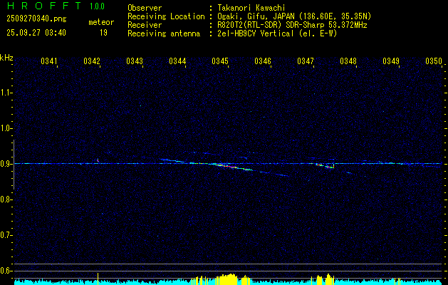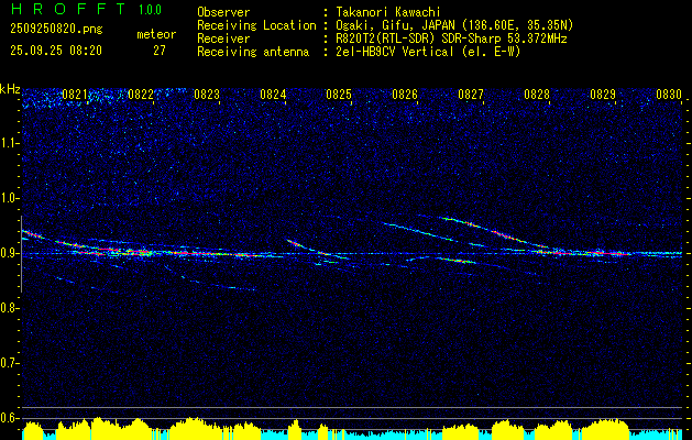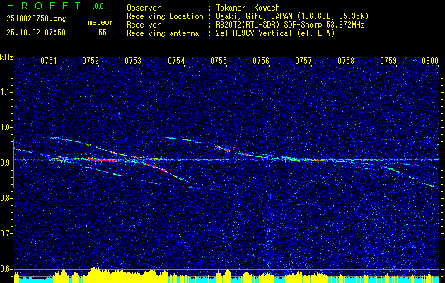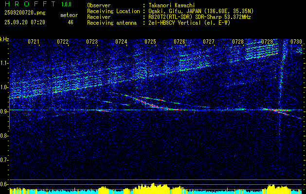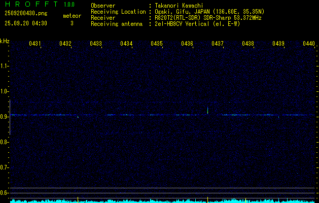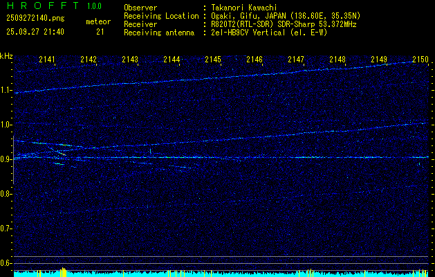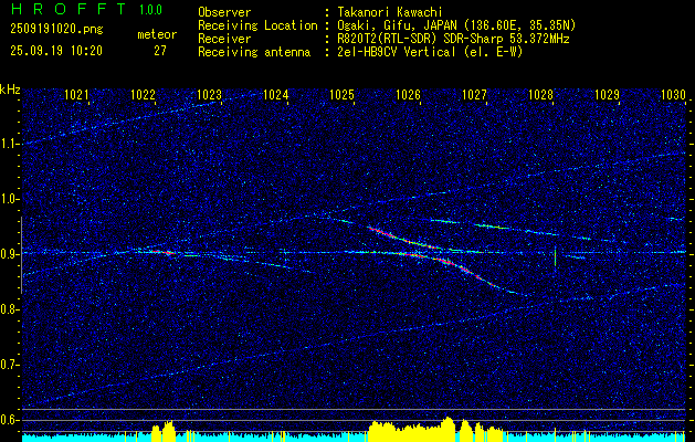 0.9kHz附近に発生している『点』または『塊』が流星によるエコーです.
