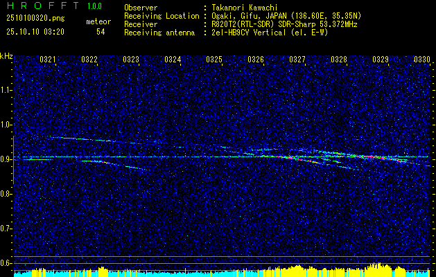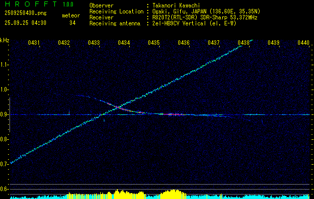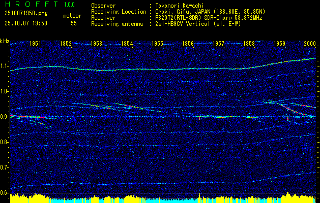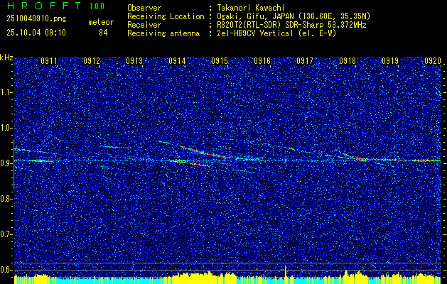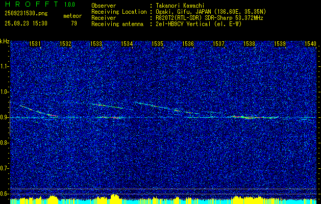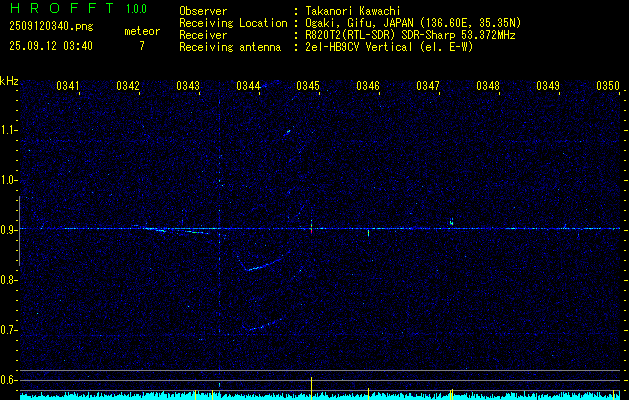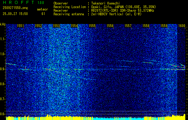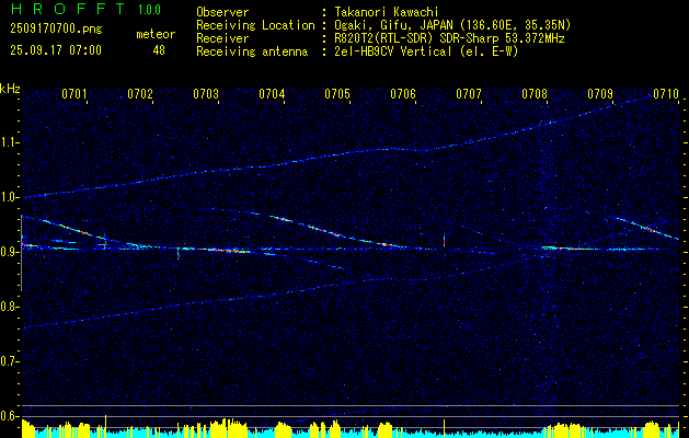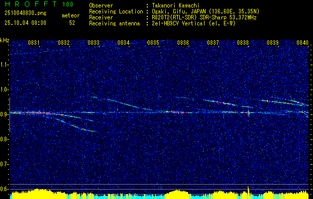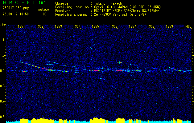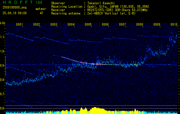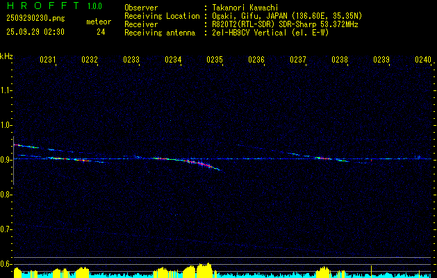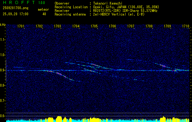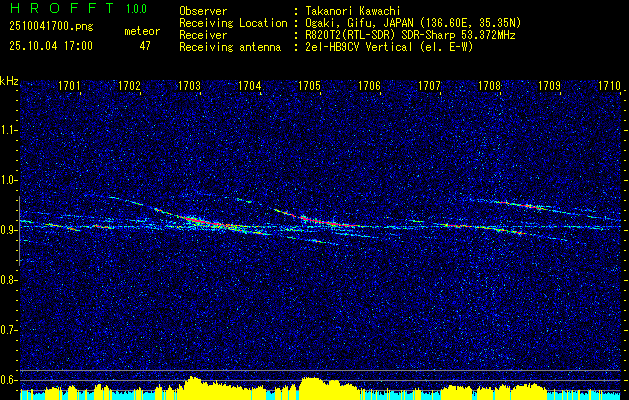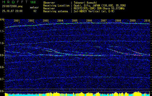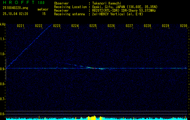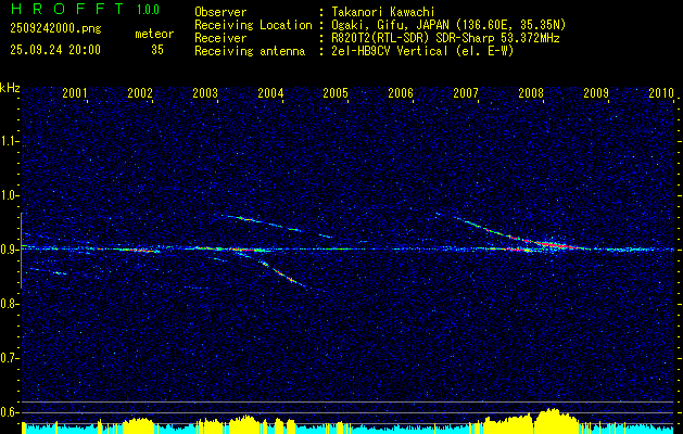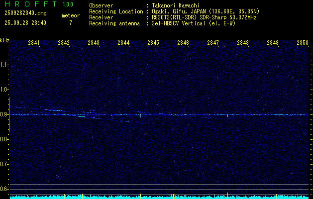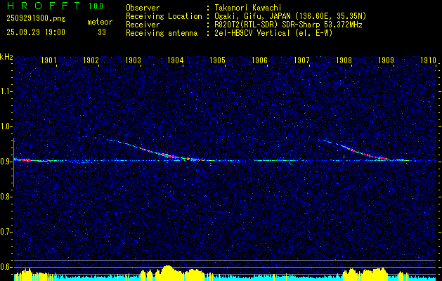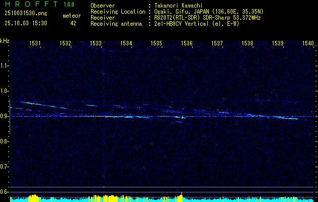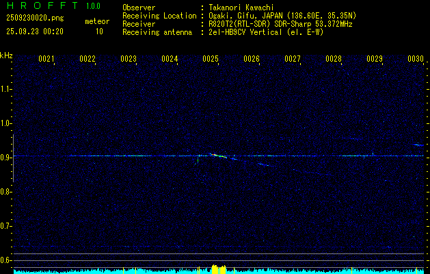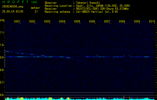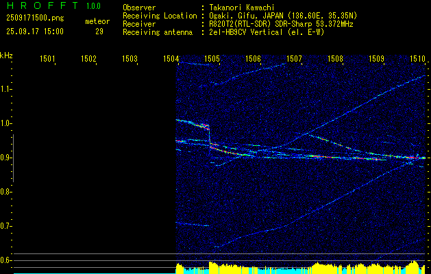0.9kHz附近に発生している『点』または『塊』が流星によるエコーです.