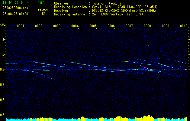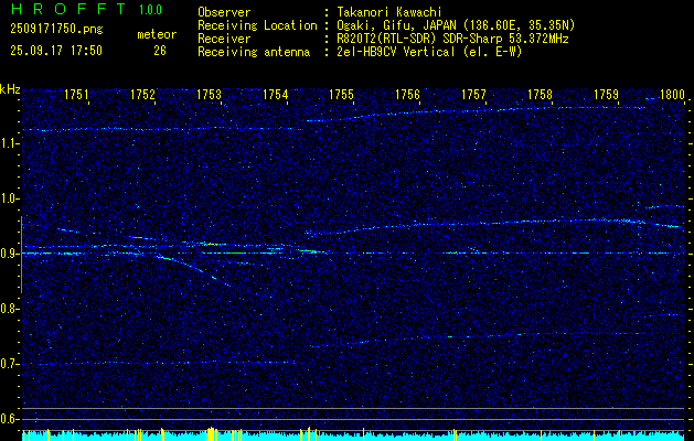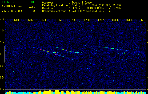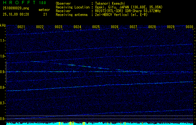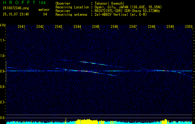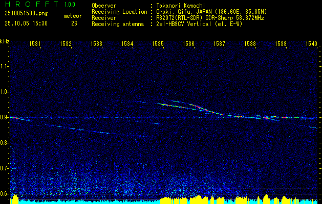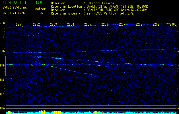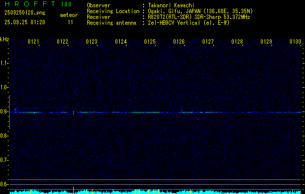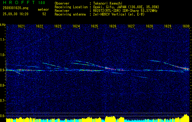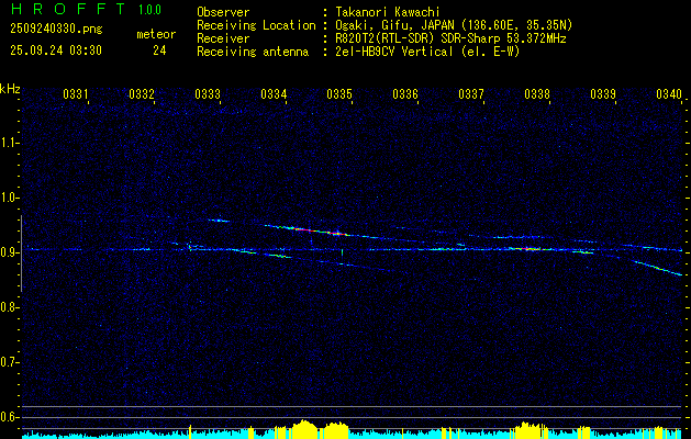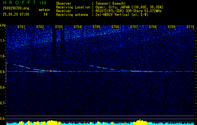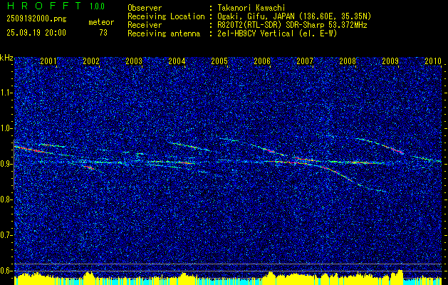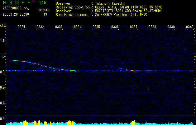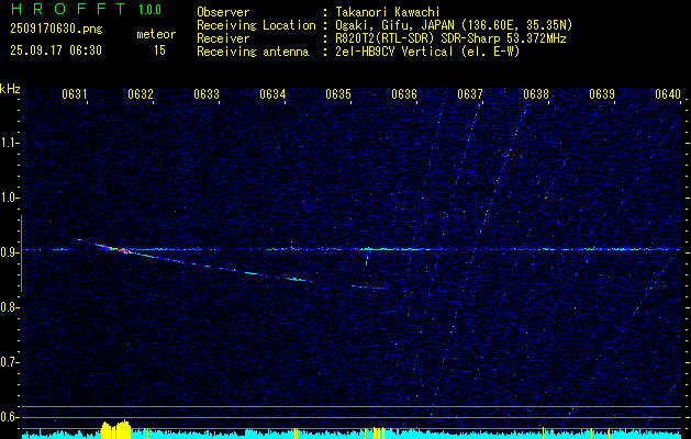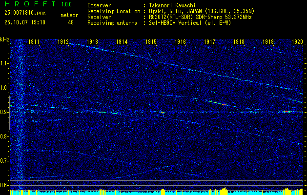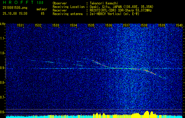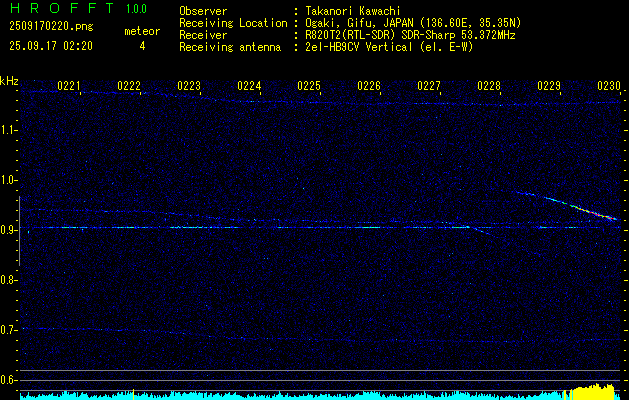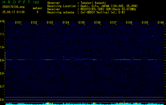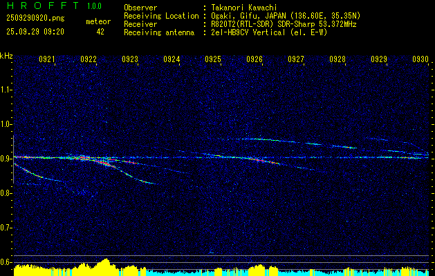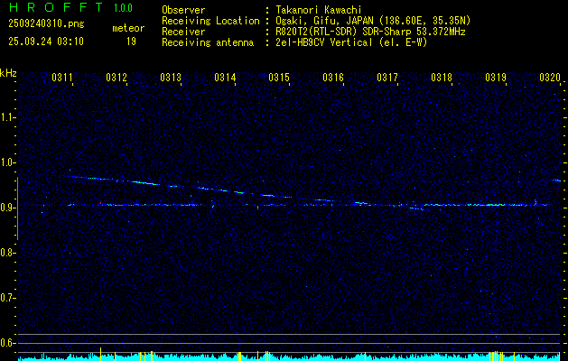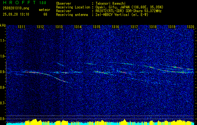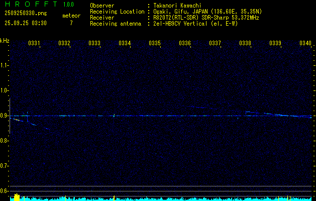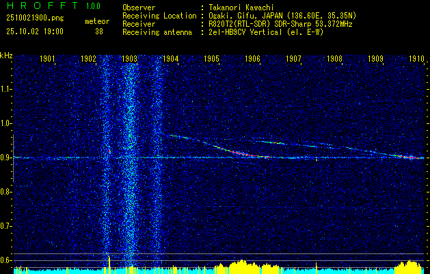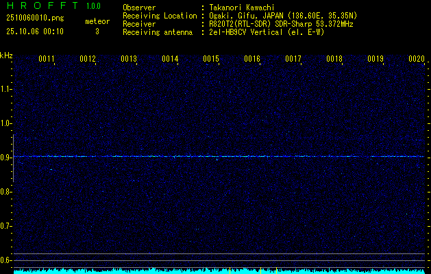 0.9kHz附近に発生している『点』または『塊』が流星によるエコーです.