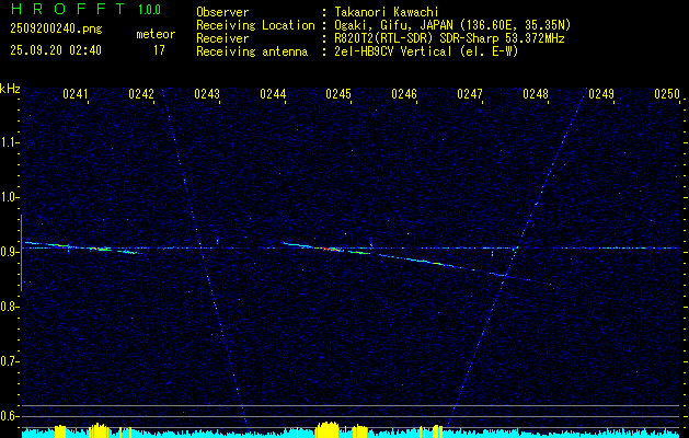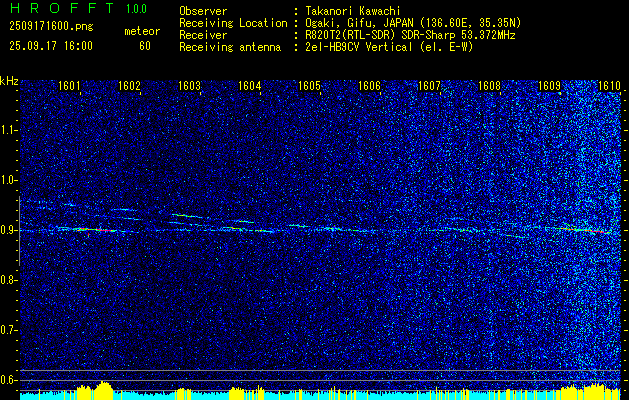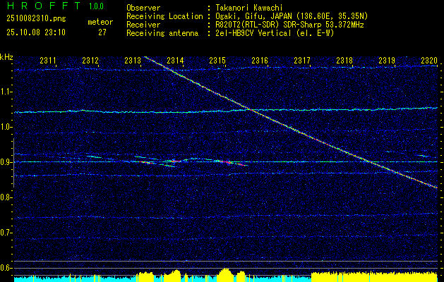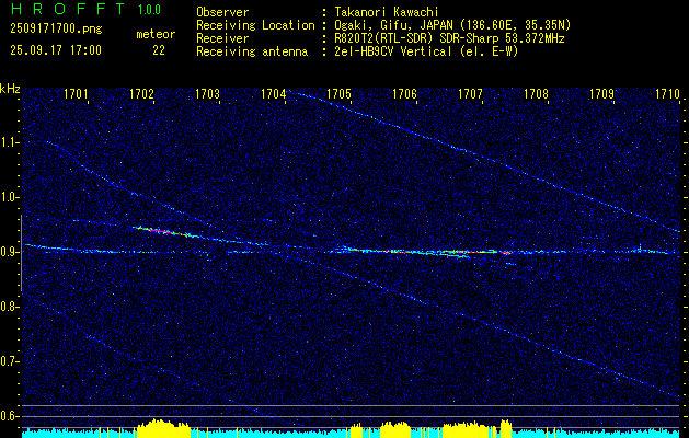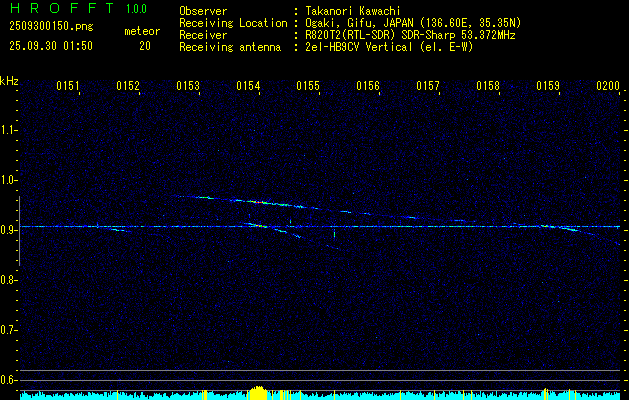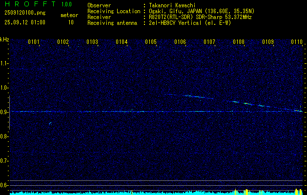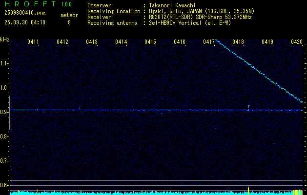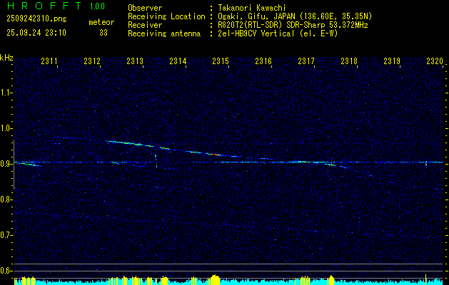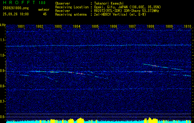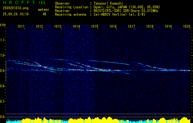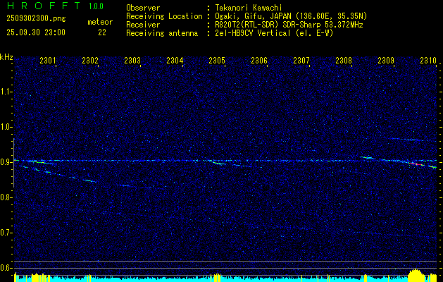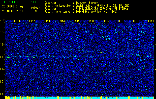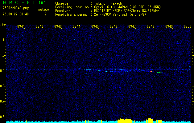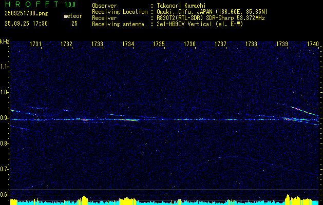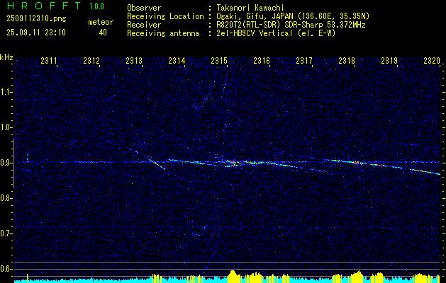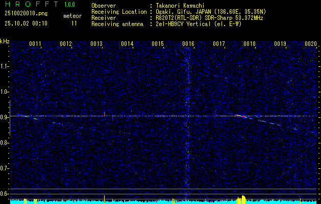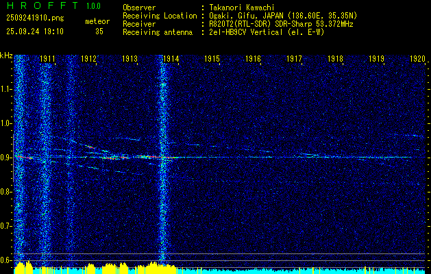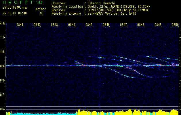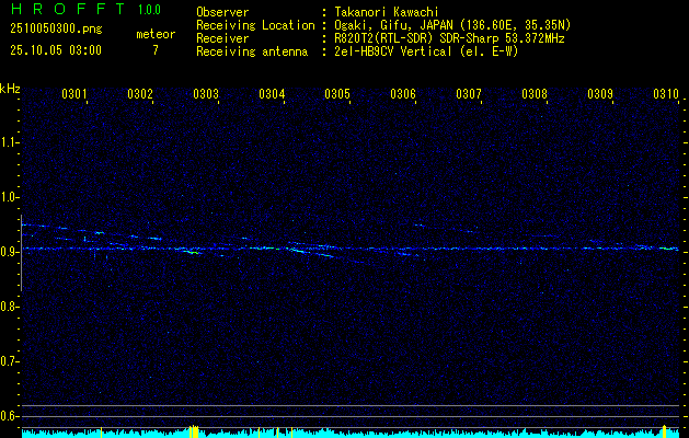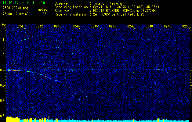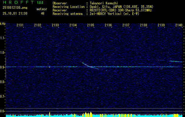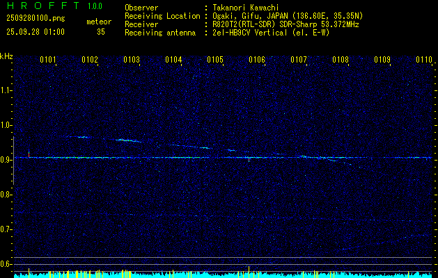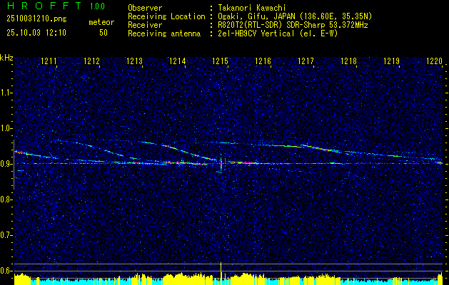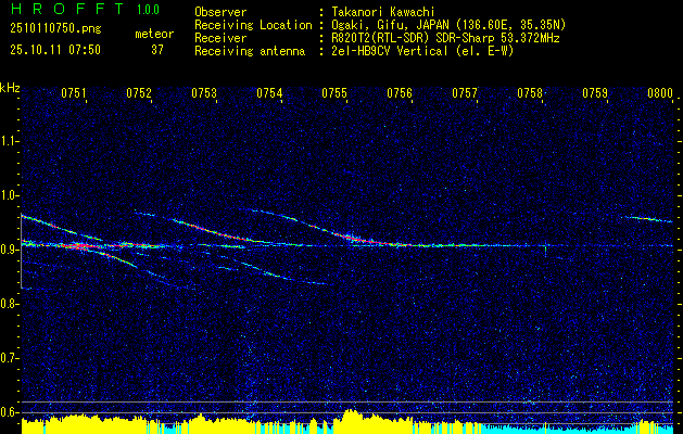0.9kHz附近に発生している『点』または『塊』が流星によるエコーです.