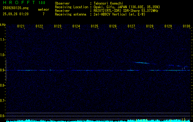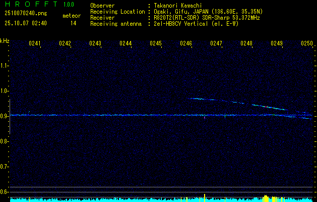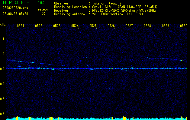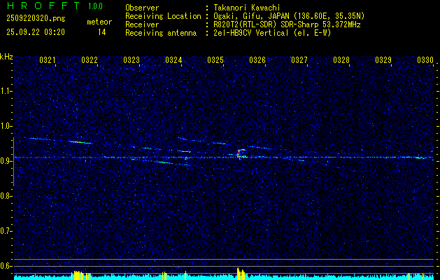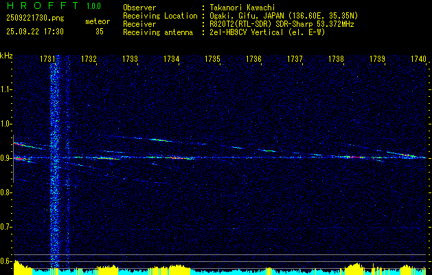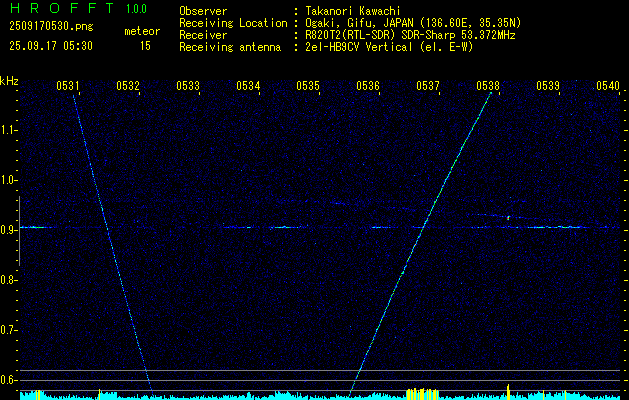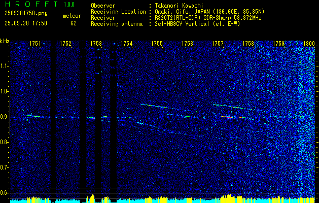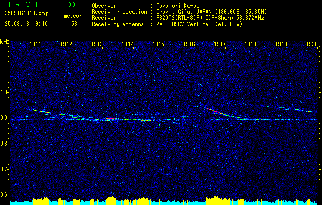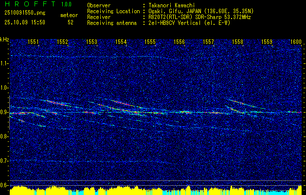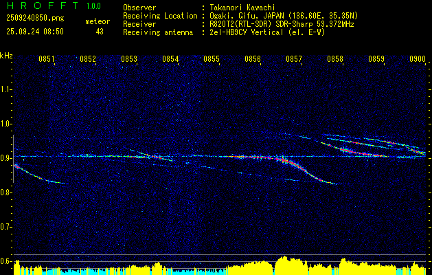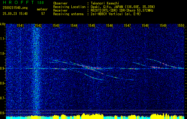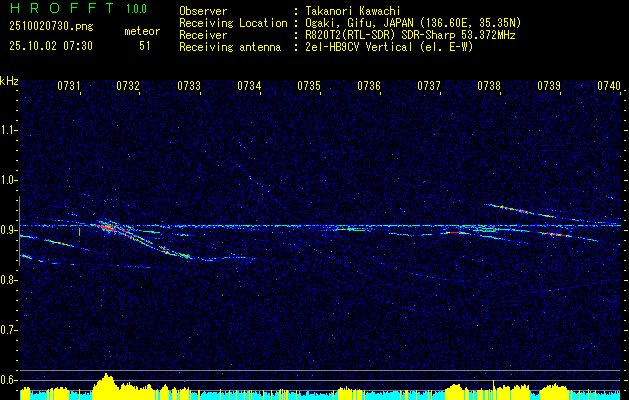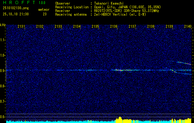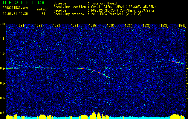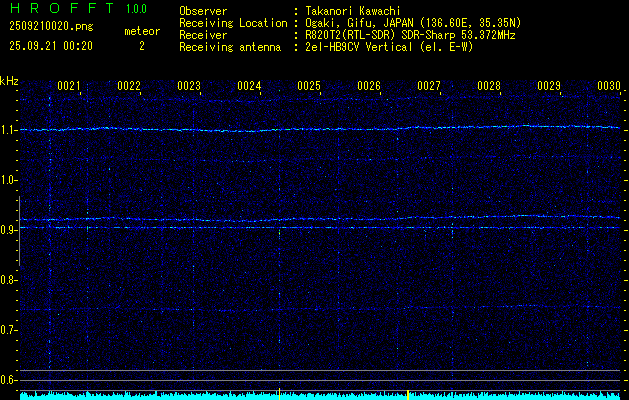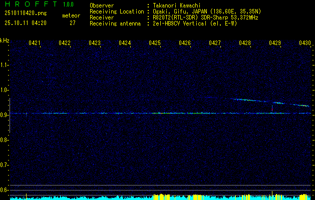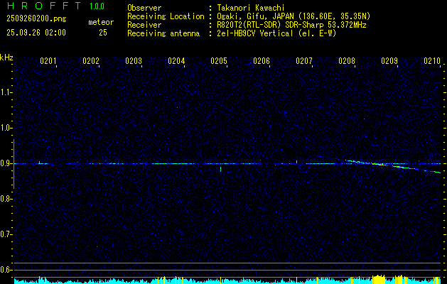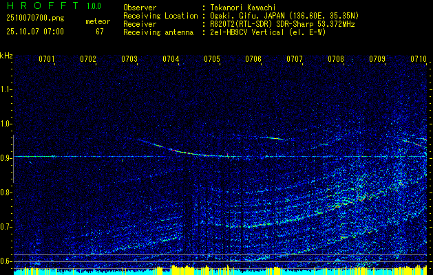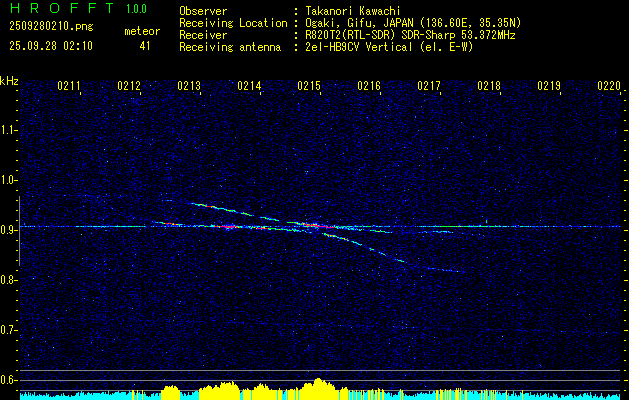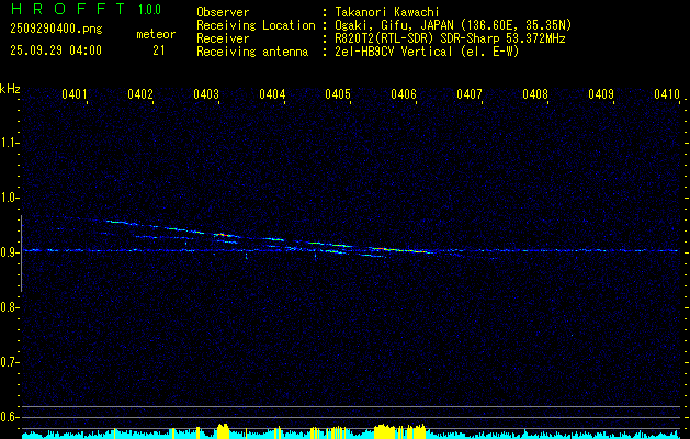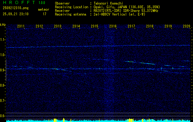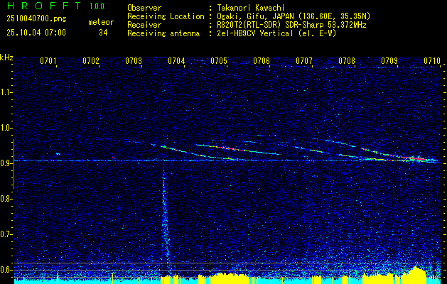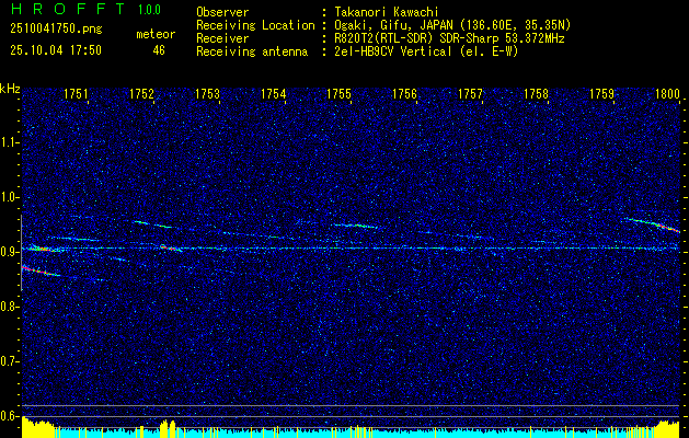 0.9kHz附近に発生している『点』または『塊』が流星によるエコーです.