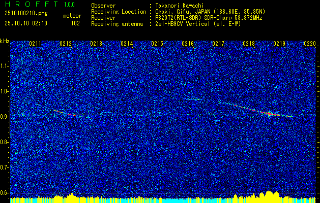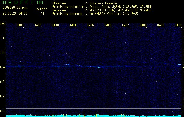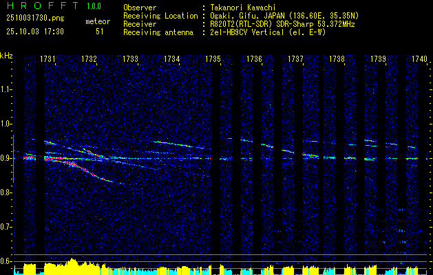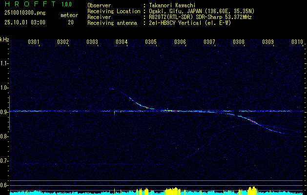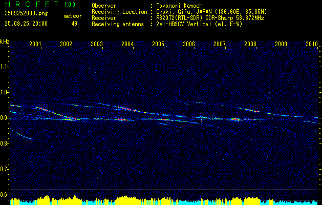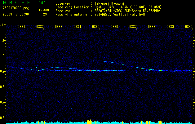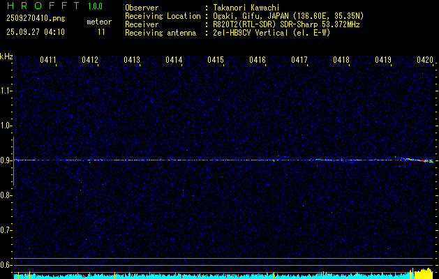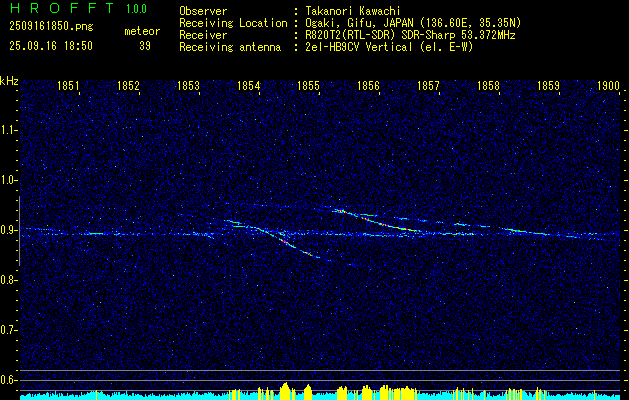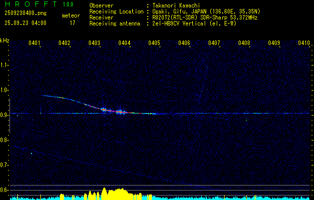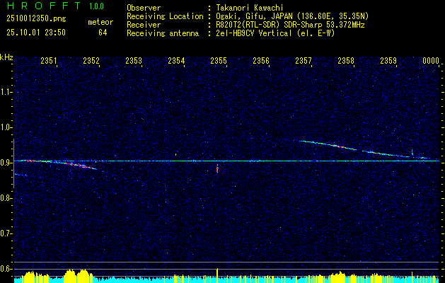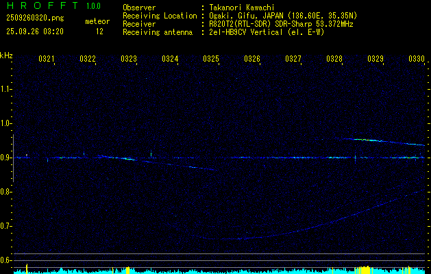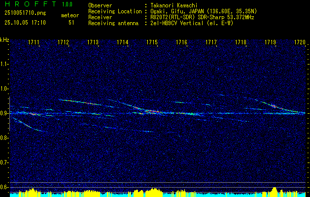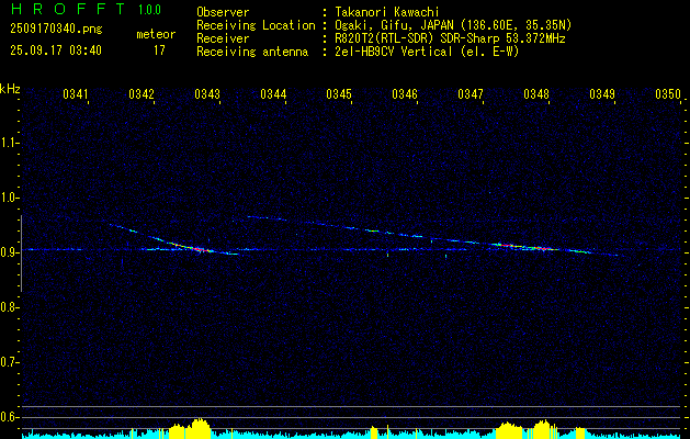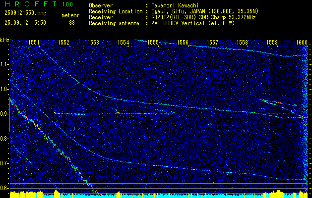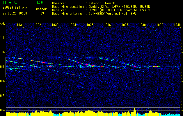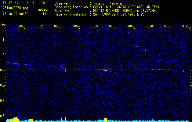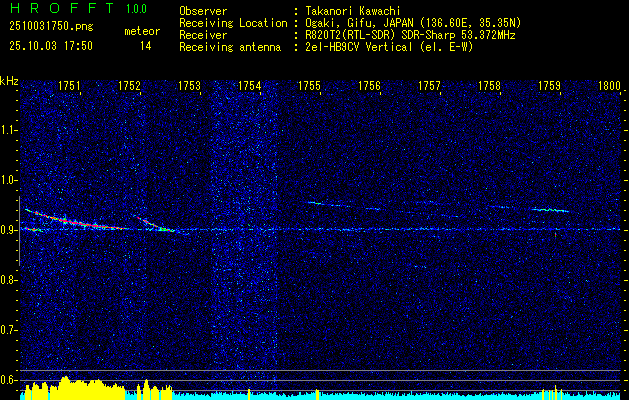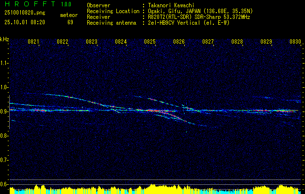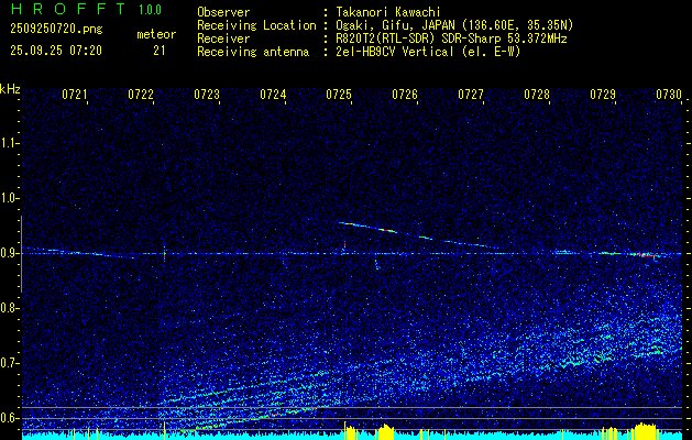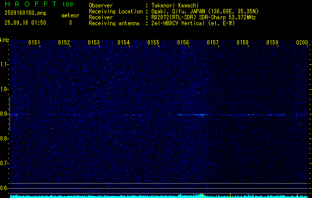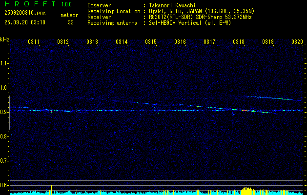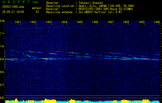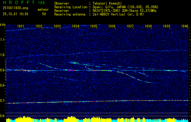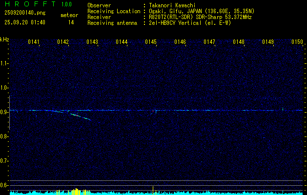 0.9kHz附近に発生している『点』または『塊』が流星によるエコーです.