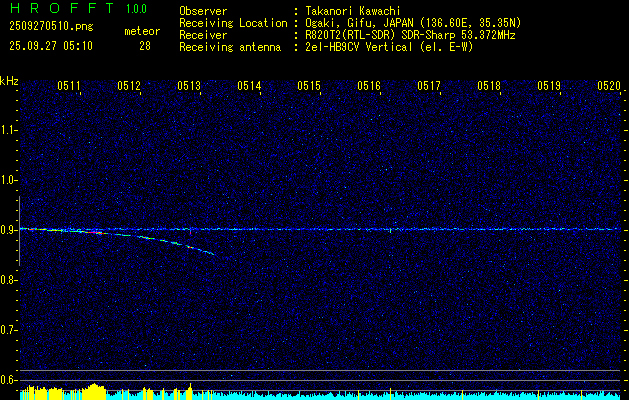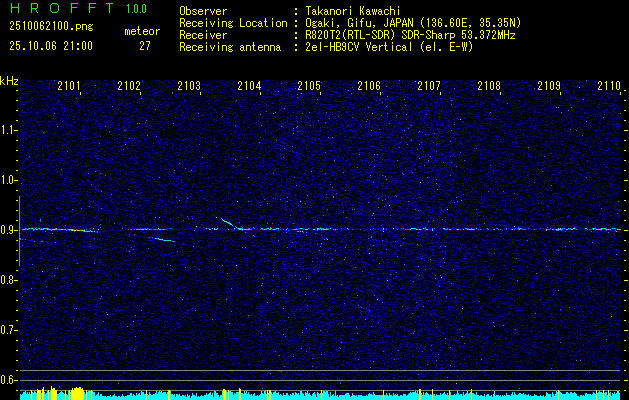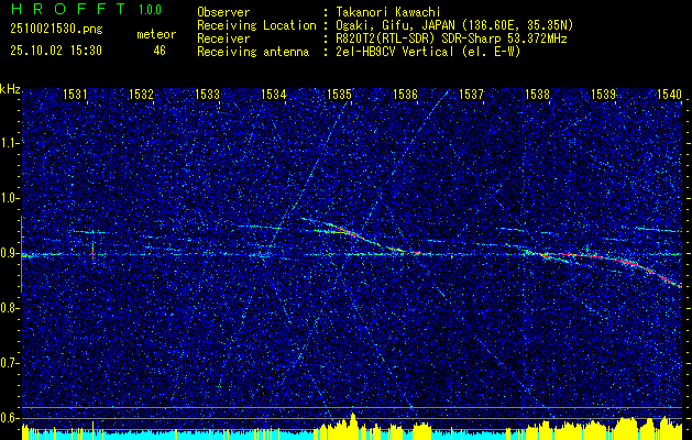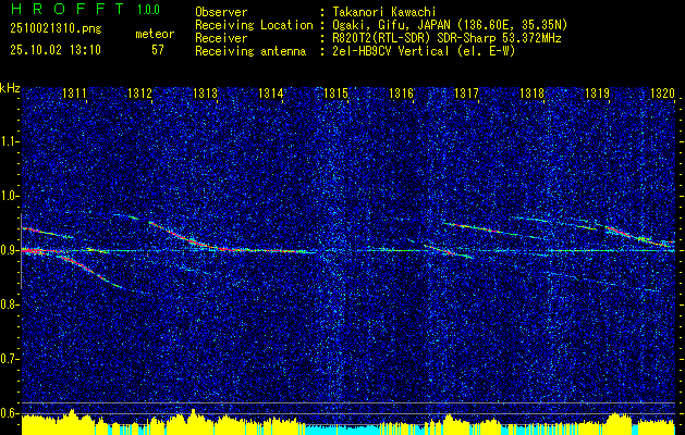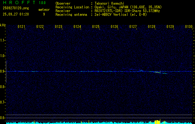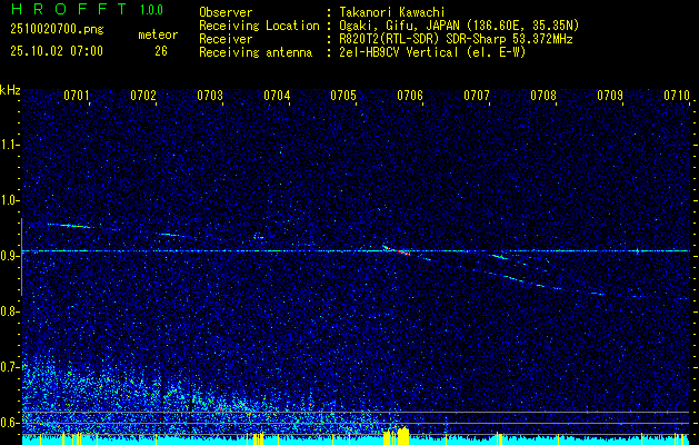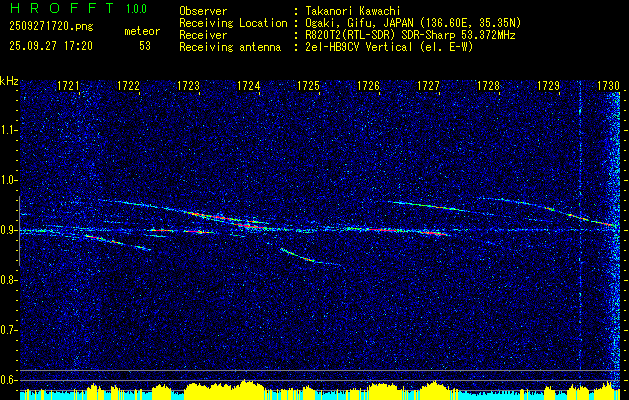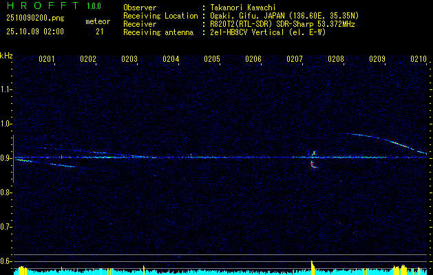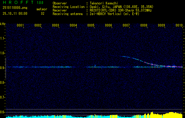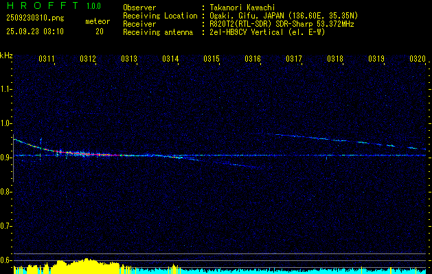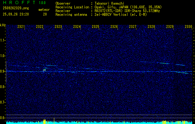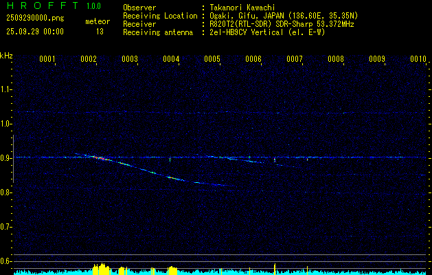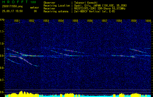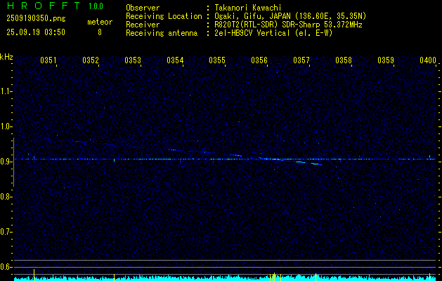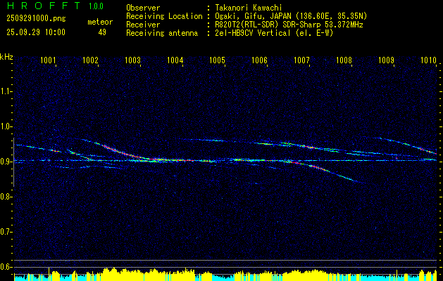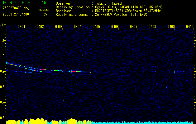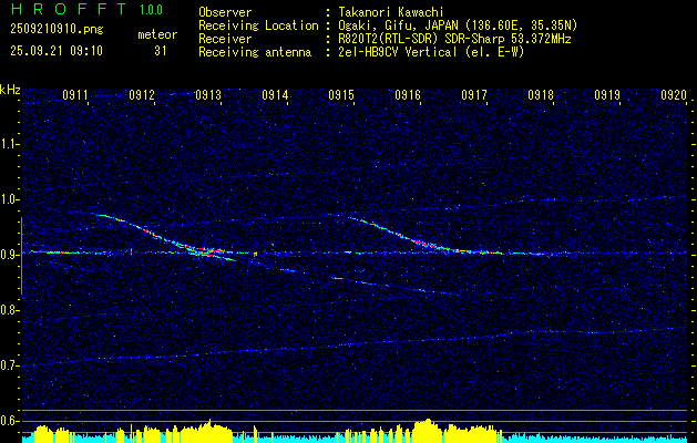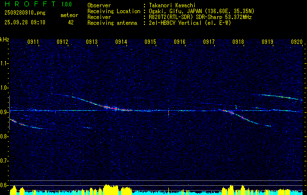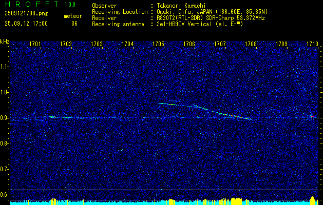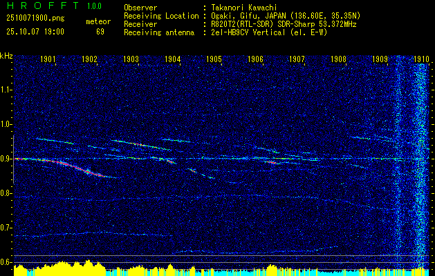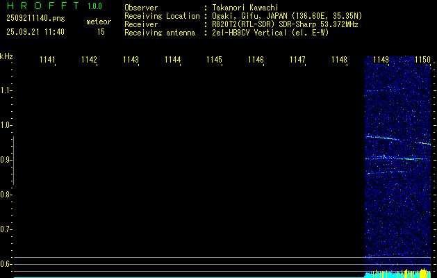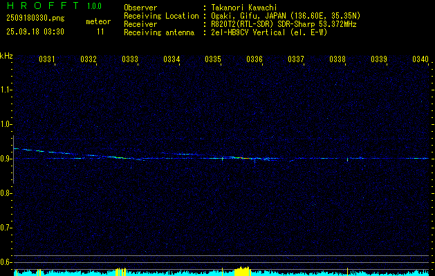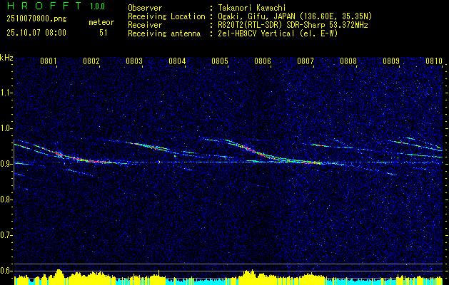 0.9kHz附近に発生している『点』または『塊』が流星によるエコーです.