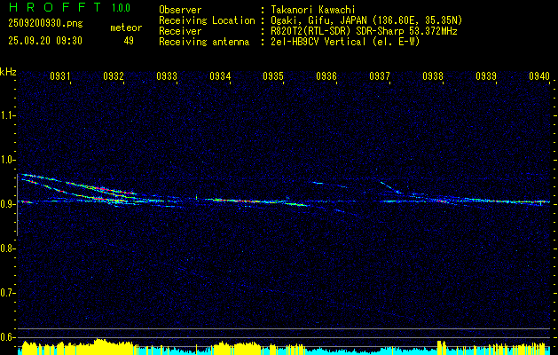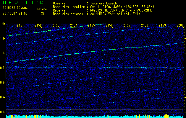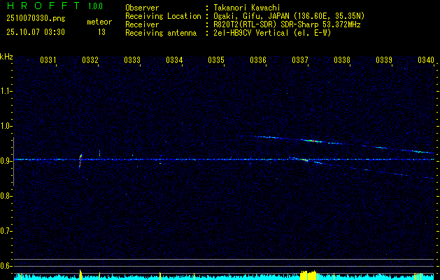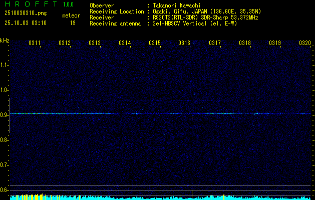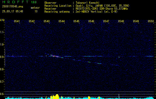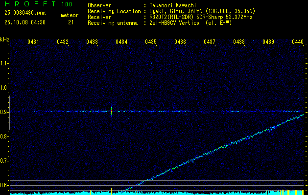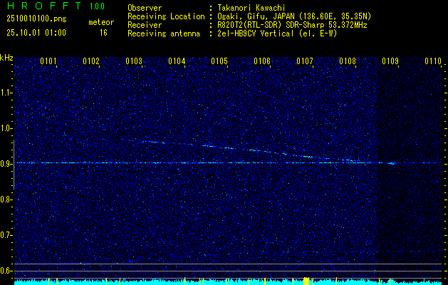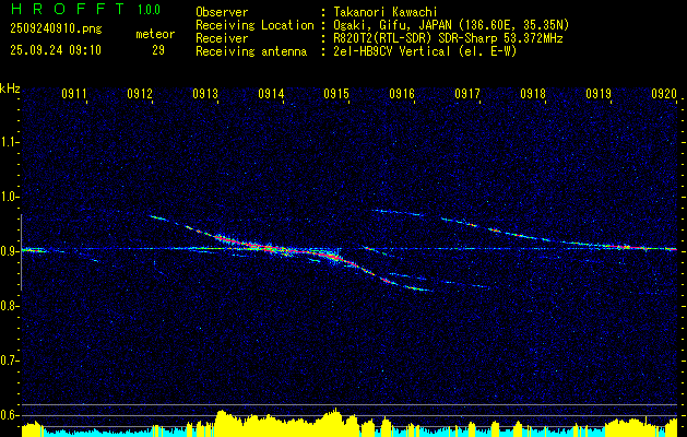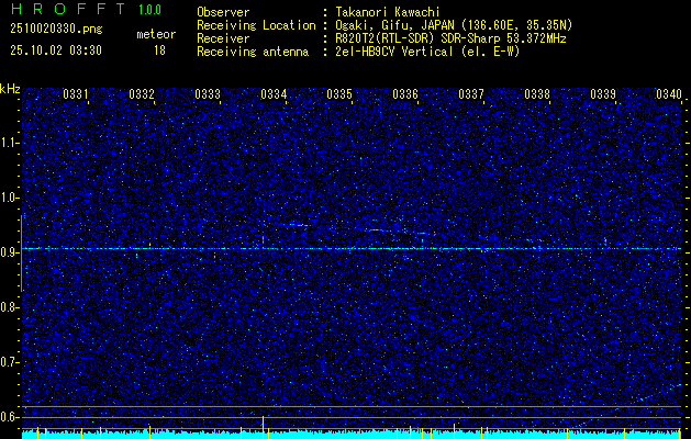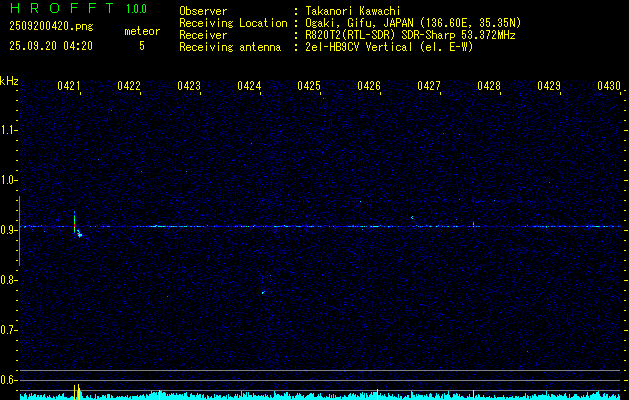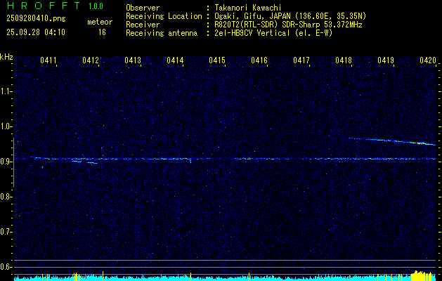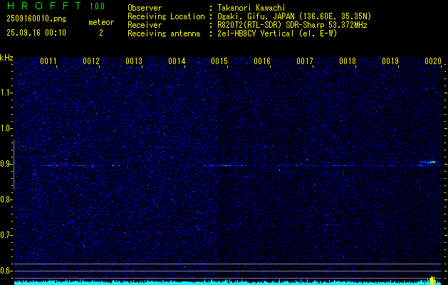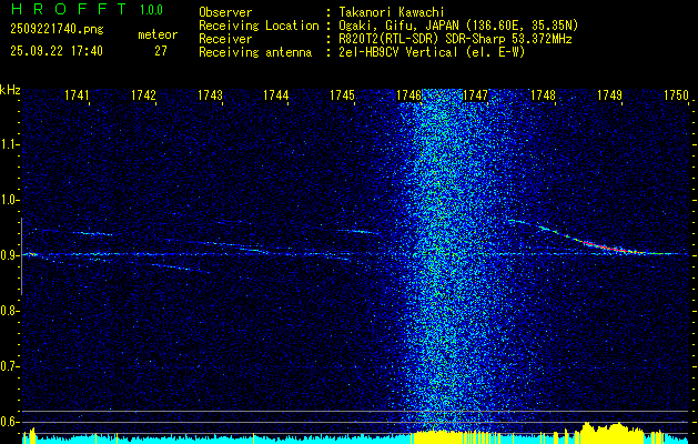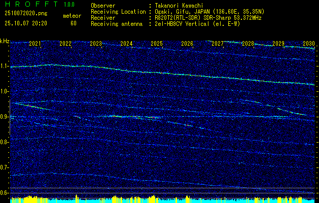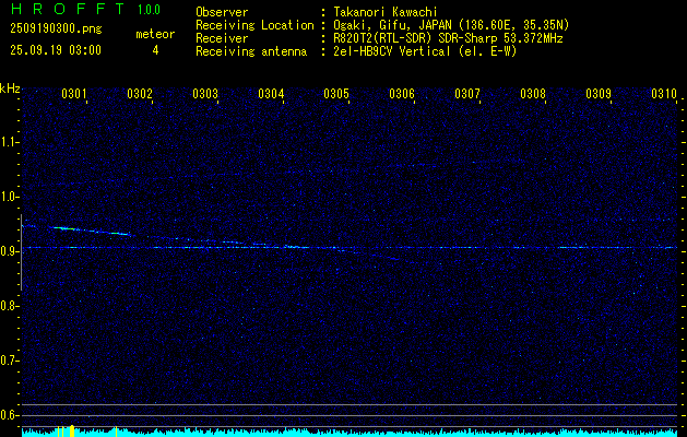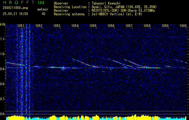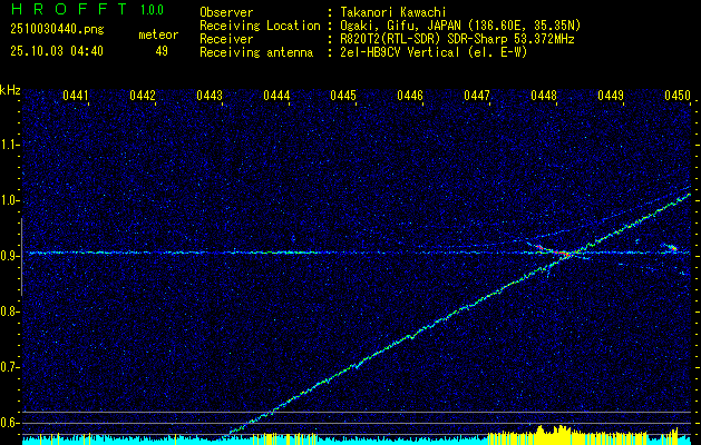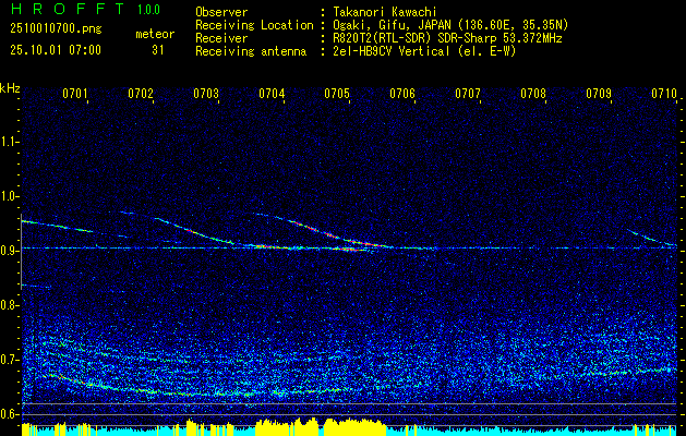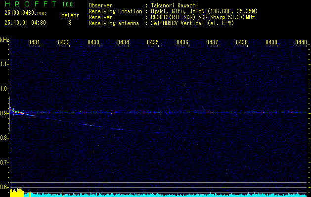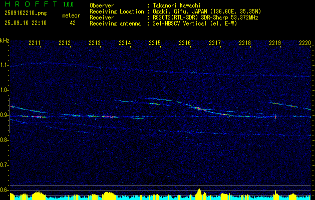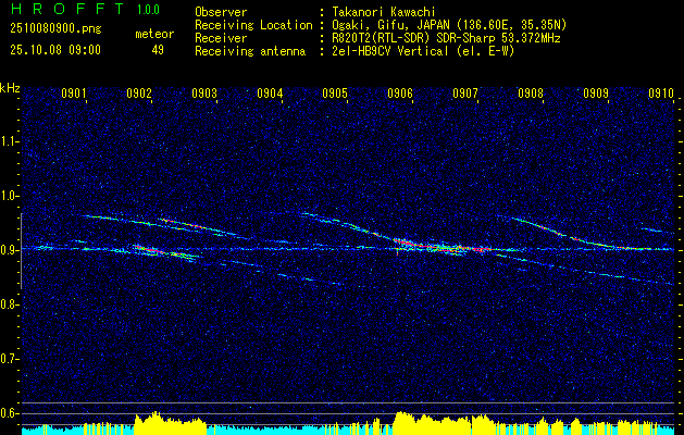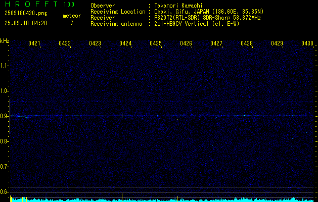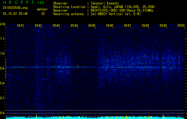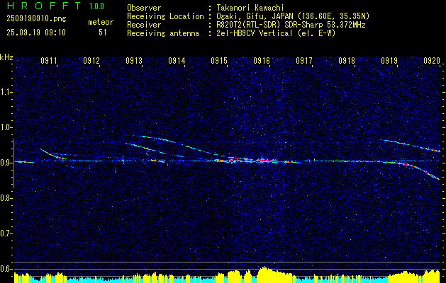 0.9kHz附近に発生している『点』または『塊』が流星によるエコーです.