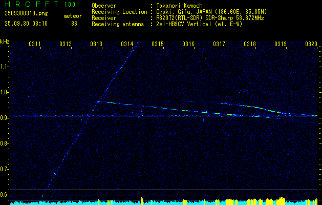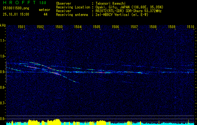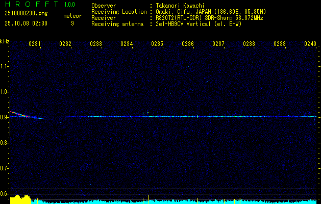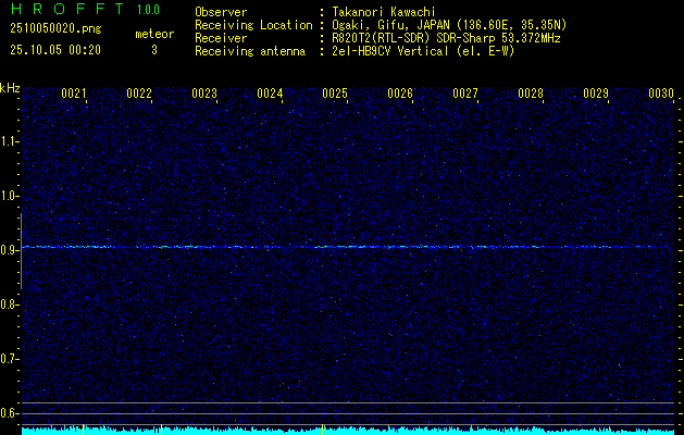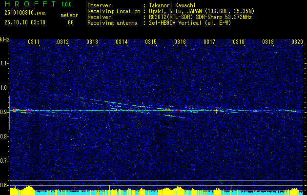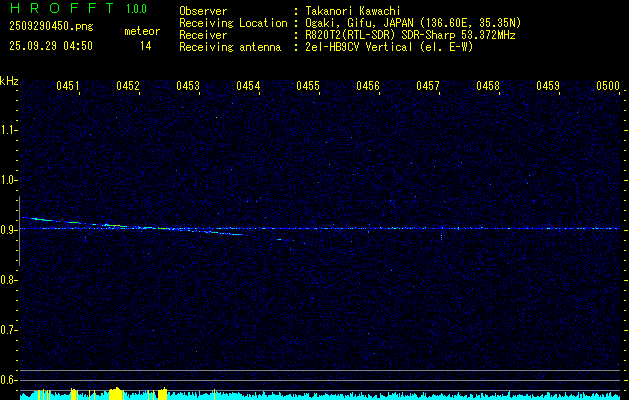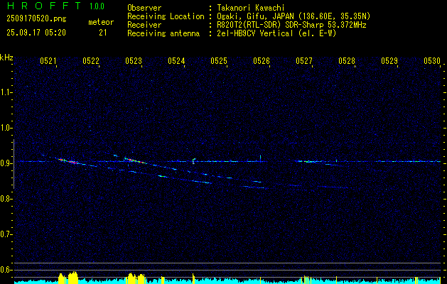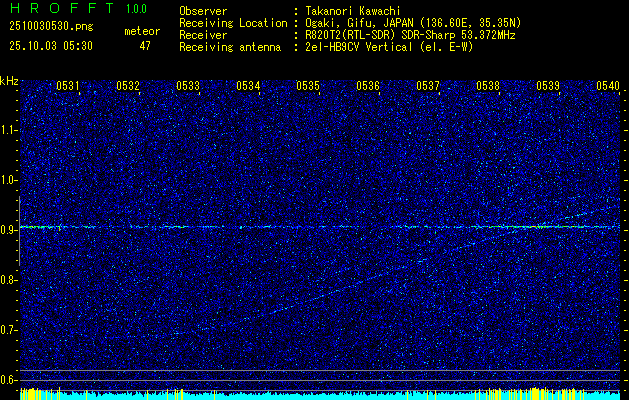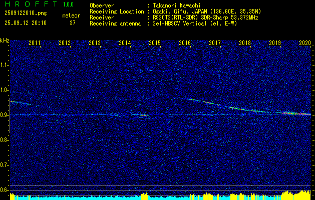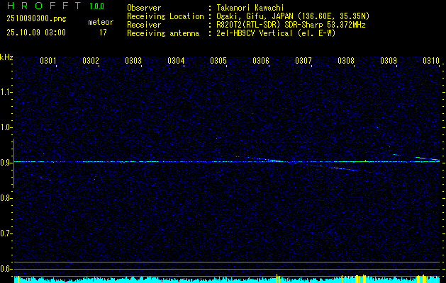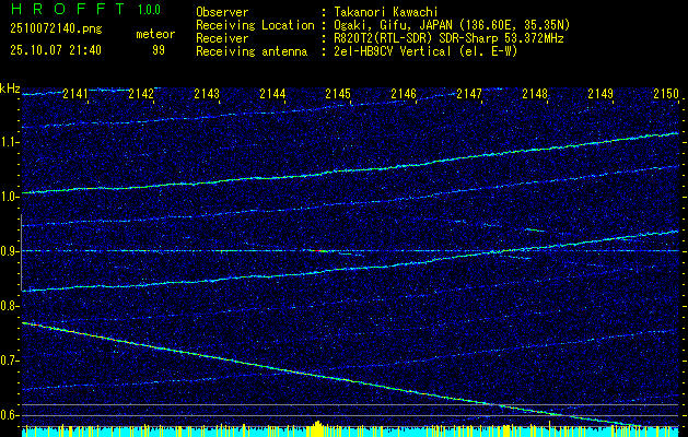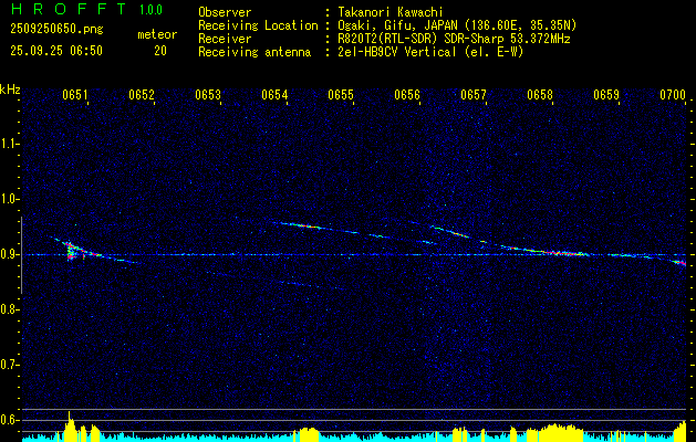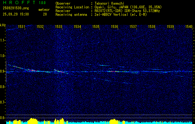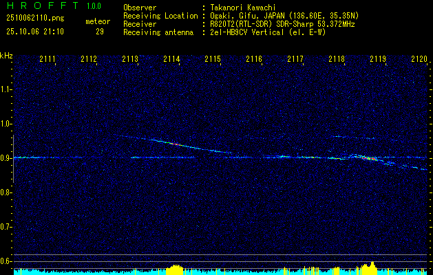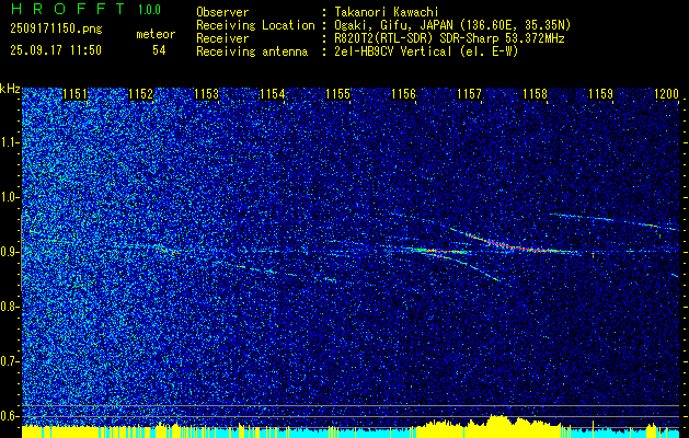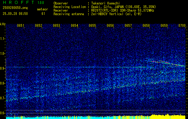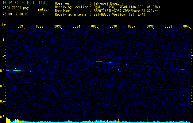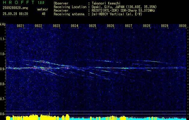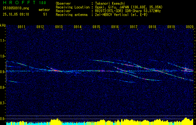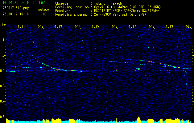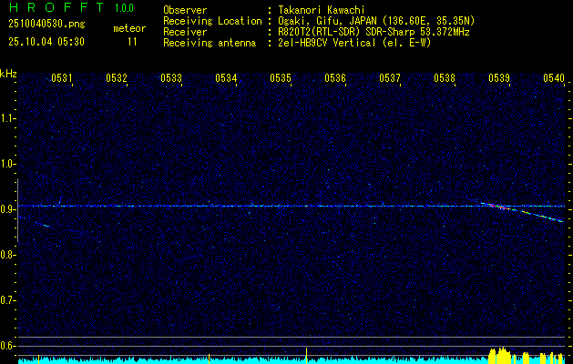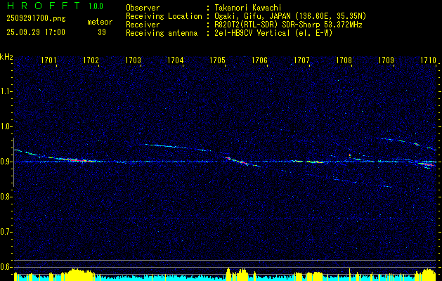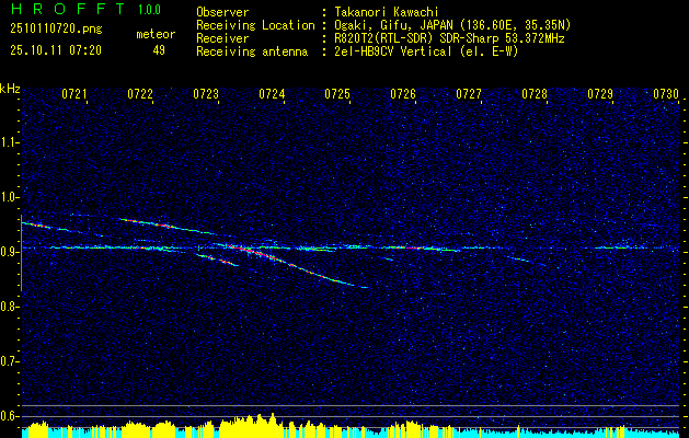 0.9kHz附近に発生している『点』または『塊』が流星によるエコーです.