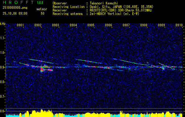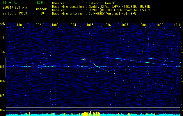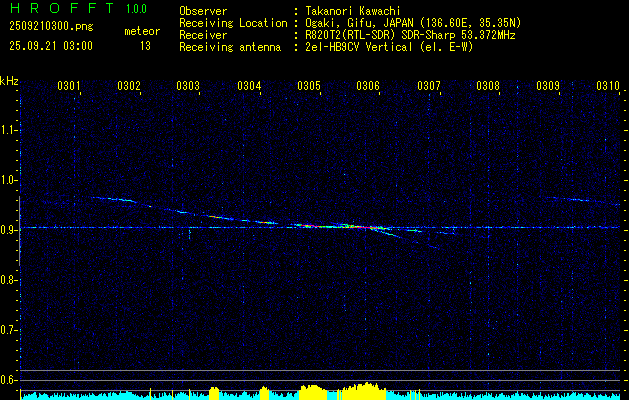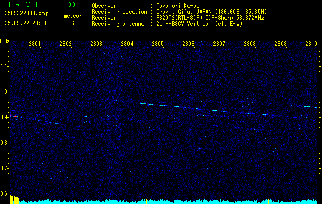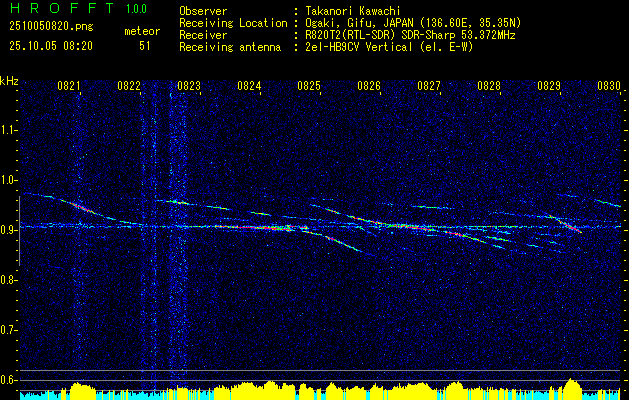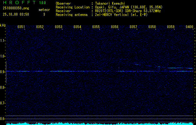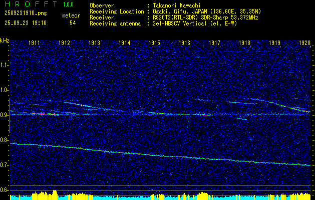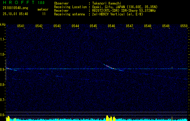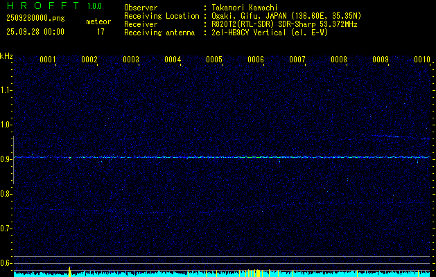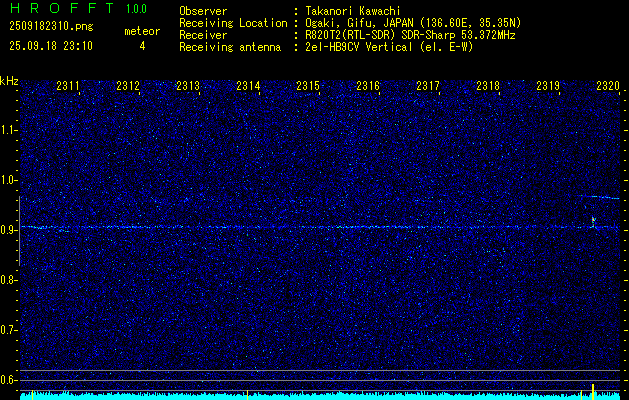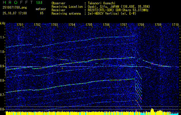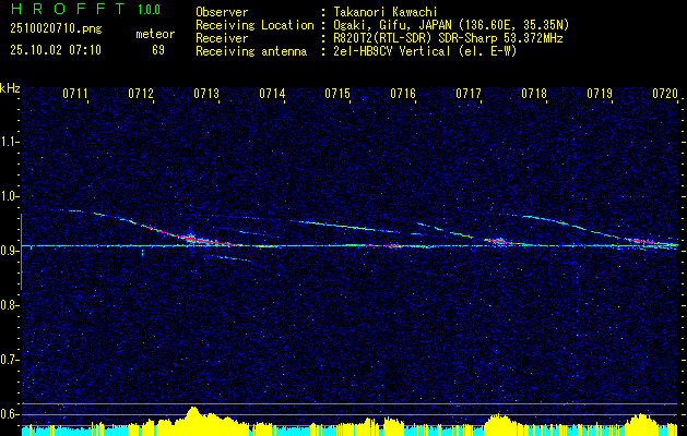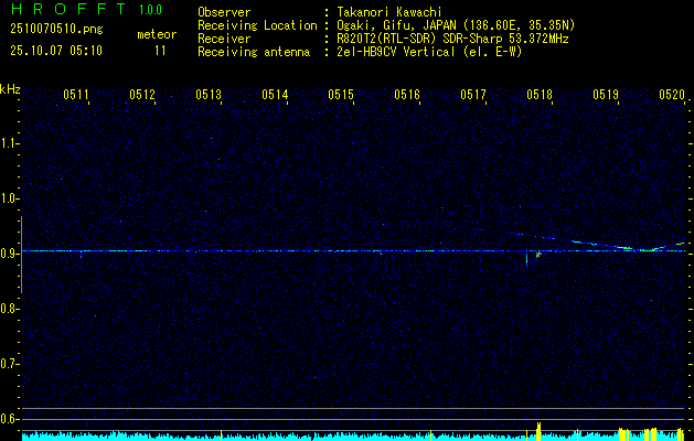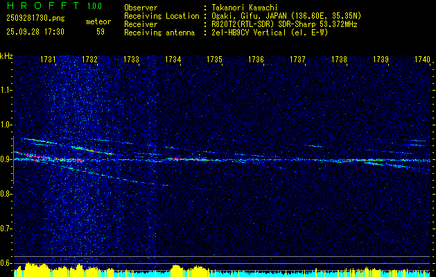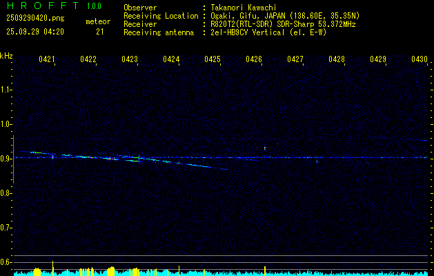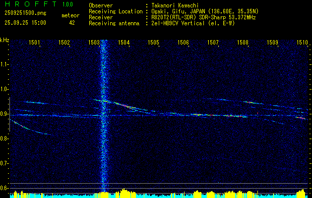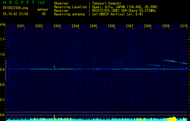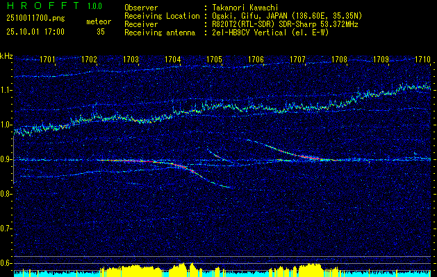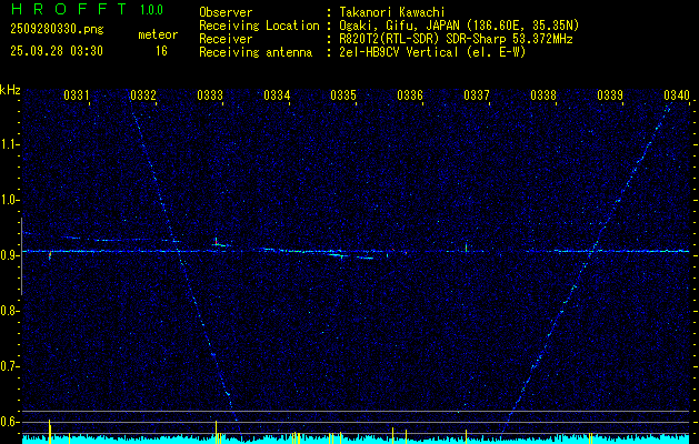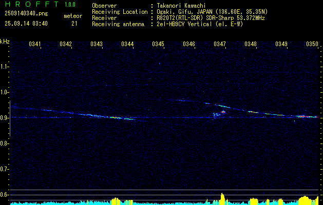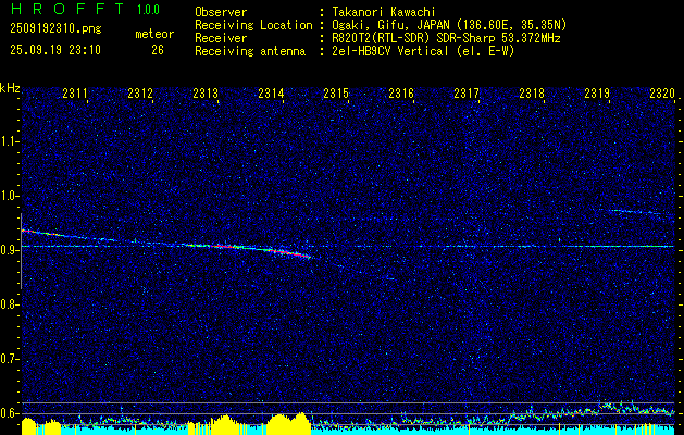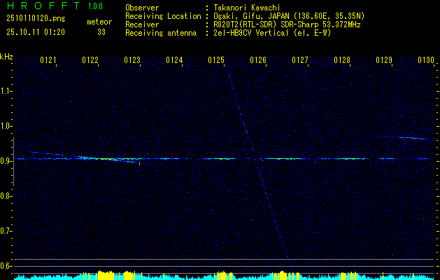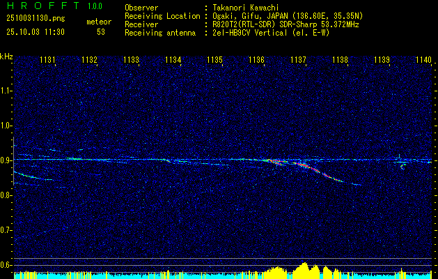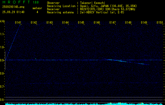 0.9kHz附近に発生している『点』または『塊』が流星によるエコーです.