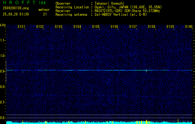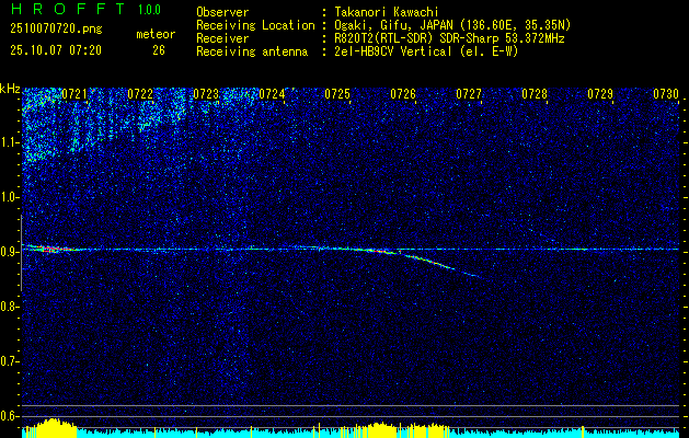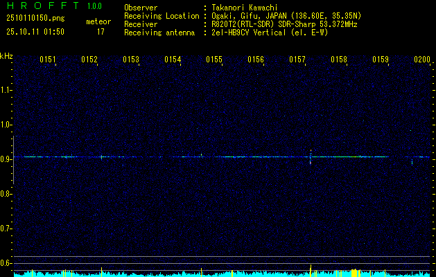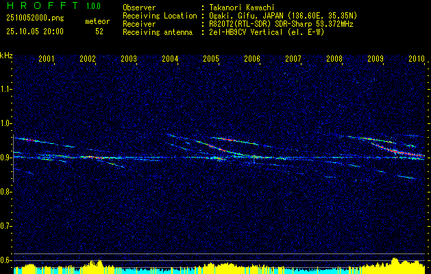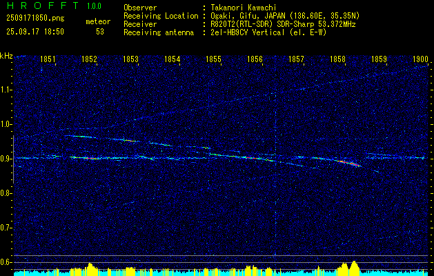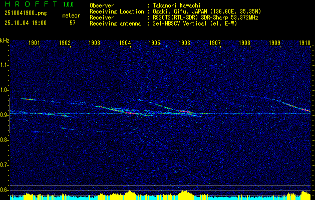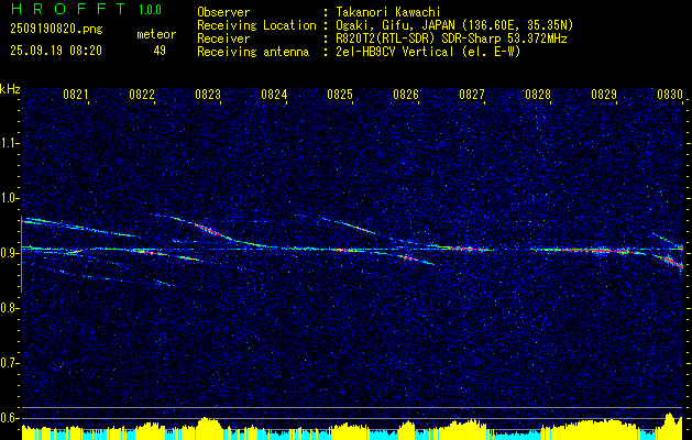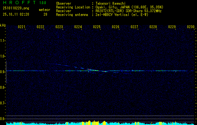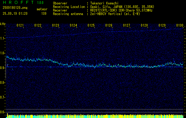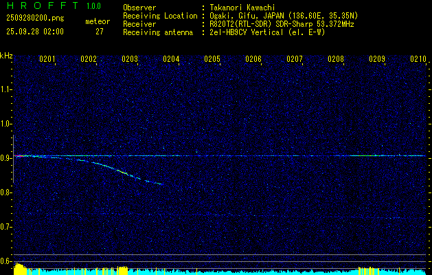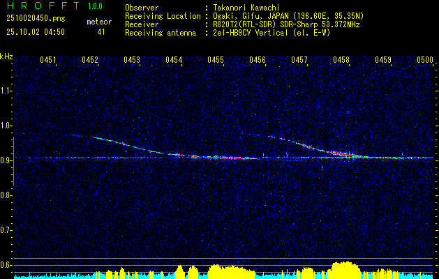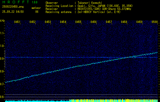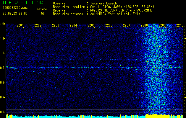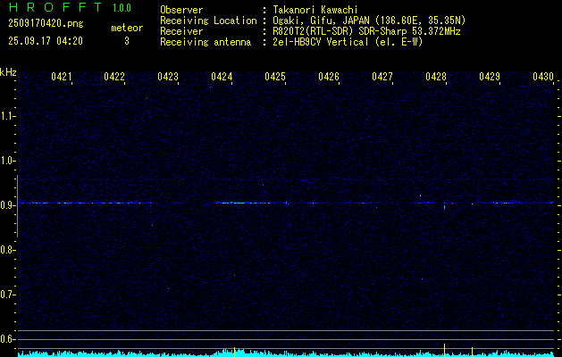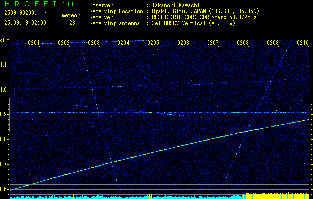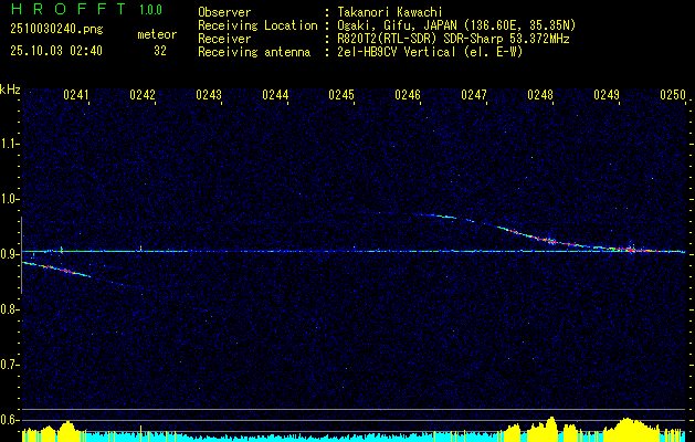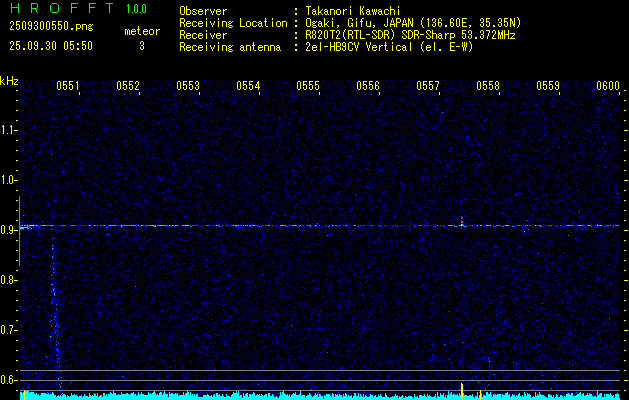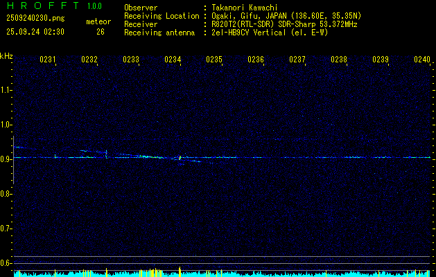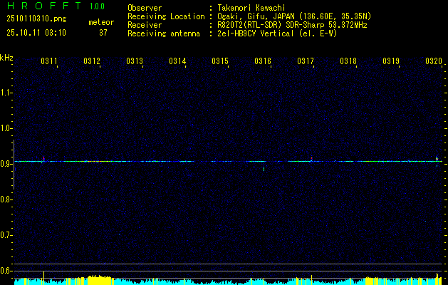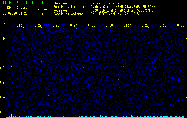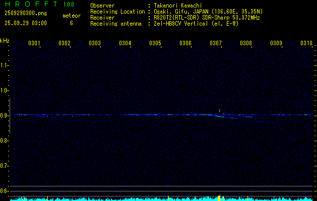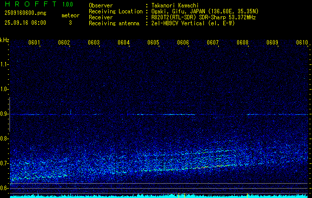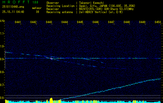 0.9kHz附近に発生している『点』または『塊』が流星によるエコーです.