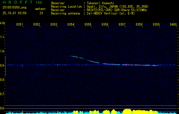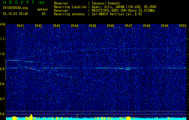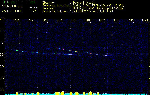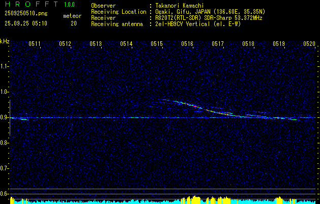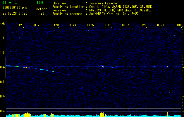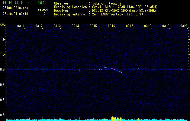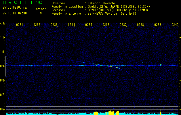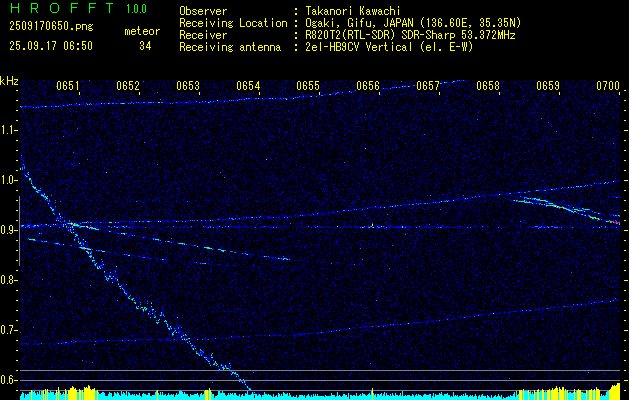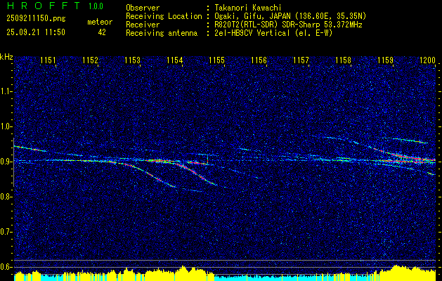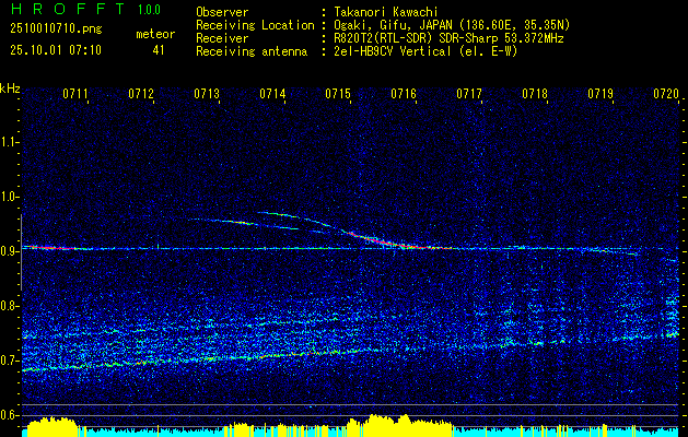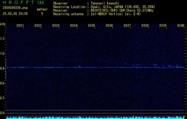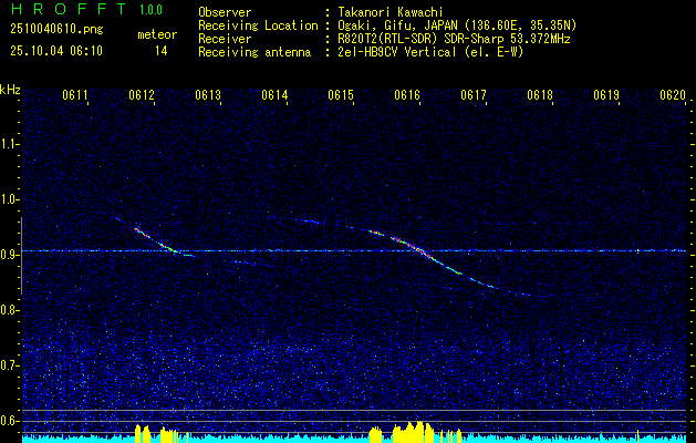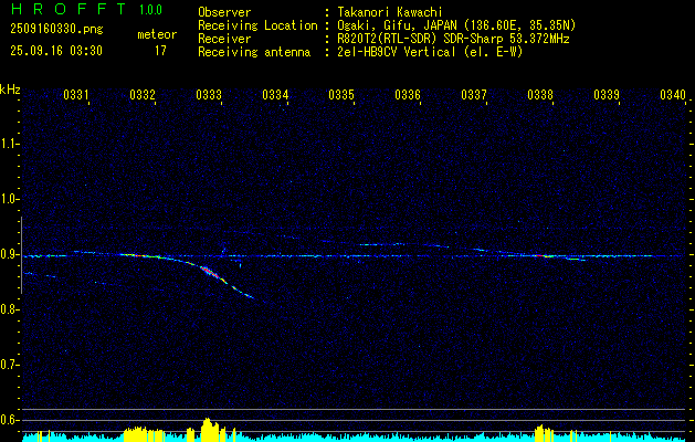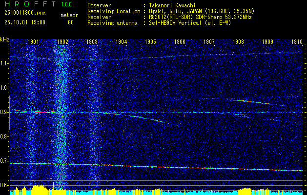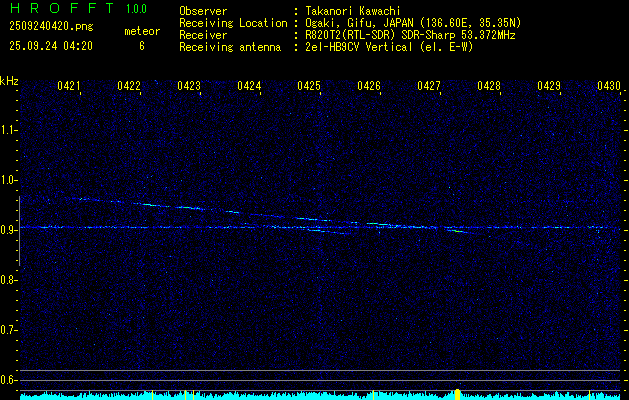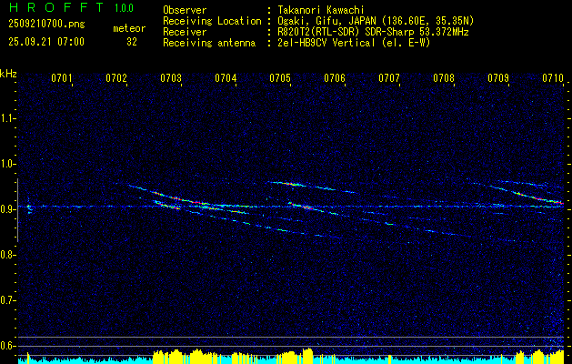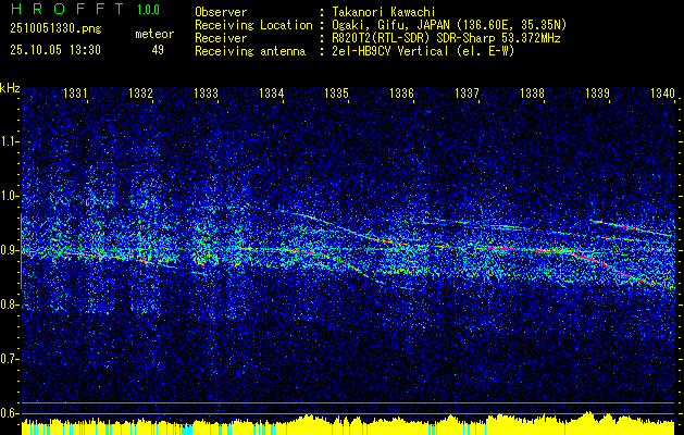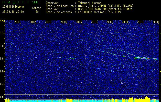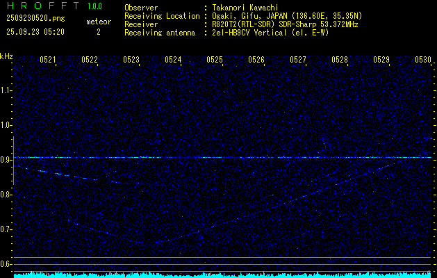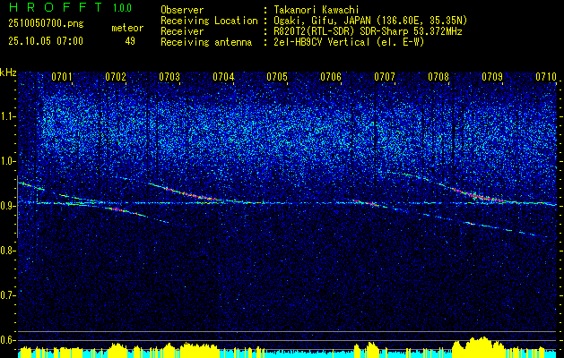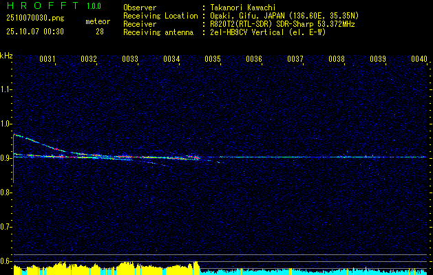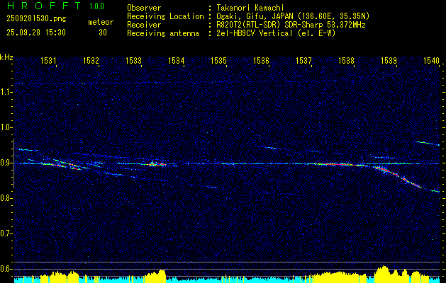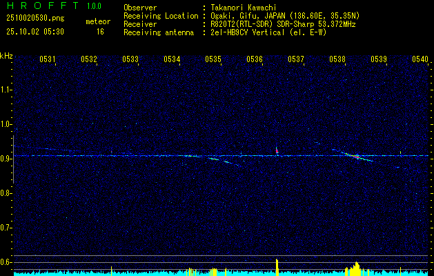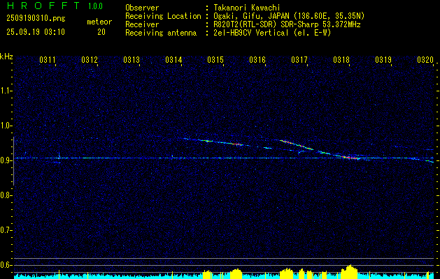 0.9kHz附近に発生している『点』または『塊』が流星によるエコーです.