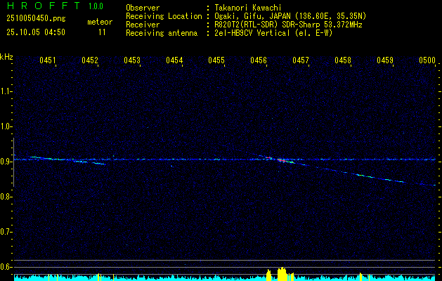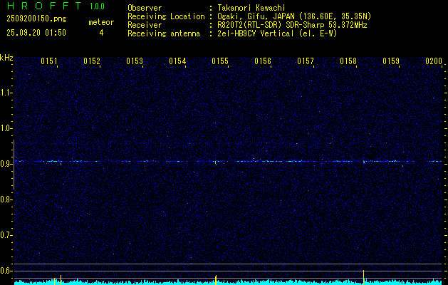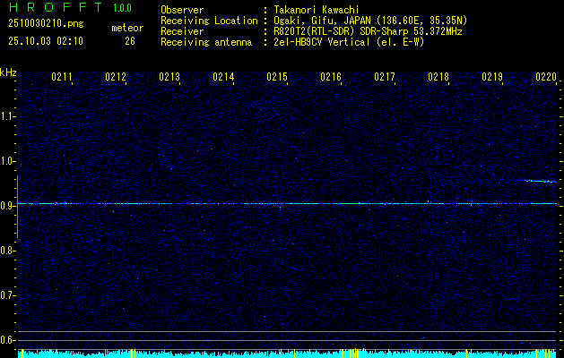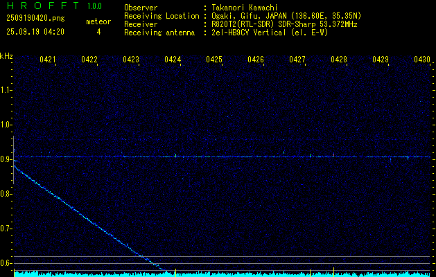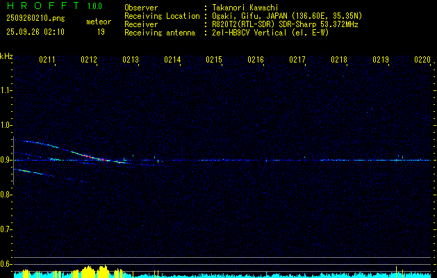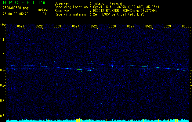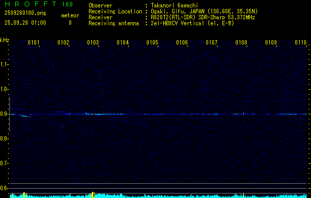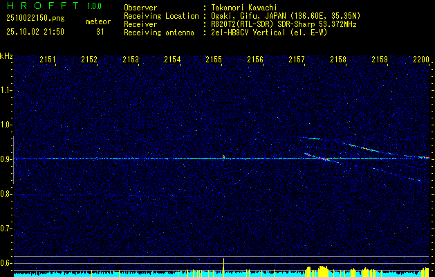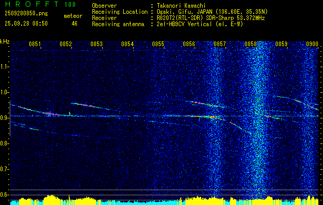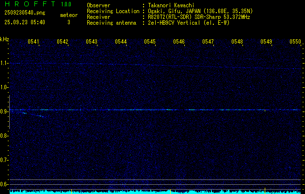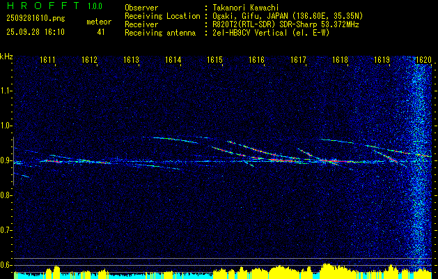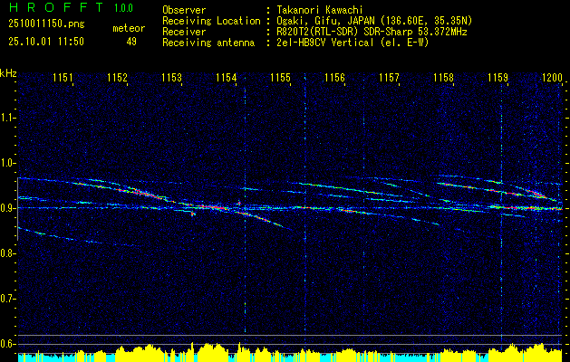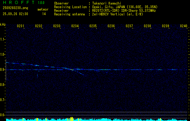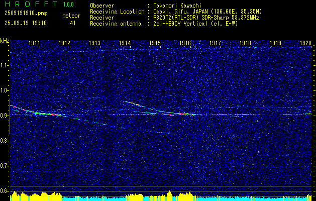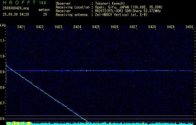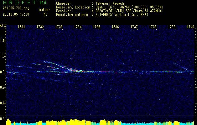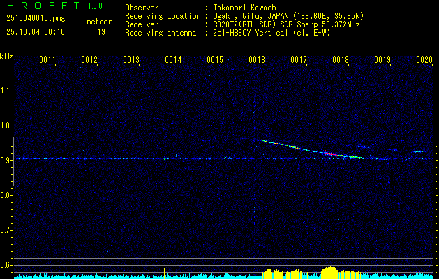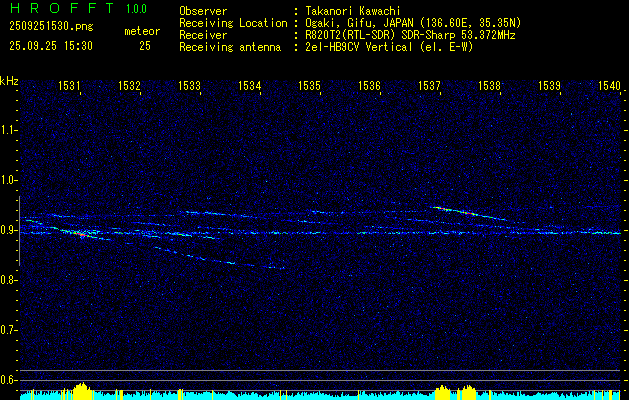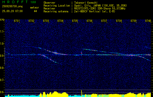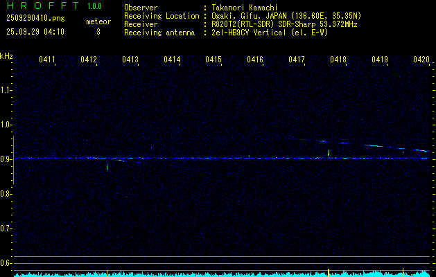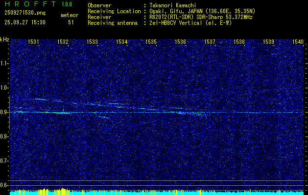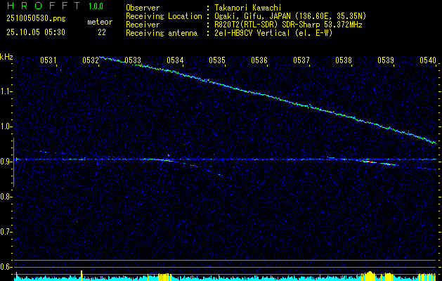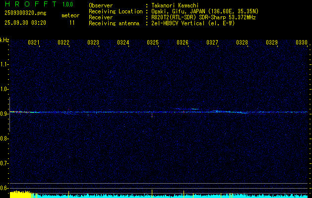 0.9kHz附近に発生している『点』または『塊』が流星によるエコーです.