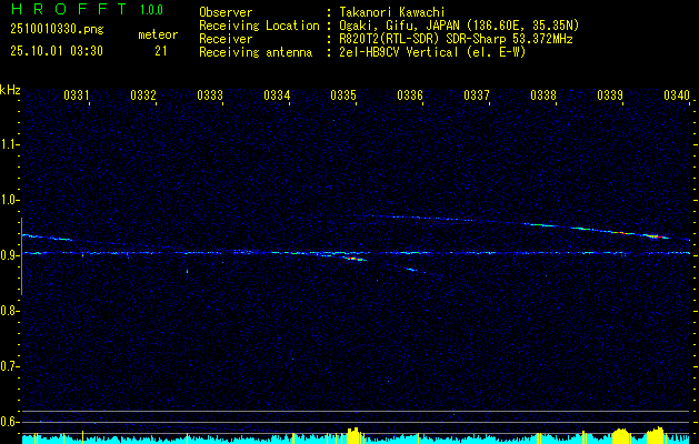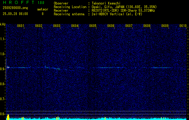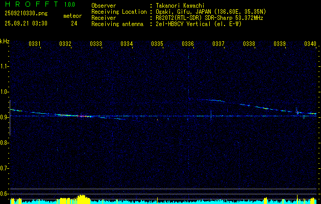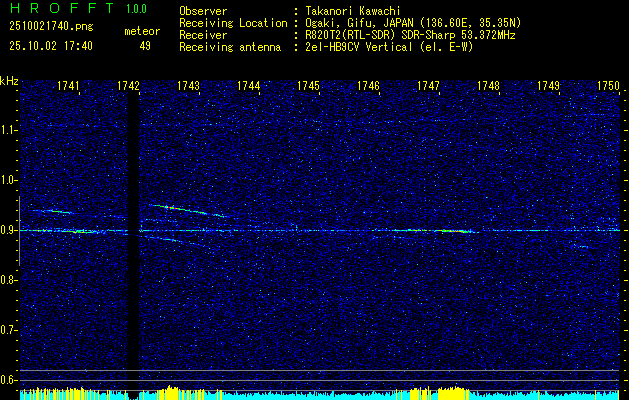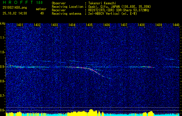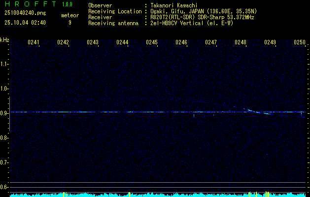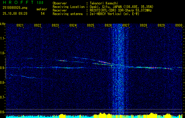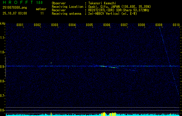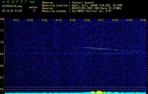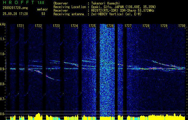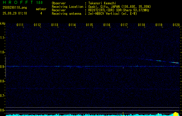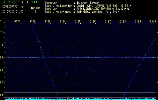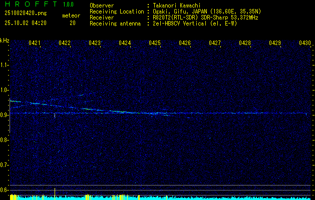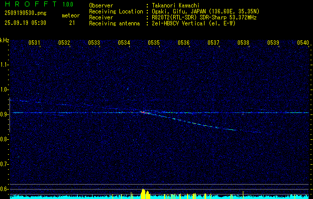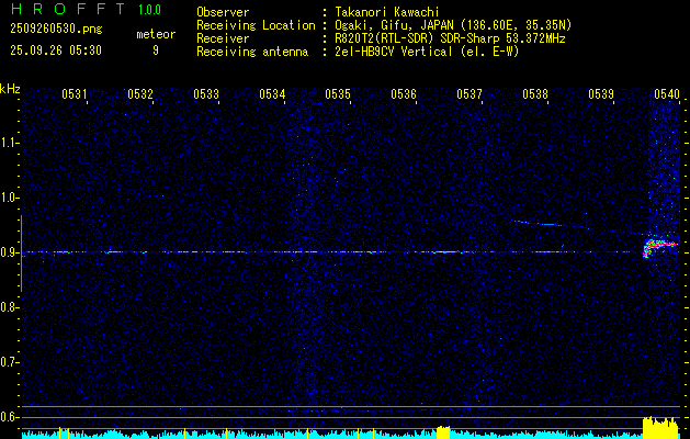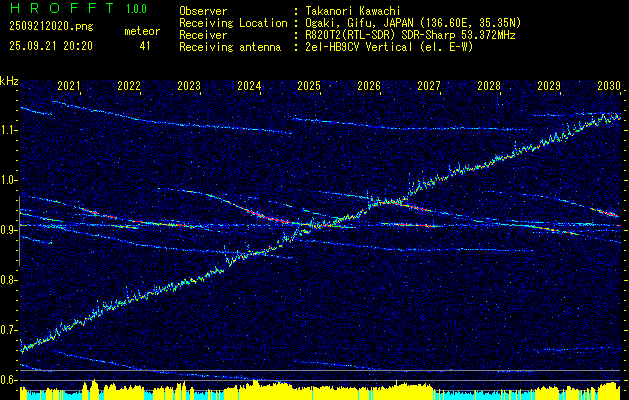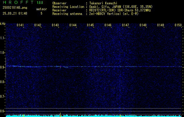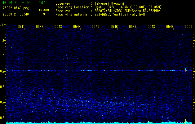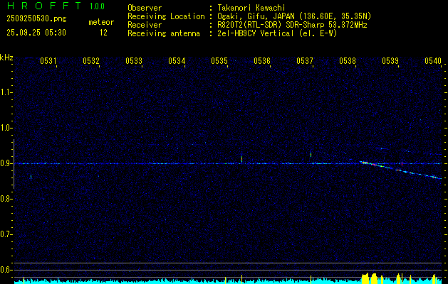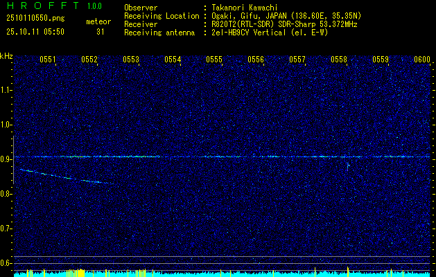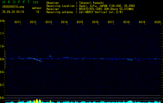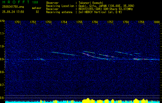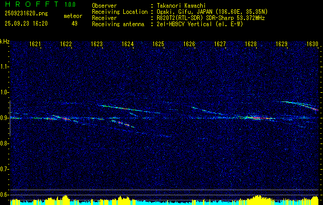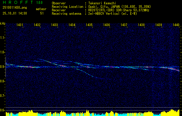 0.9kHz附近に発生している『点』または『塊』が流星によるエコーです.