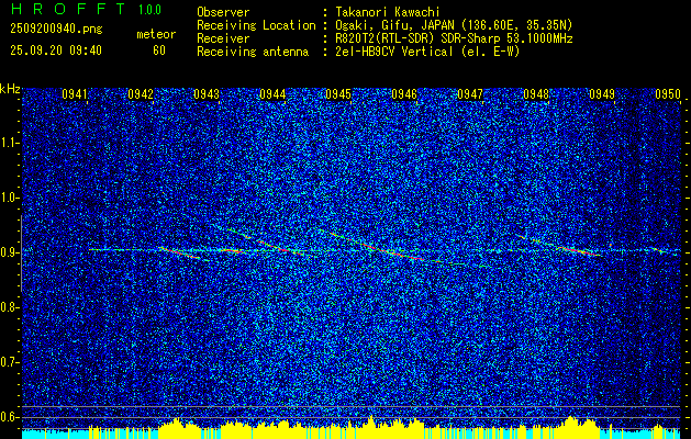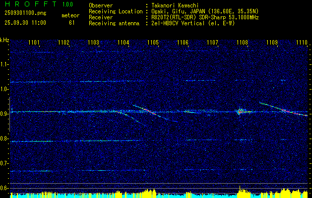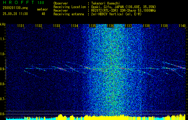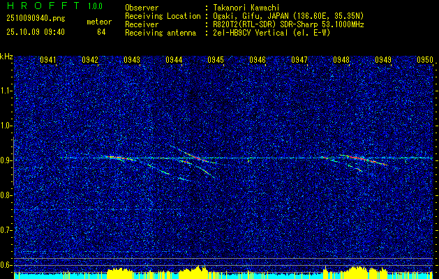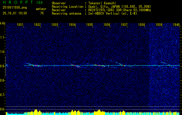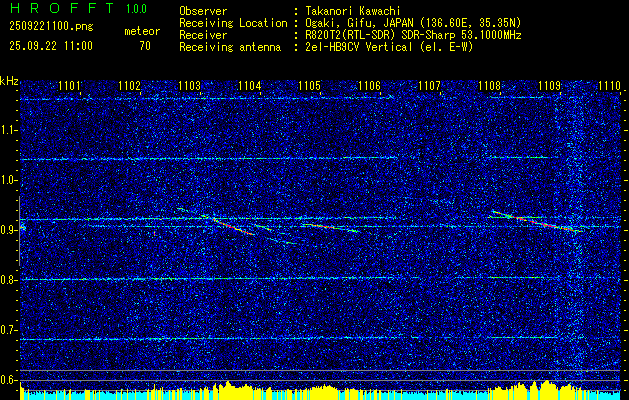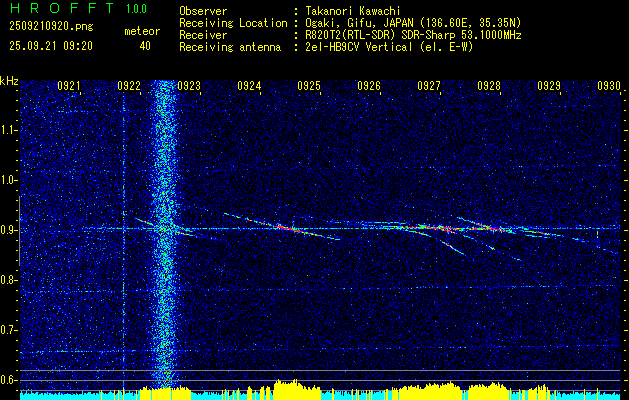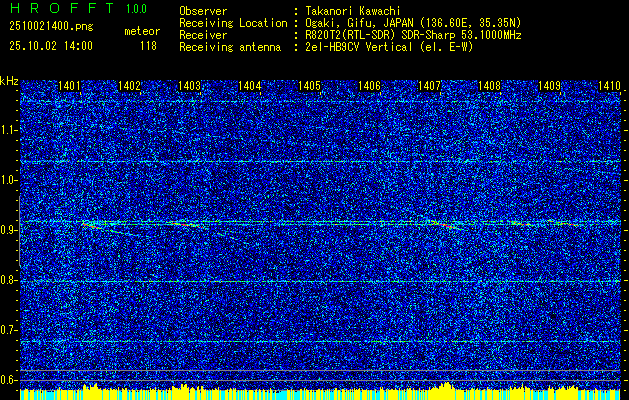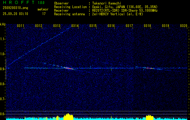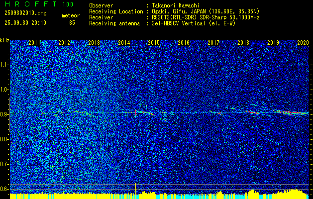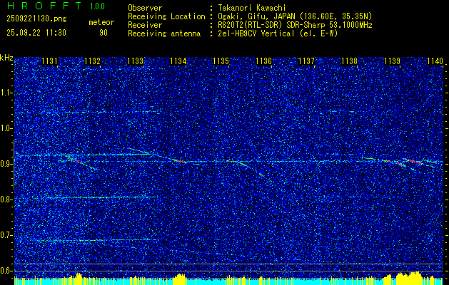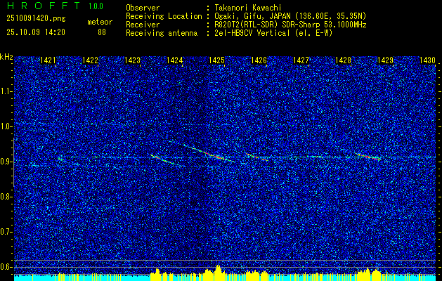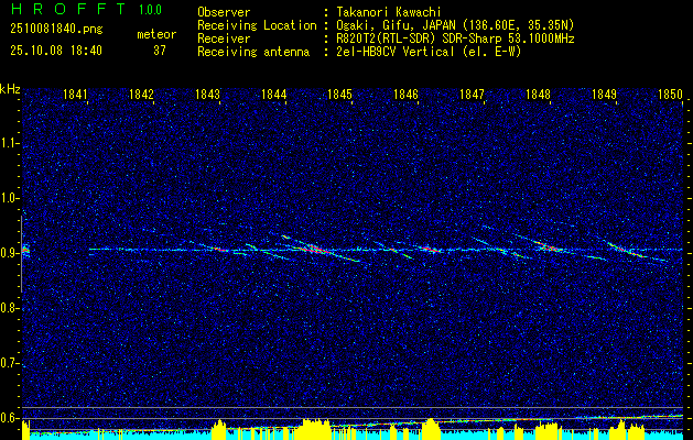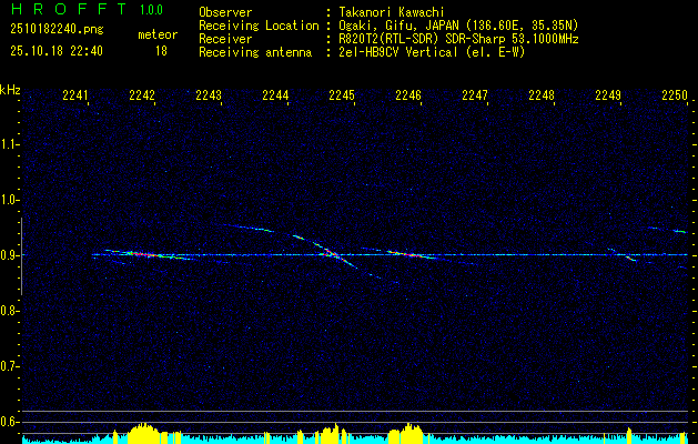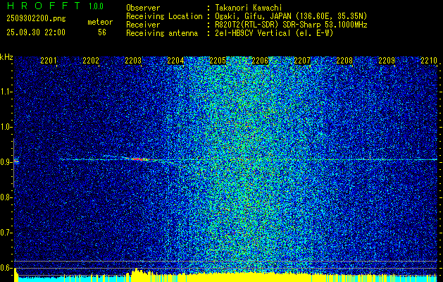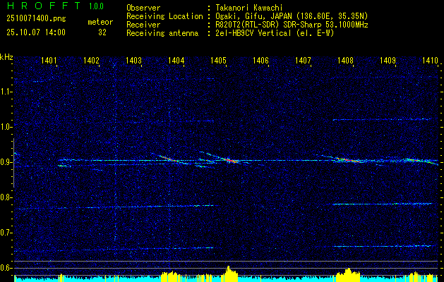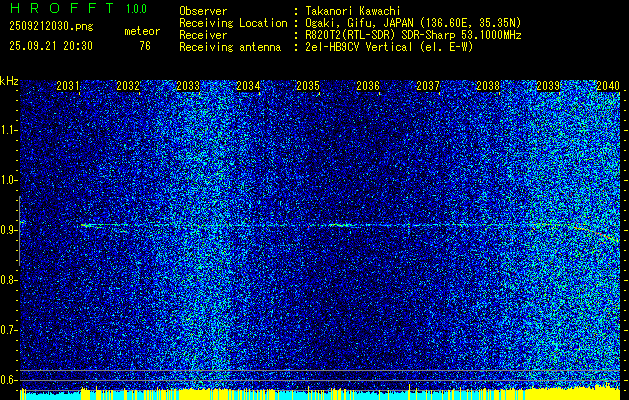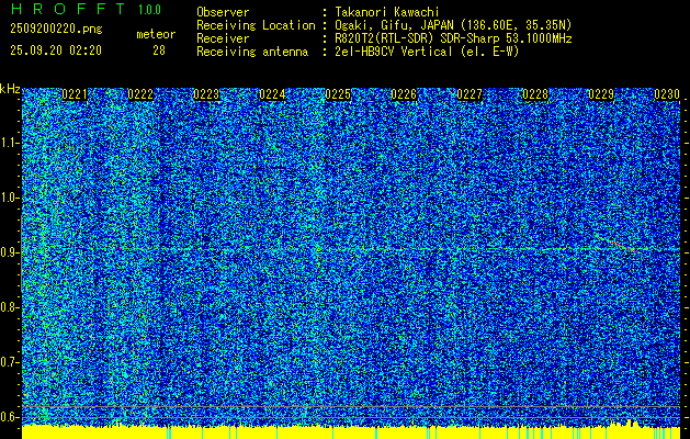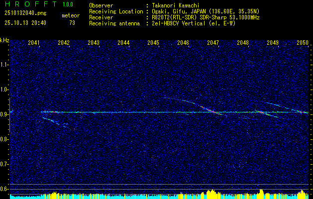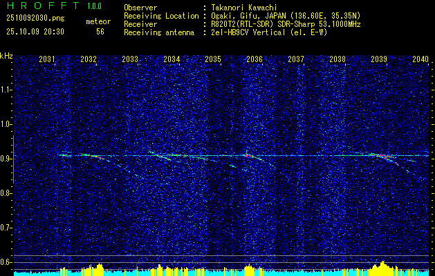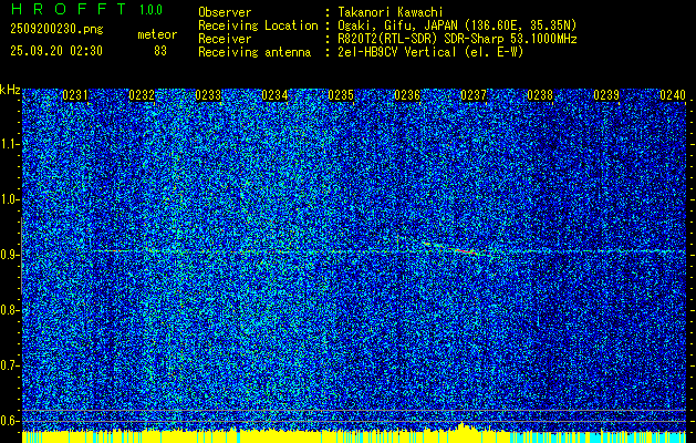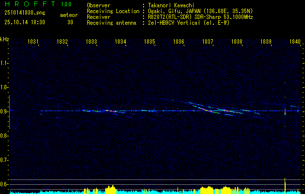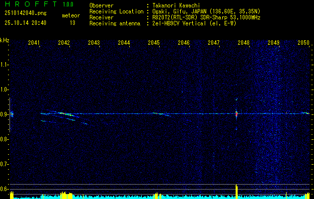 0.9kHz附近に発生している『点』または『塊』が流星によるエコーです.