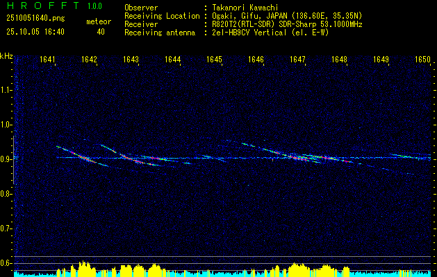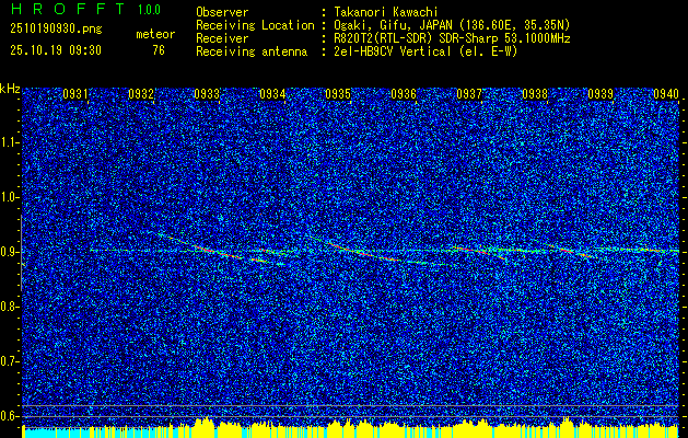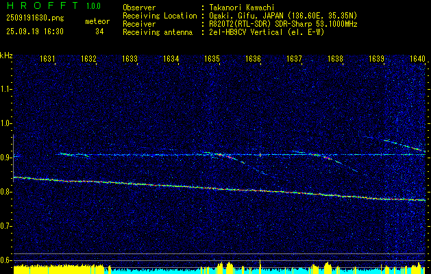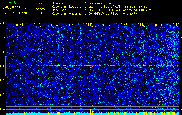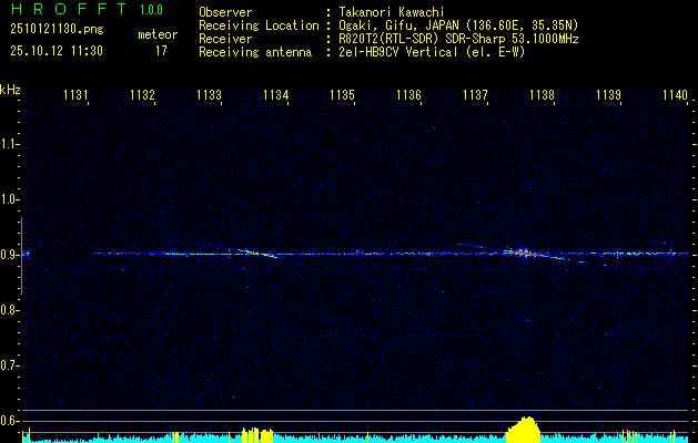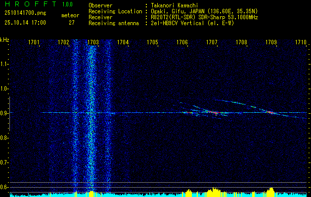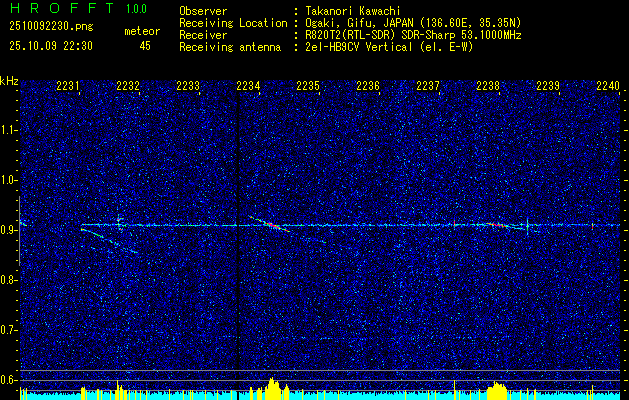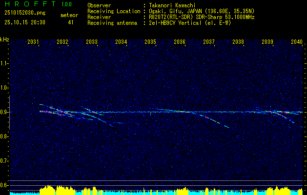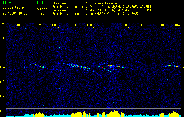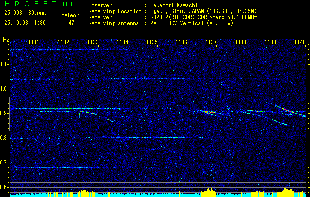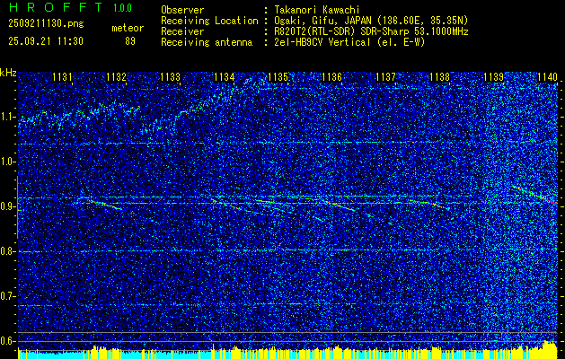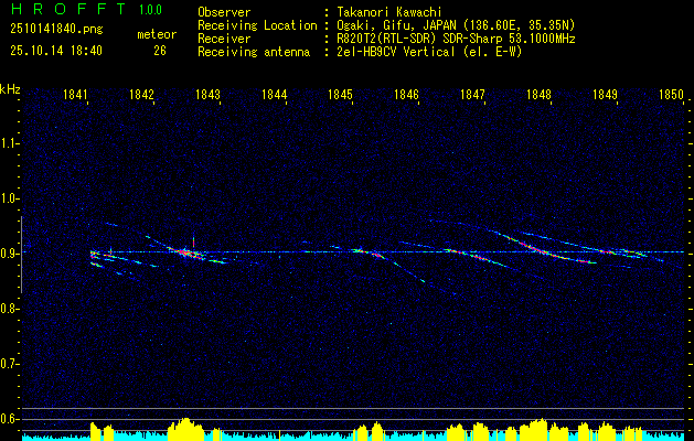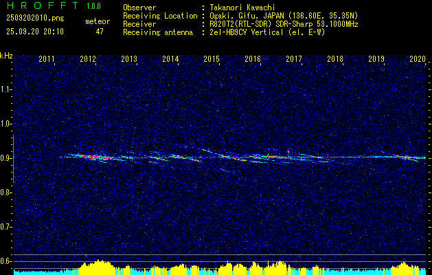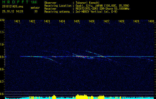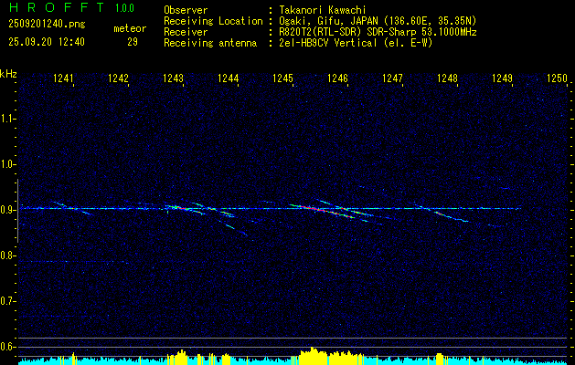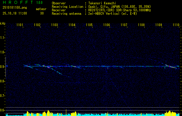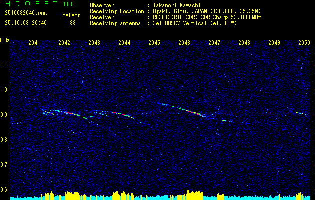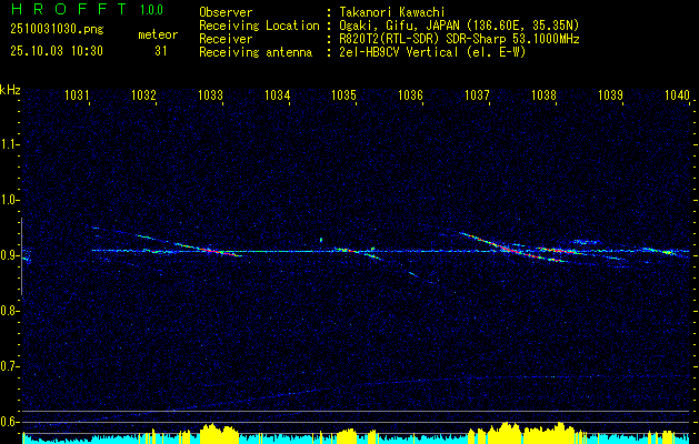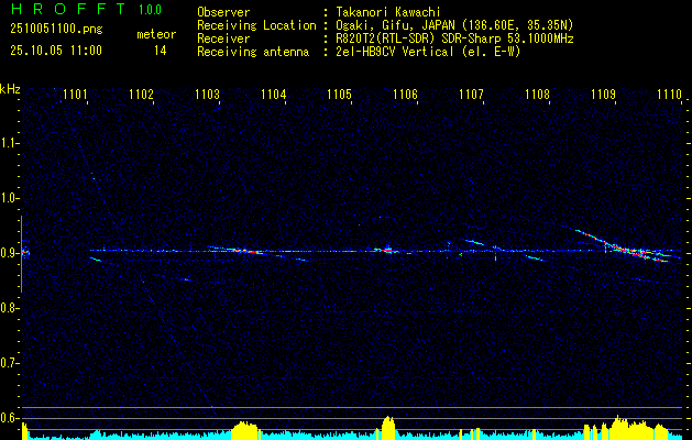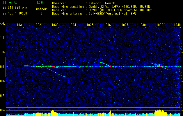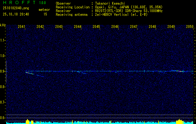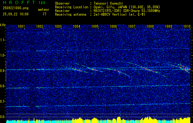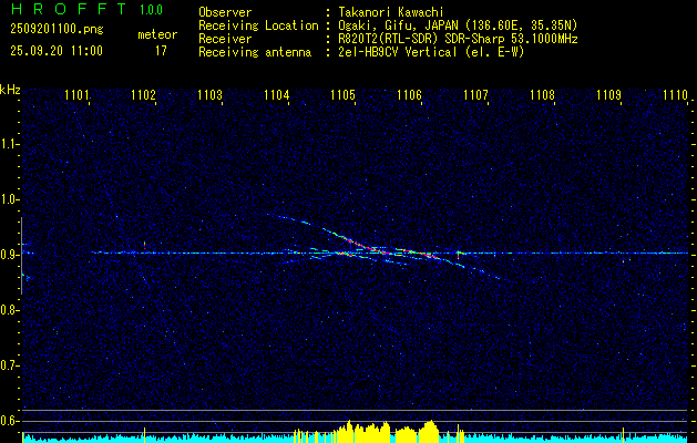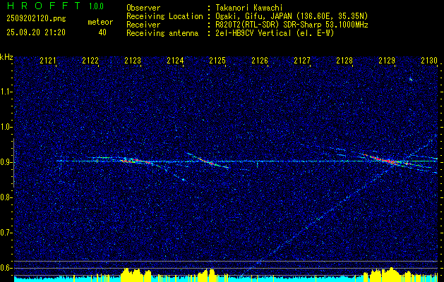 0.9kHz附近に発生している『点』または『塊』が流星によるエコーです.