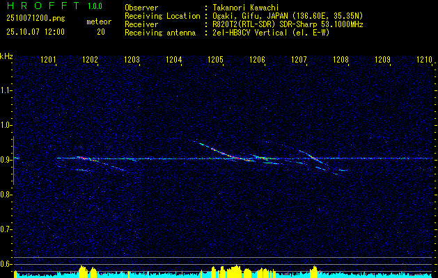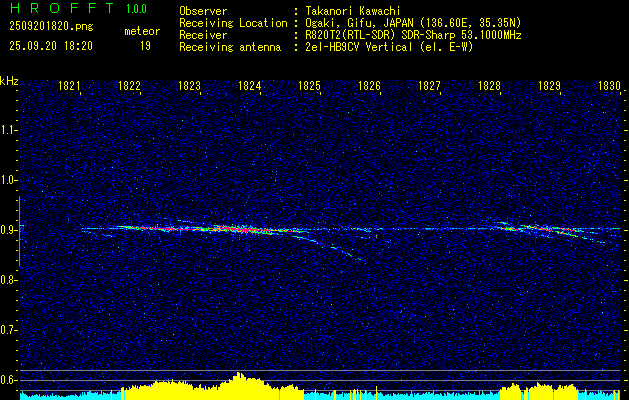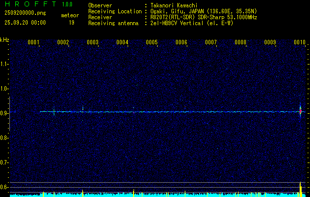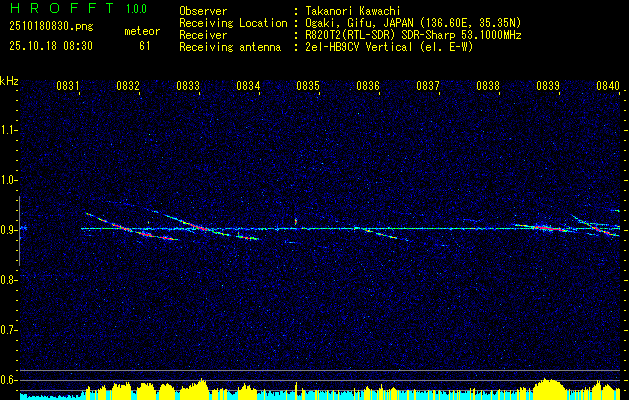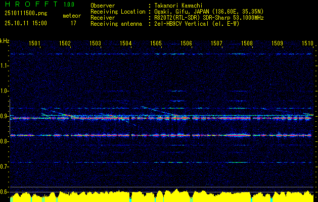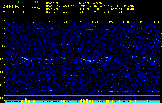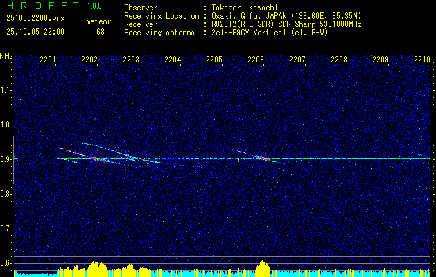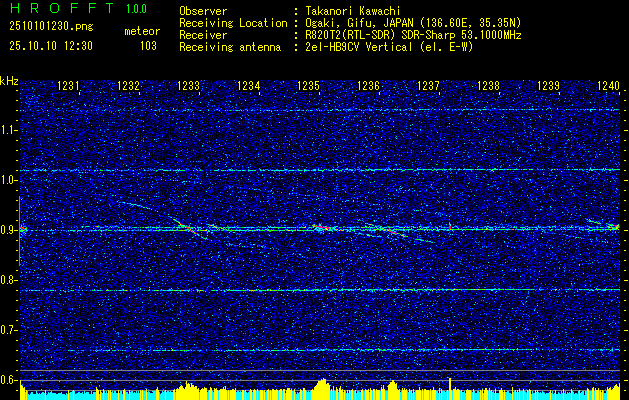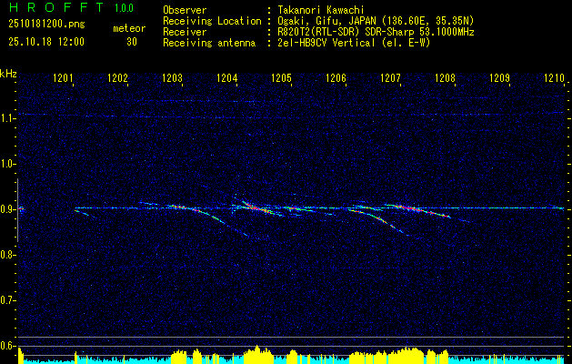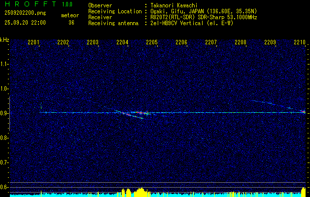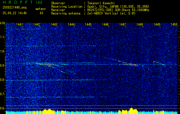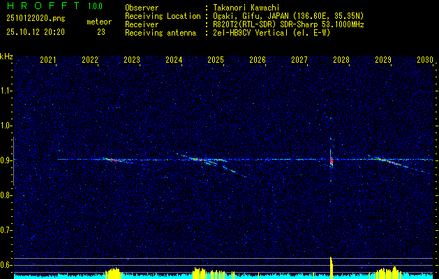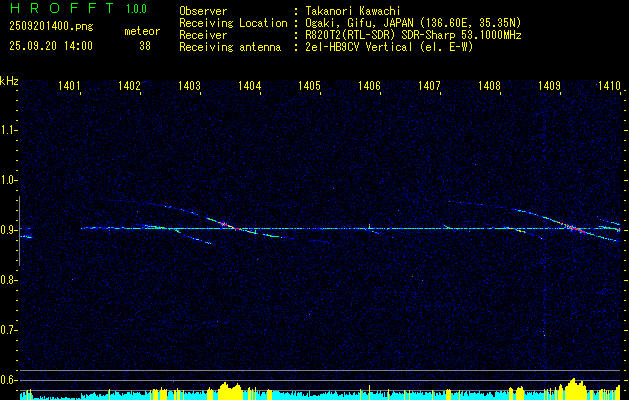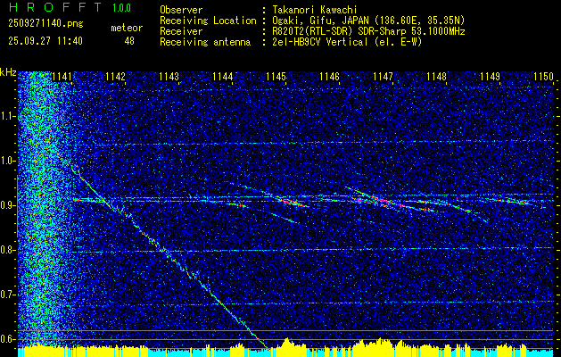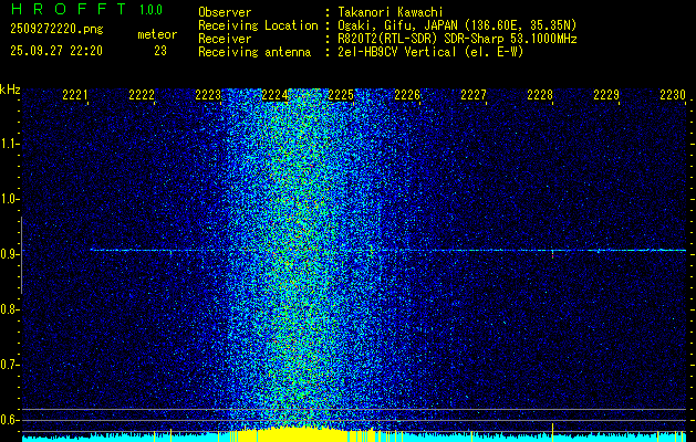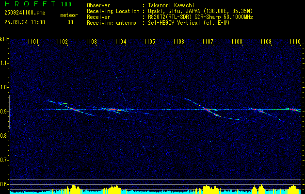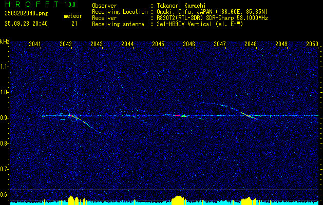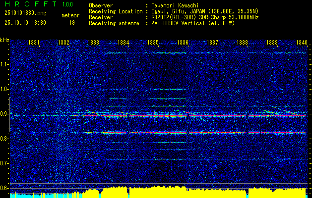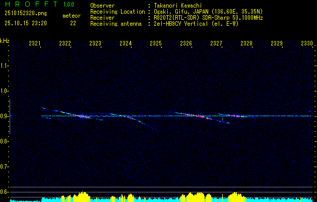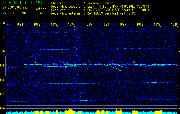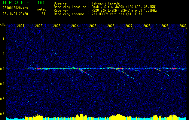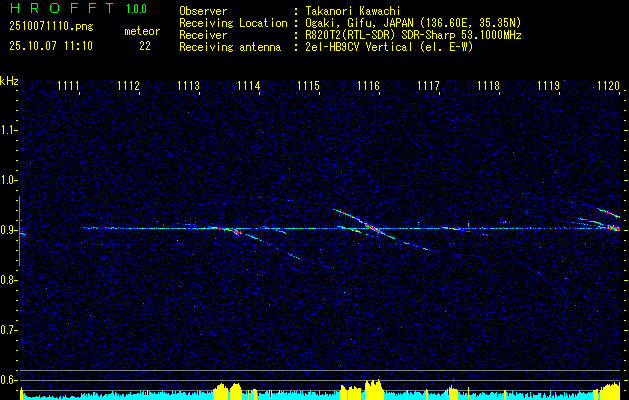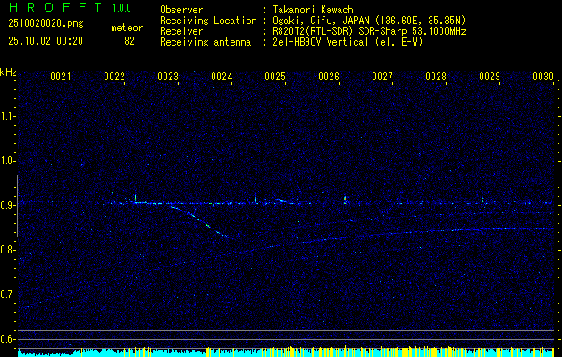 0.9kHz附近に発生している『点』または『塊』が流星によるエコーです.