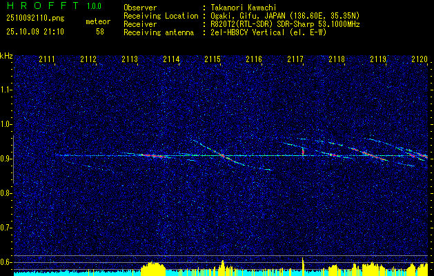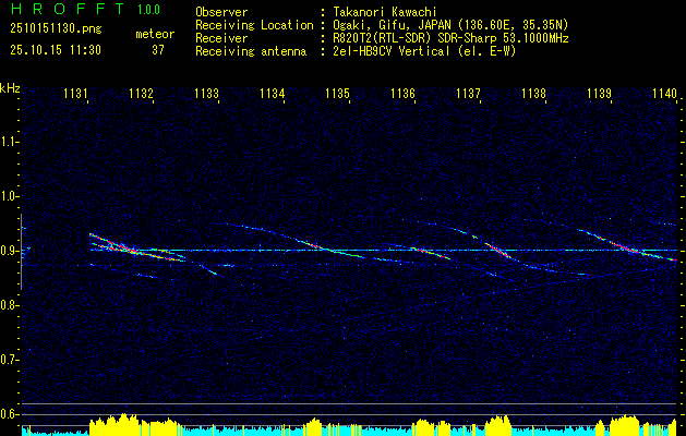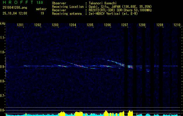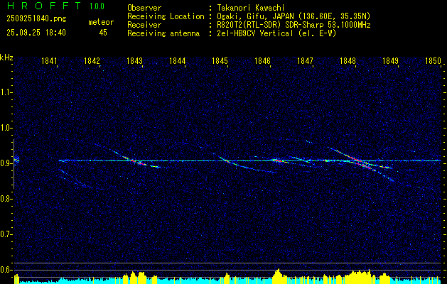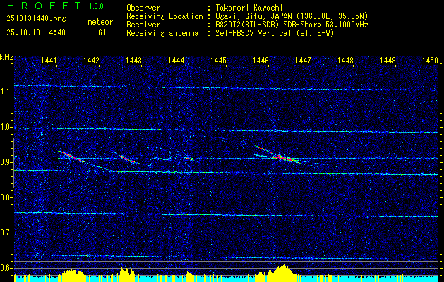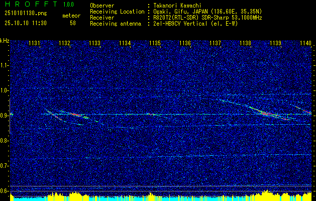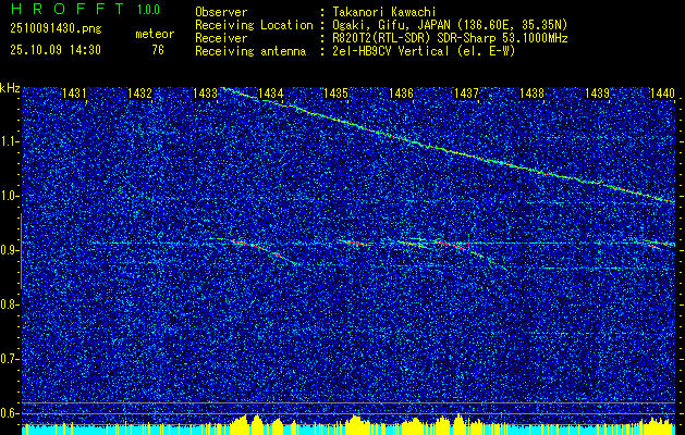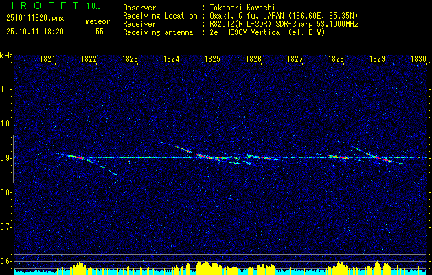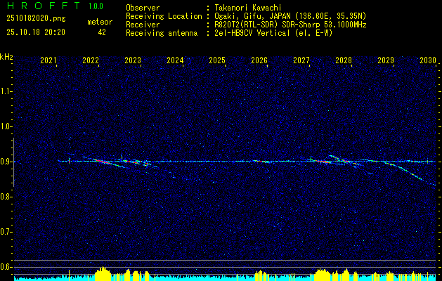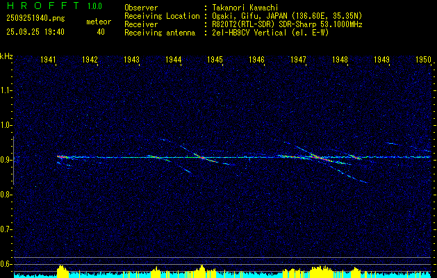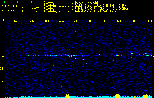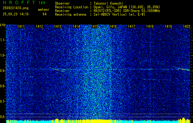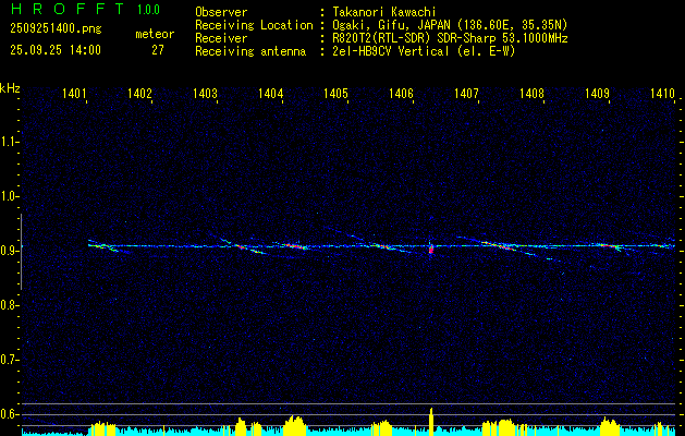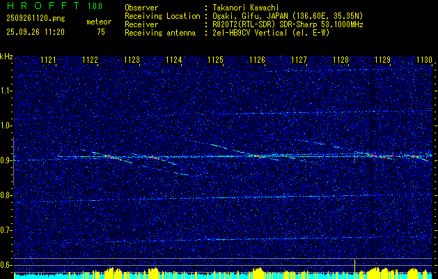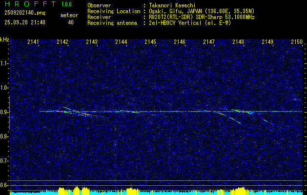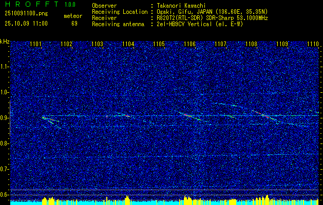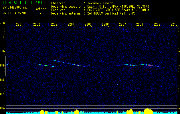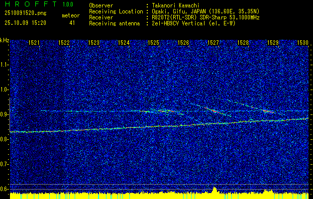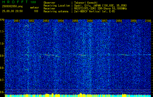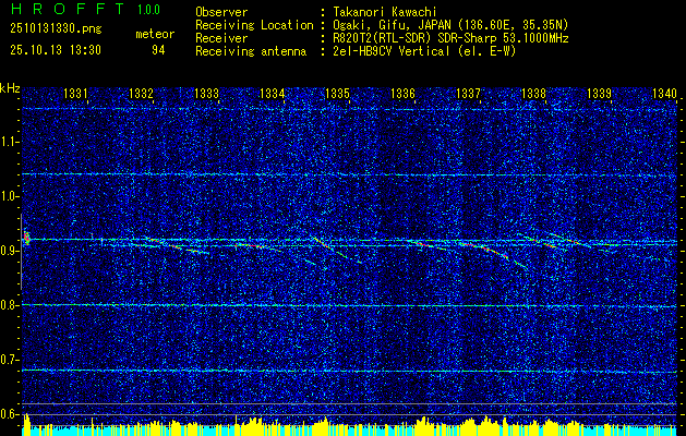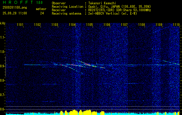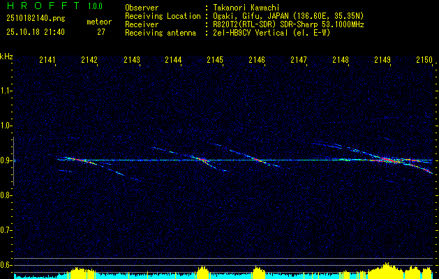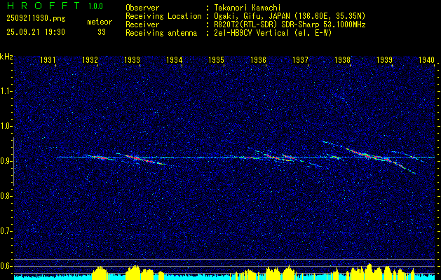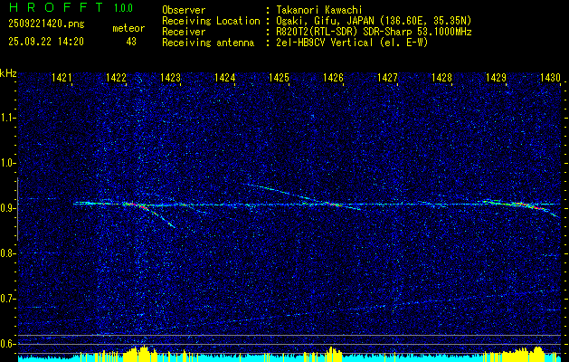 0.9kHz附近に発生している『点』または『塊』が流星によるエコーです.