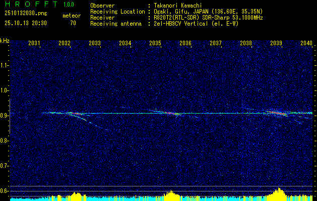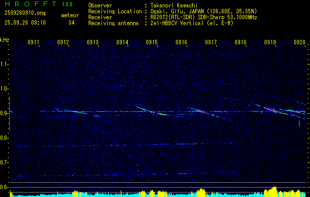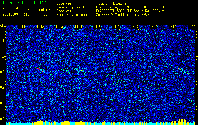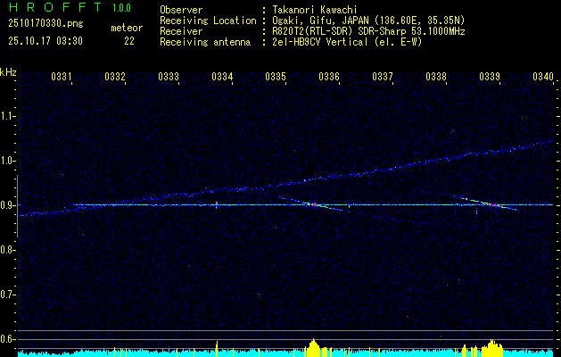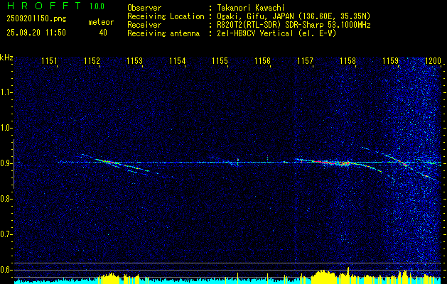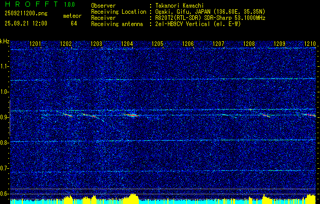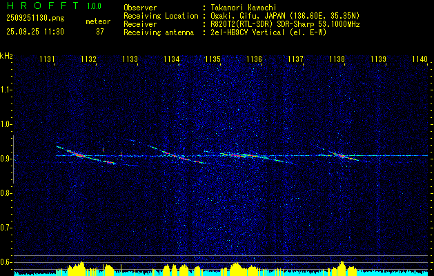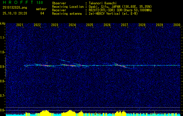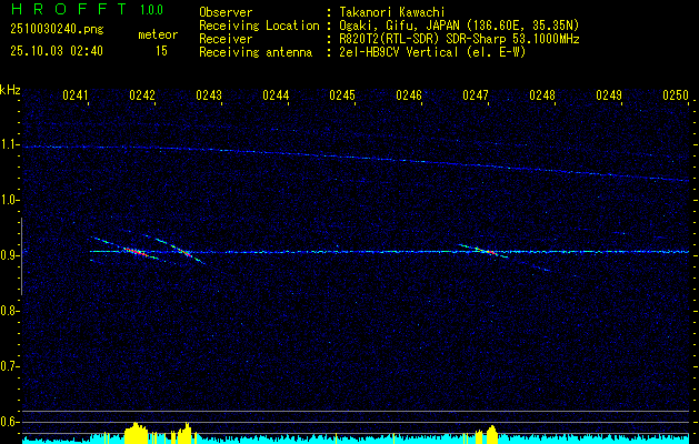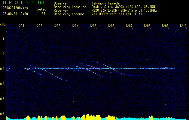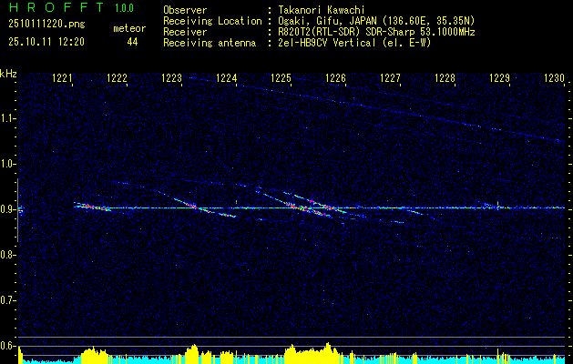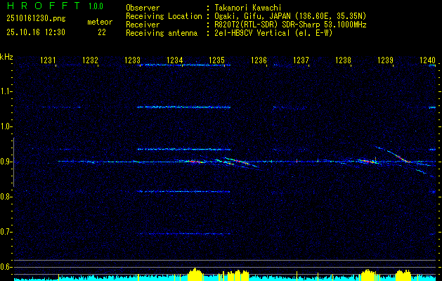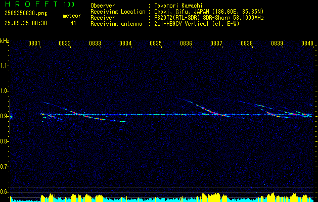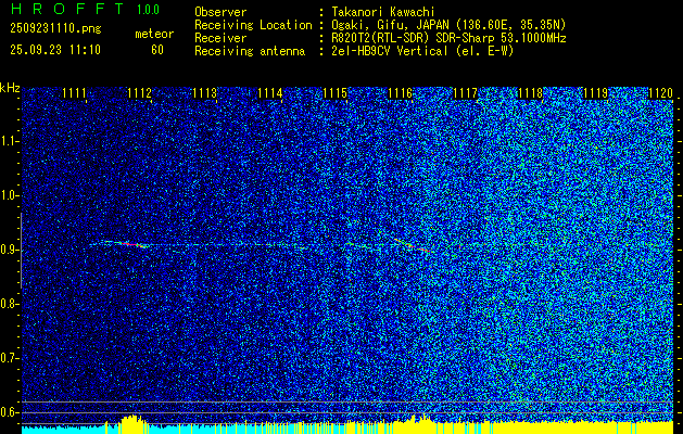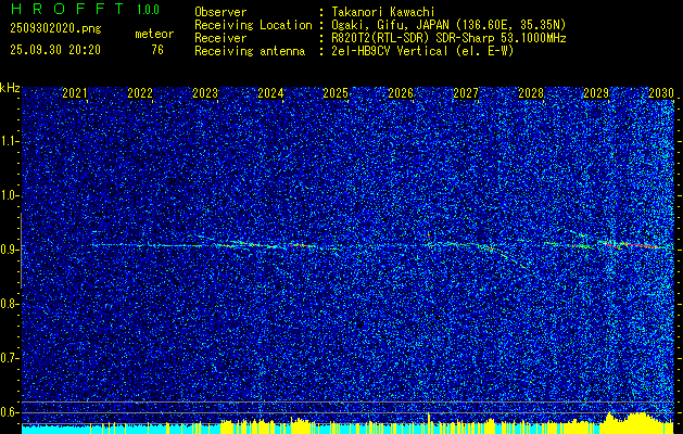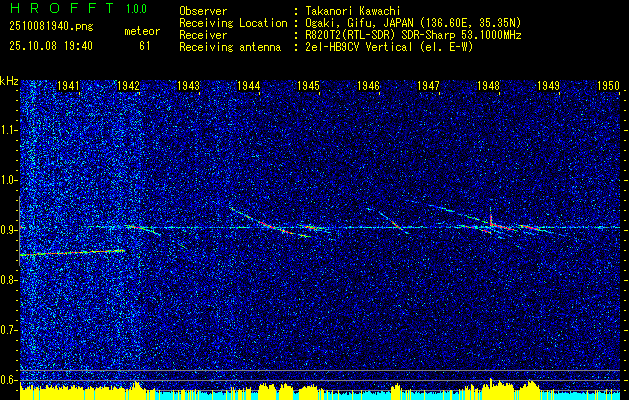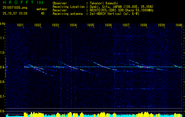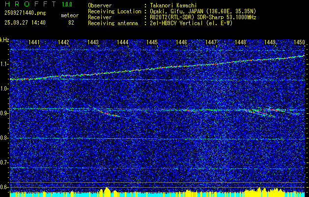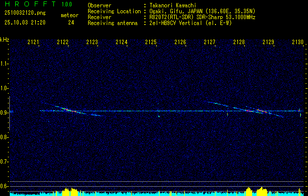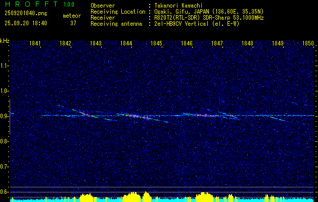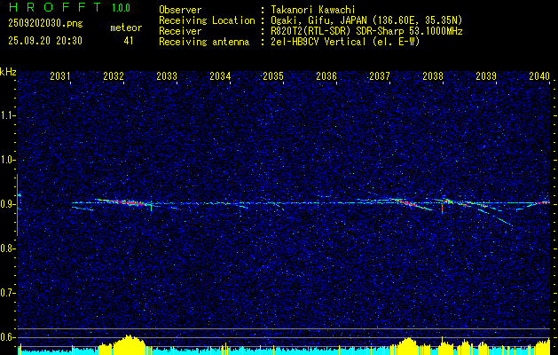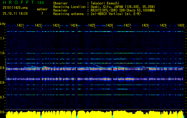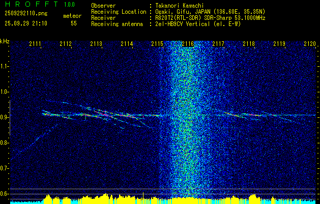 0.9kHz附近に発生している『点』または『塊』が流星によるエコーです.