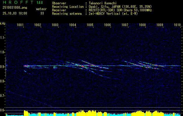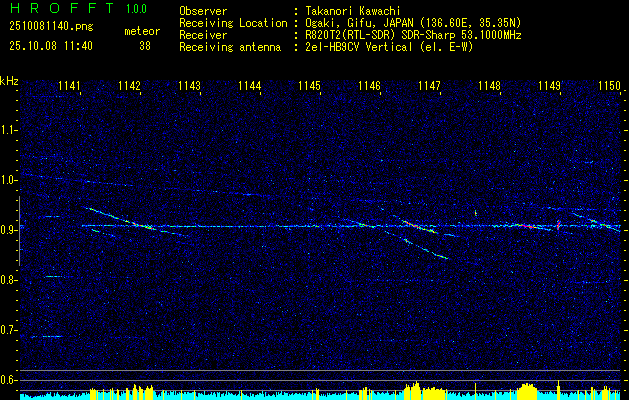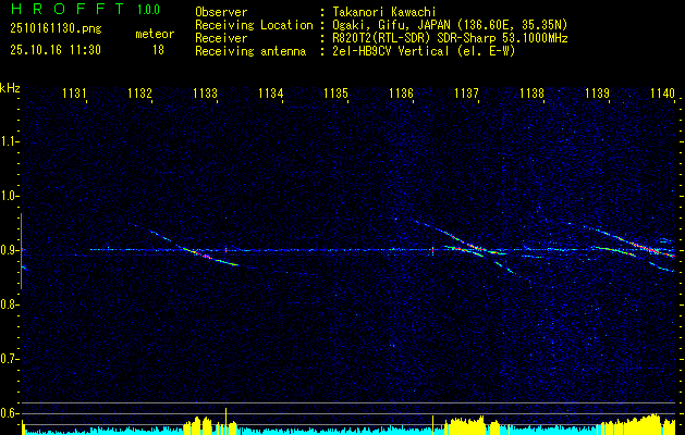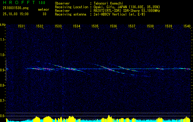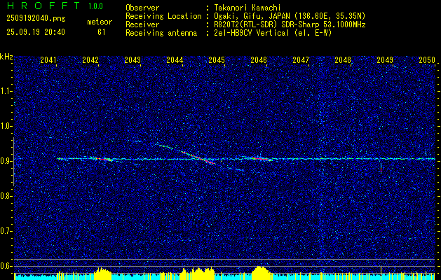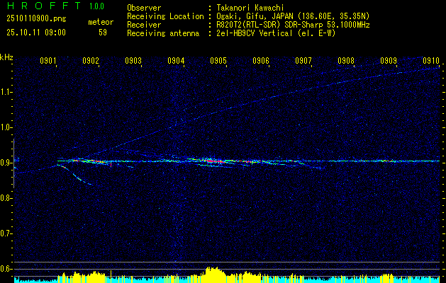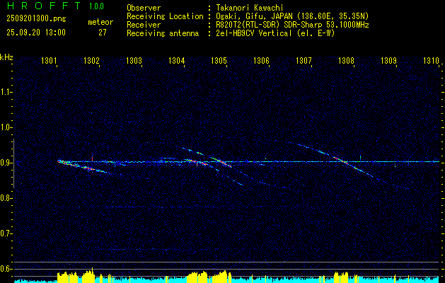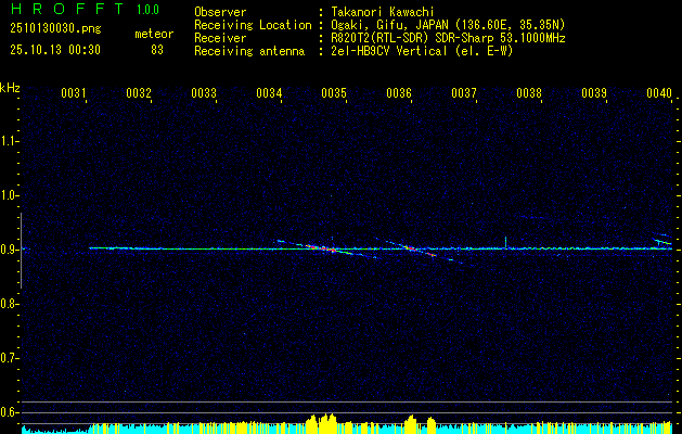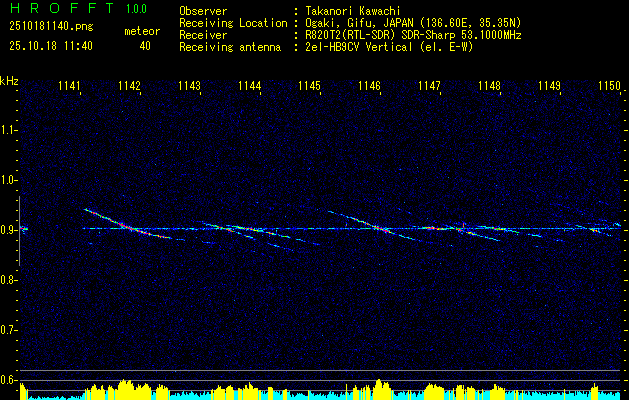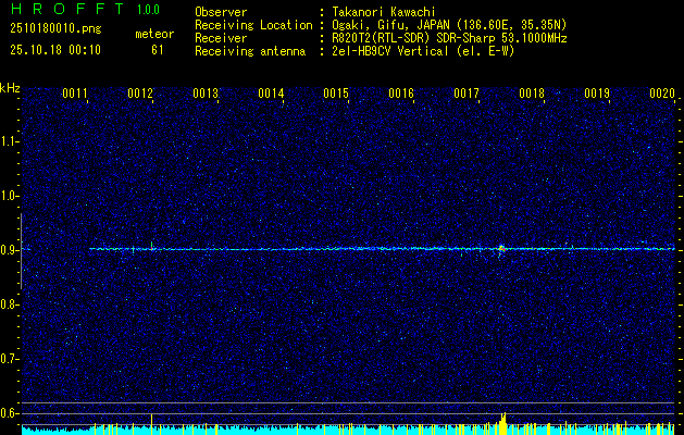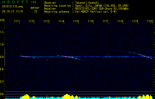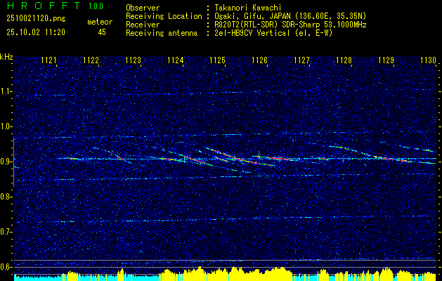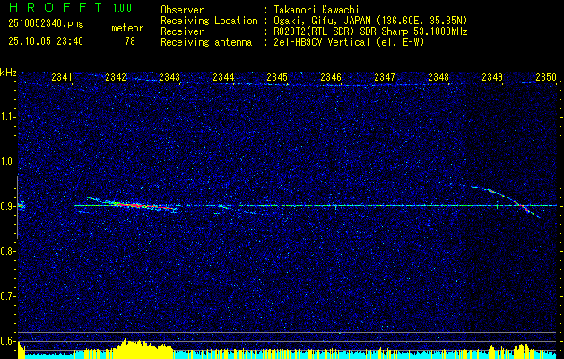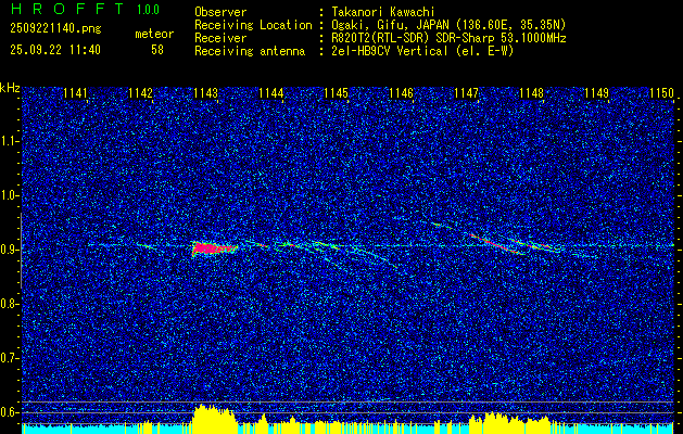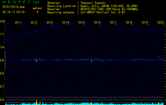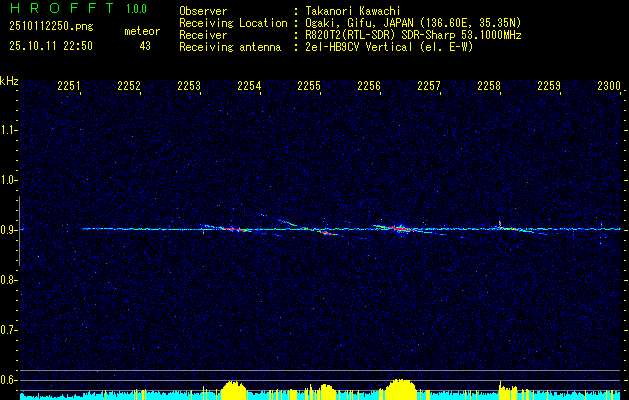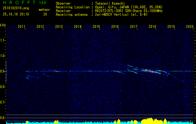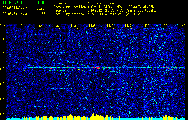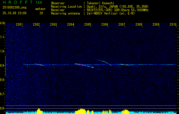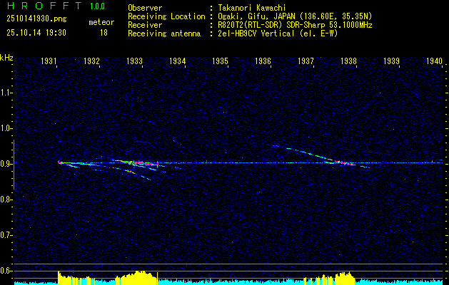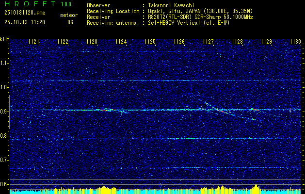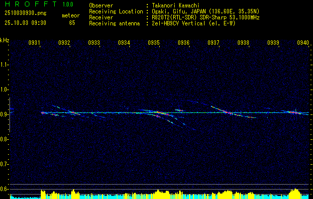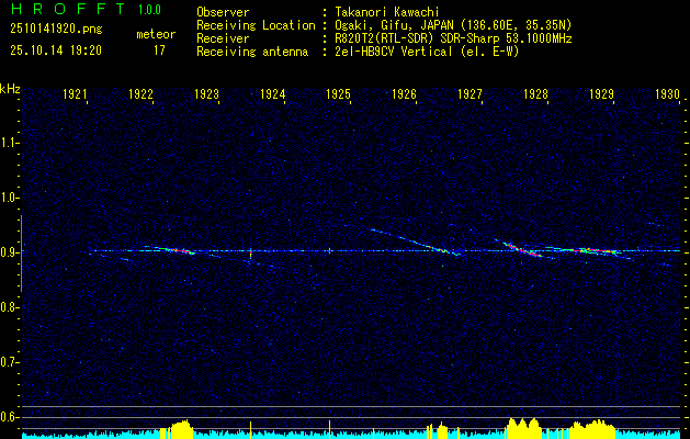 0.9kHz附近に発生している『点』または『塊』が流星によるエコーです.