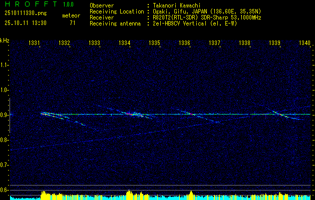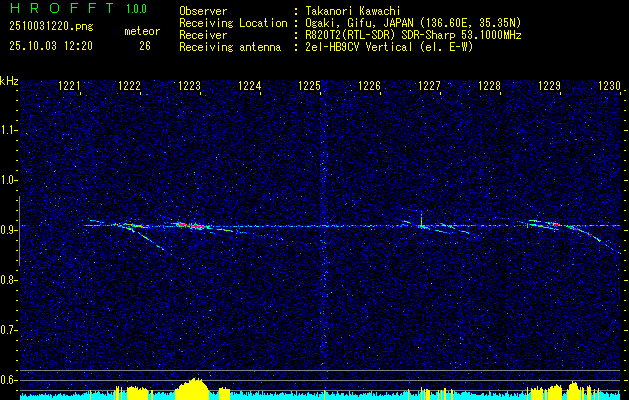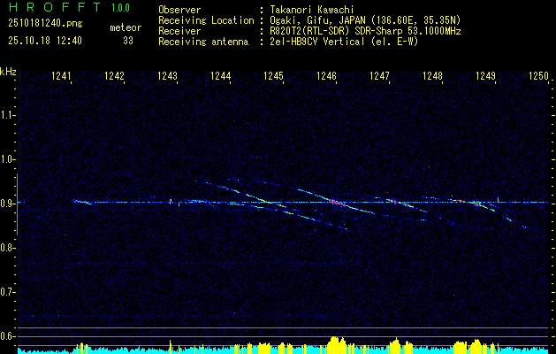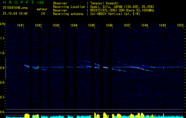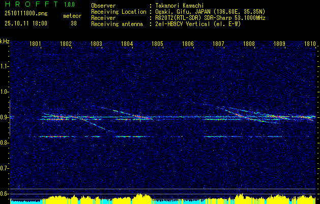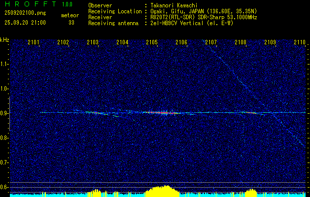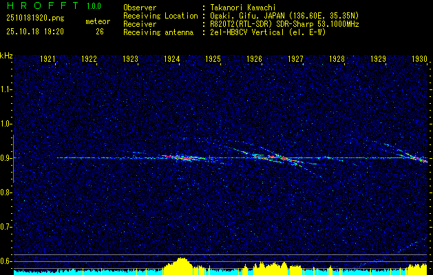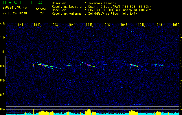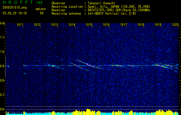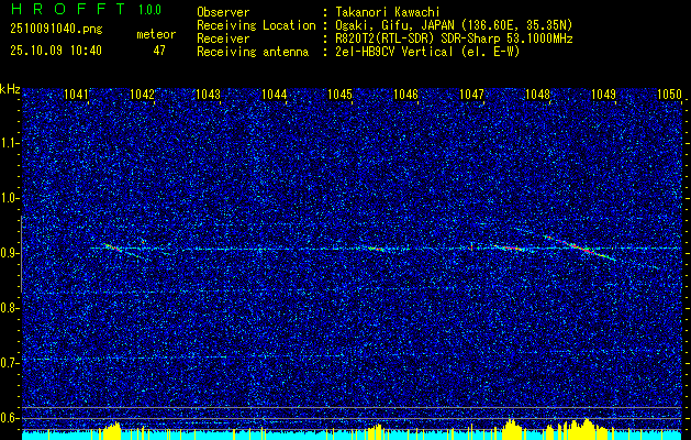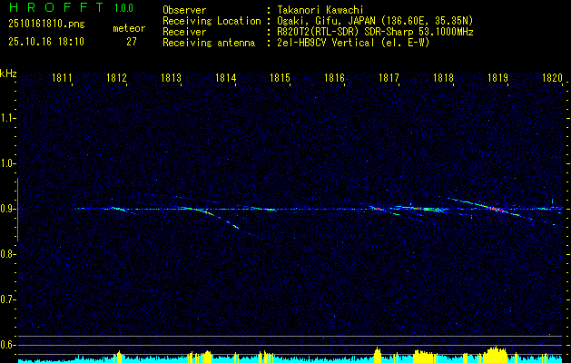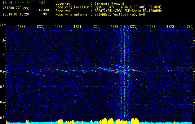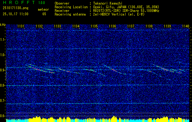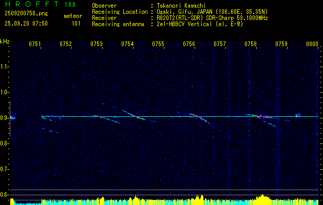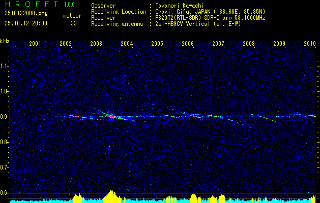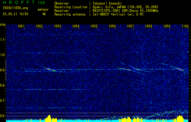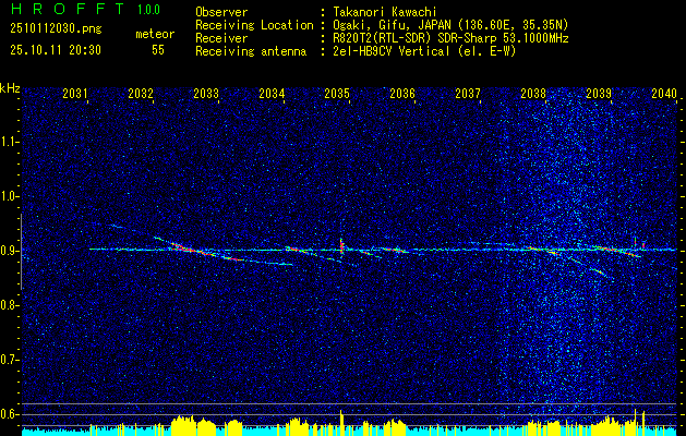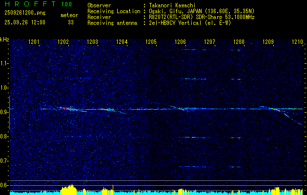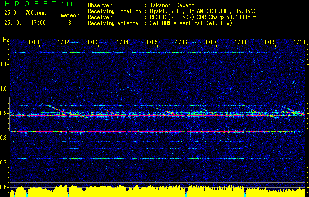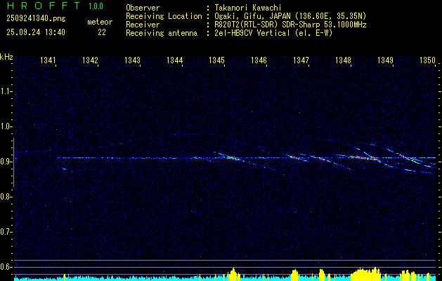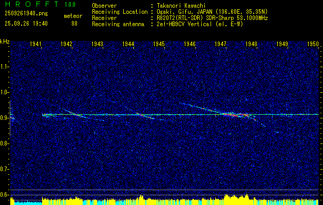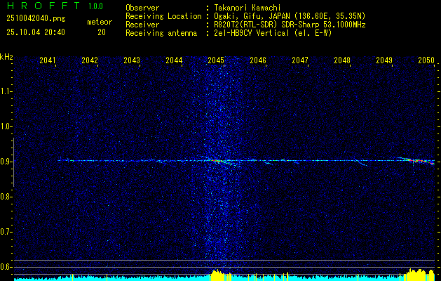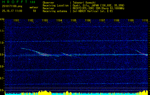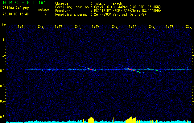 0.9kHz附近に発生している『点』または『塊』が流星によるエコーです.