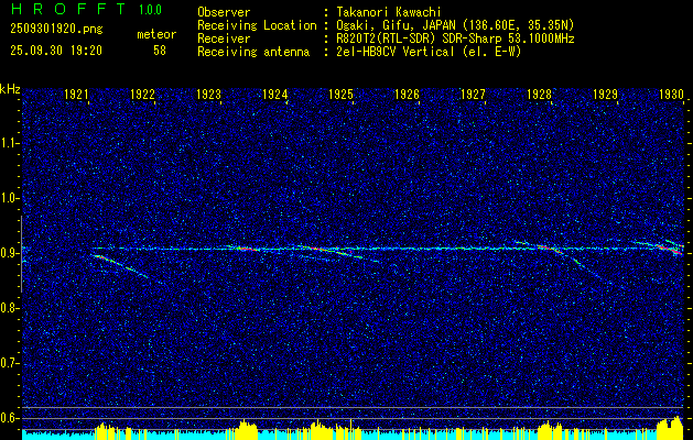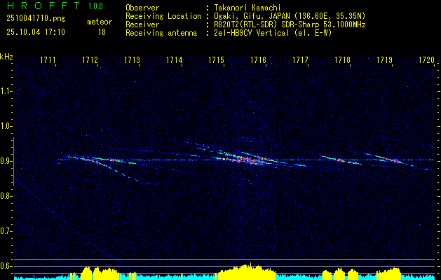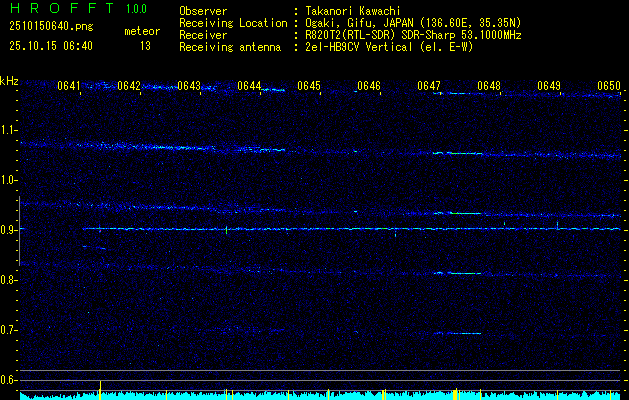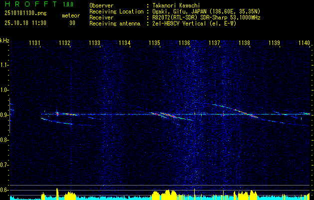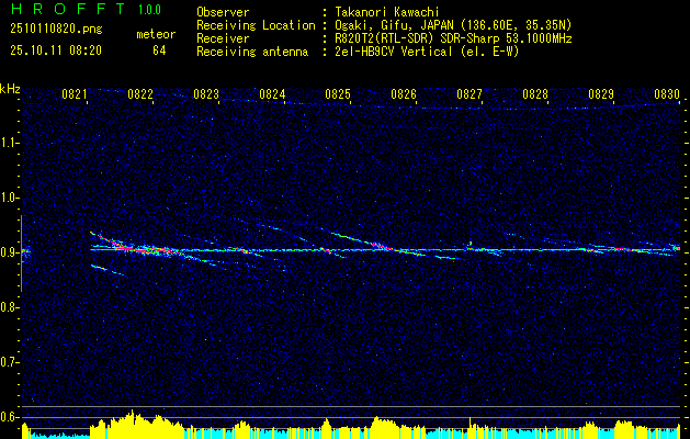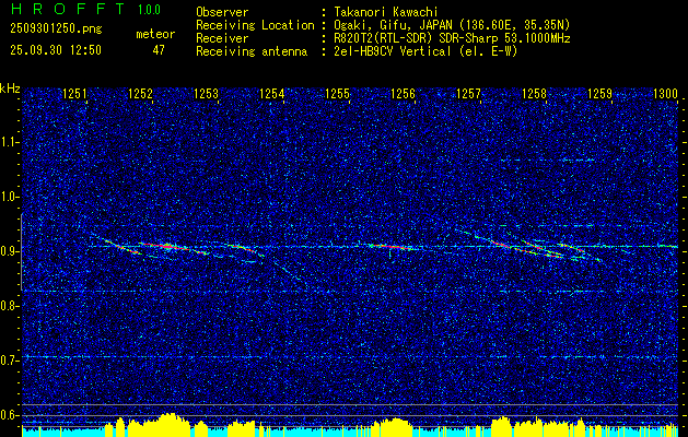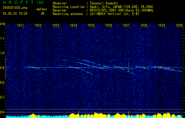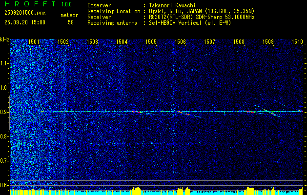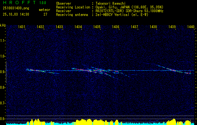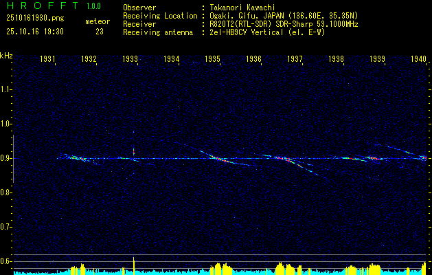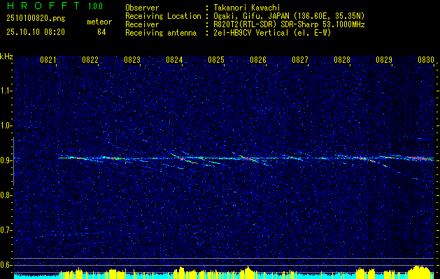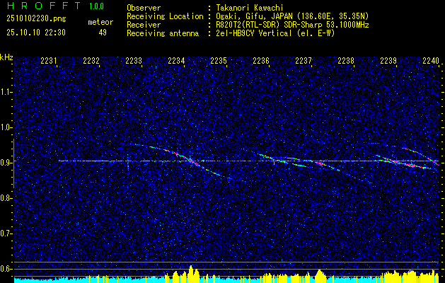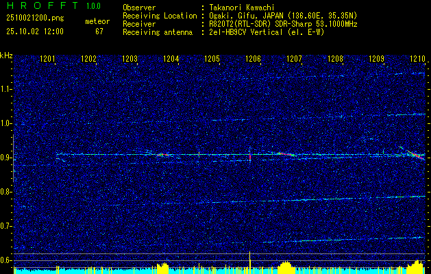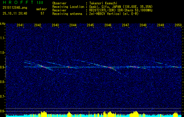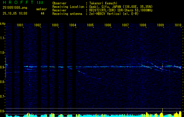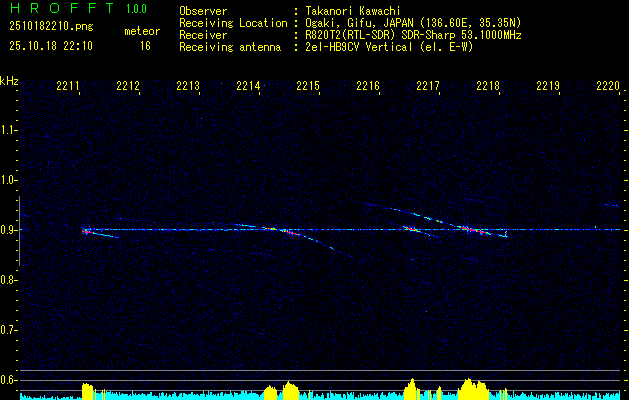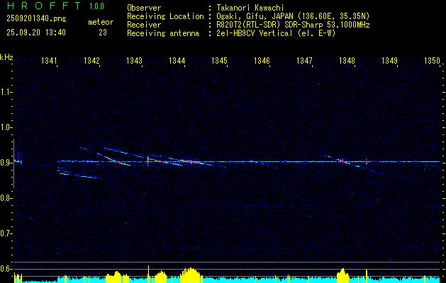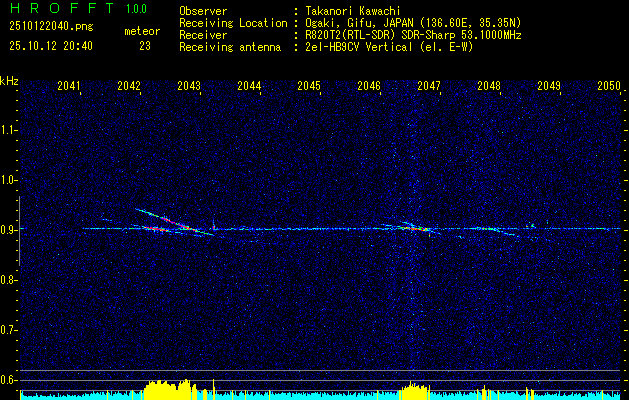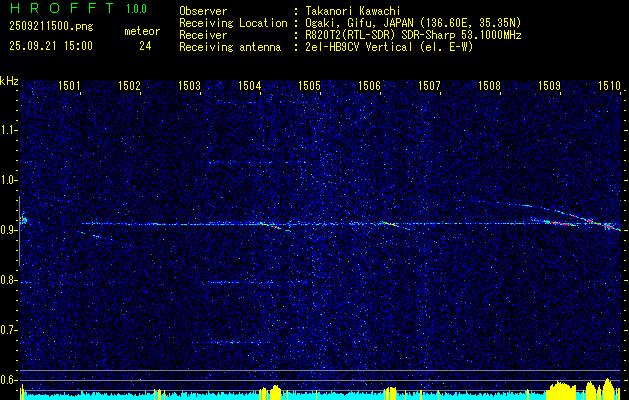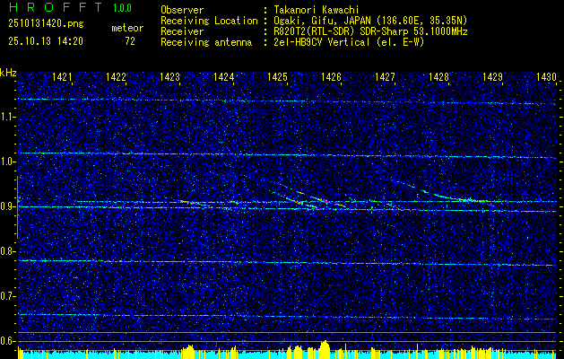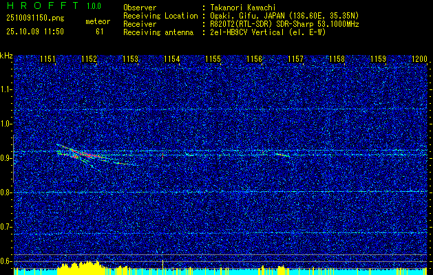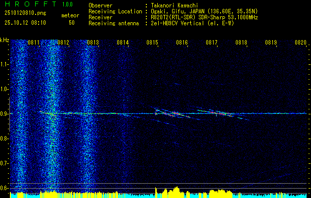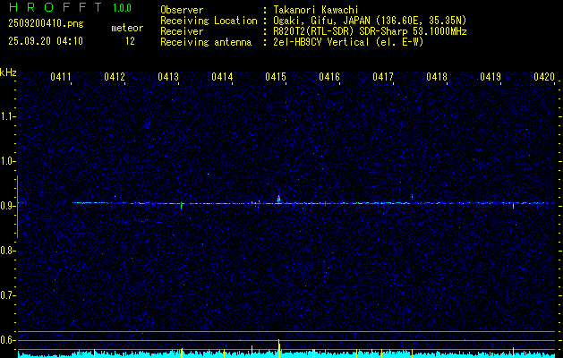 0.9kHz附近に発生している『点』または『塊』が流星によるエコーです.