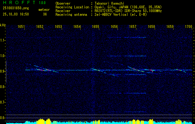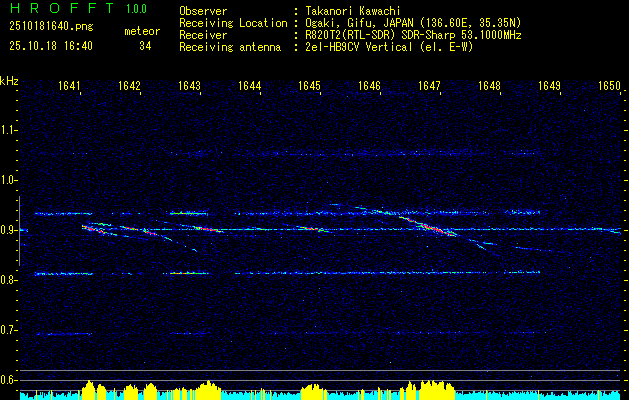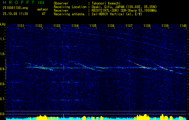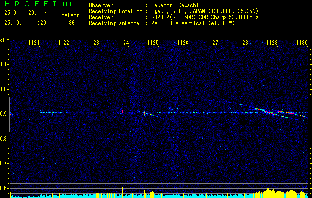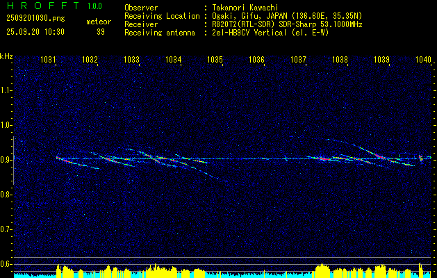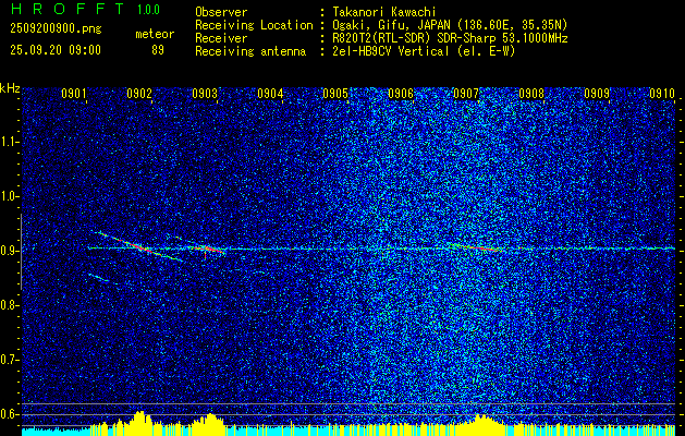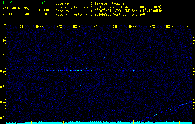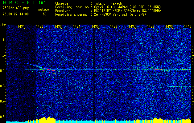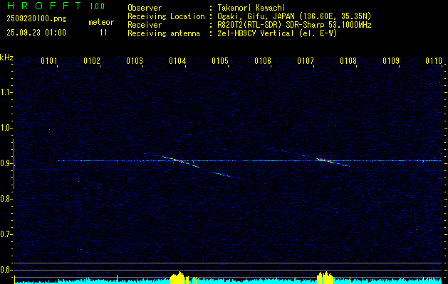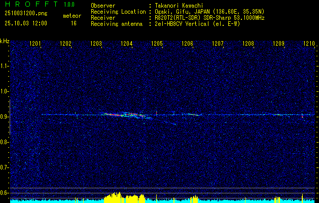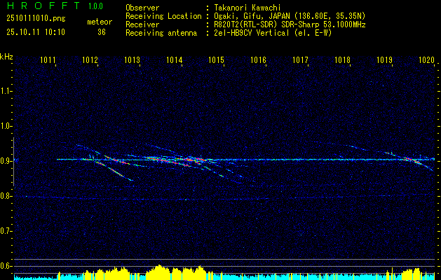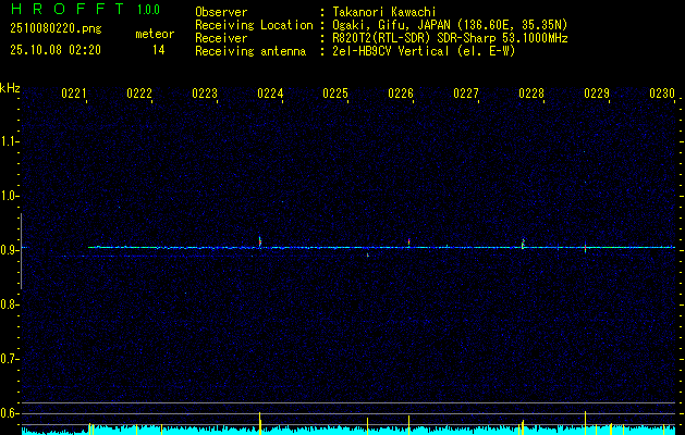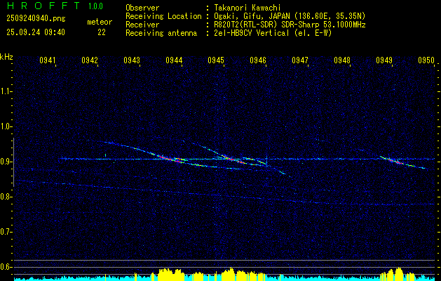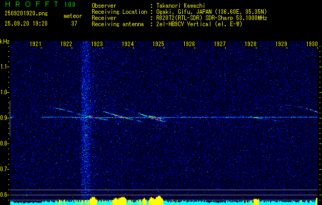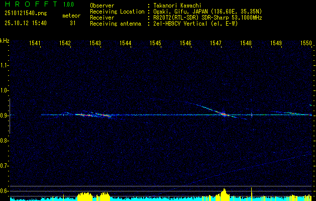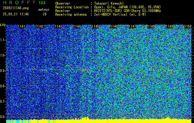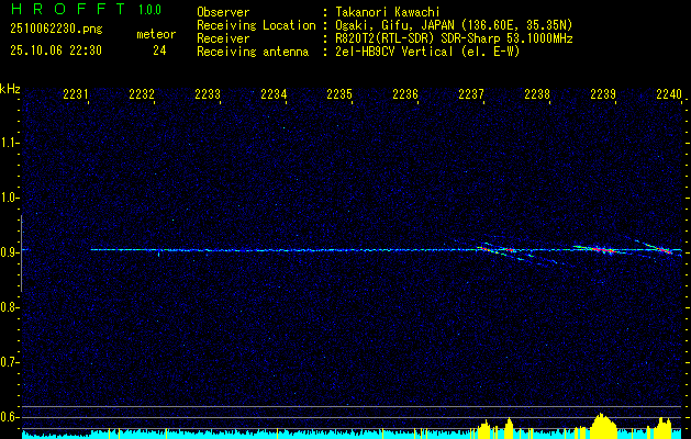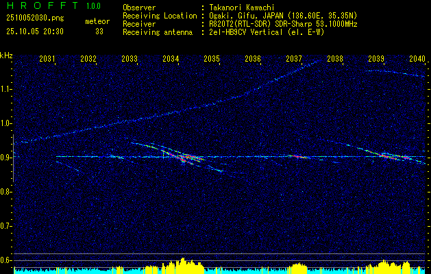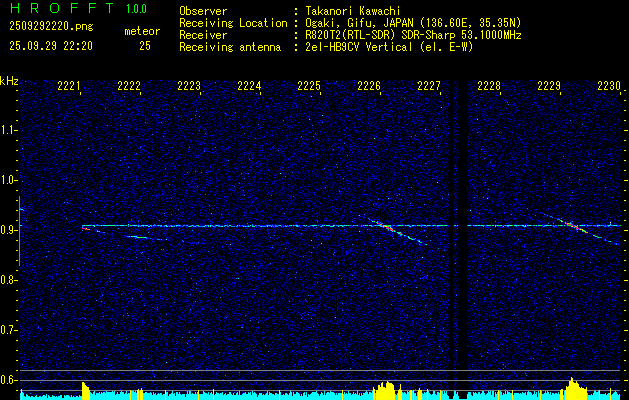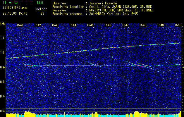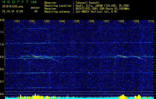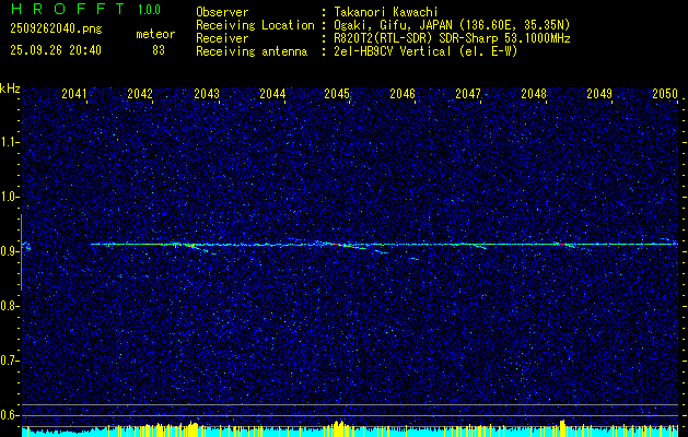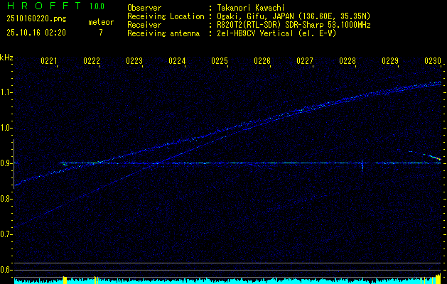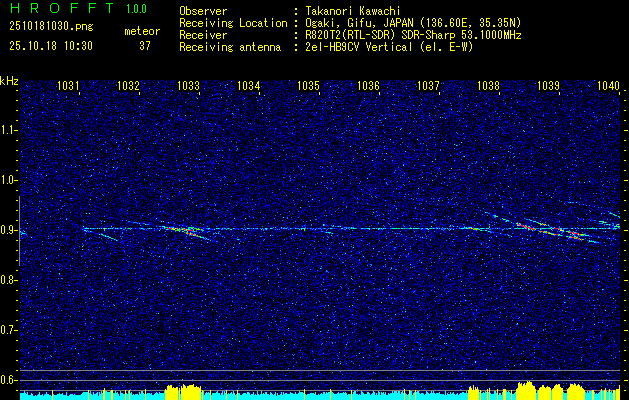 0.9kHz附近に発生している『点』または『塊』が流星によるエコーです.