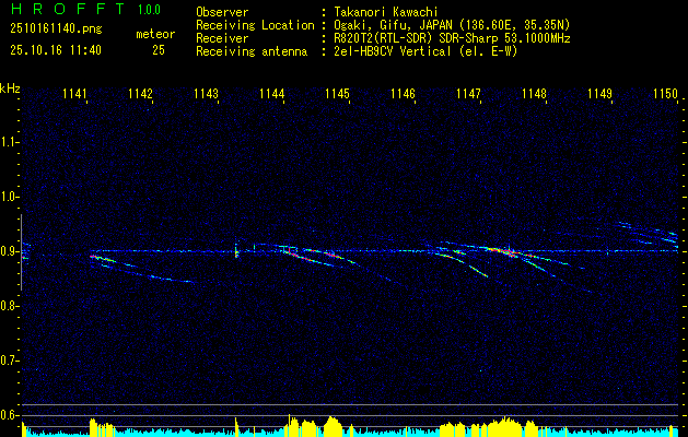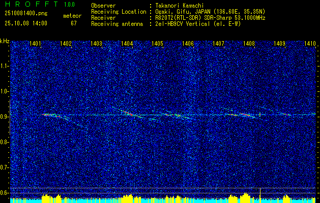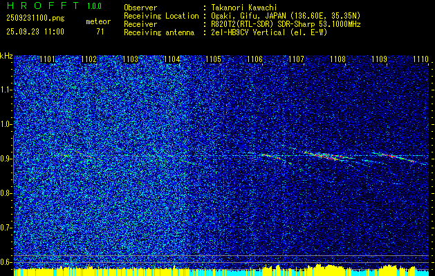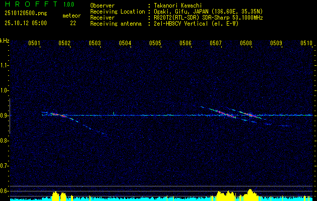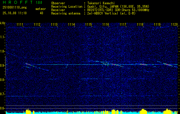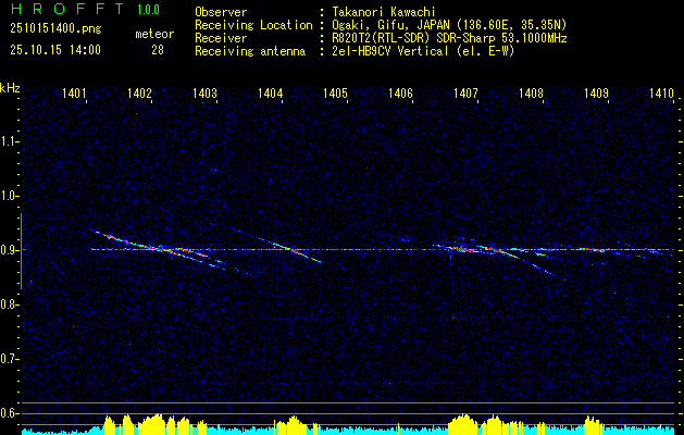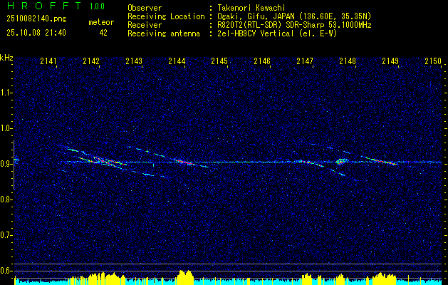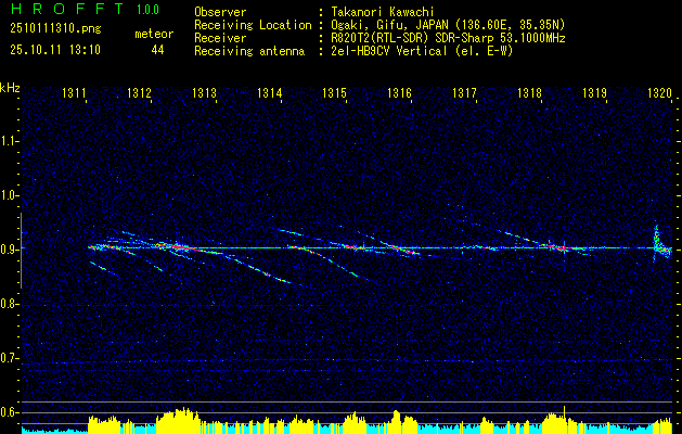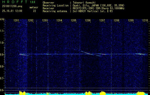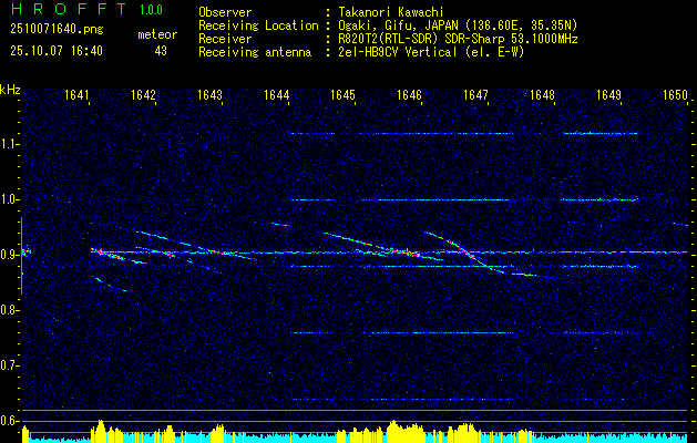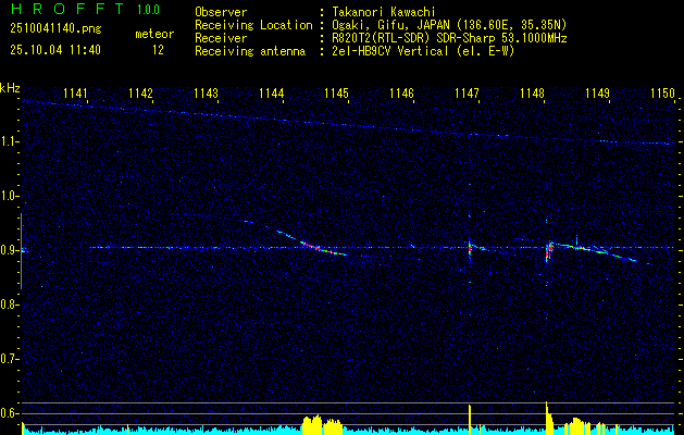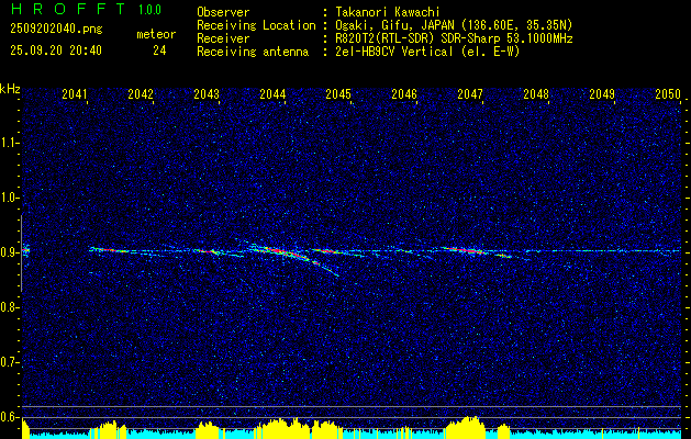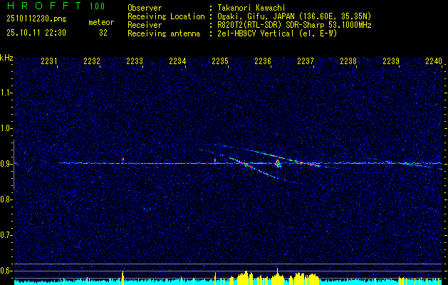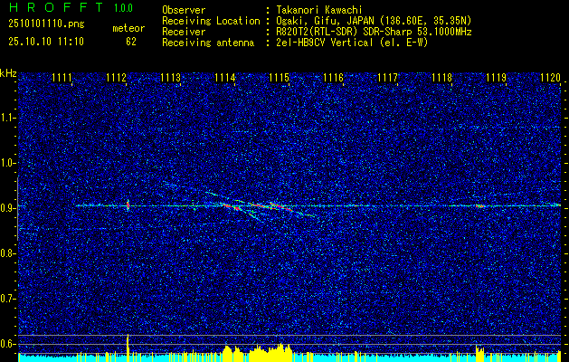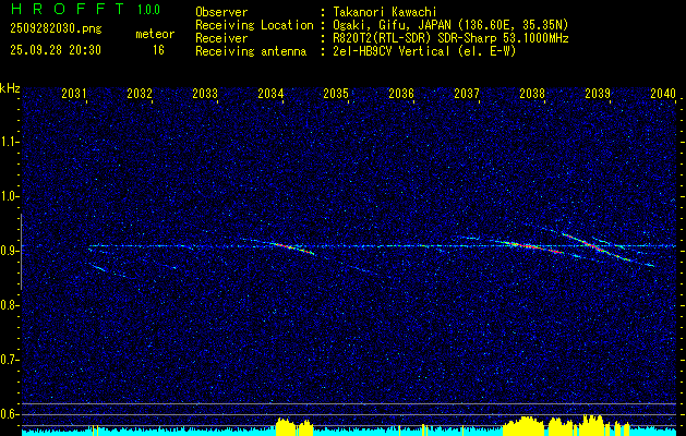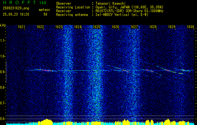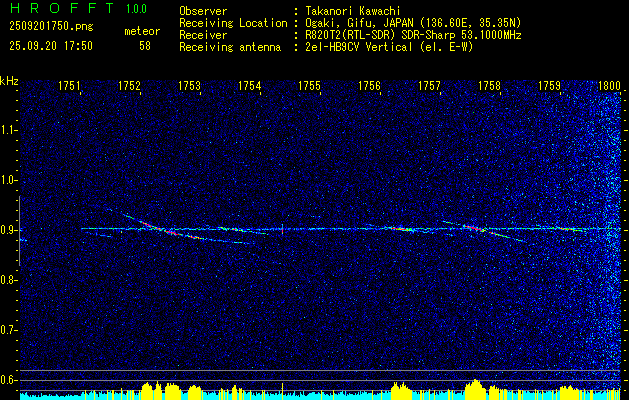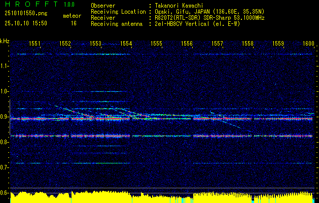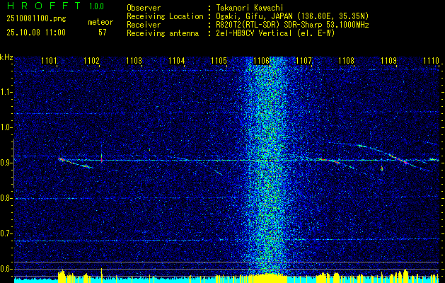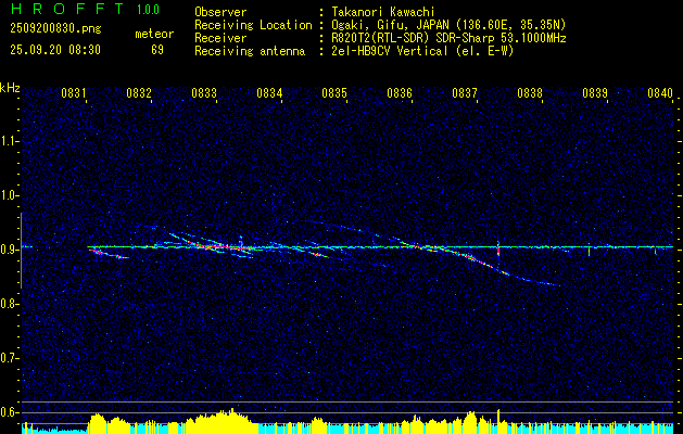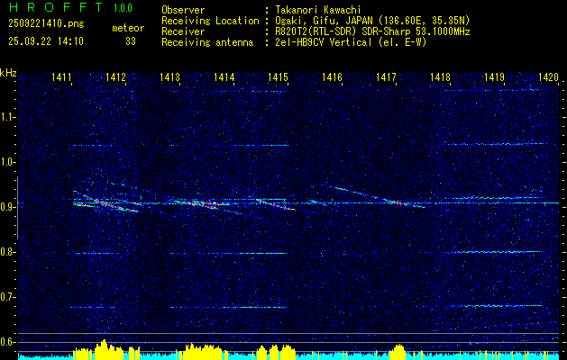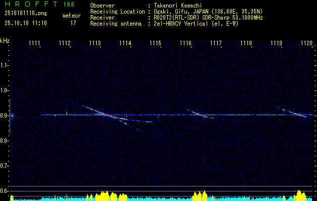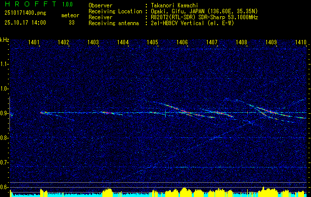 0.9kHz附近に発生している『点』または『塊』が流星によるエコーです.