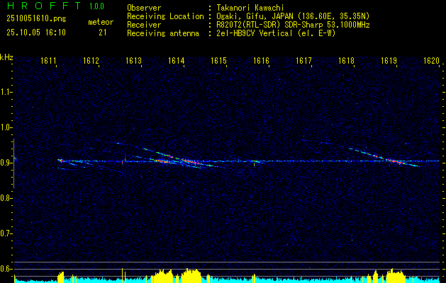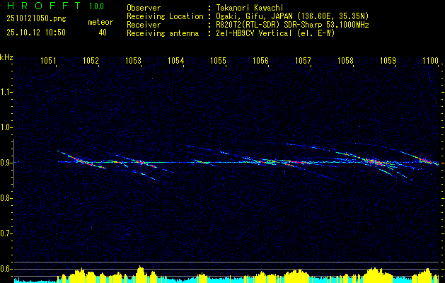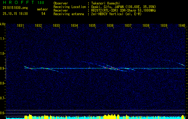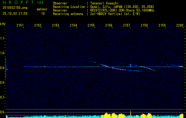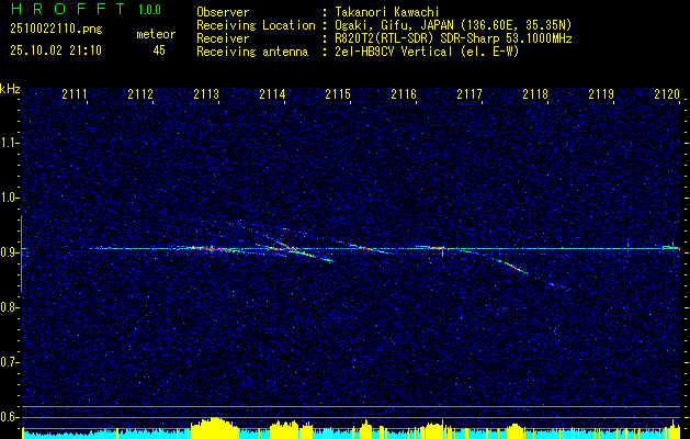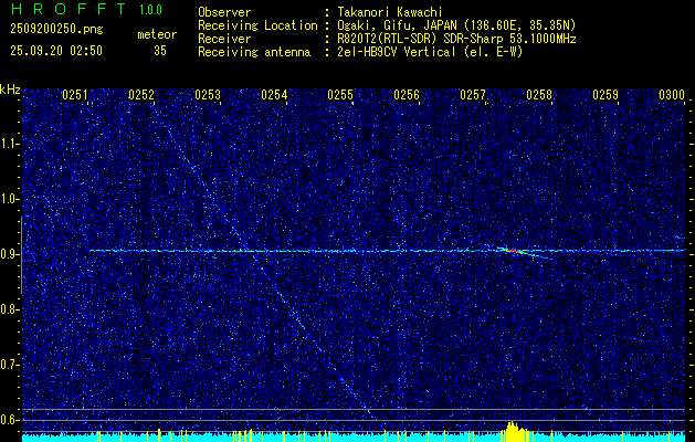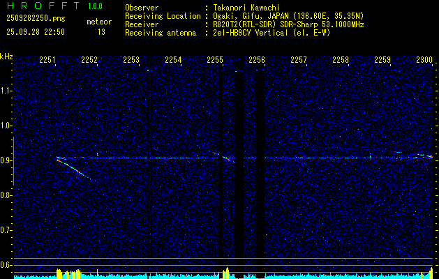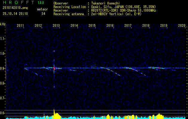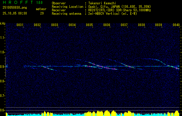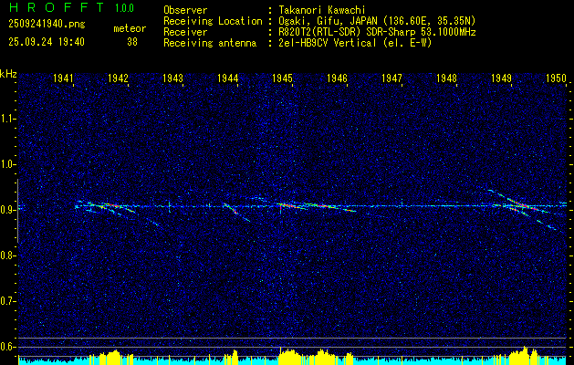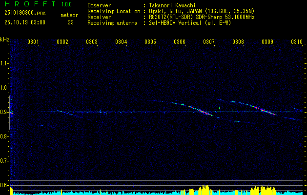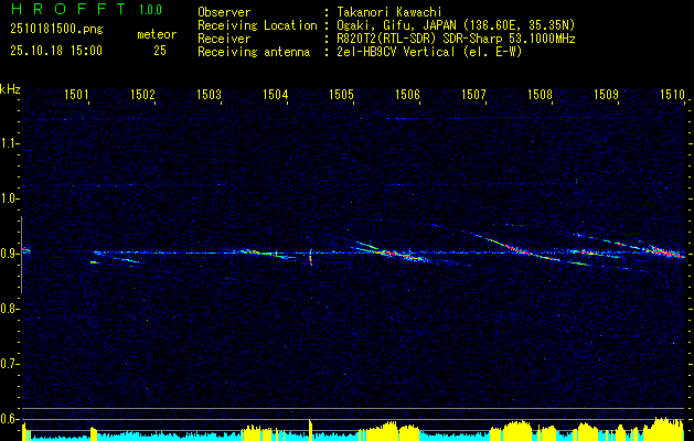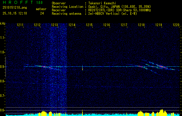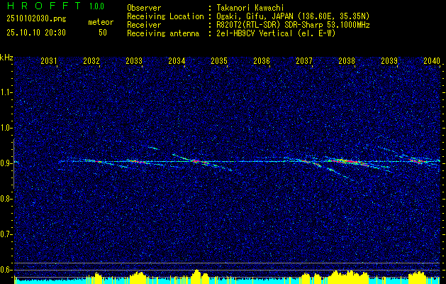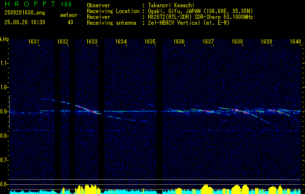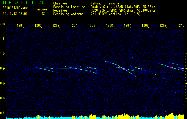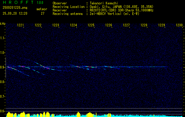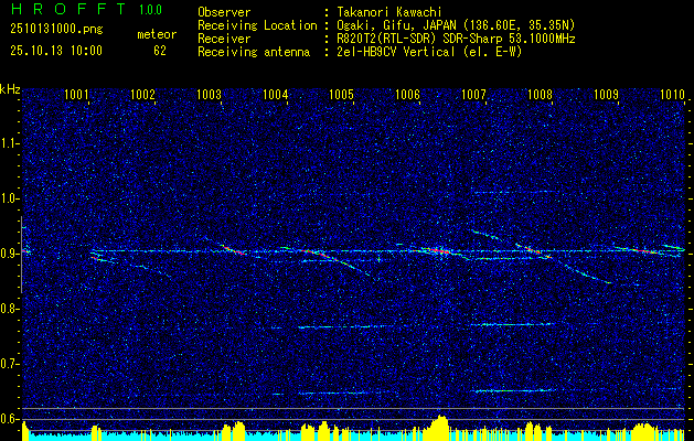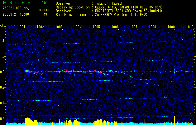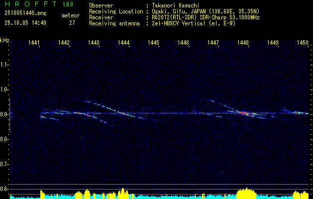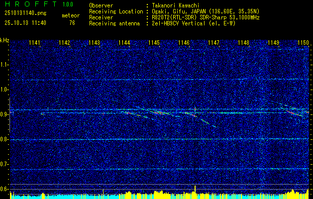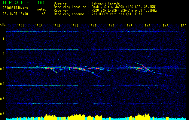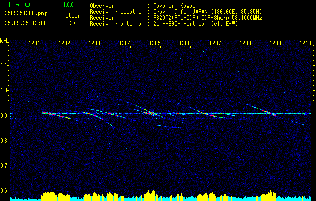 0.9kHz附近に発生している『点』または『塊』が流星によるエコーです.