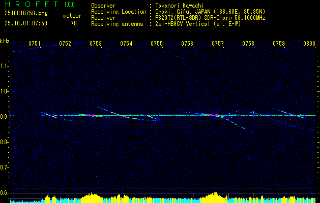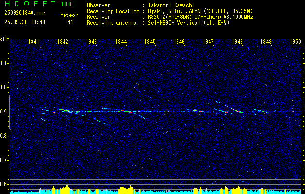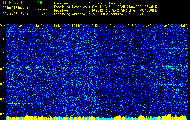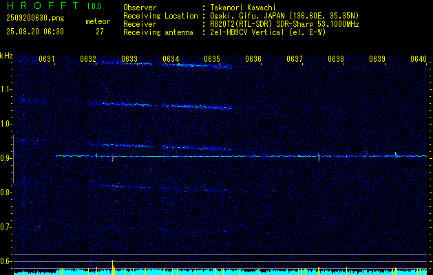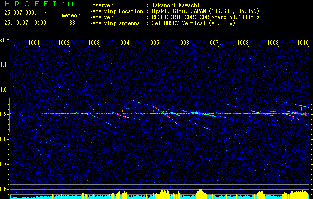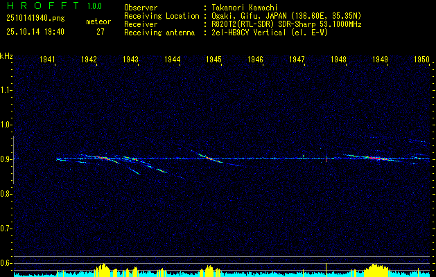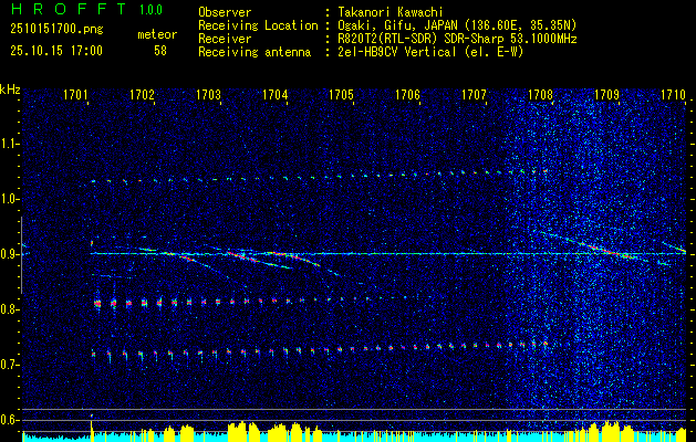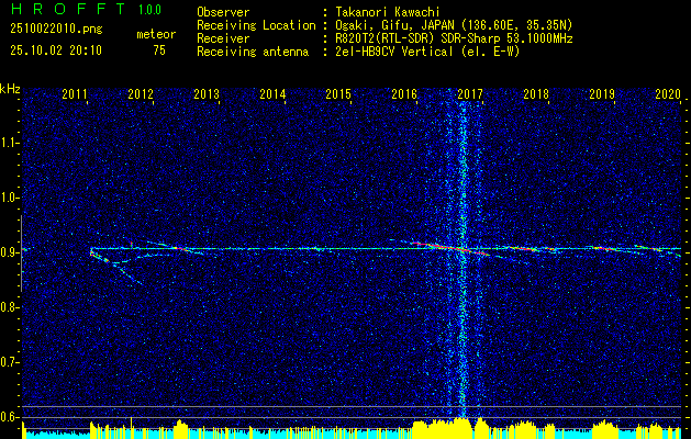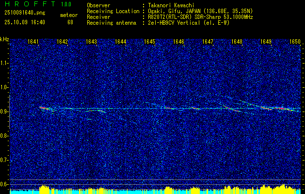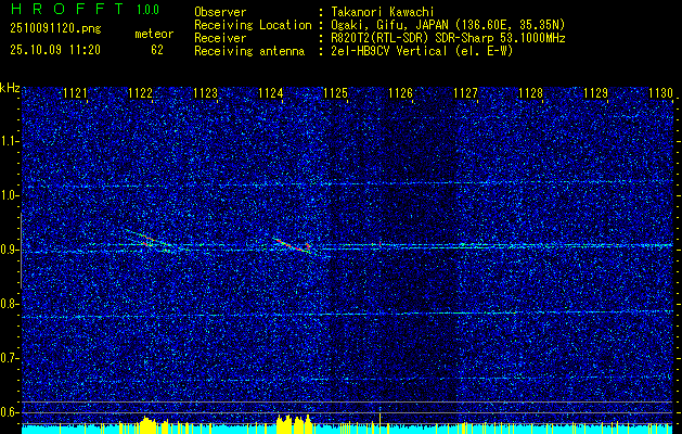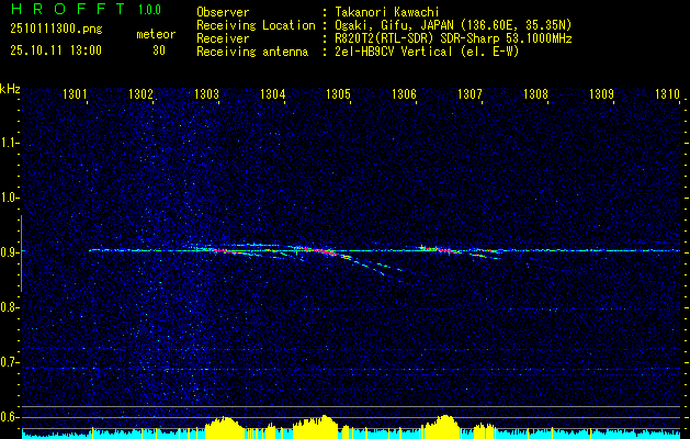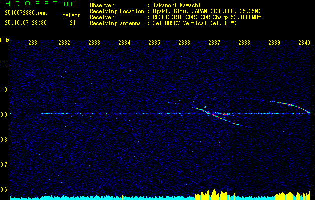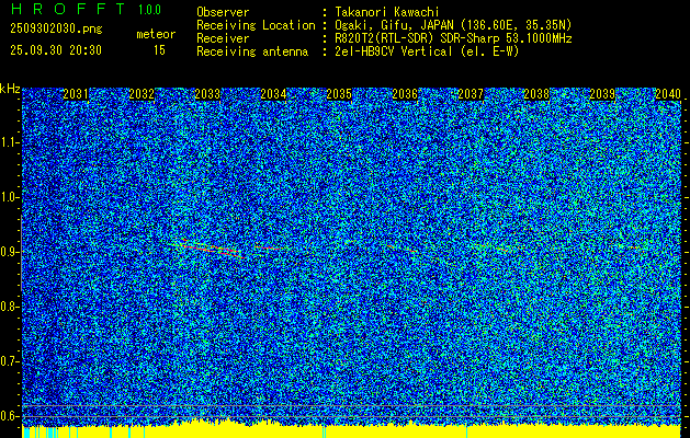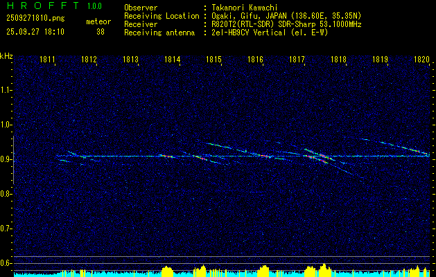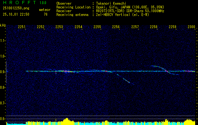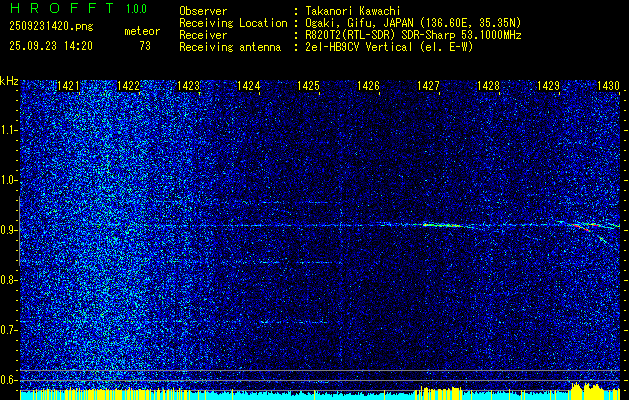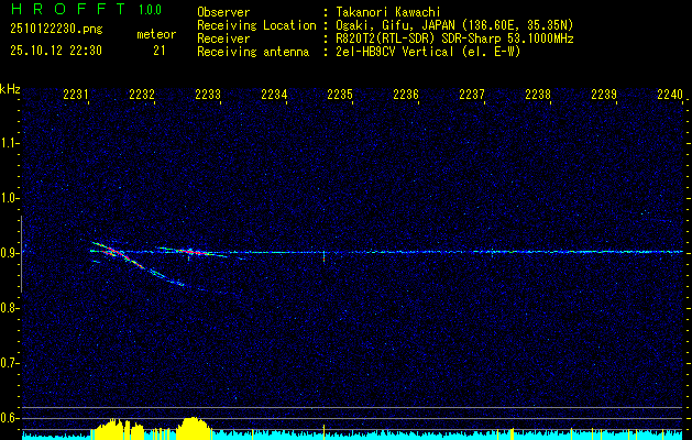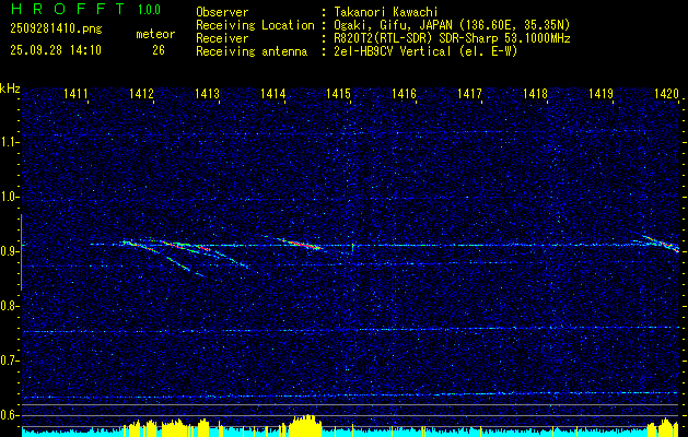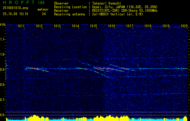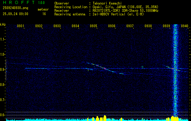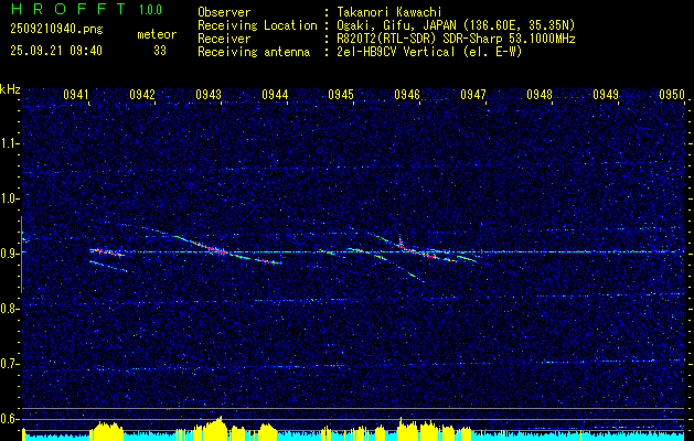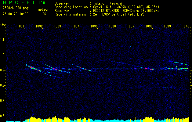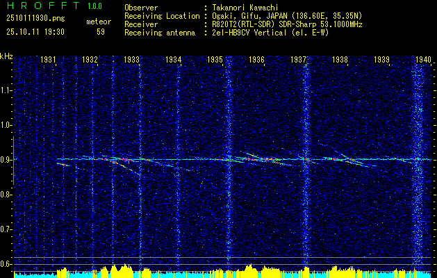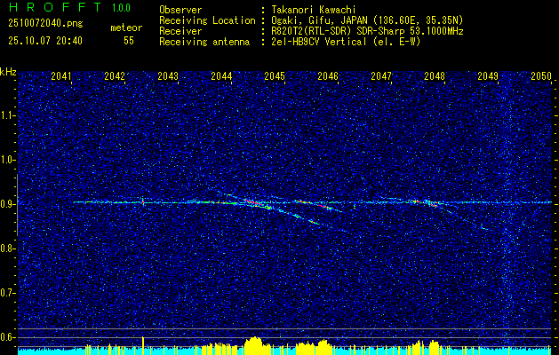 0.9kHz附近に発生している『点』または『塊』が流星によるエコーです.