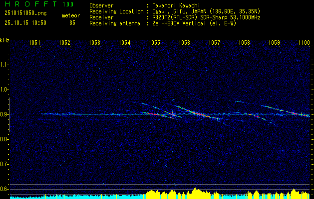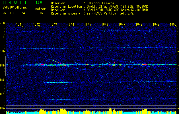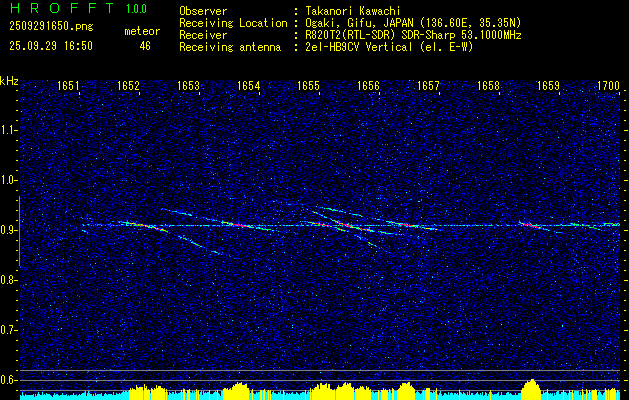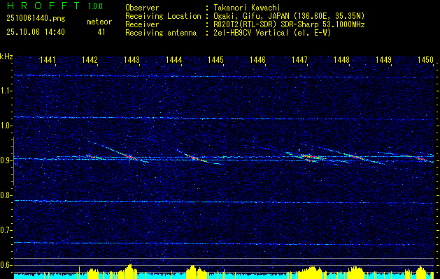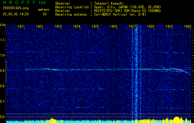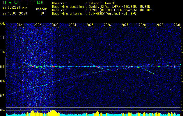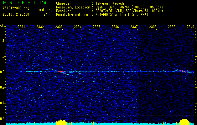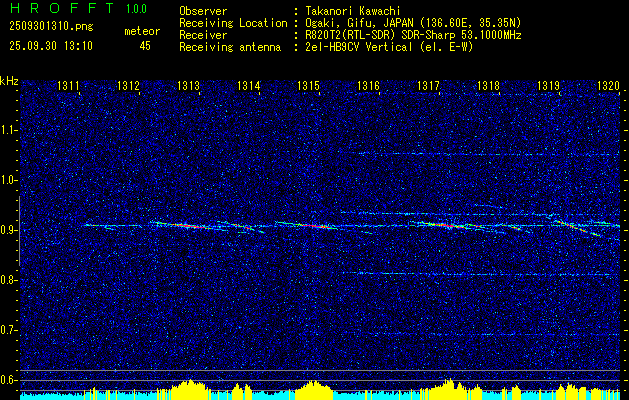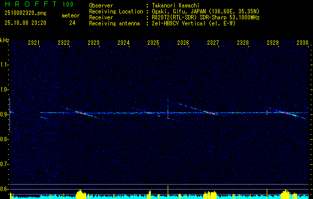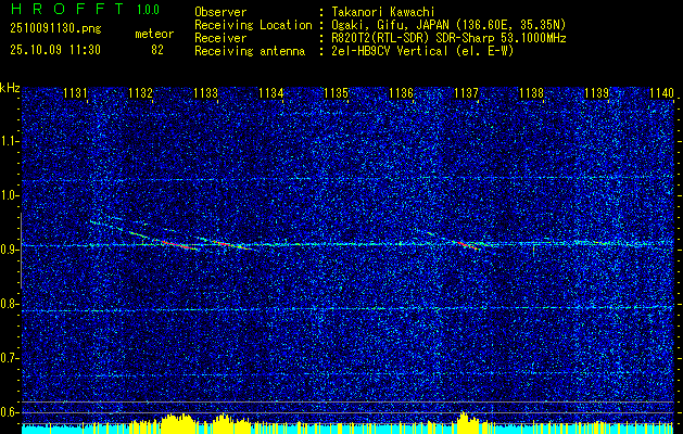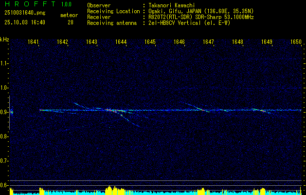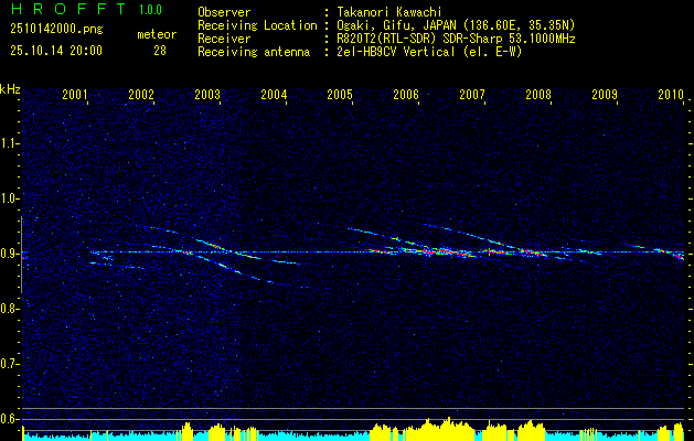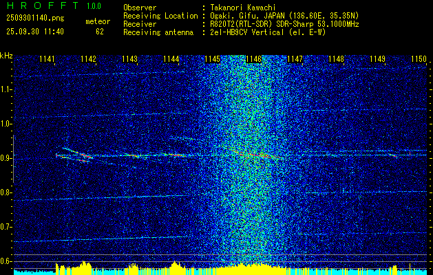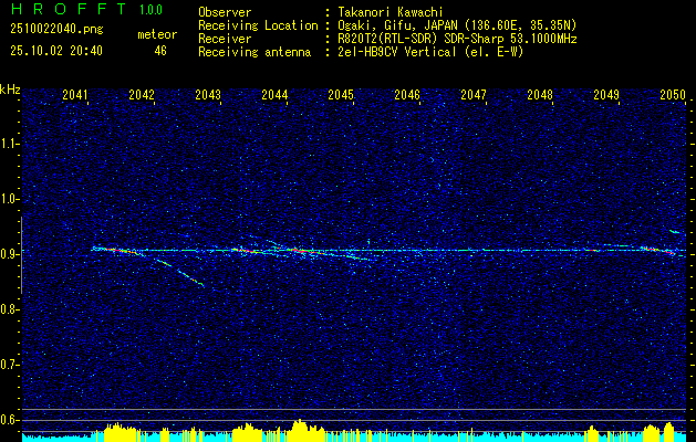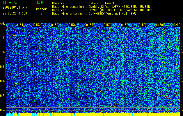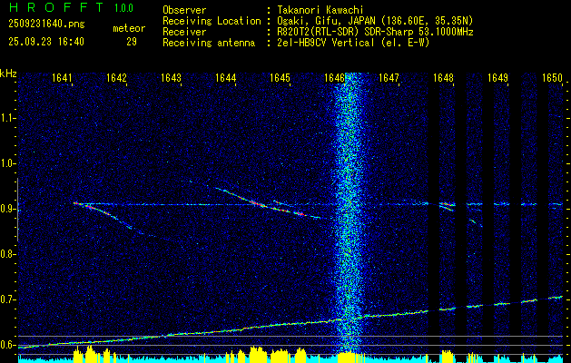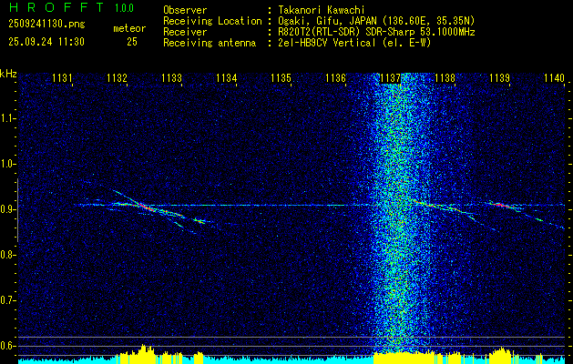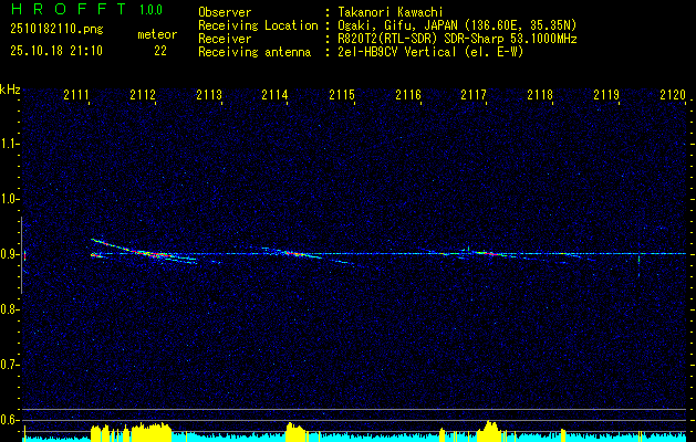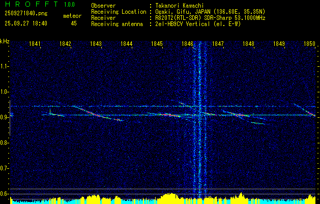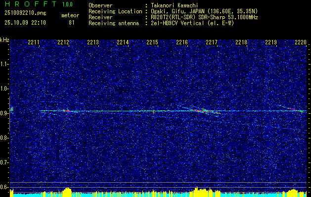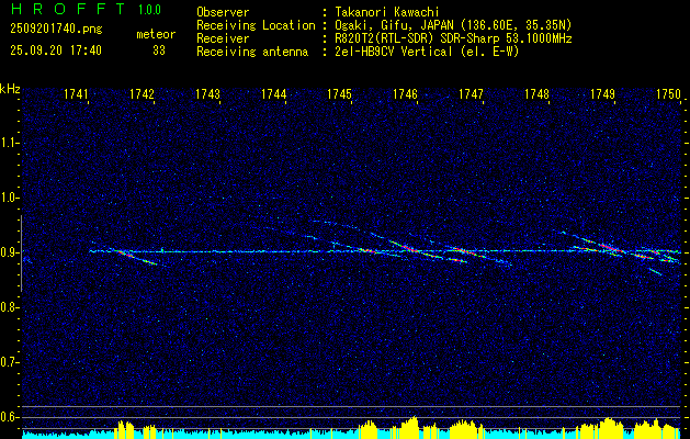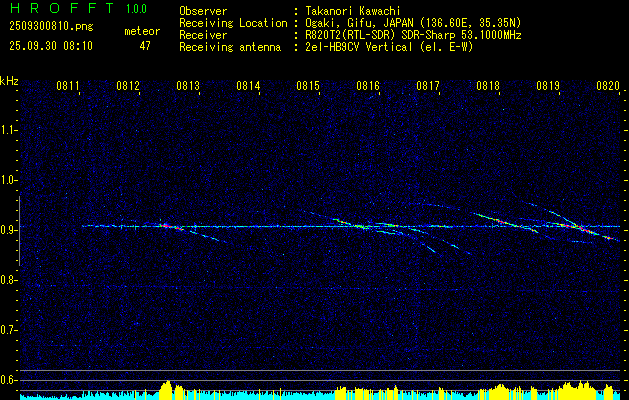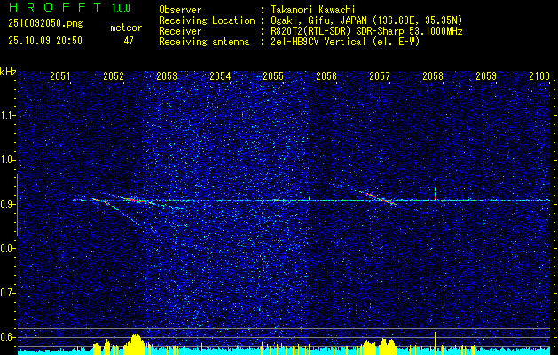 0.9kHz附近に発生している『点』または『塊』が流星によるエコーです.