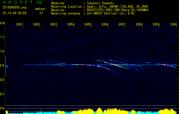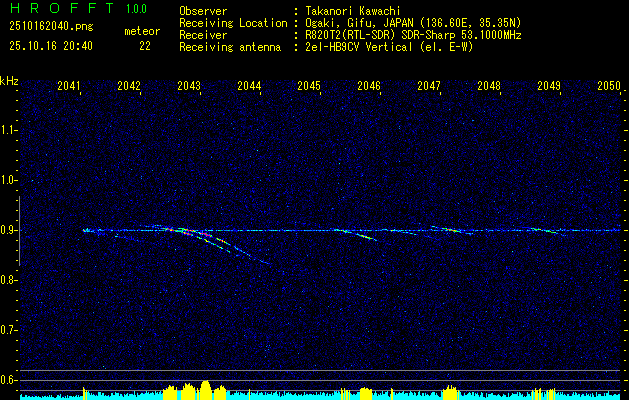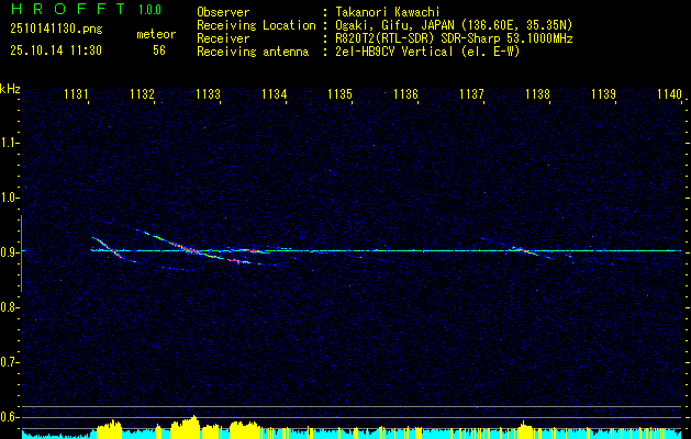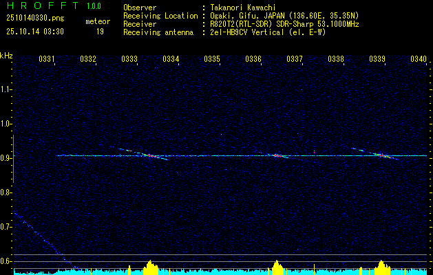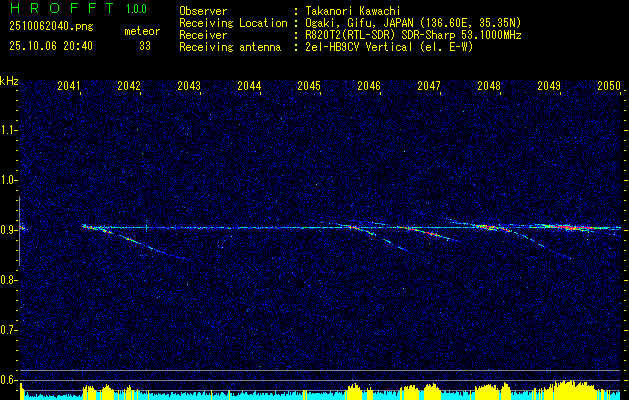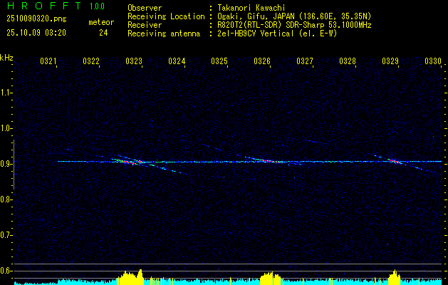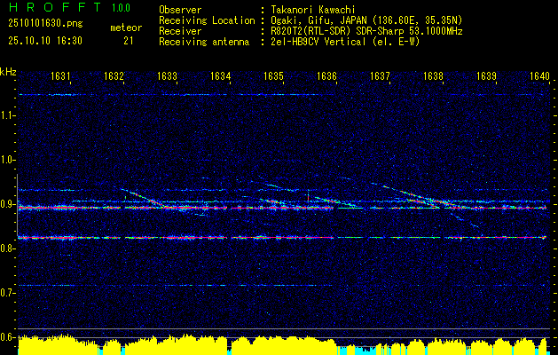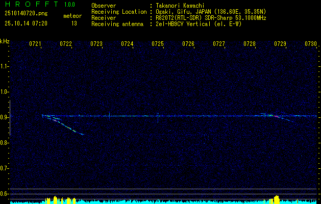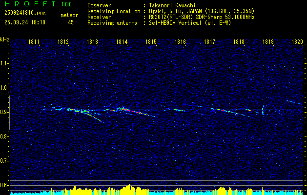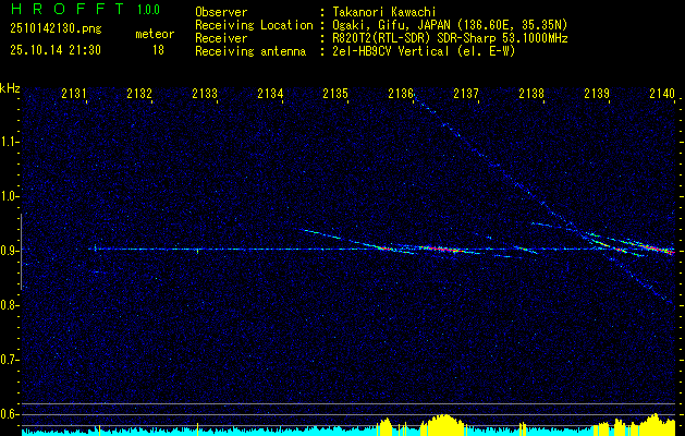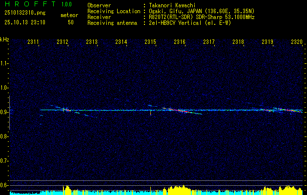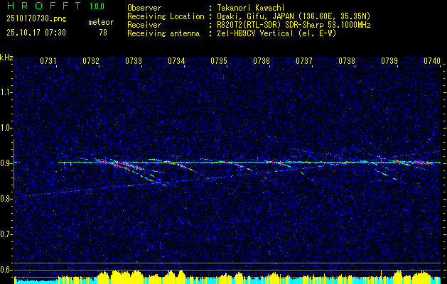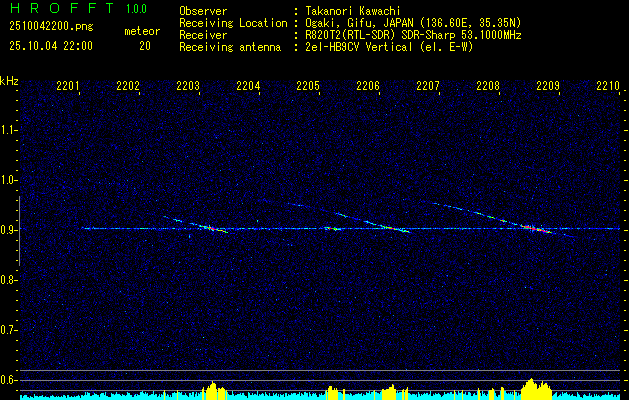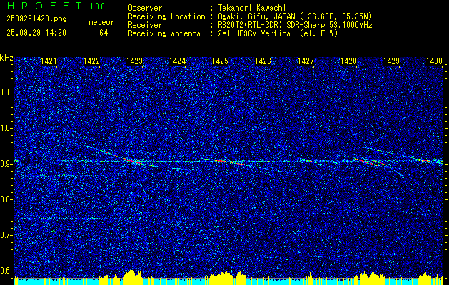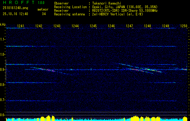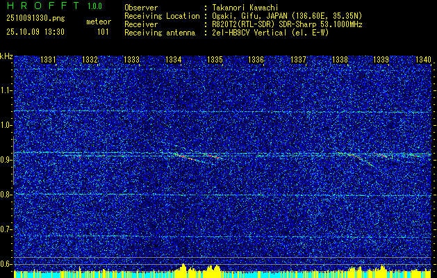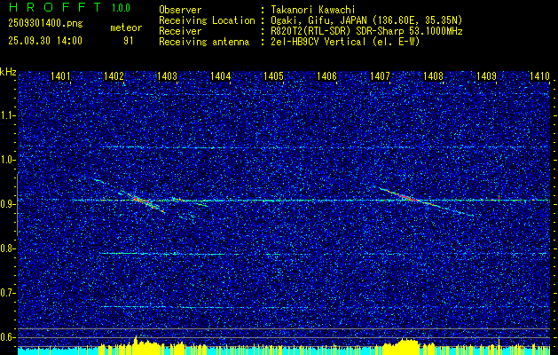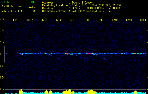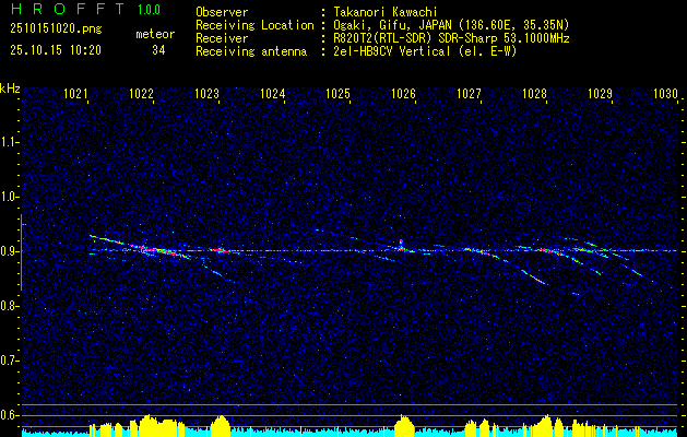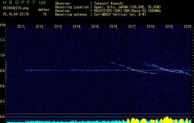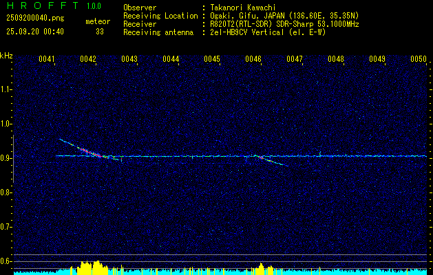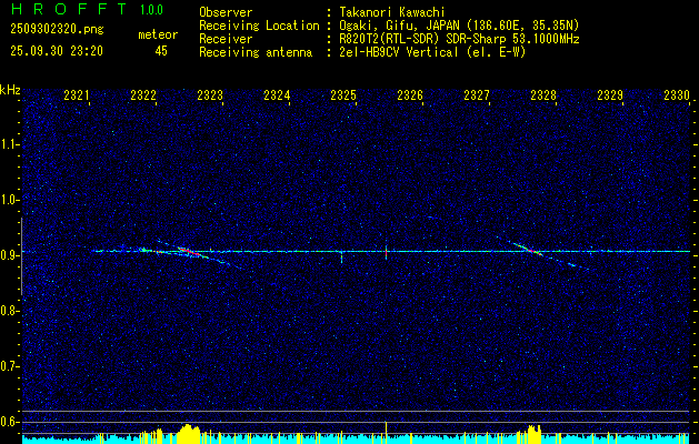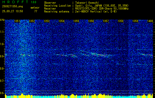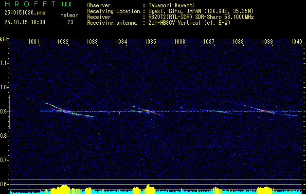 0.9kHz附近に発生している『点』または『塊』が流星によるエコーです.