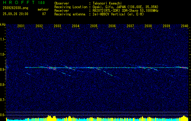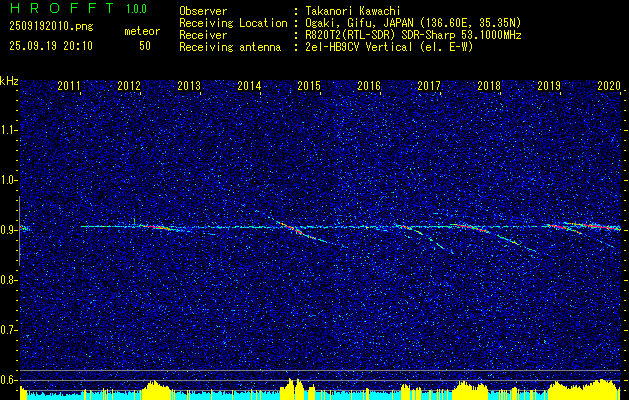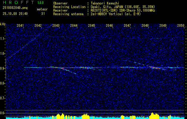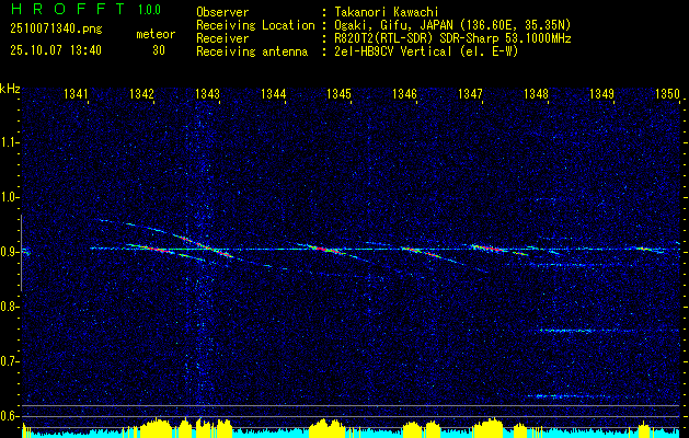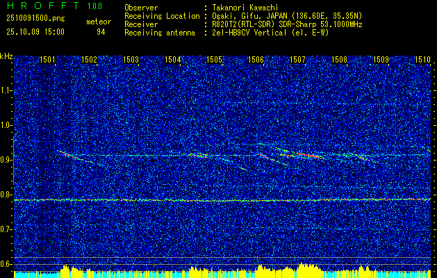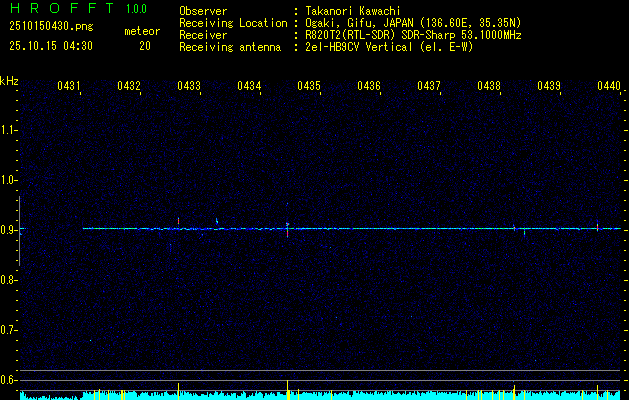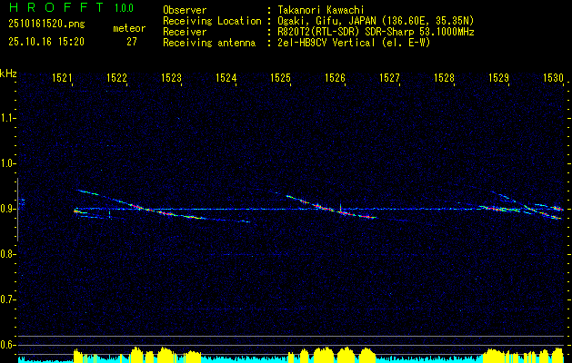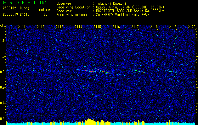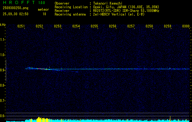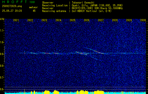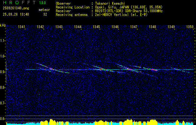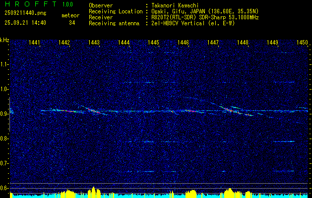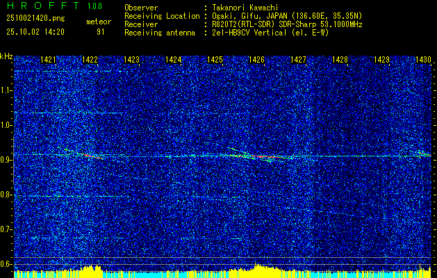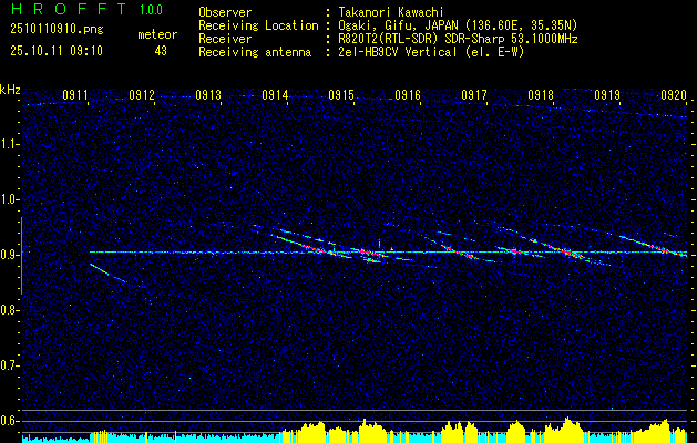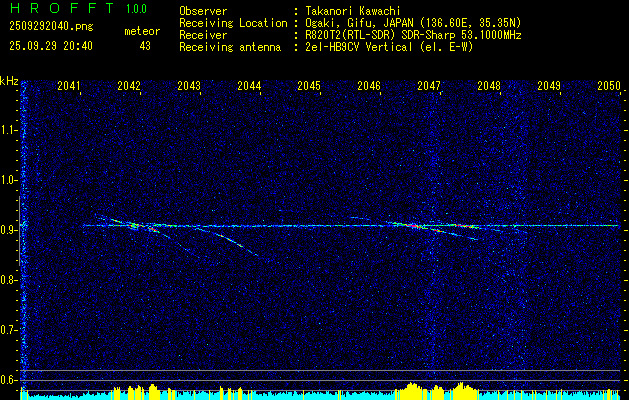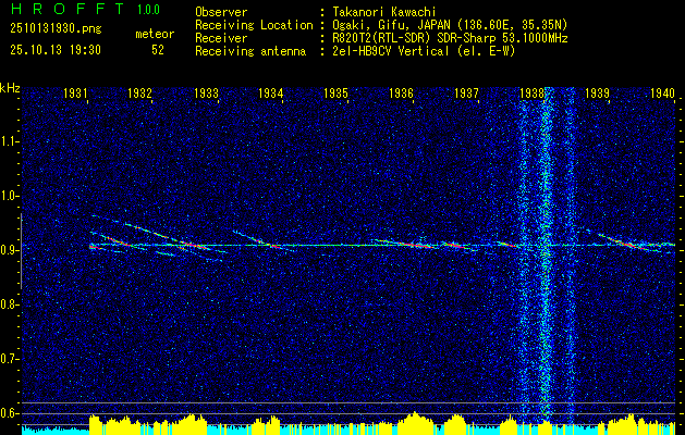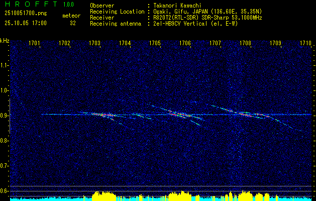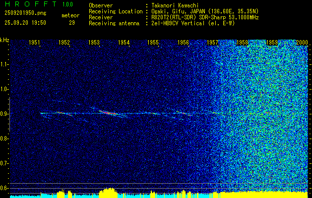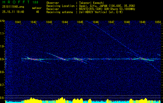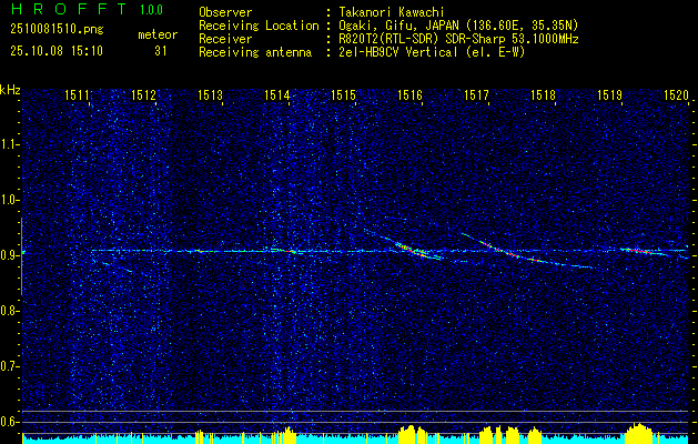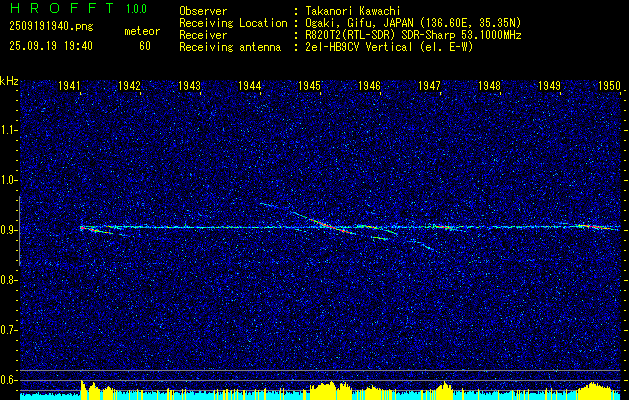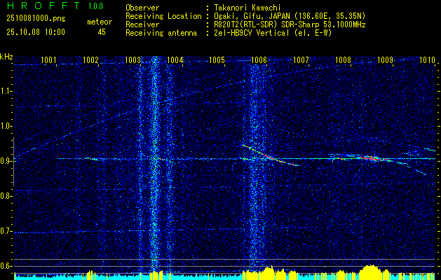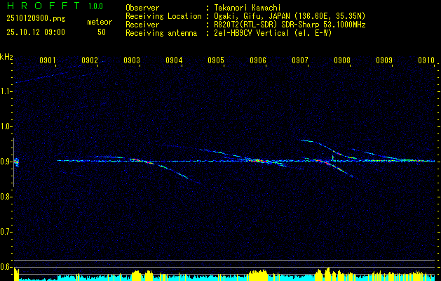 0.9kHz附近に発生している『点』または『塊』が流星によるエコーです.