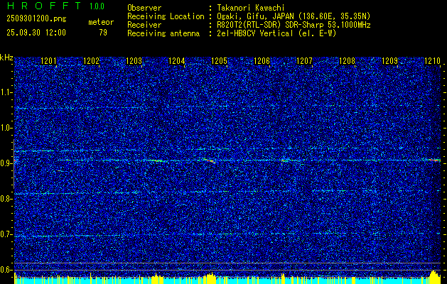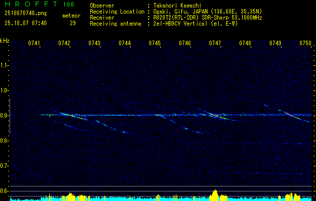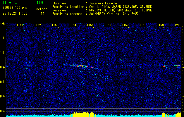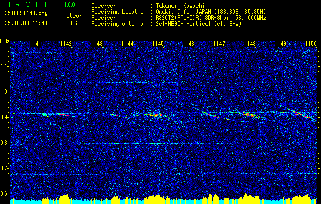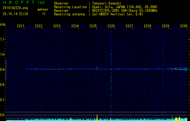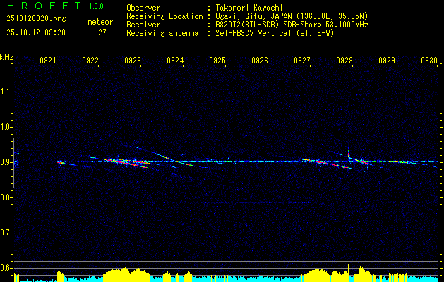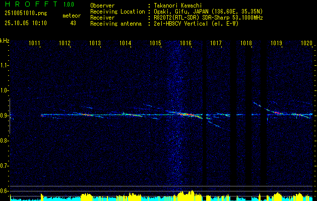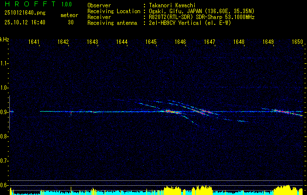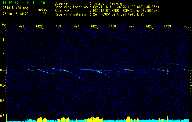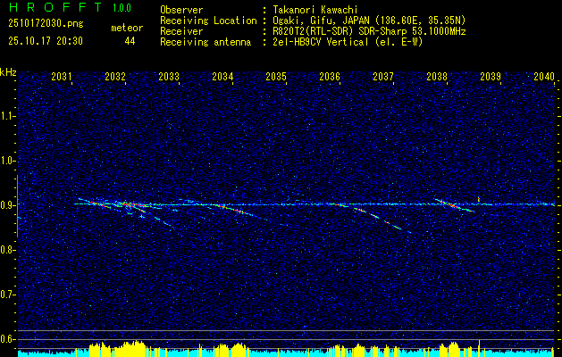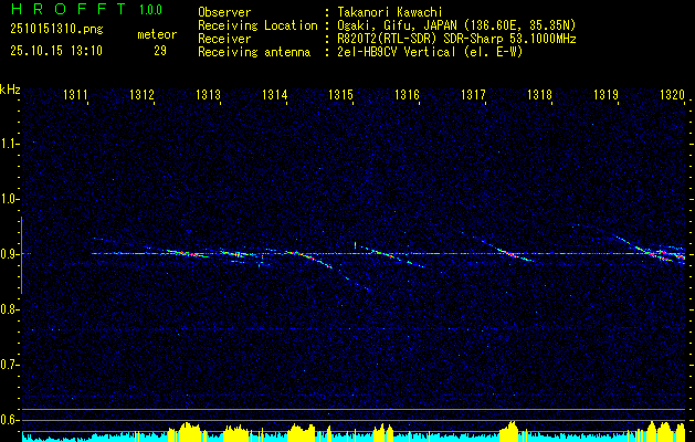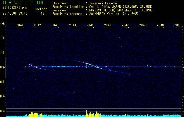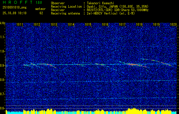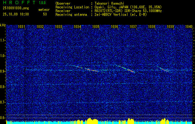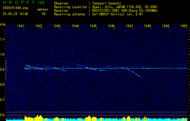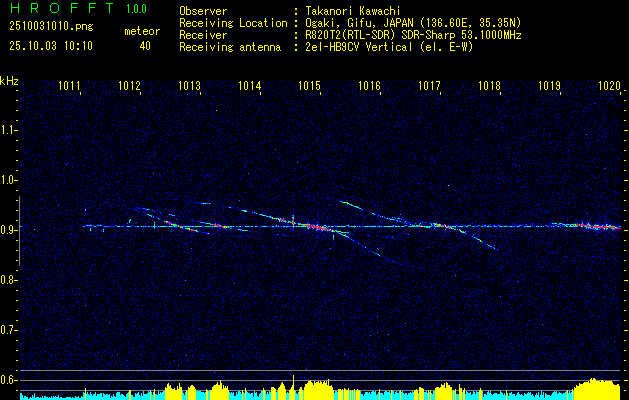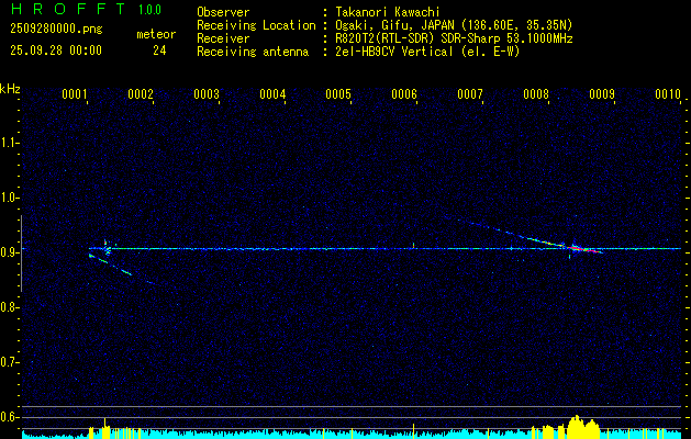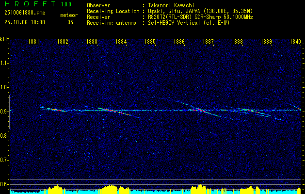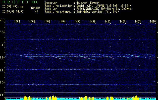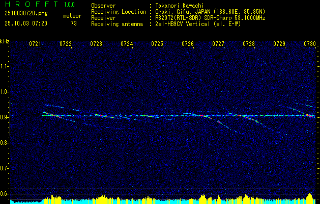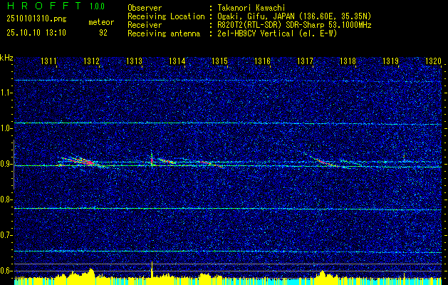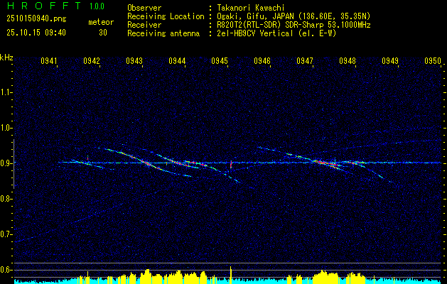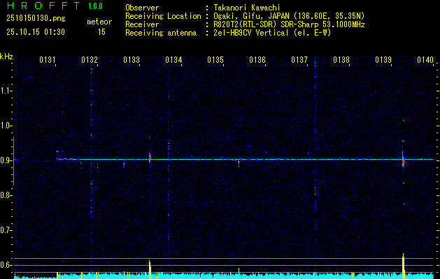 0.9kHz附近に発生している『点』または『塊』が流星によるエコーです.