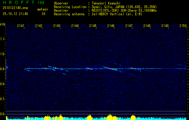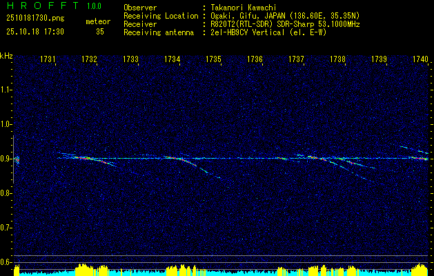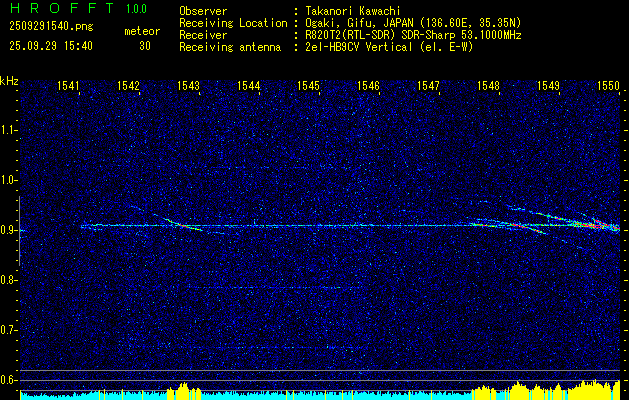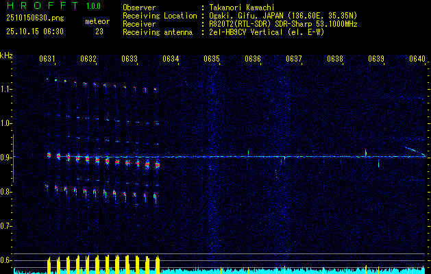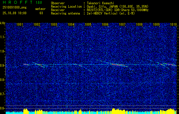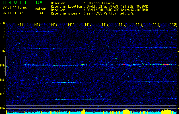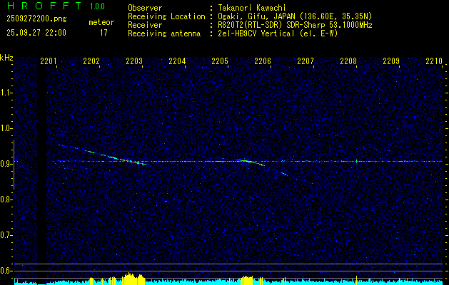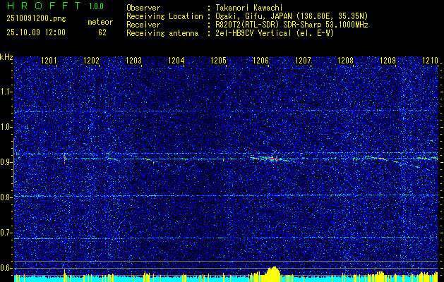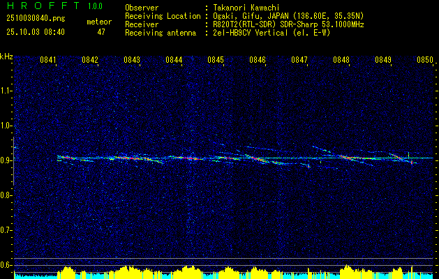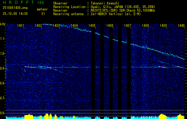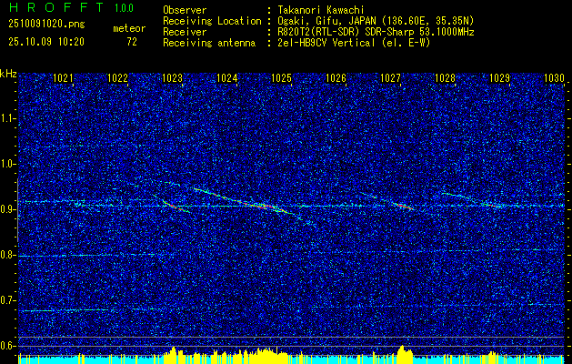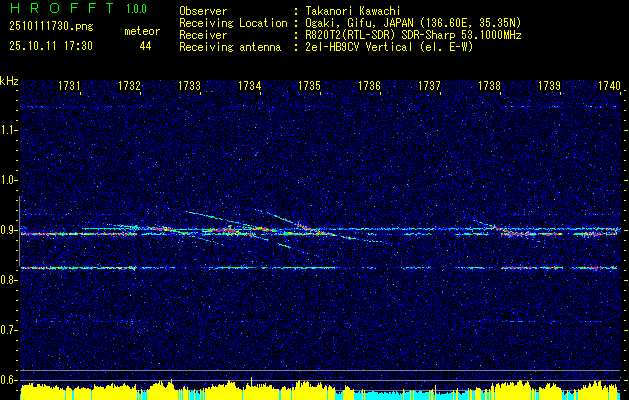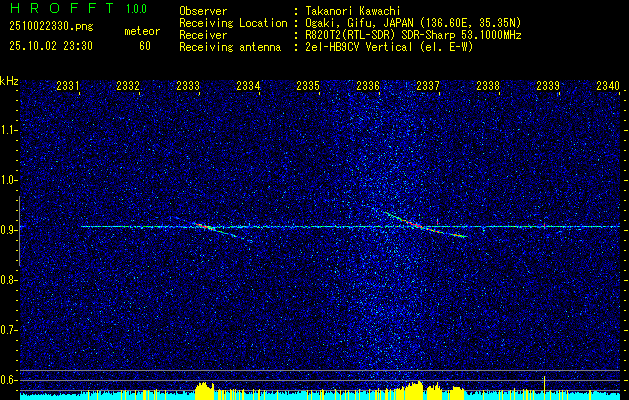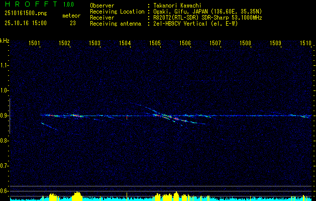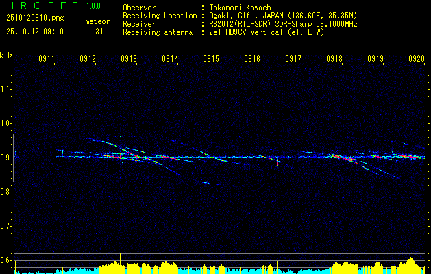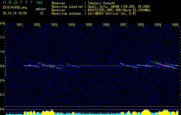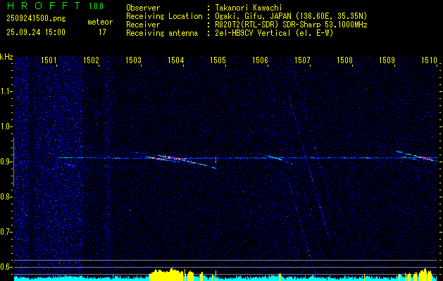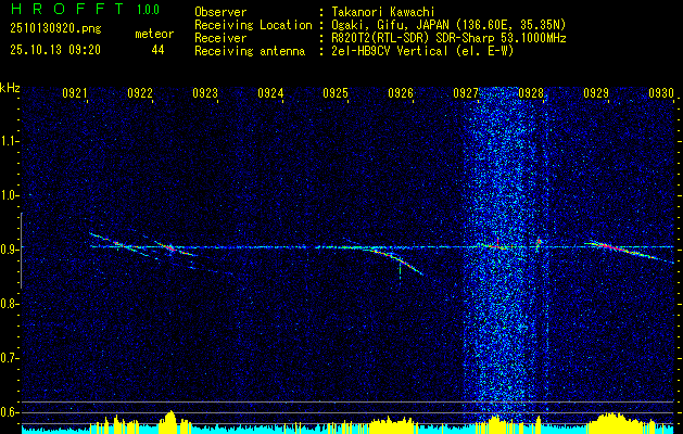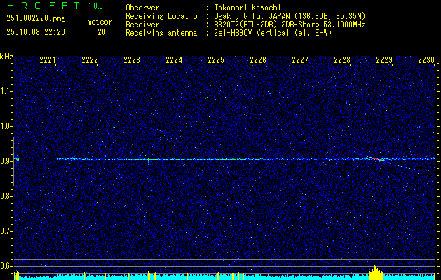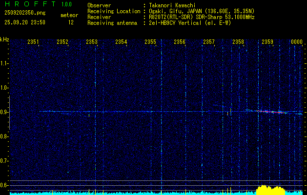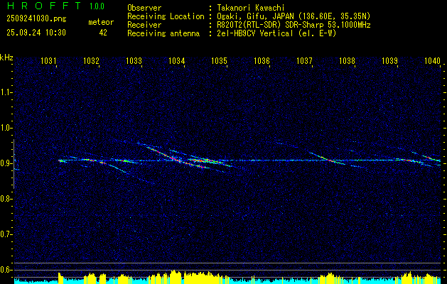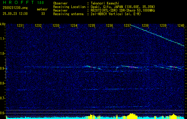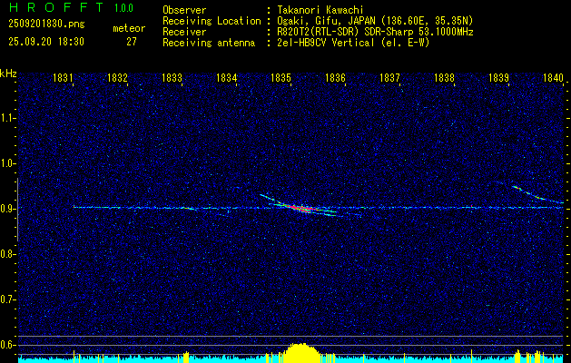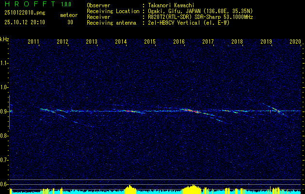 0.9kHz附近に発生している『点』または『塊』が流星によるエコーです.